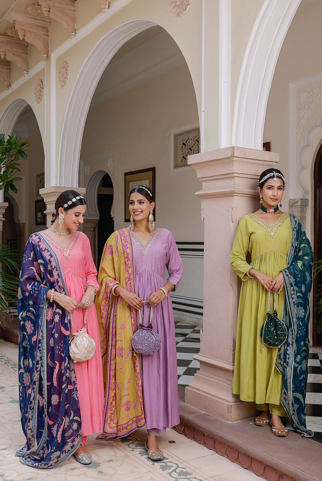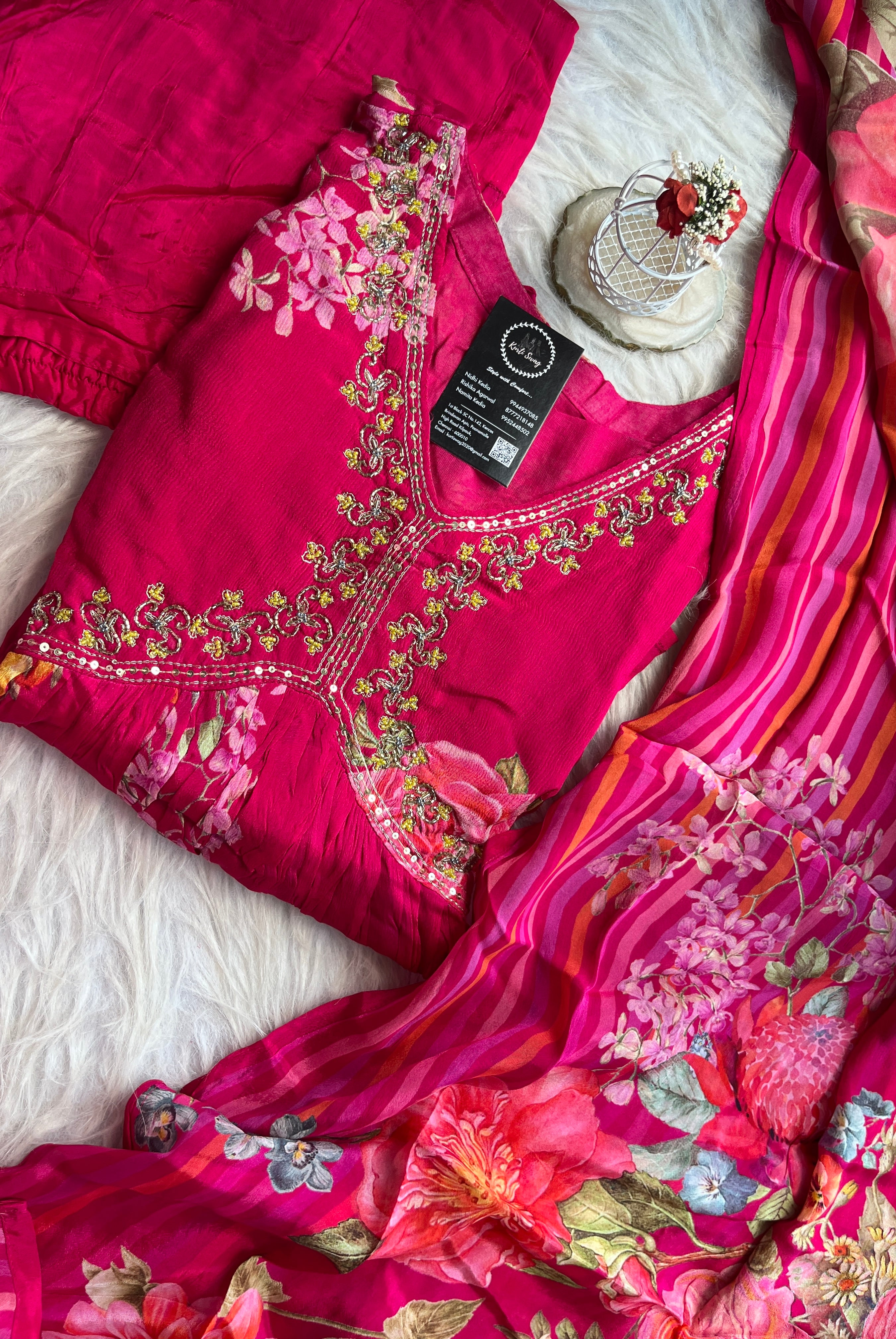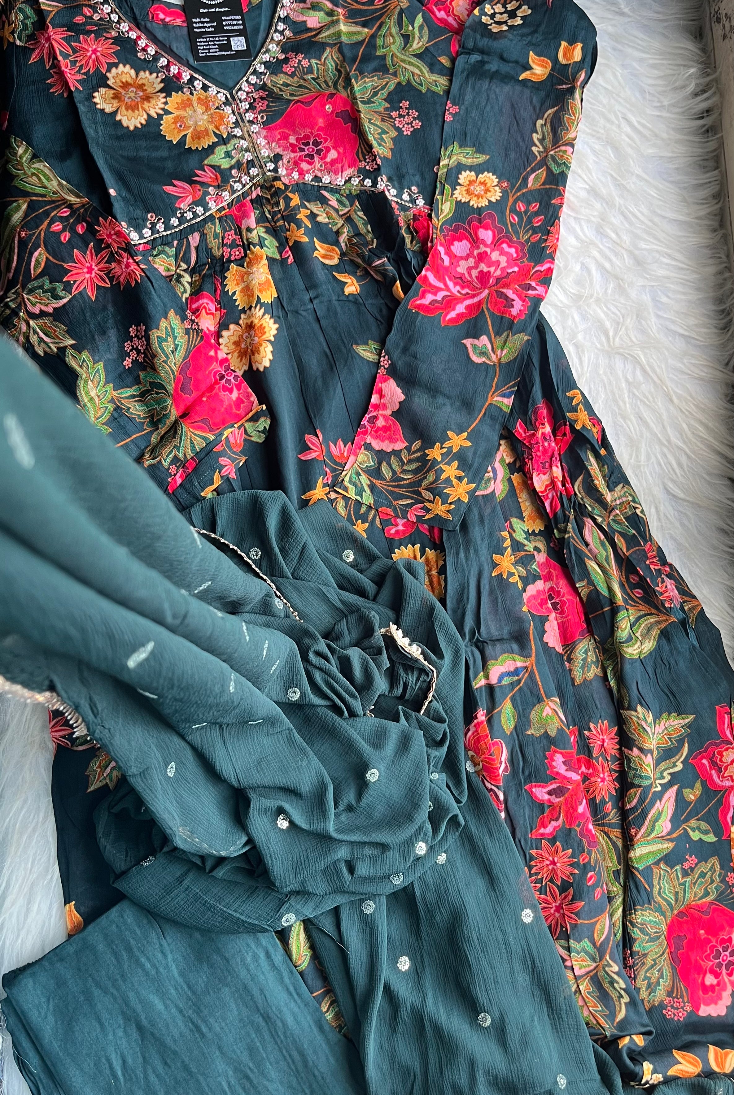 “VIKITHA” Premium Chinnon Anarkali Suit Set 💕✨