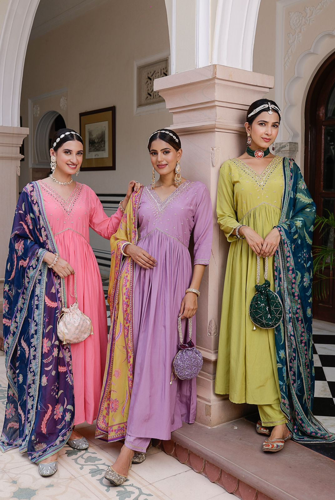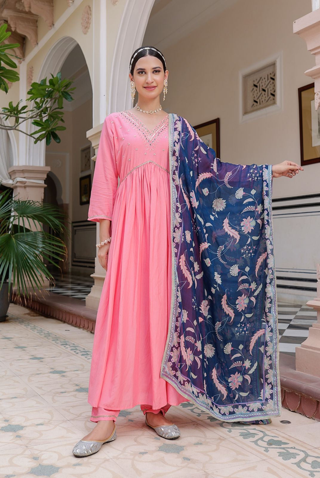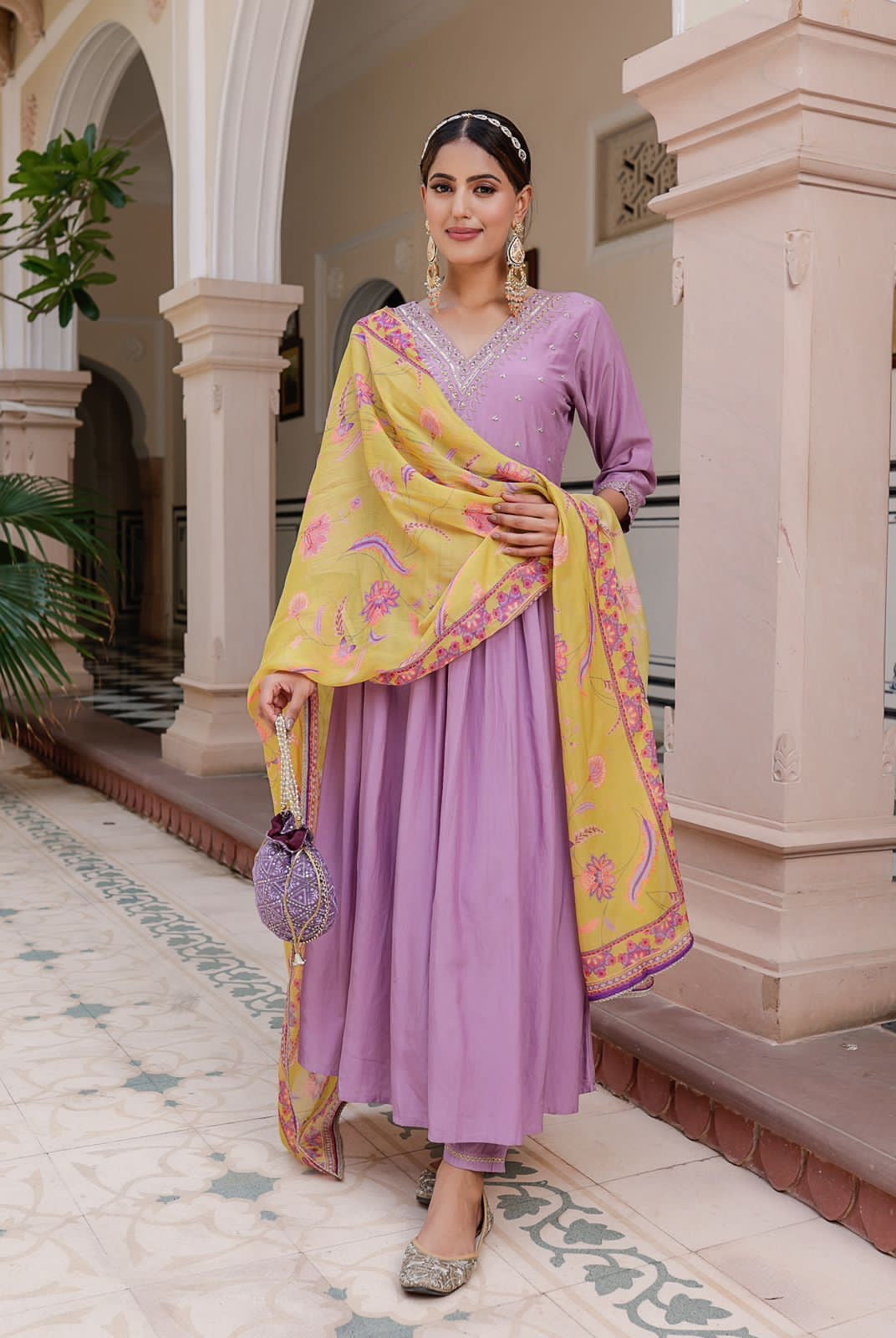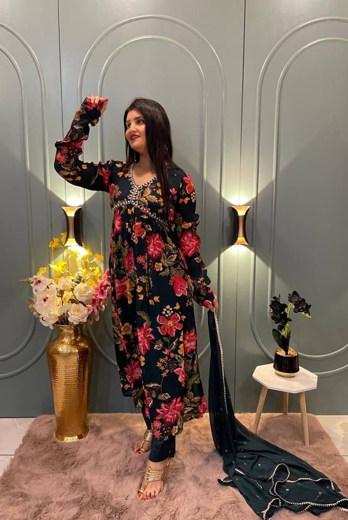 “VIKITHA” Premium Chinnon Anarkali Suit Set 💕✨