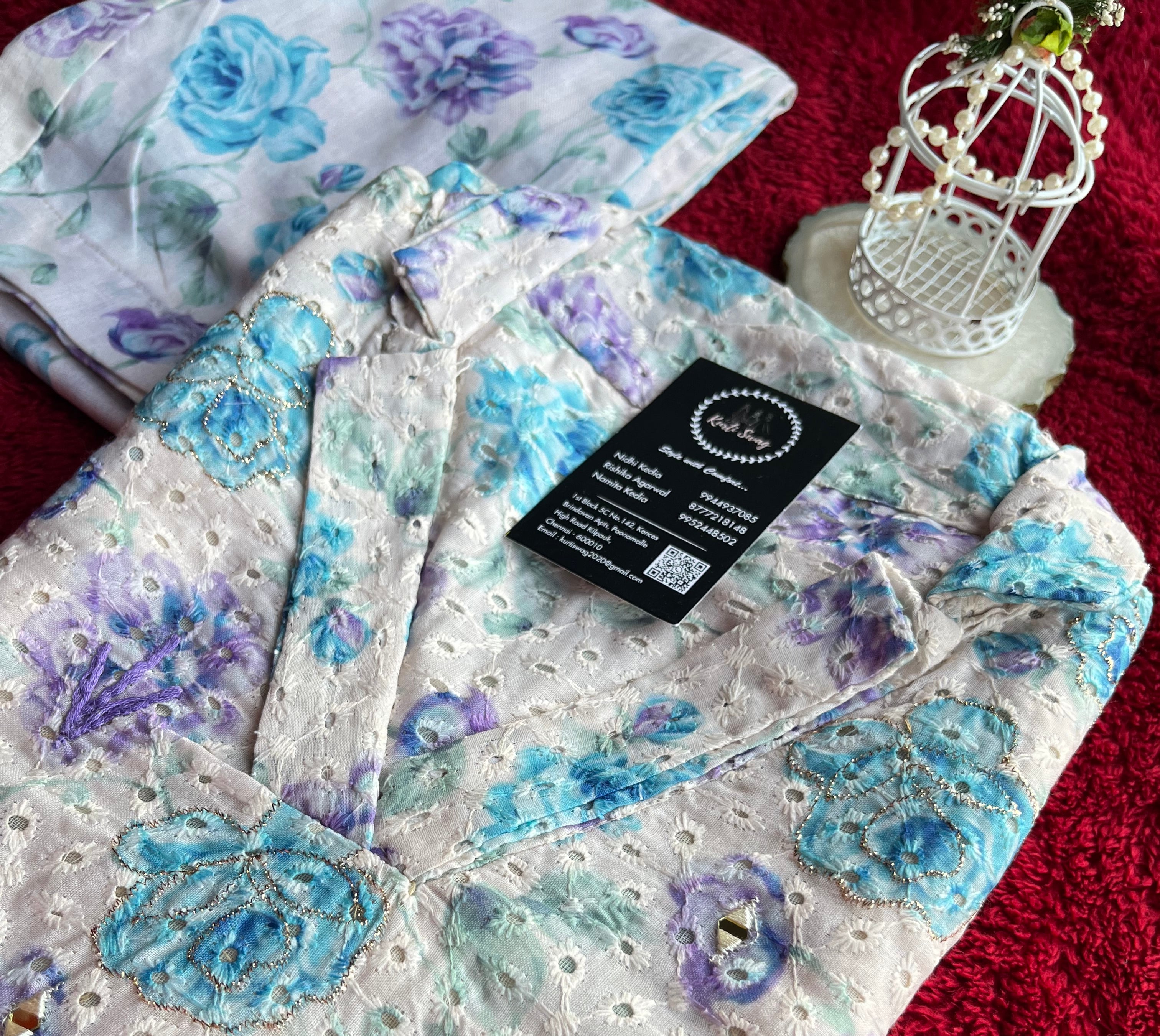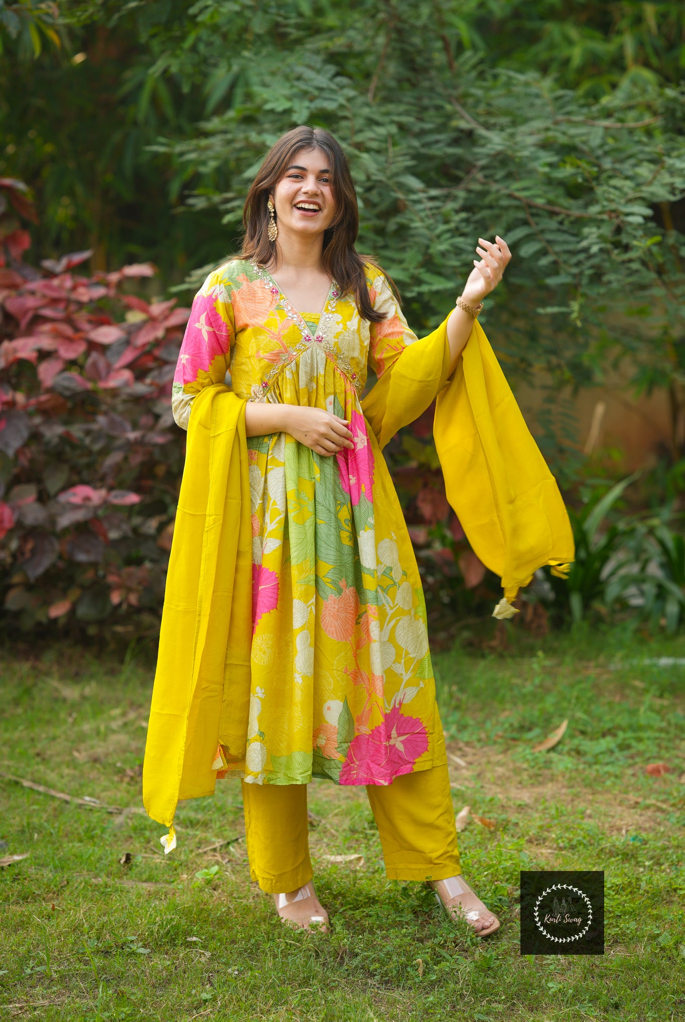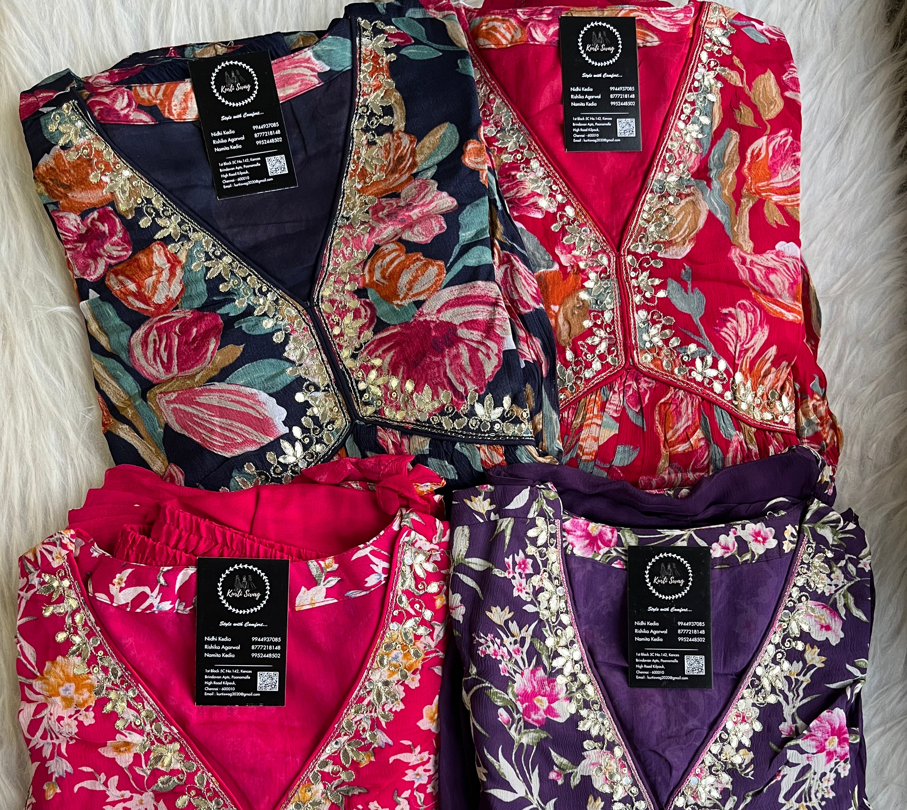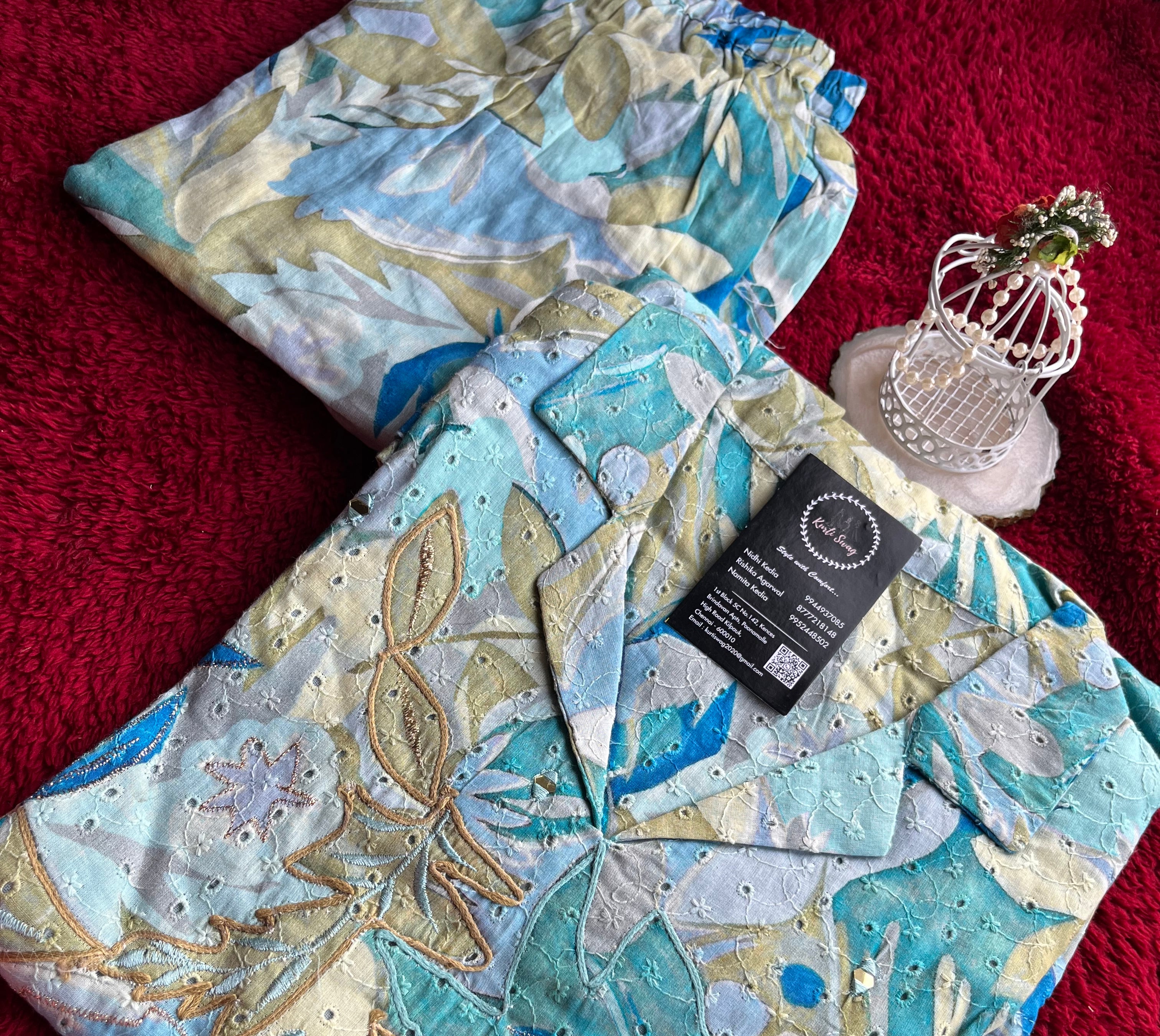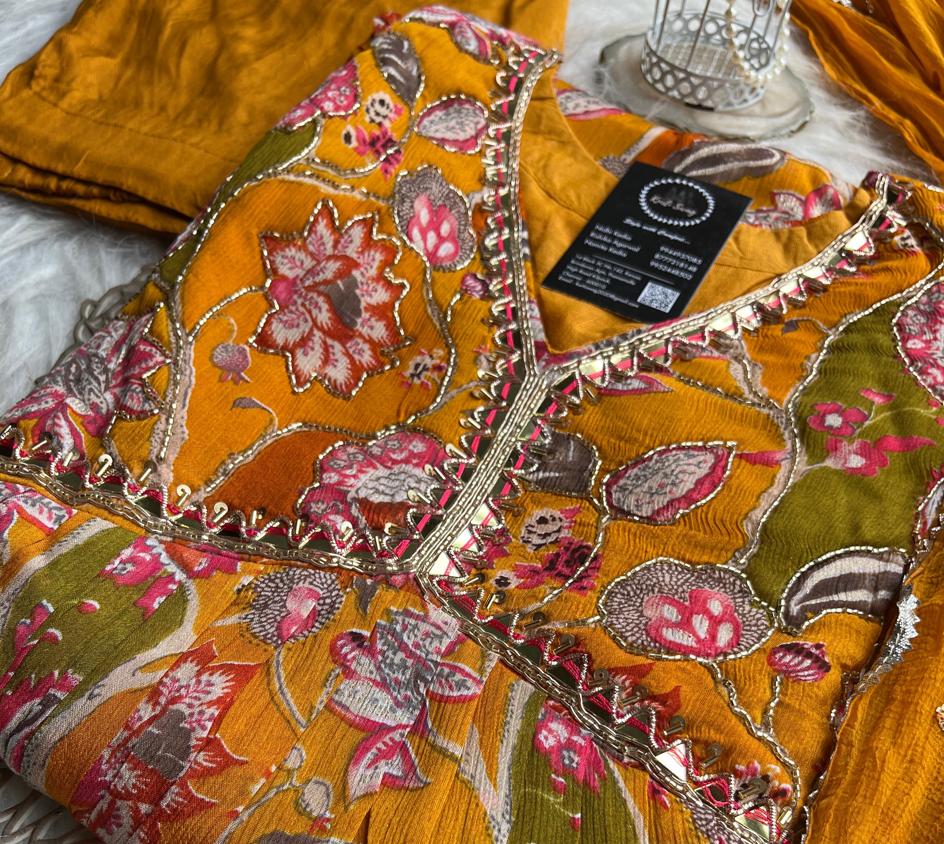 “KIARA” Printed Chinnon Alia Cut Suit Set 💕