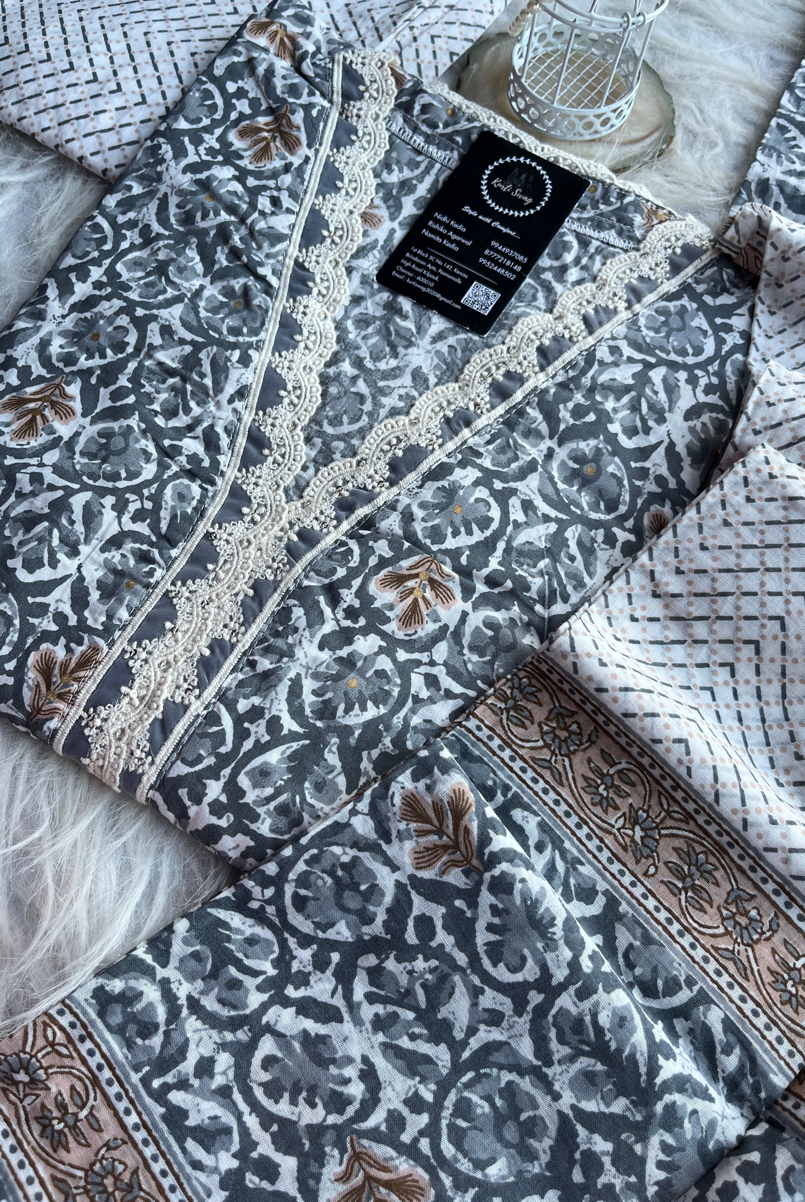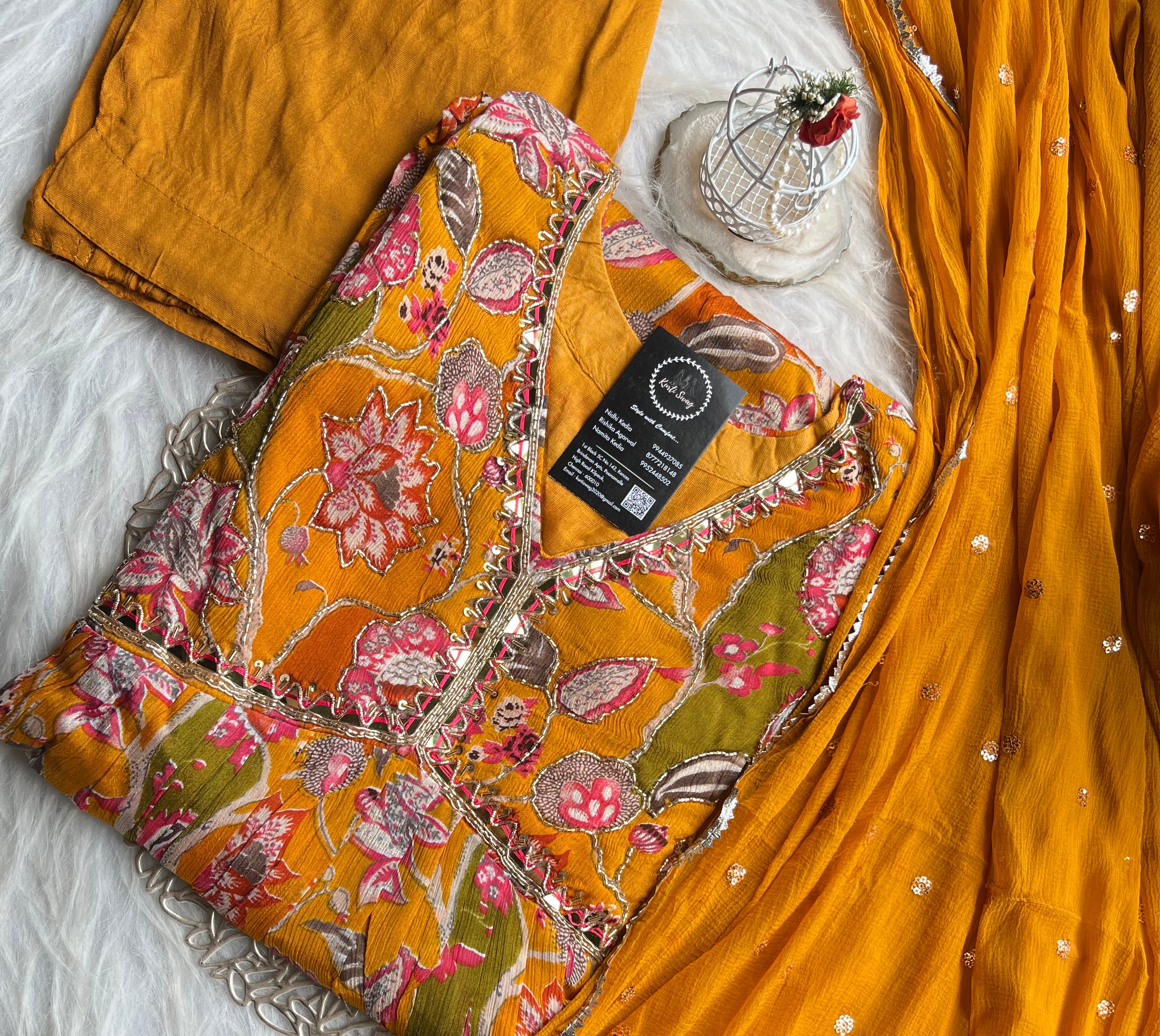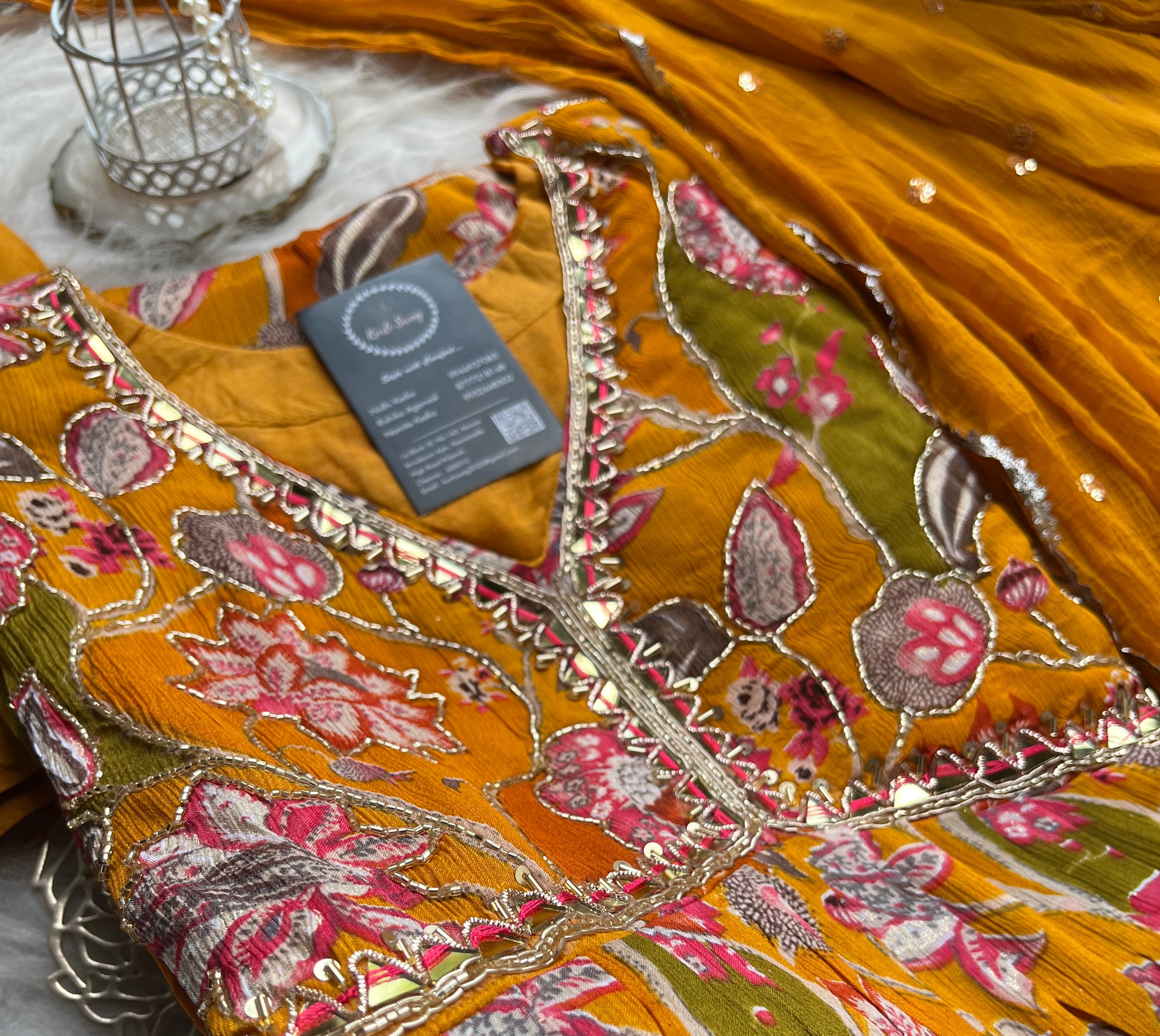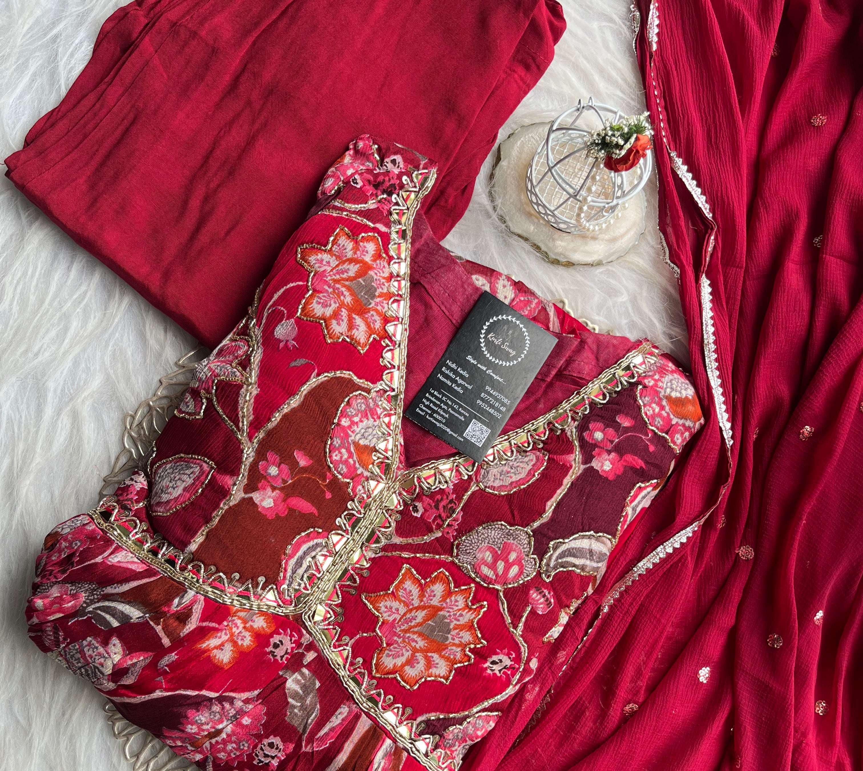 “KIARA” Printed Chinnon Alia Cut Suit Set 💕
