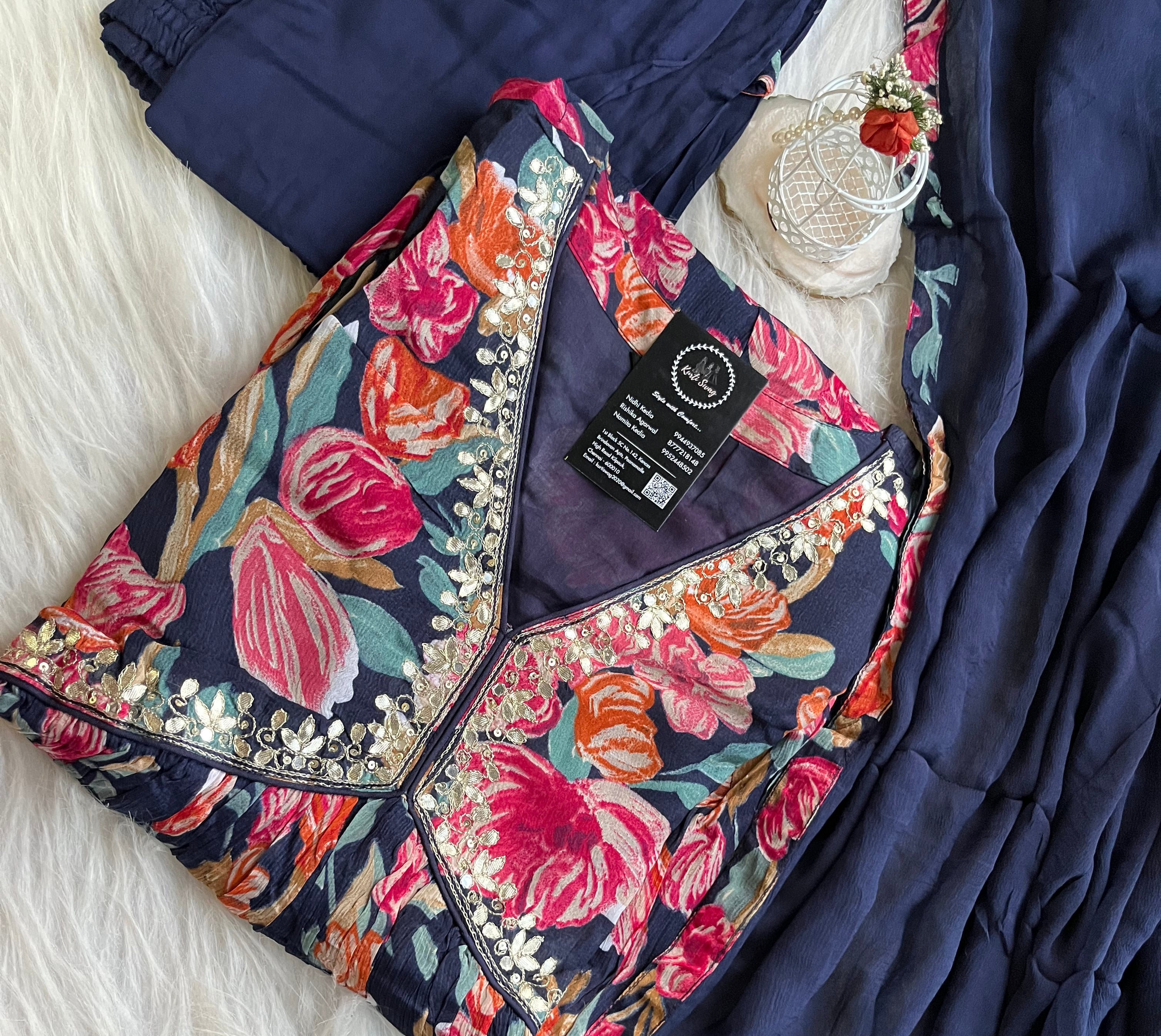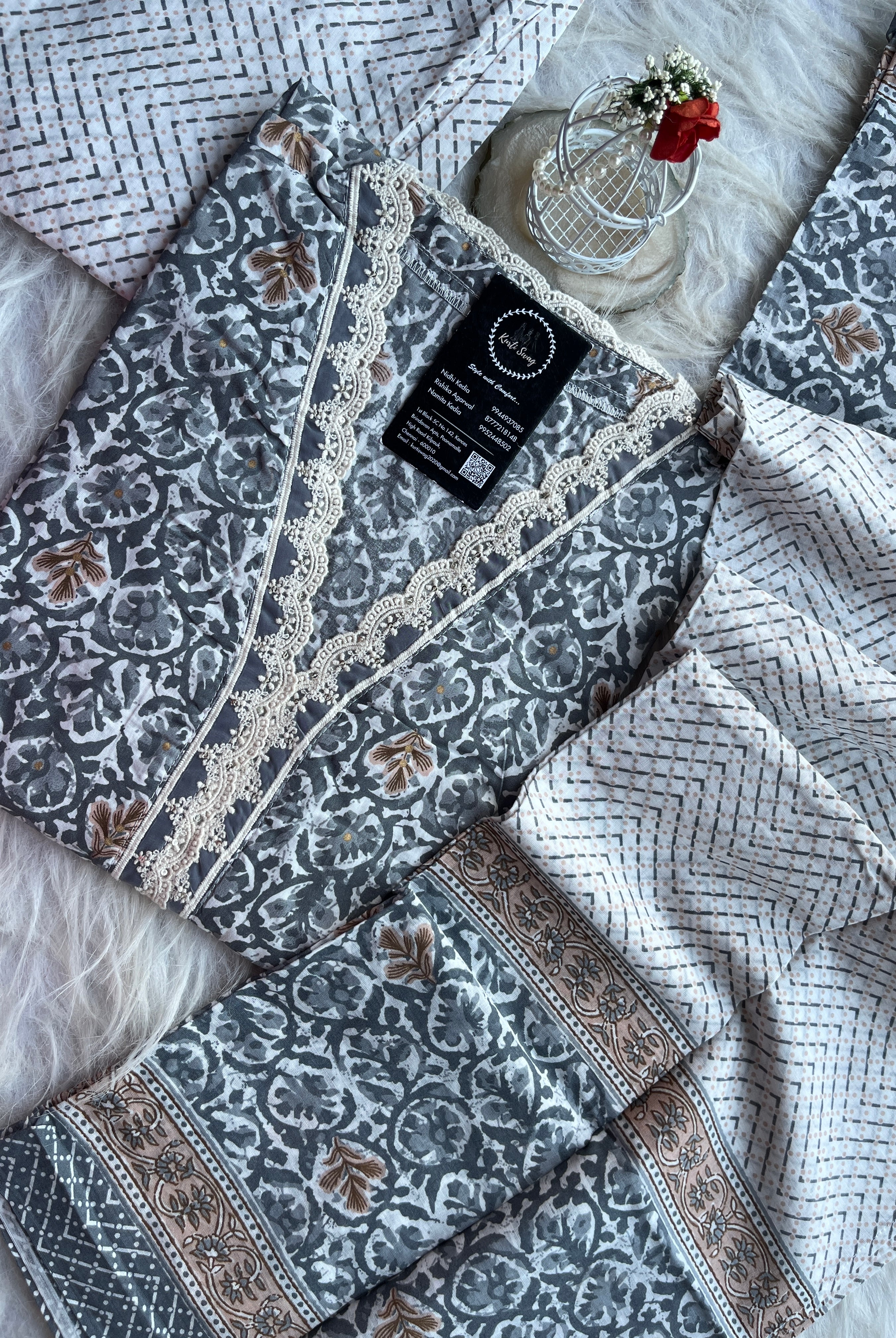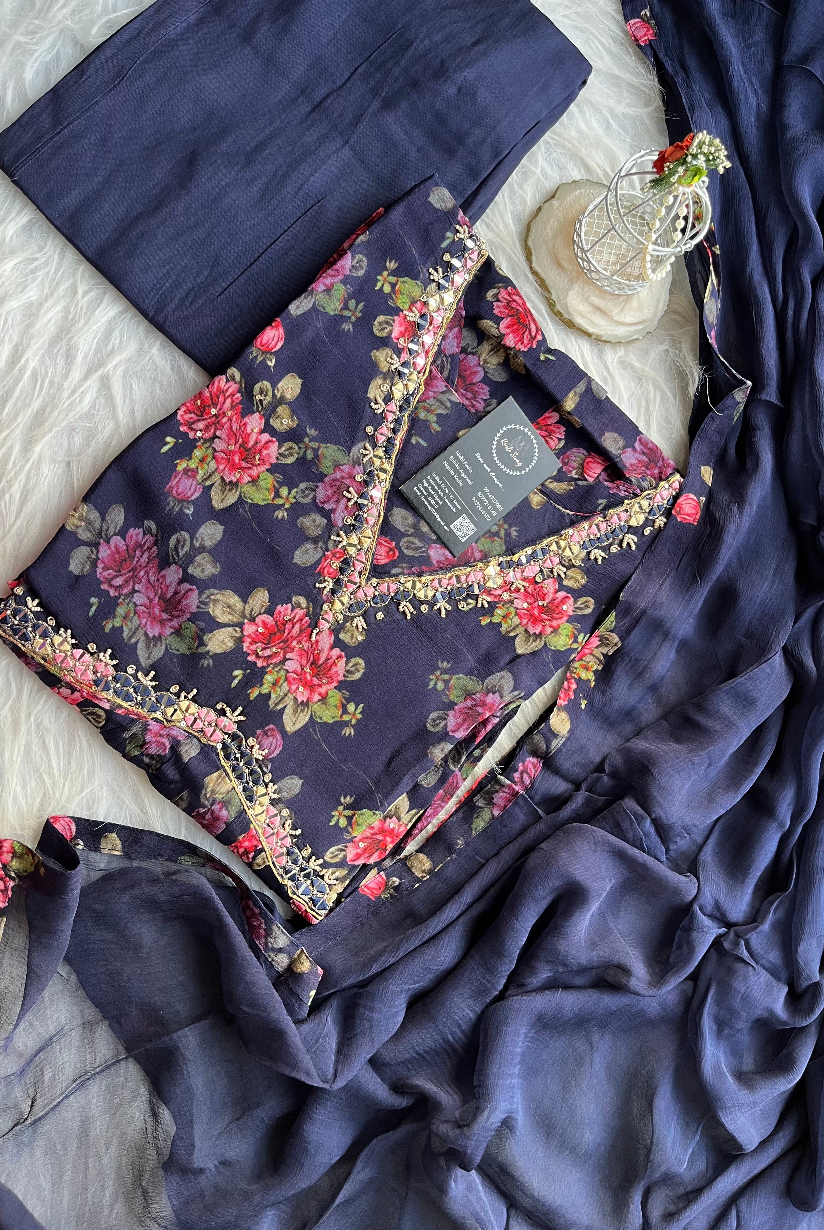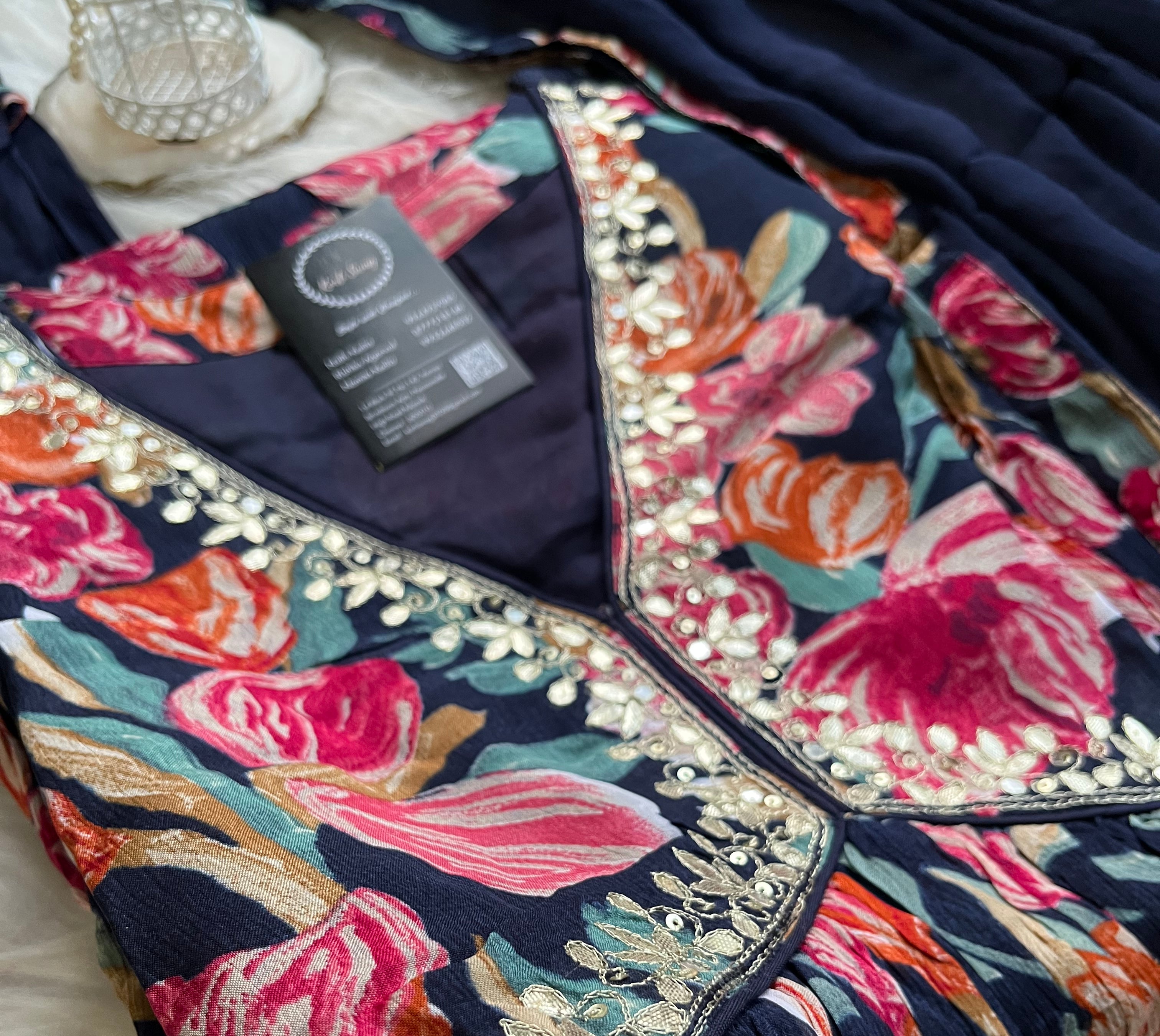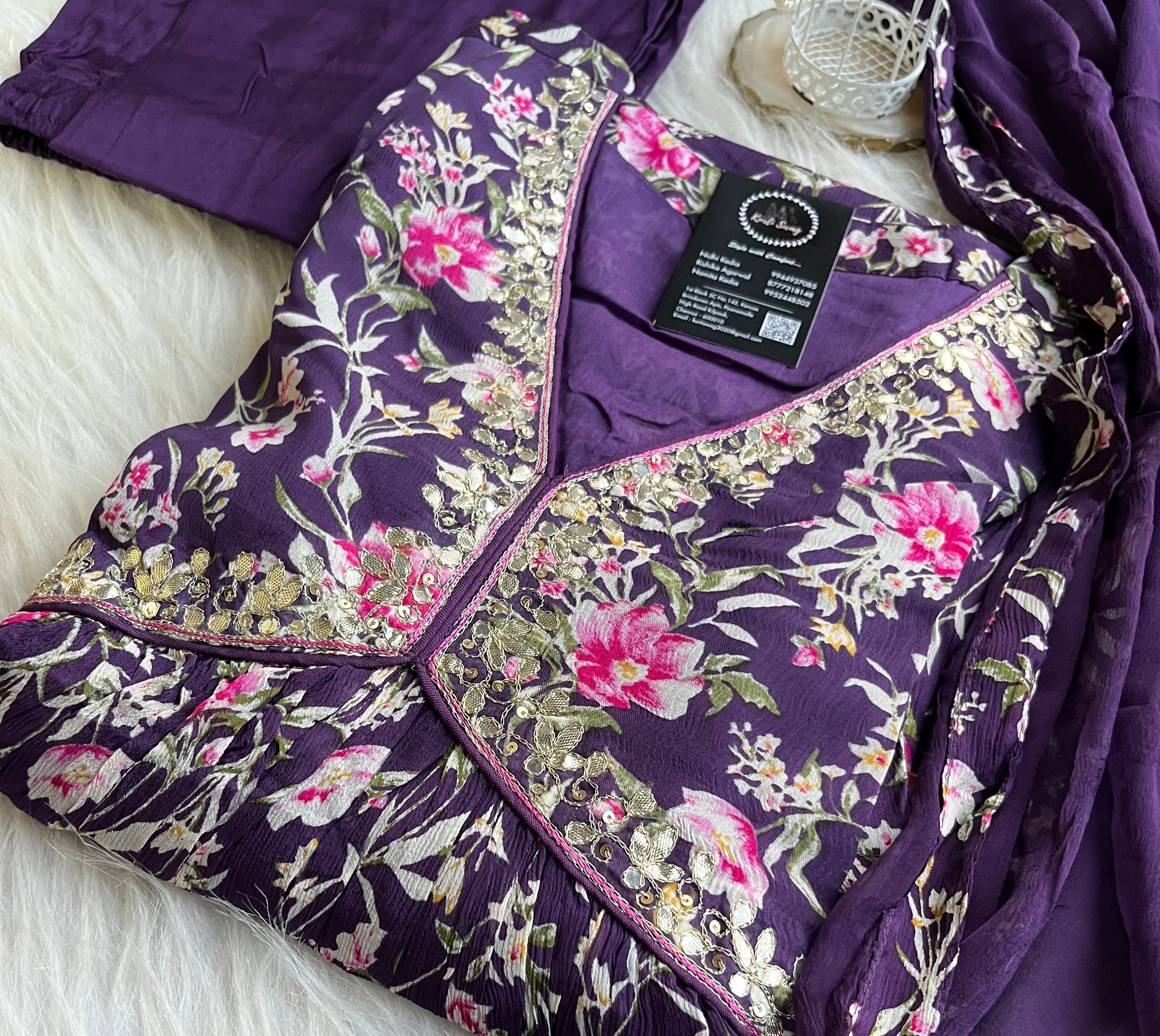 “KIARA” Printed Chinnon Alia Cut Suit Set 💕