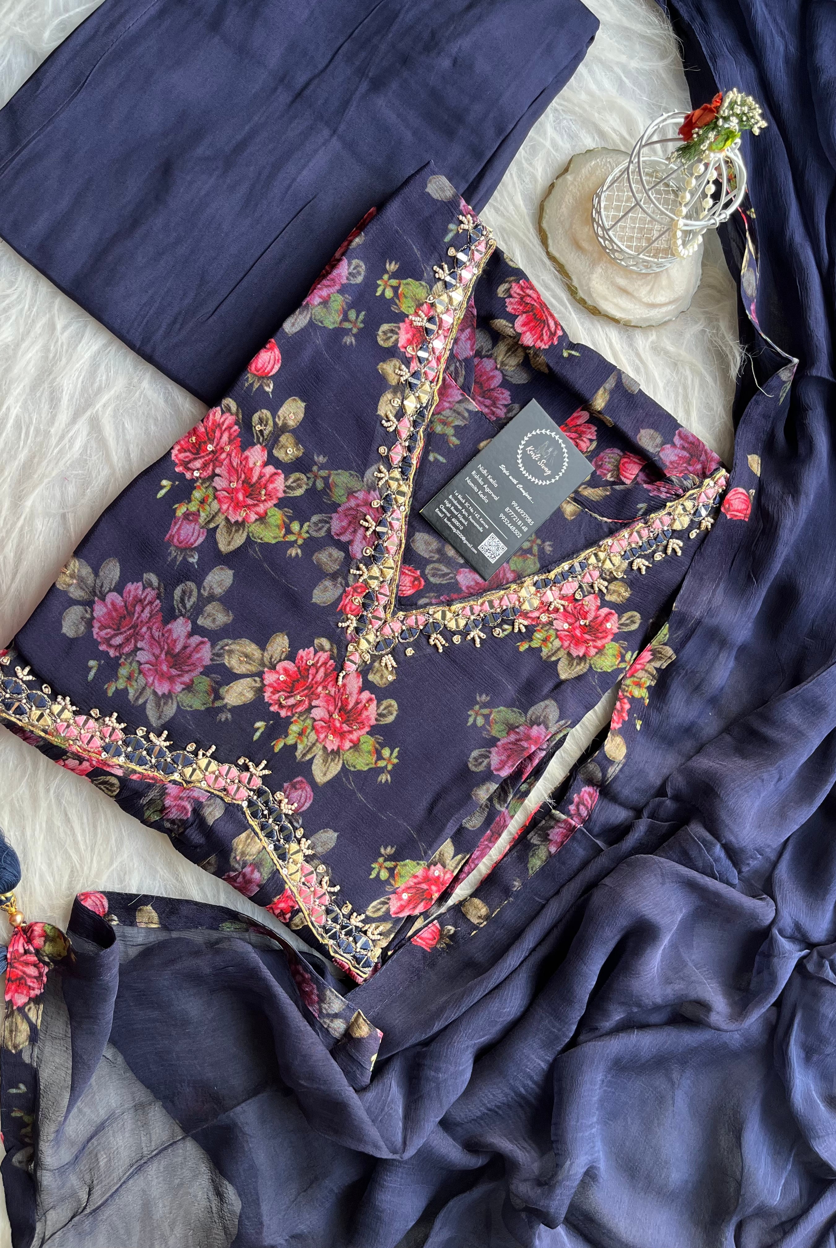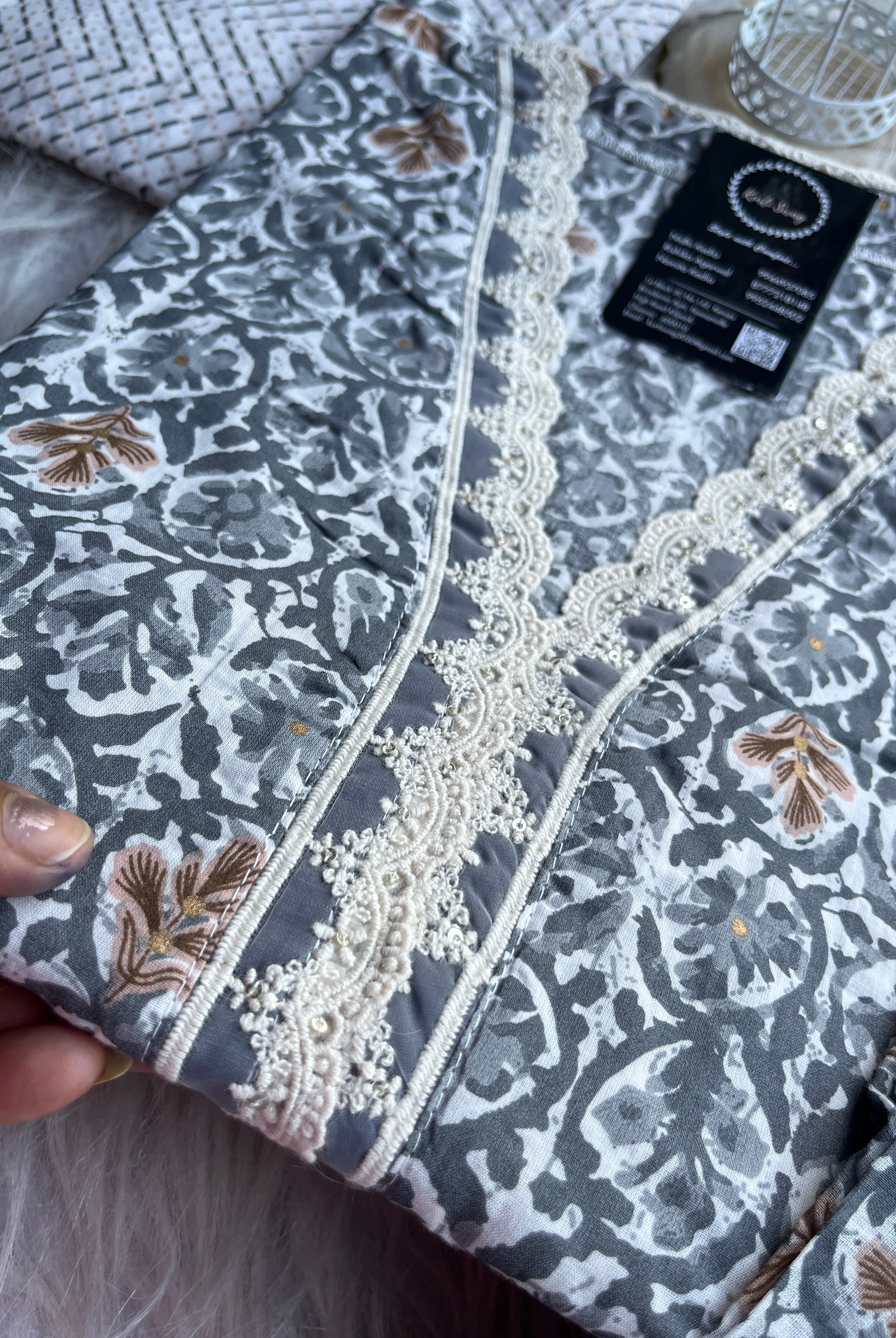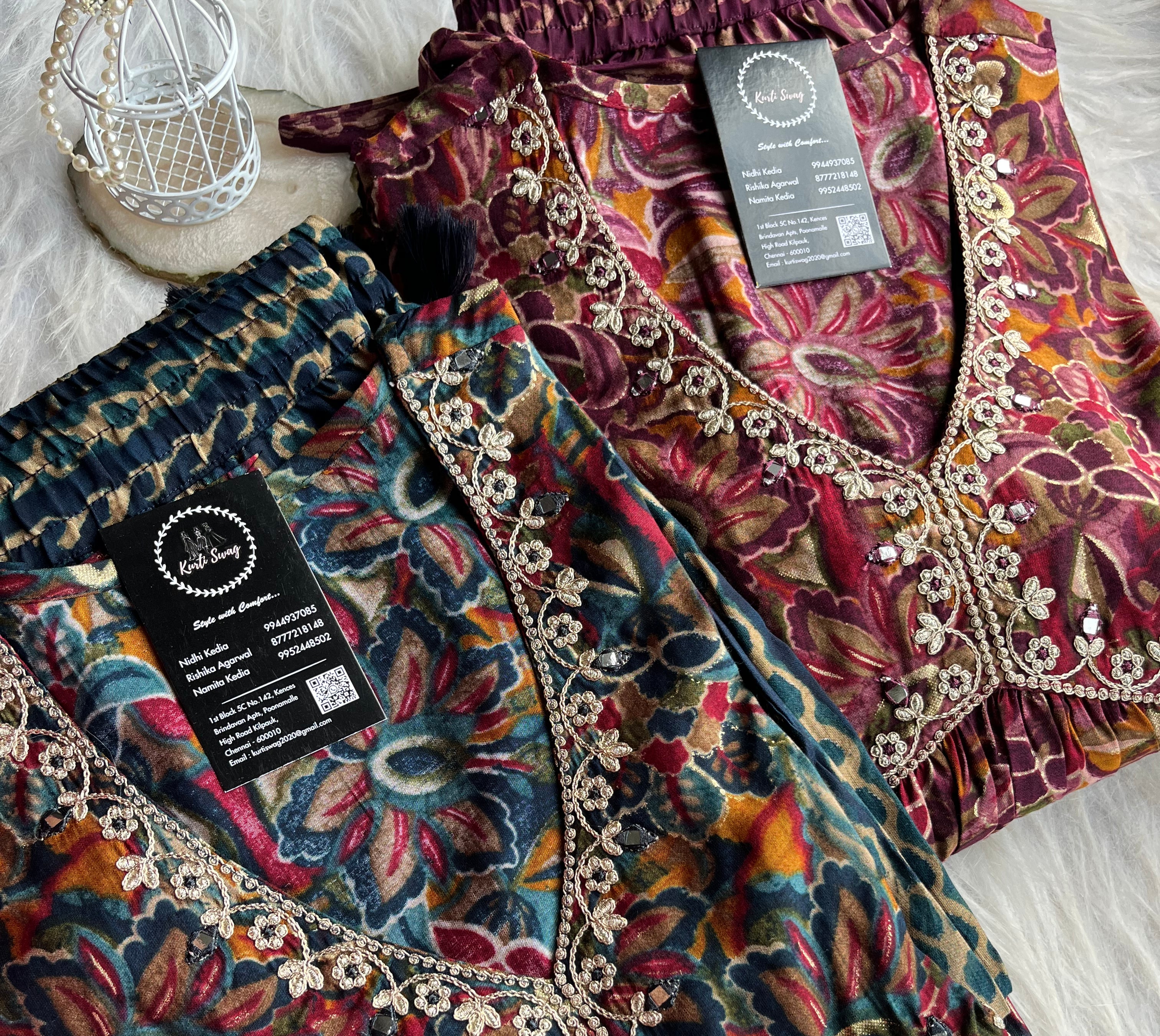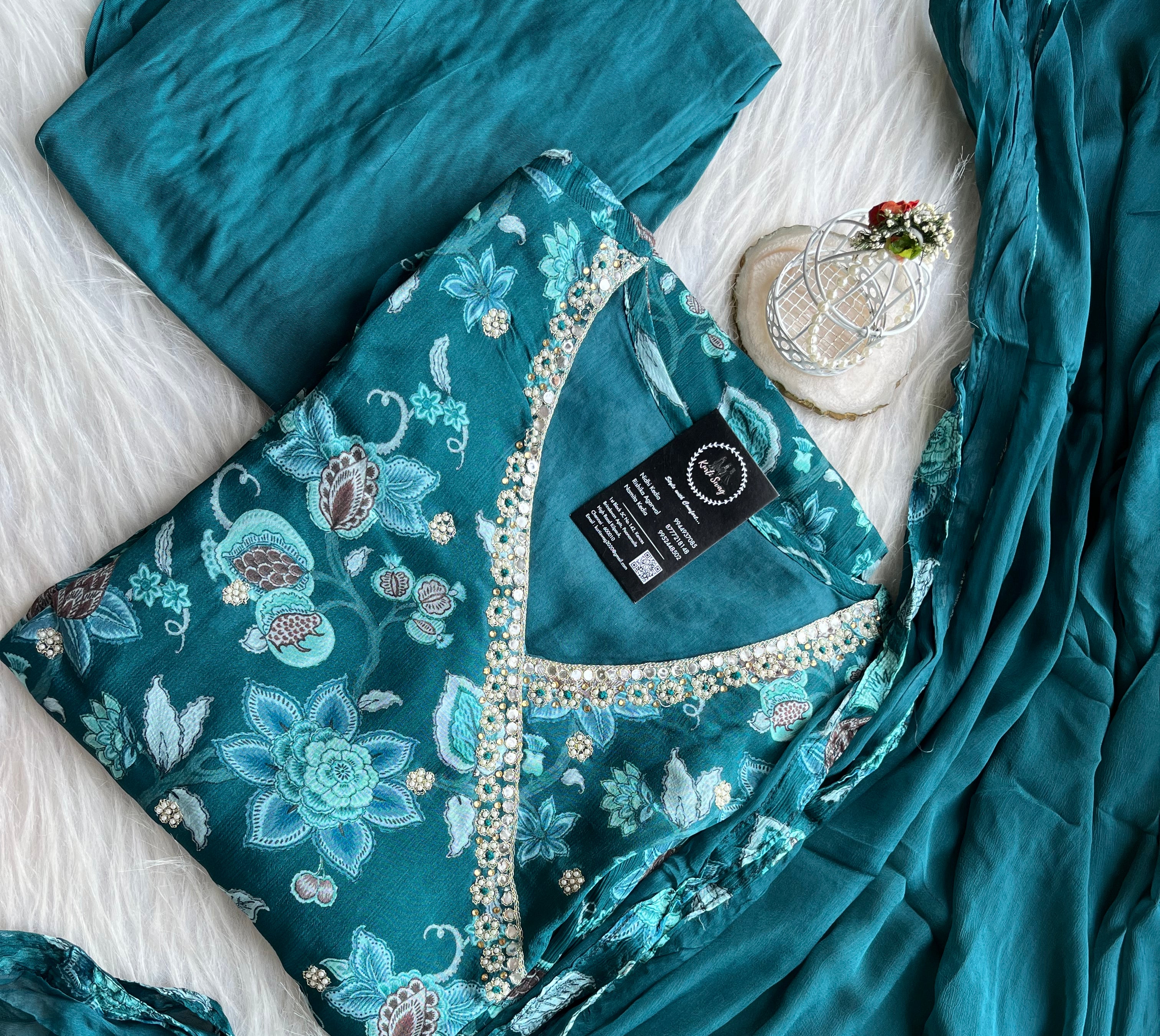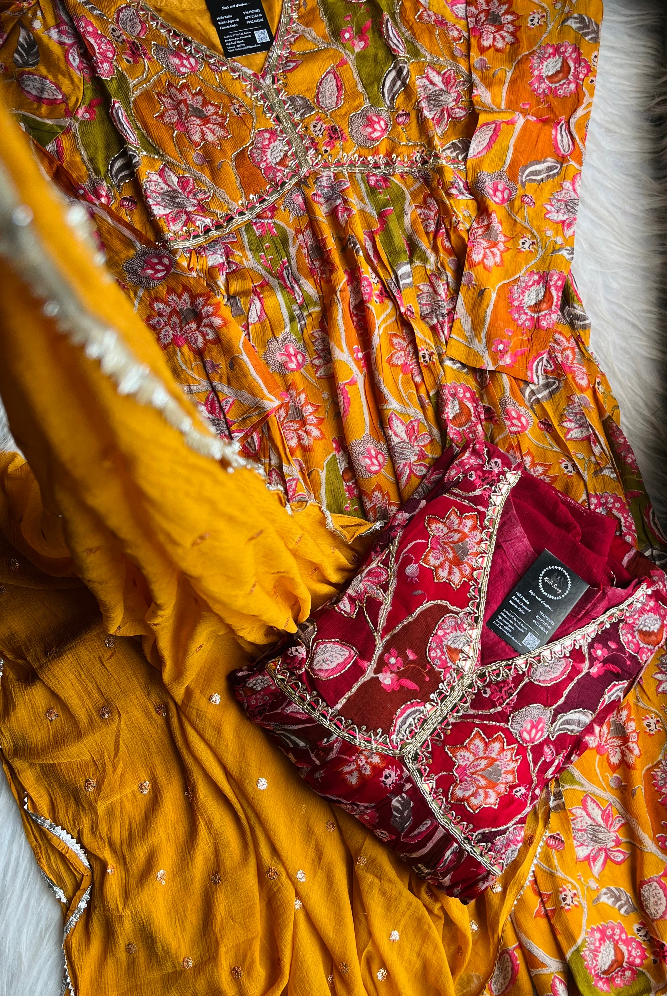 “KIARA” Printed Chinnon Alia Cut Suit Set 💕