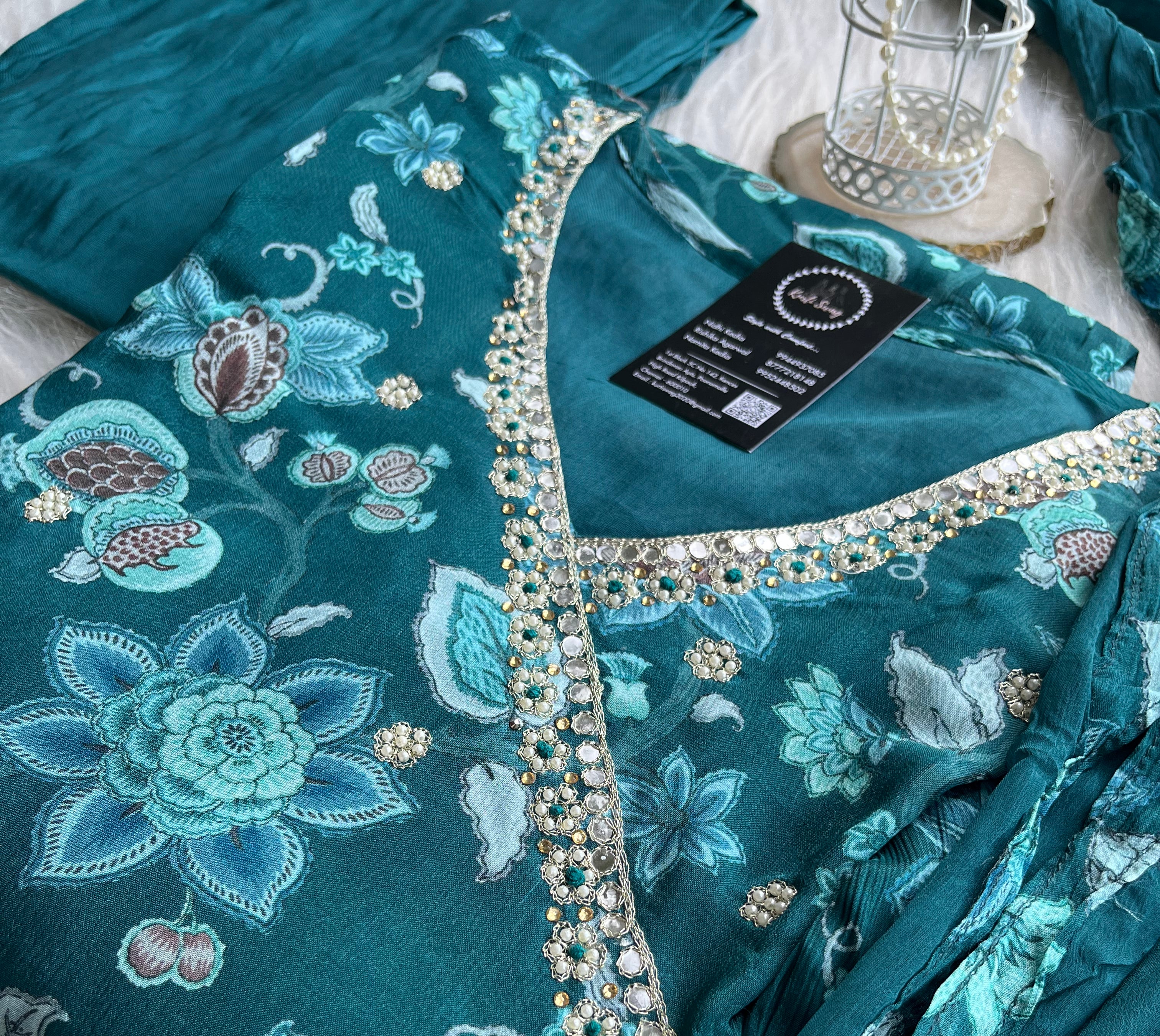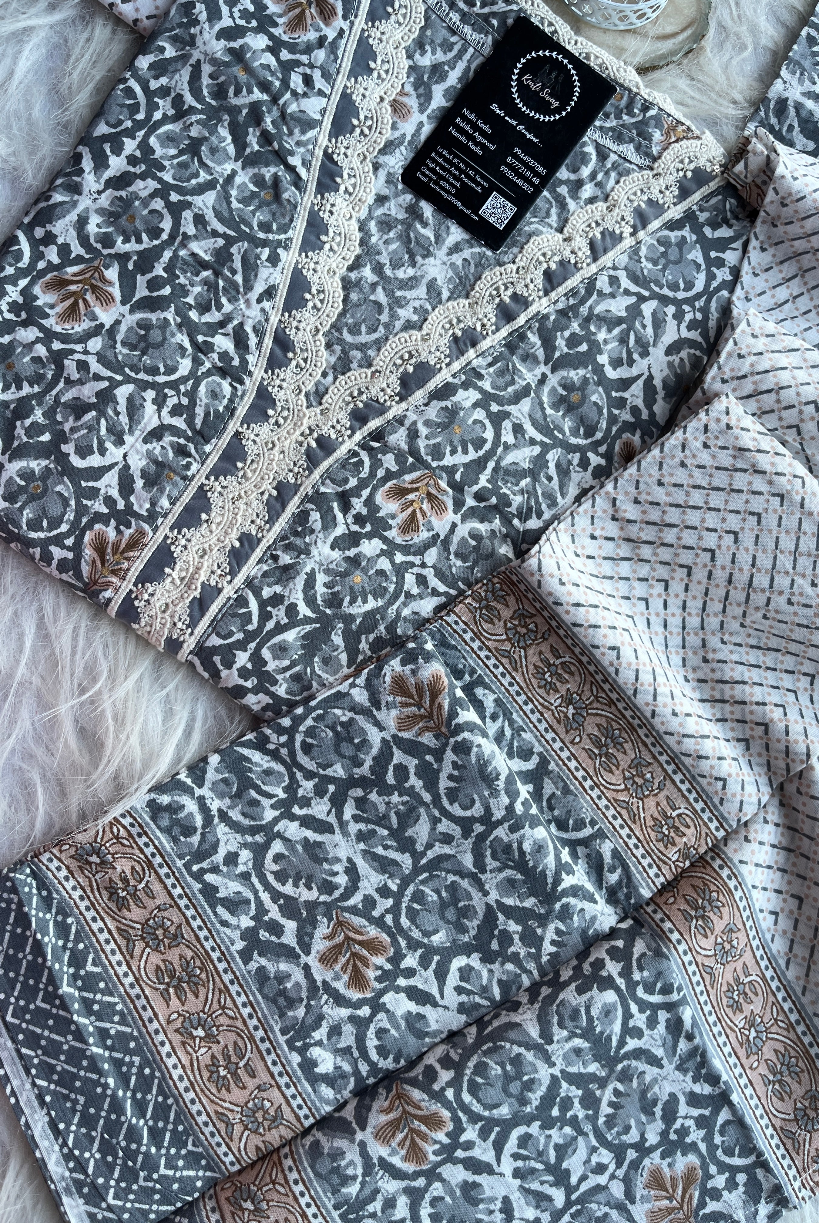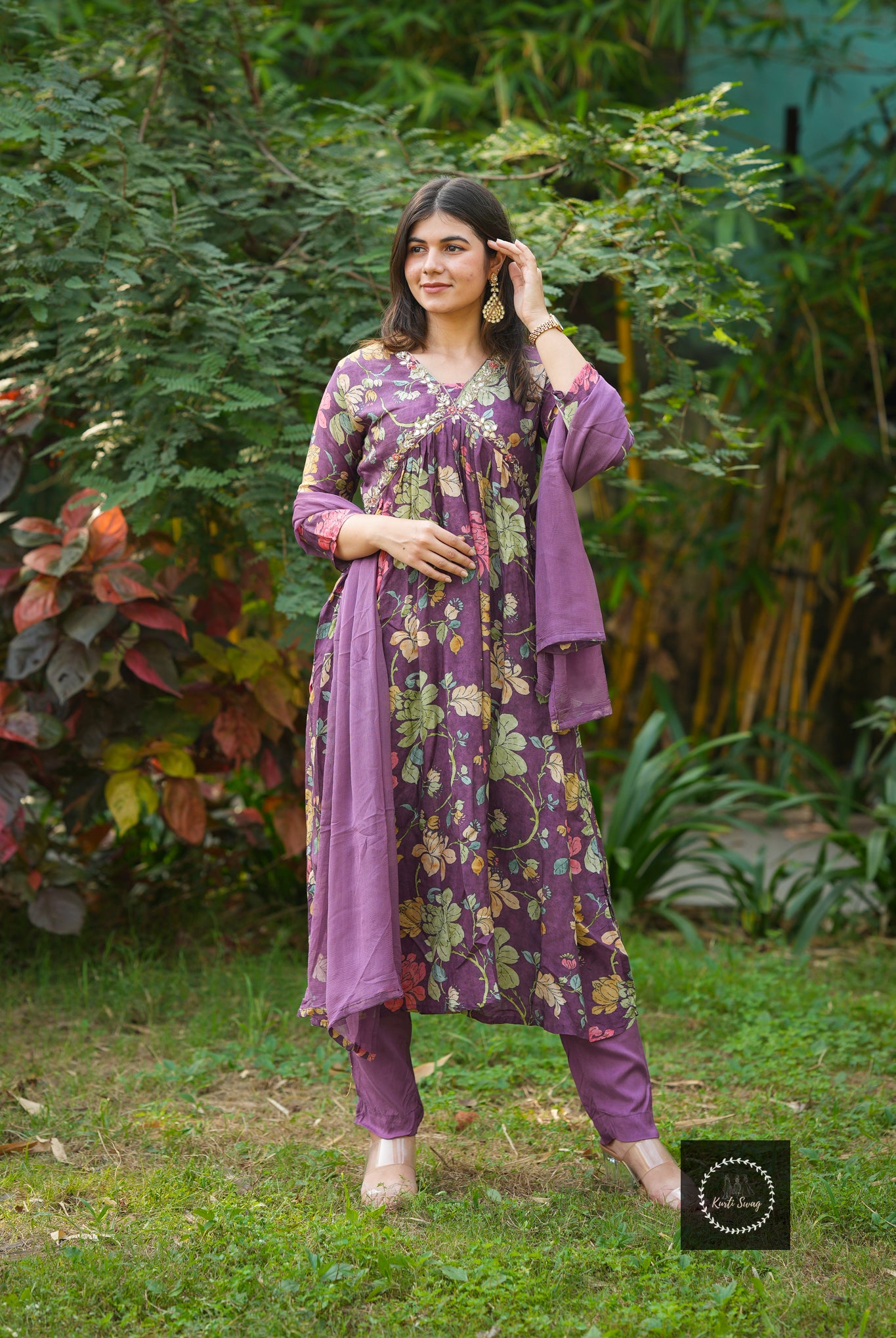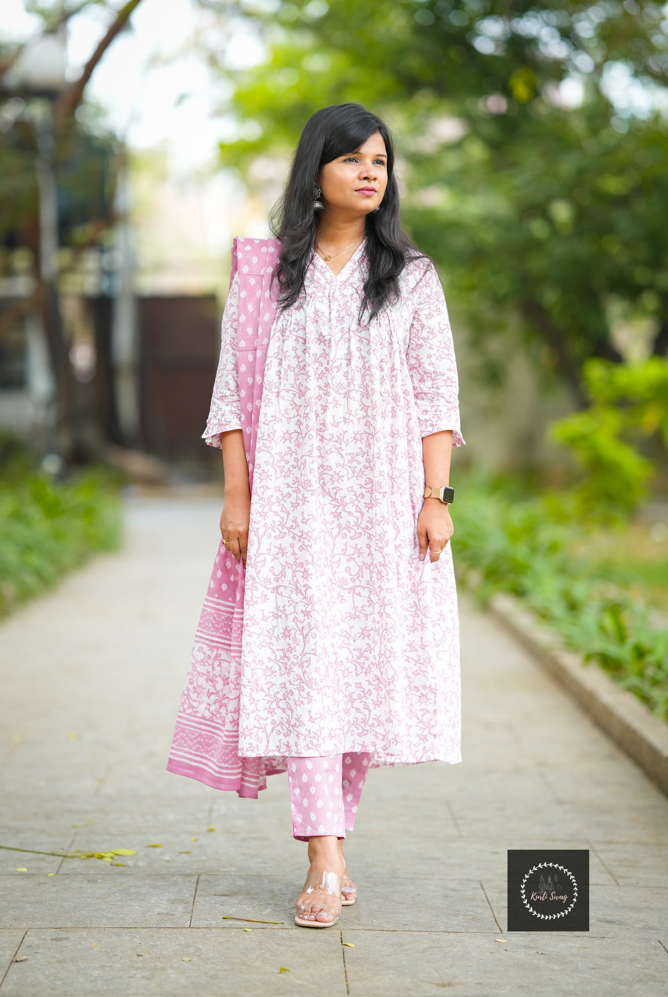 “KIARA” Printed Chinnon Alia Cut Suit Set 💕