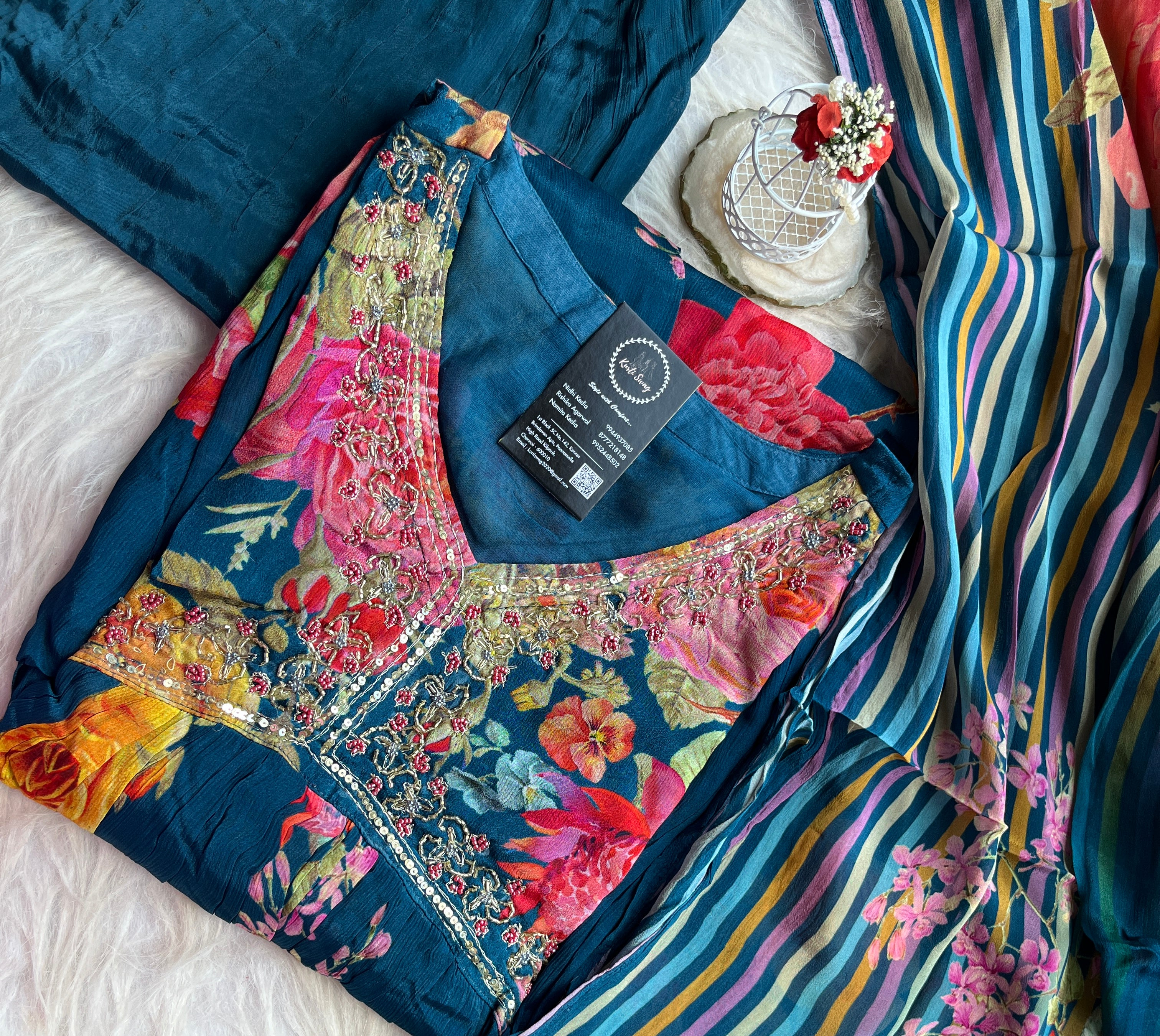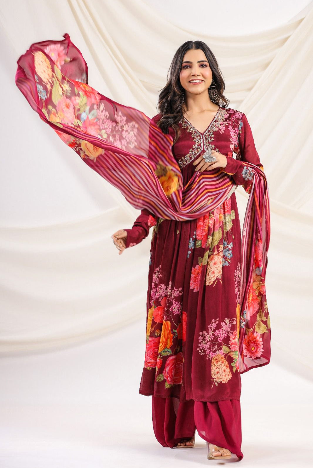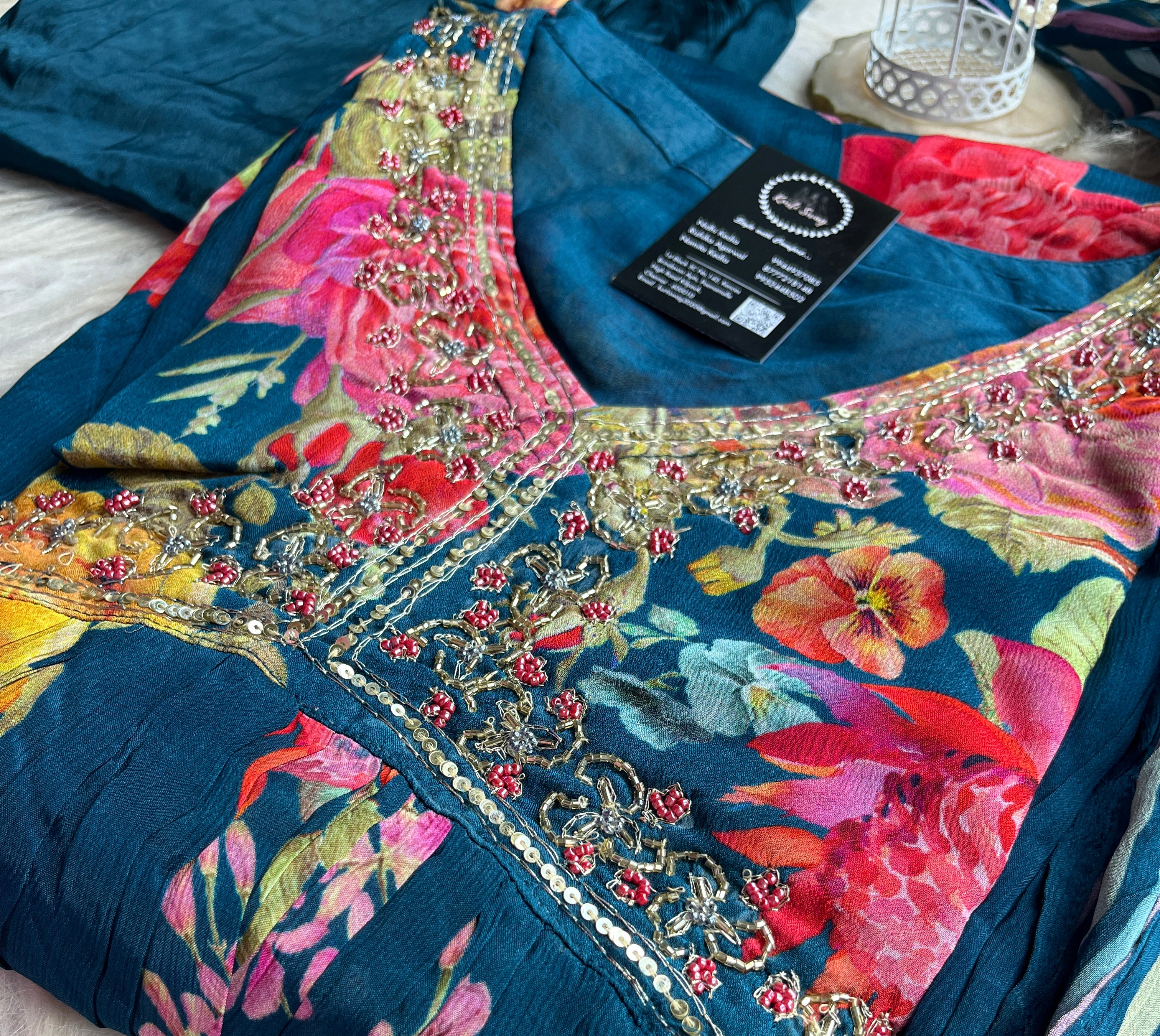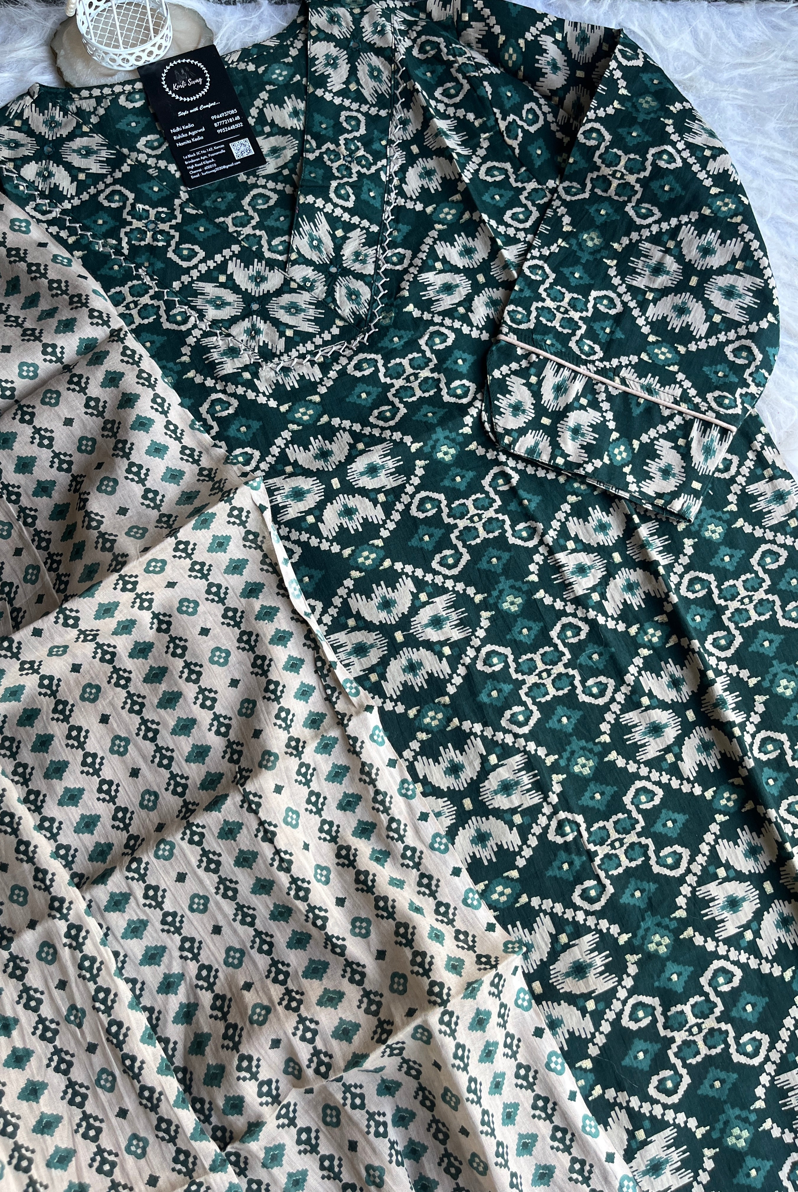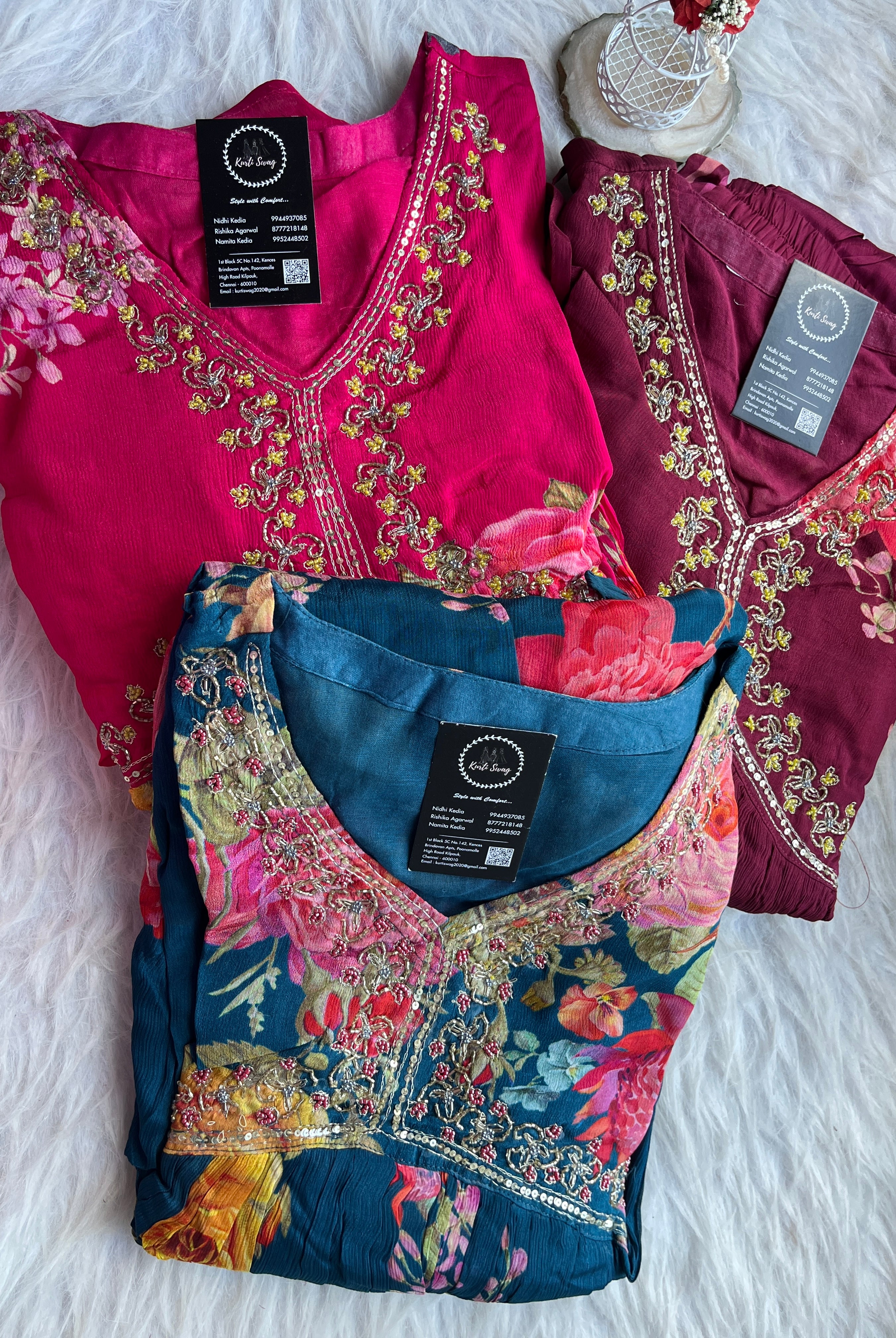 “KIARA” Printed Chinnon Alia Cut Suit Set 💕