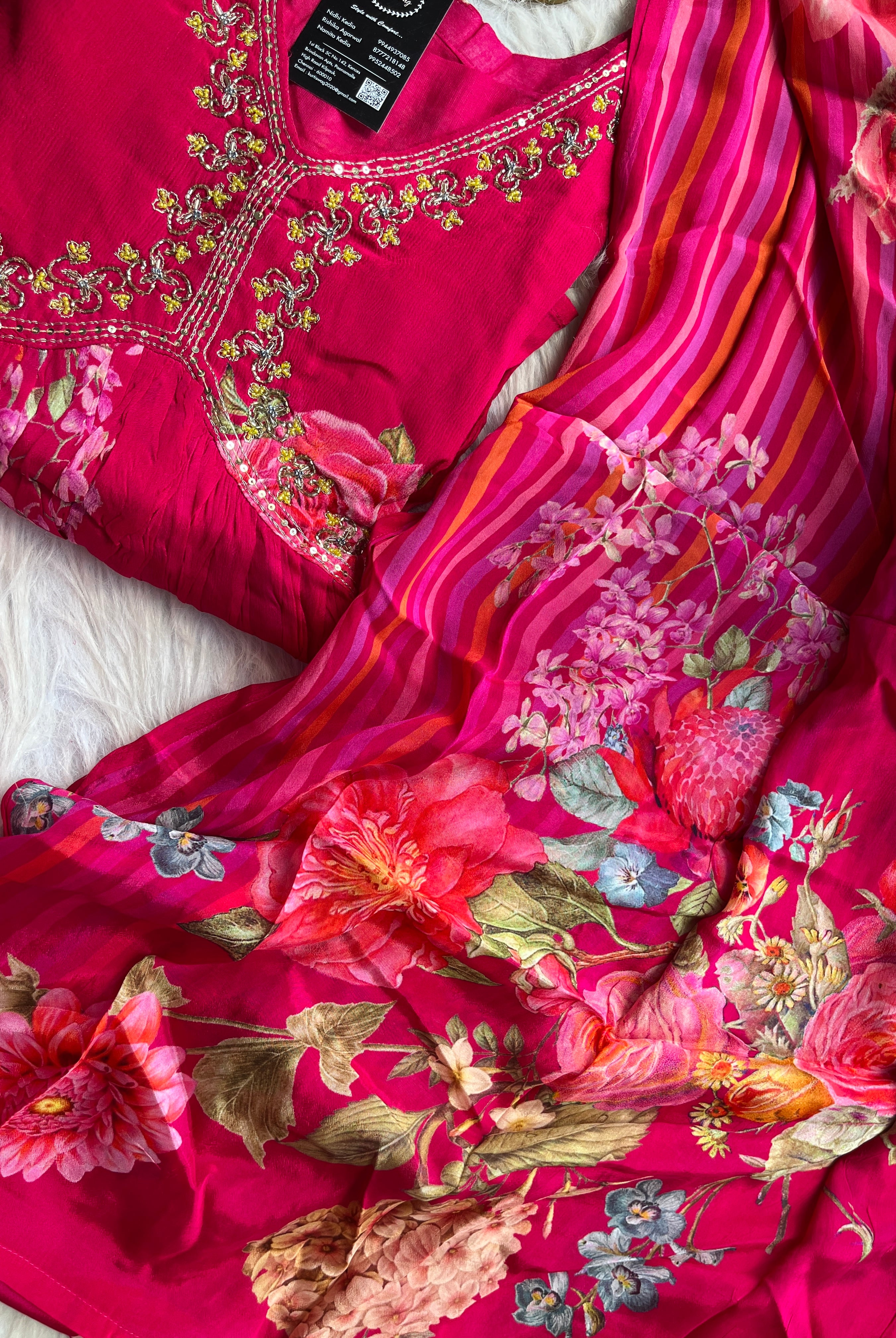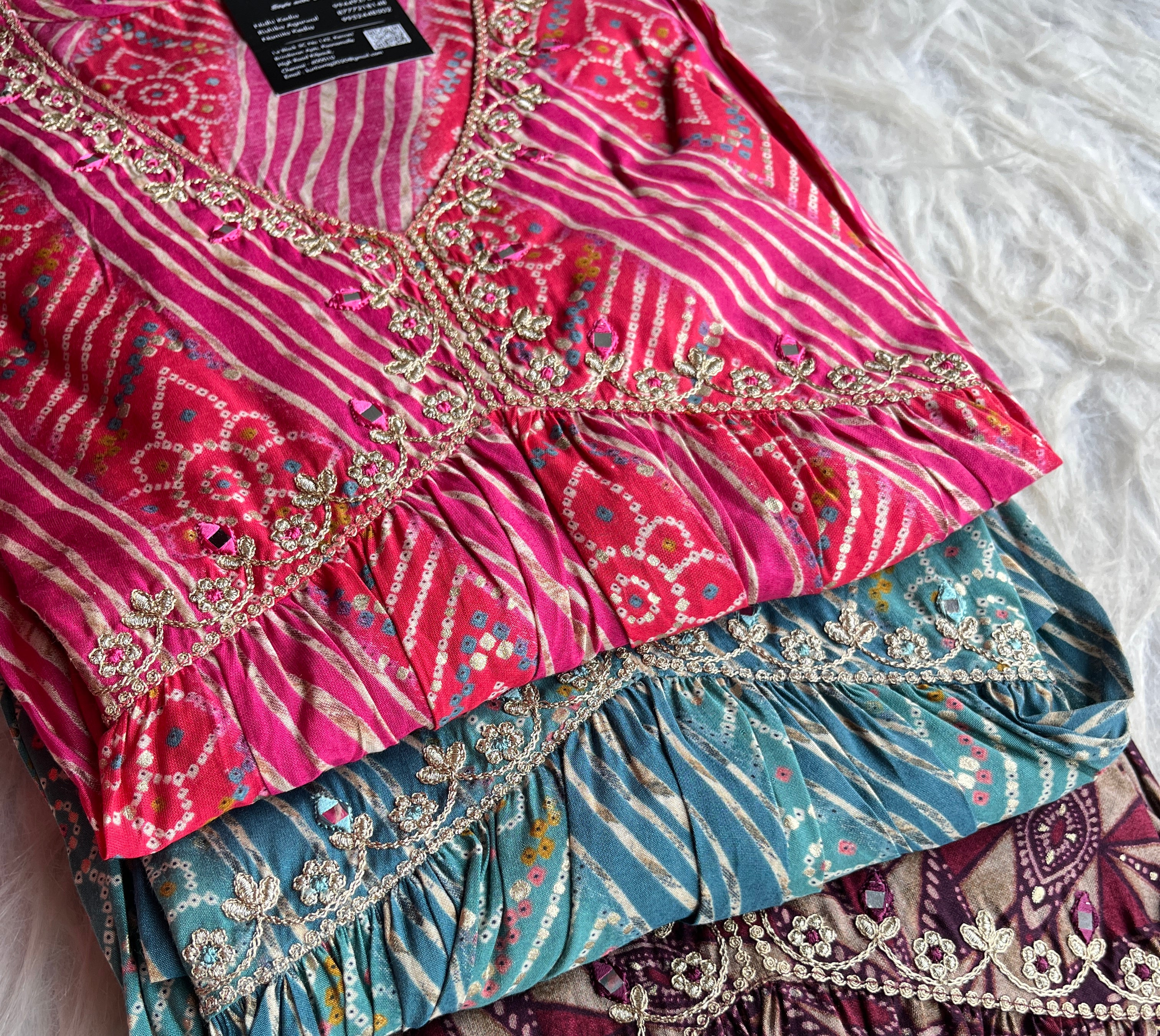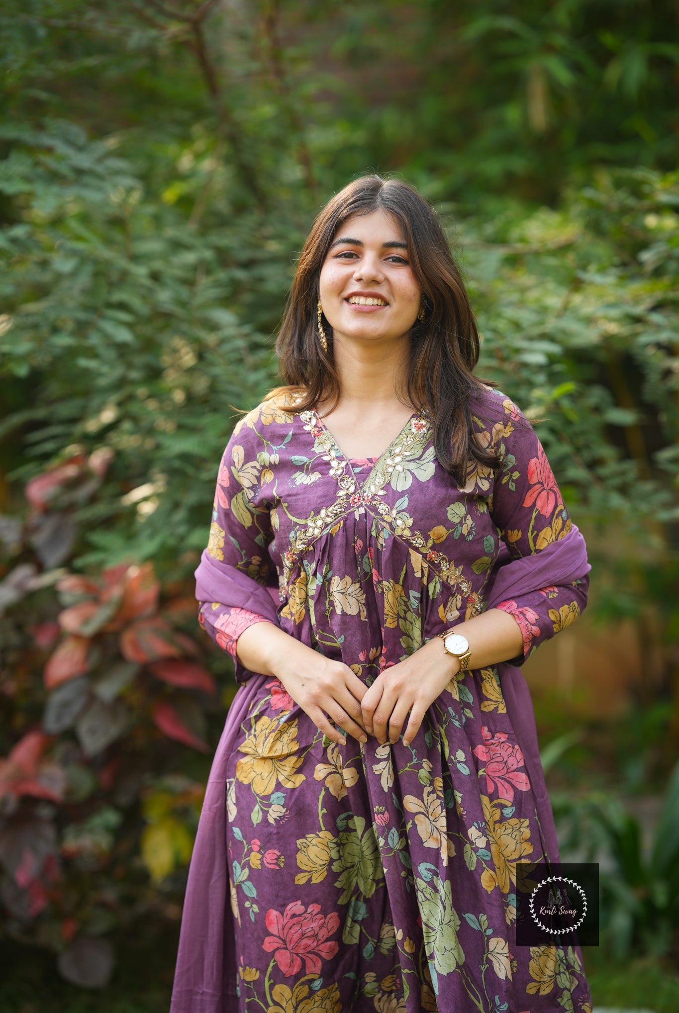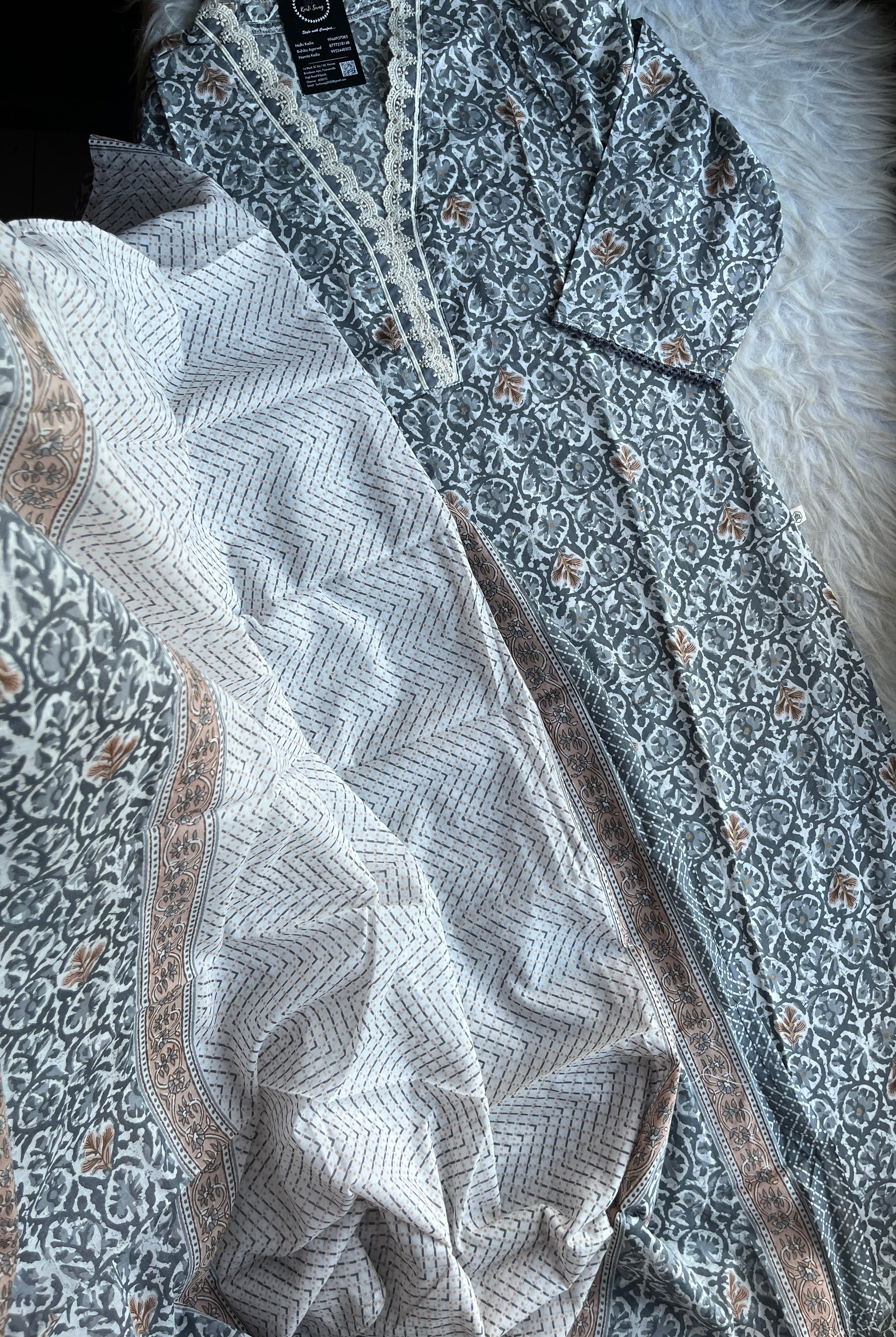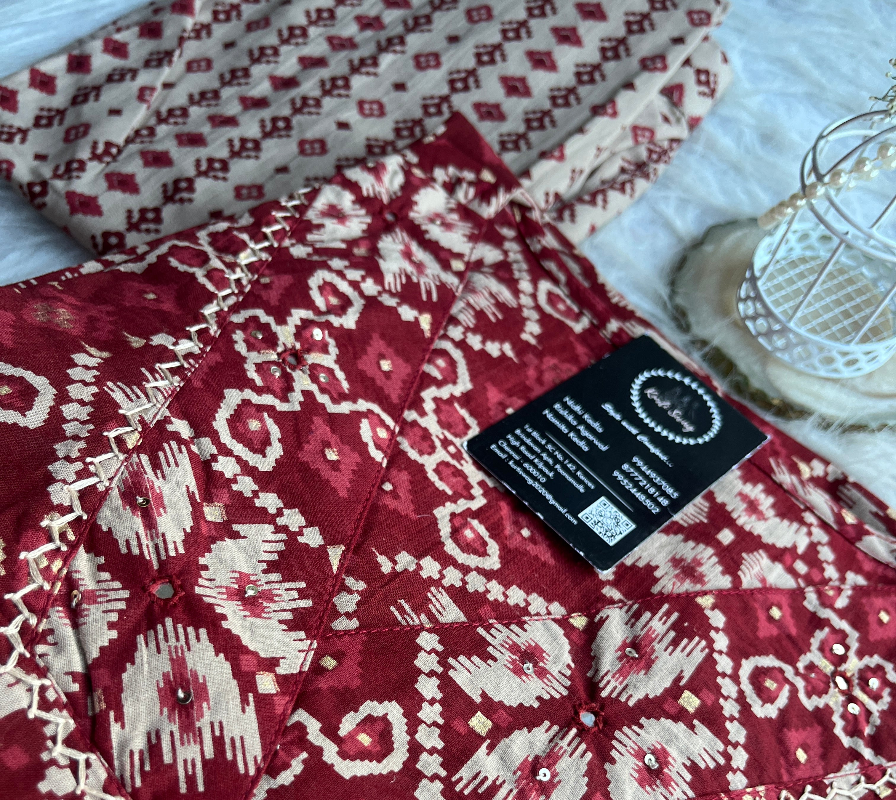 “KIARA” Printed Chinnon Alia Cut Suit Set 💕
