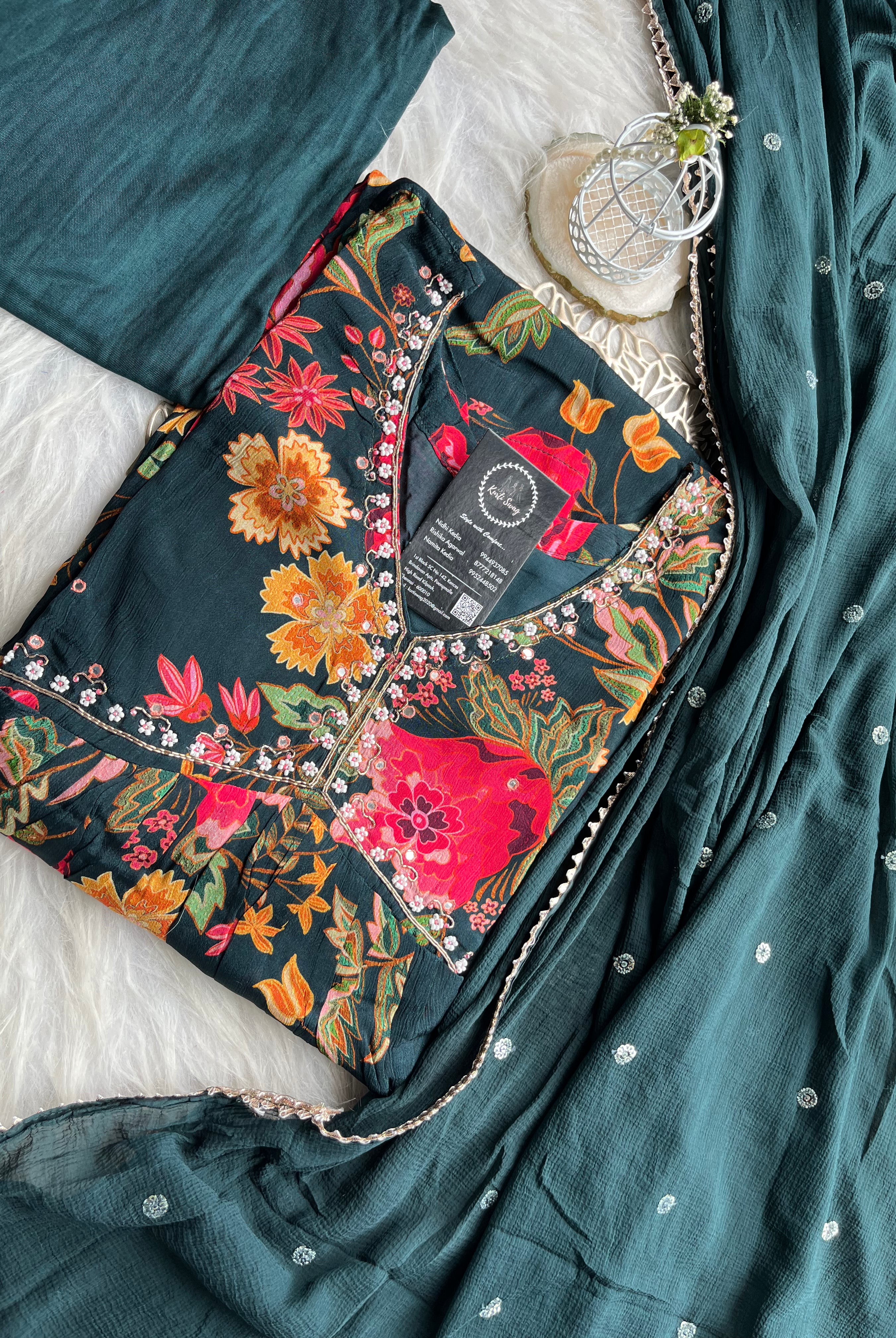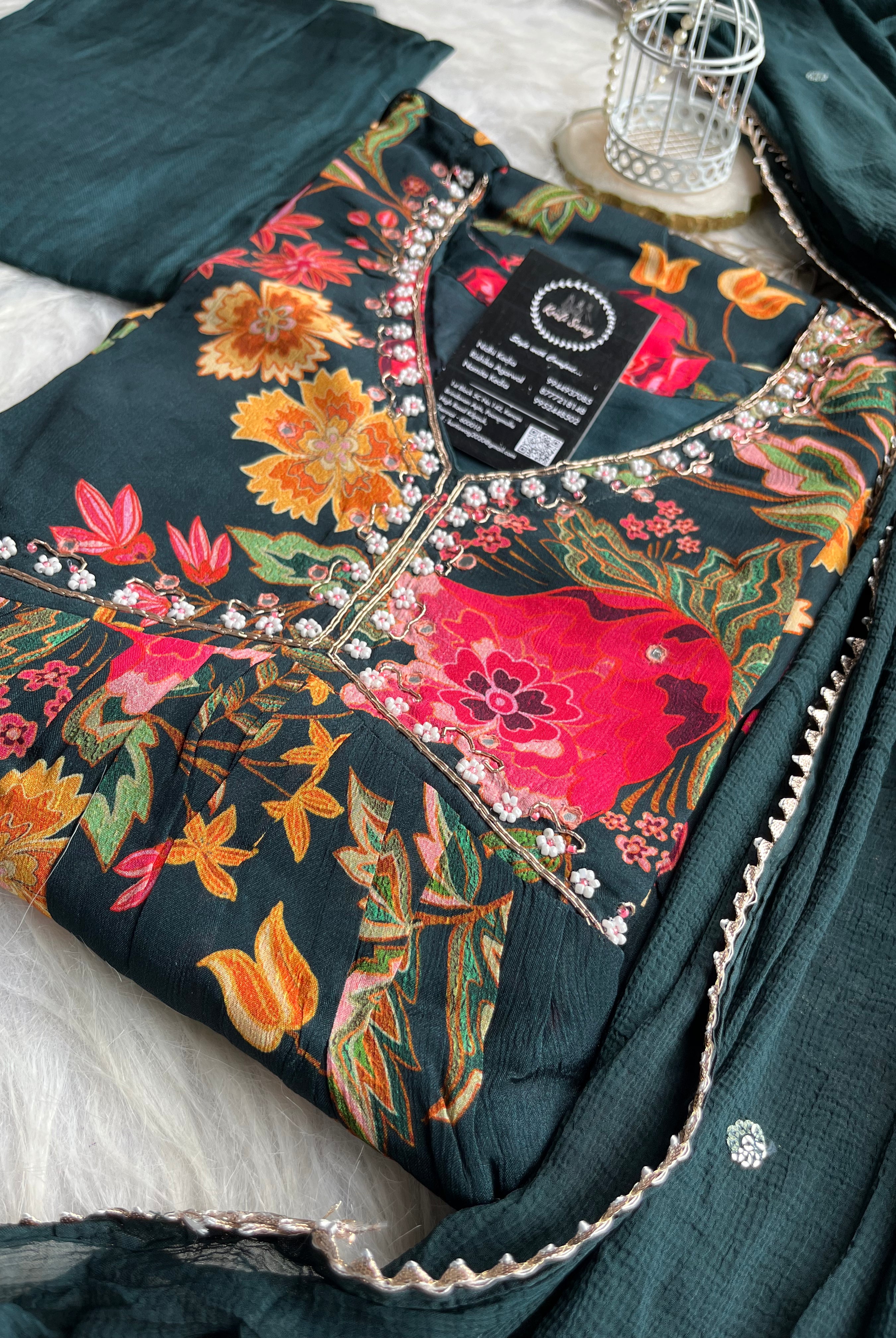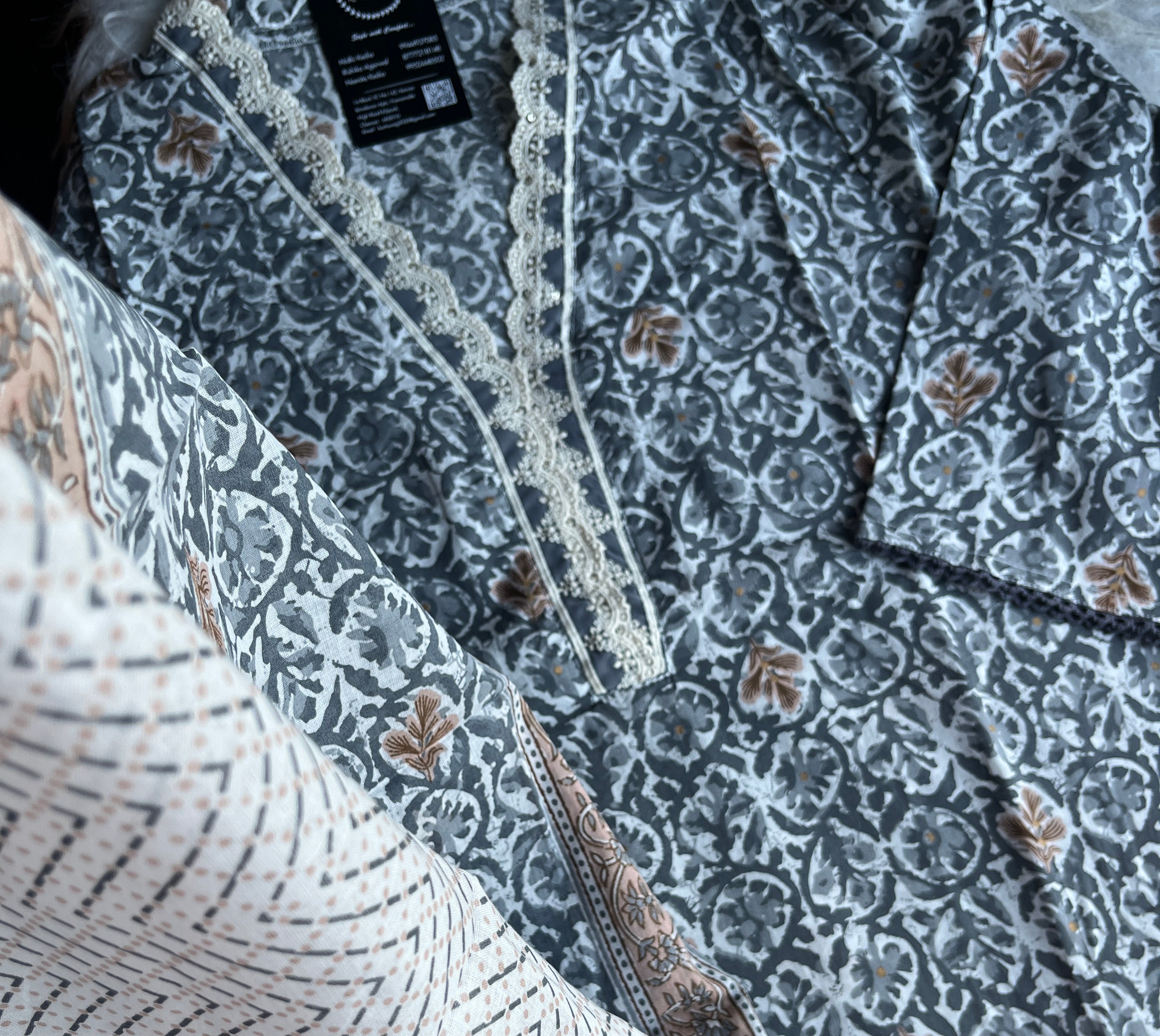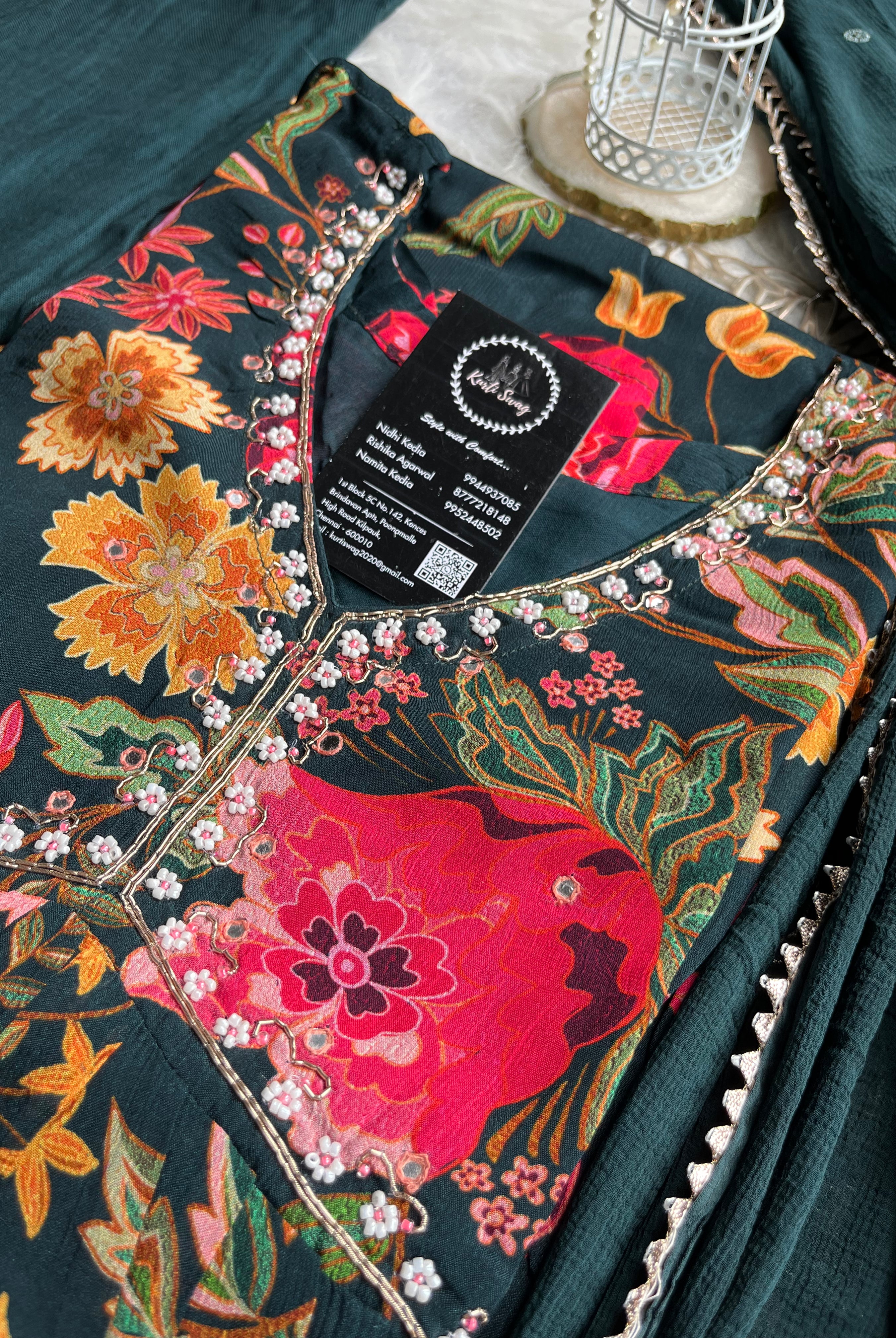 “KIARA” Printed Chinnon Alia Cut Suit Set 💕
