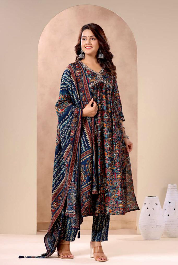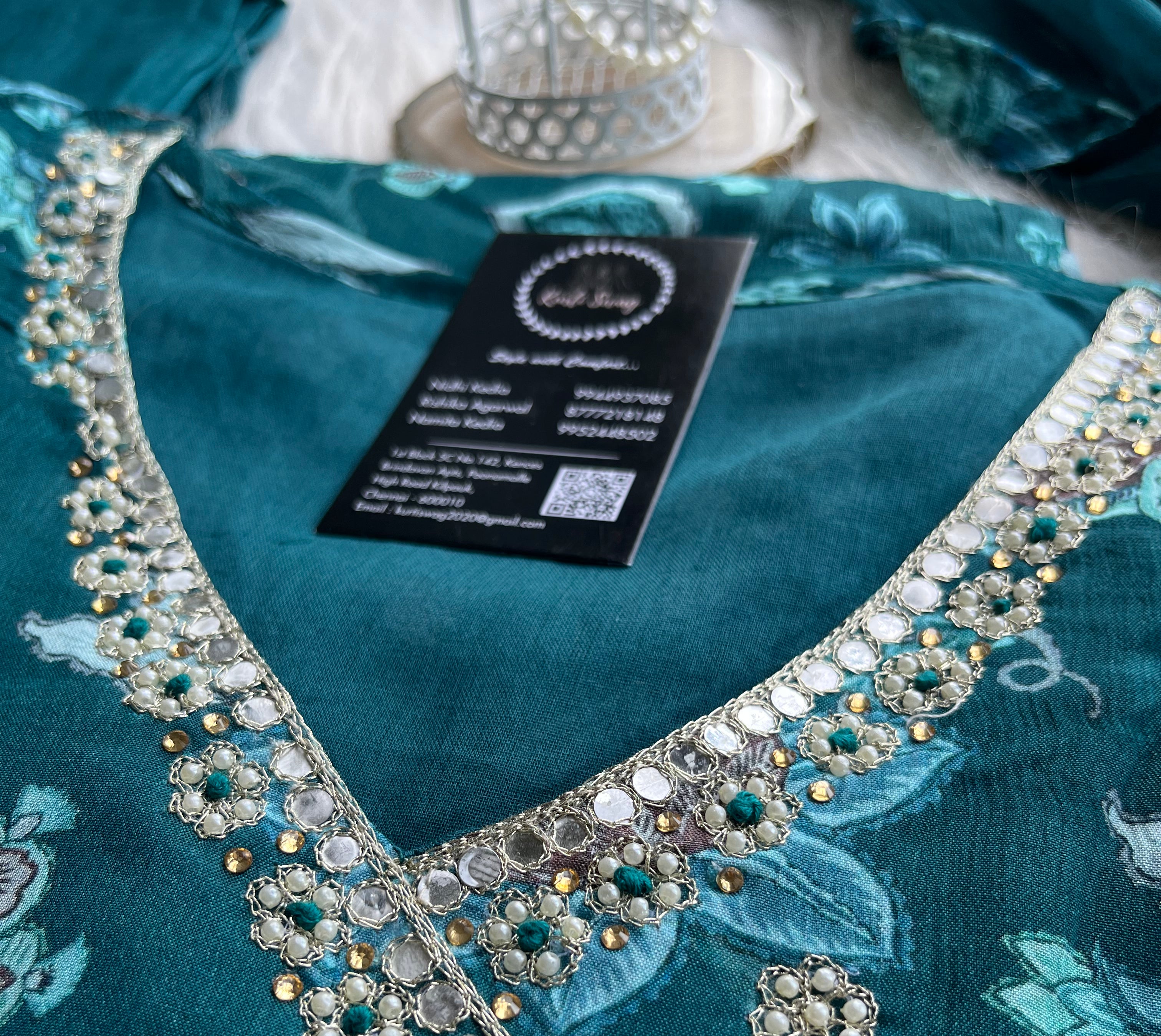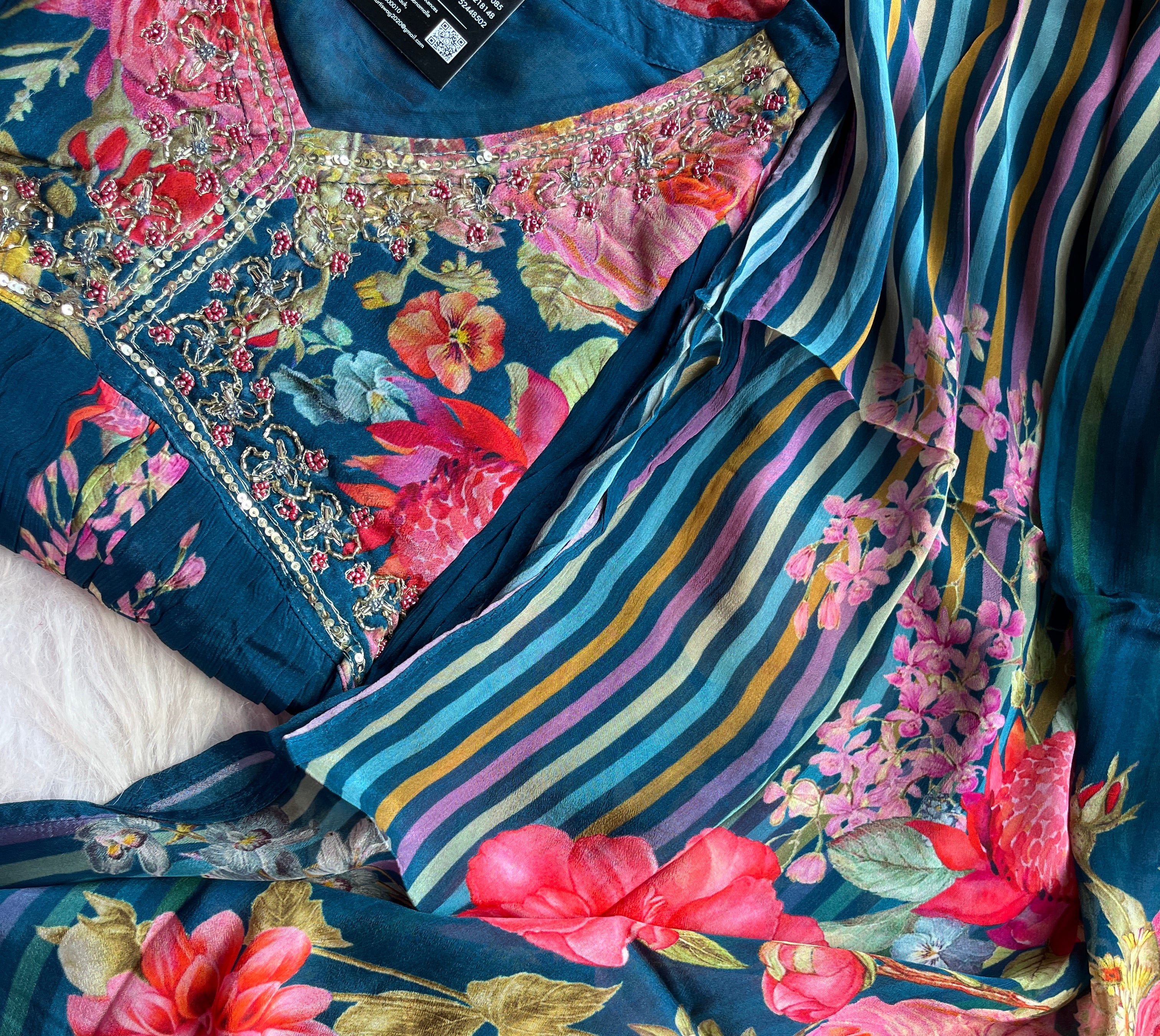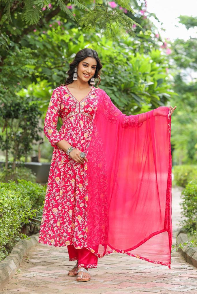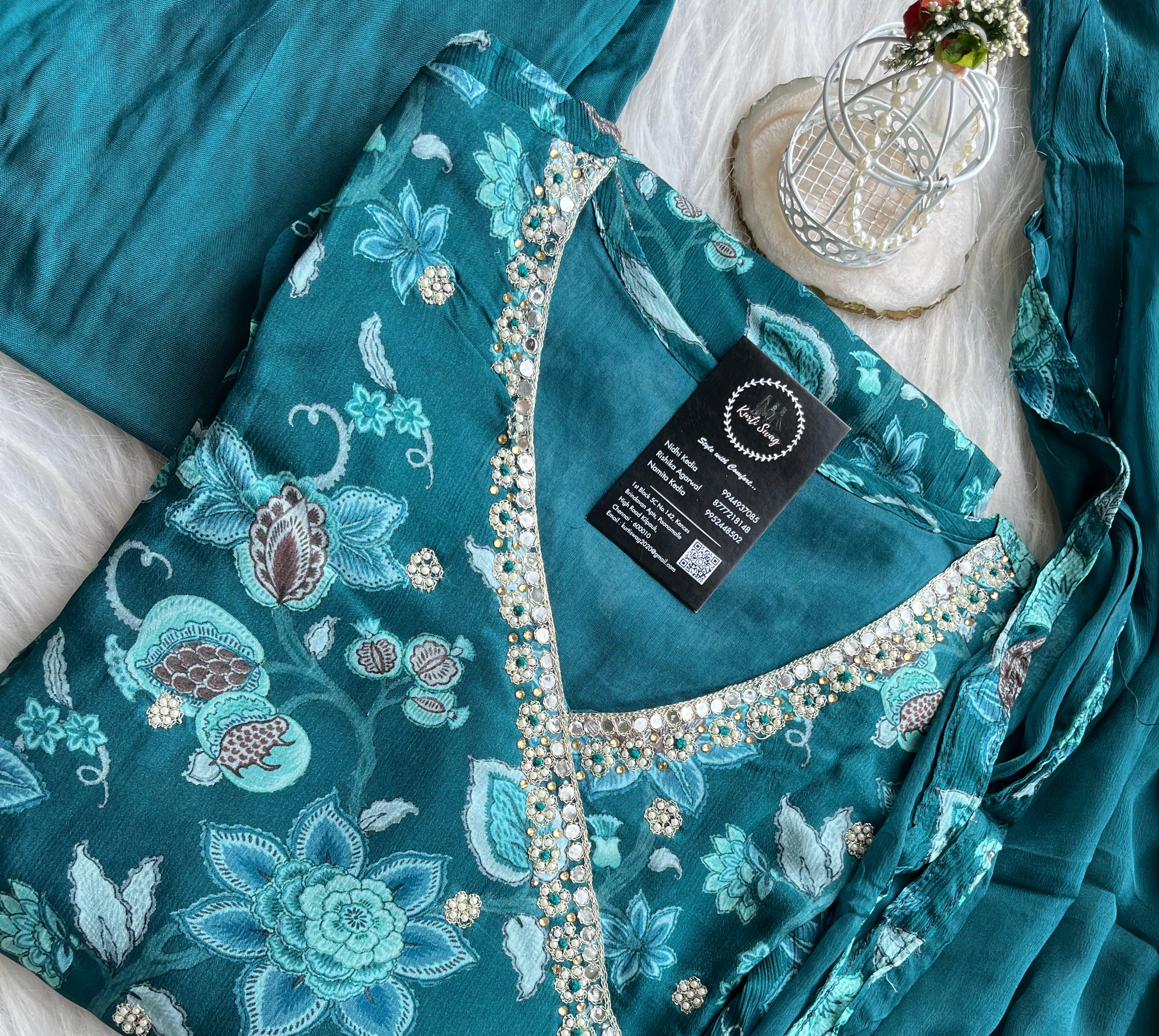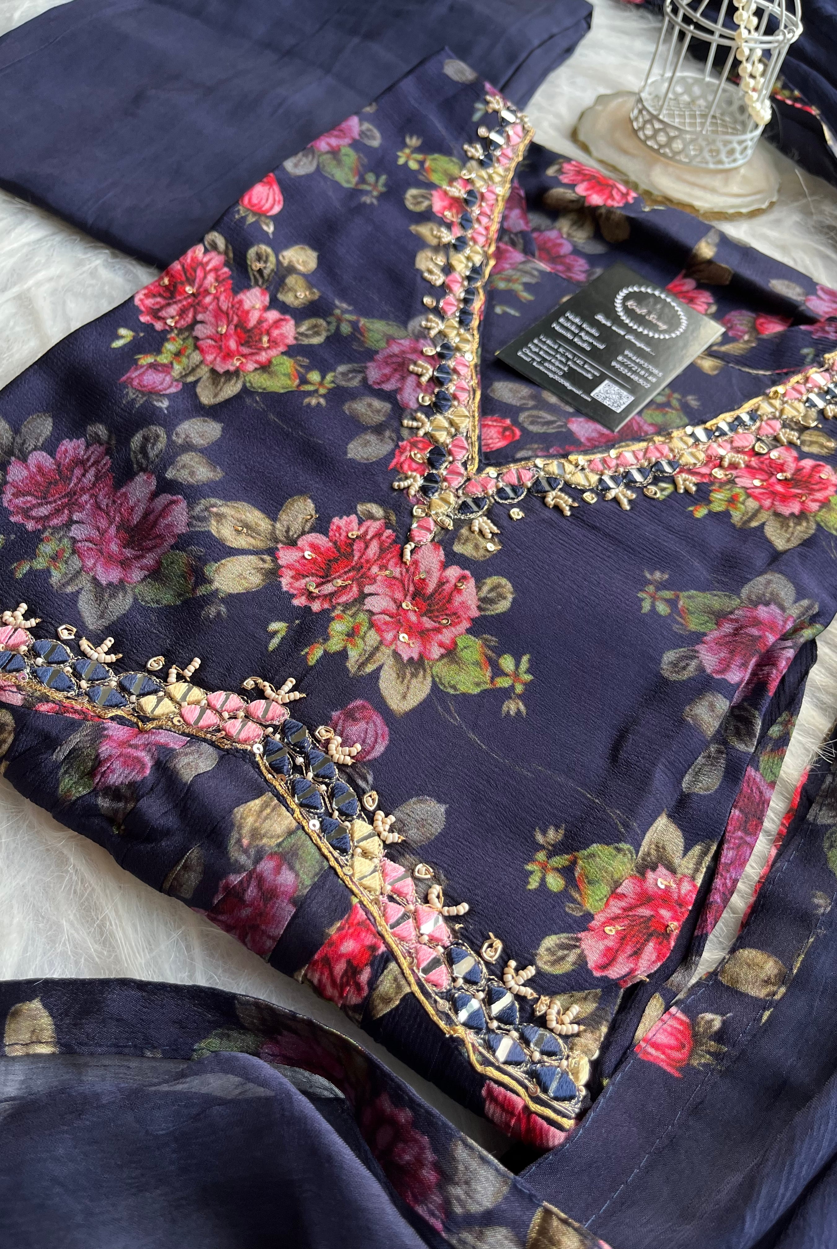 “KIARA” Printed Chinnon Alia Cut Suit Set 💕