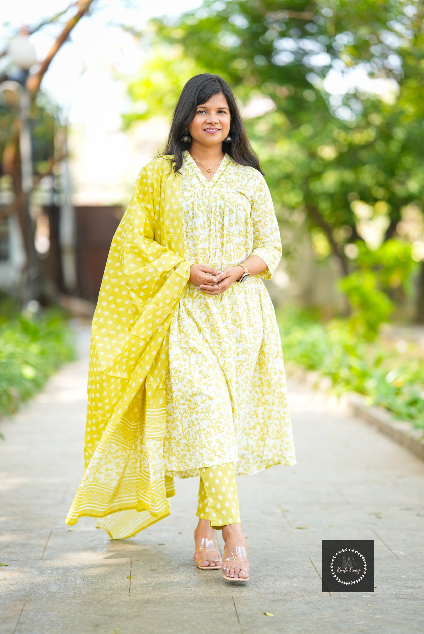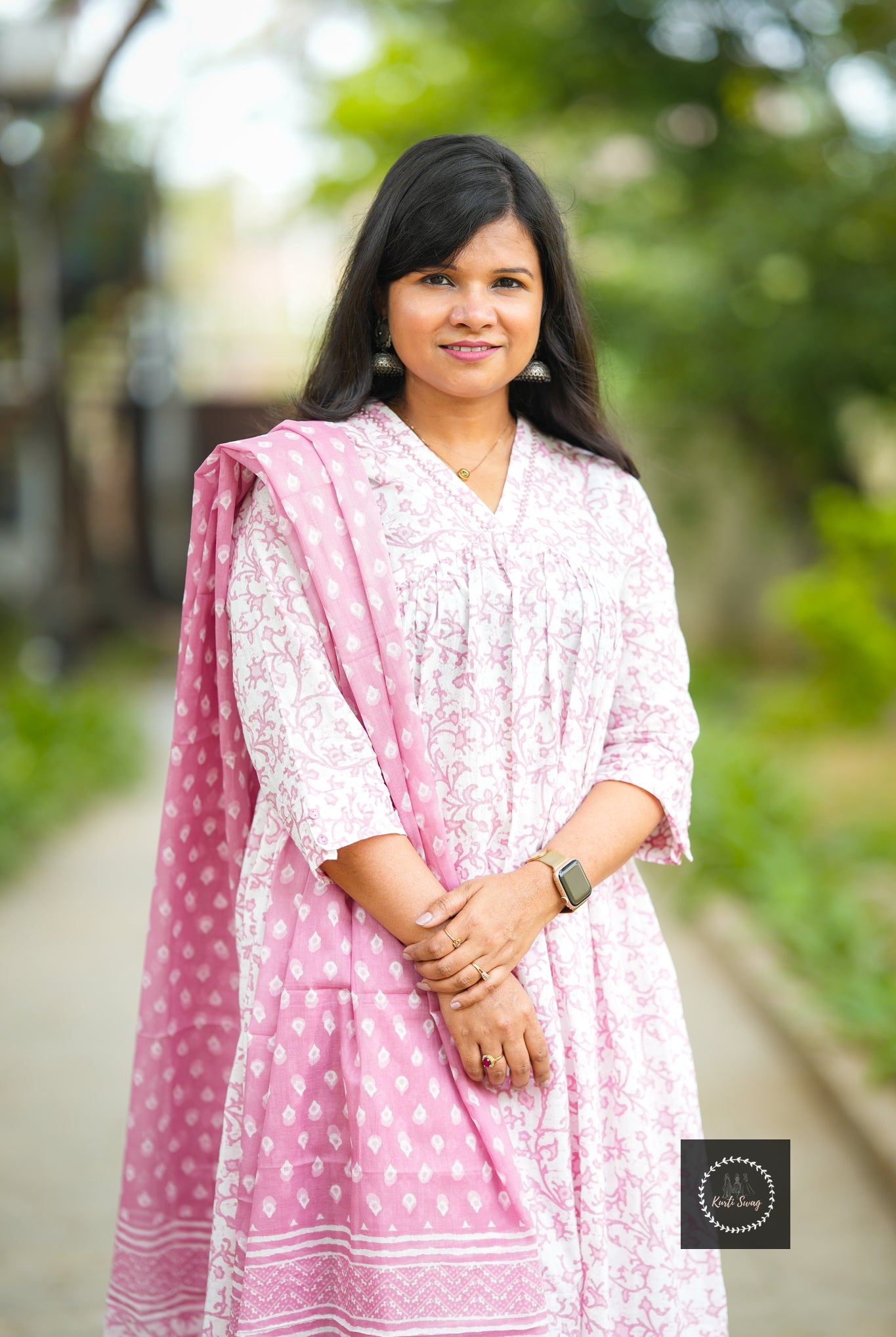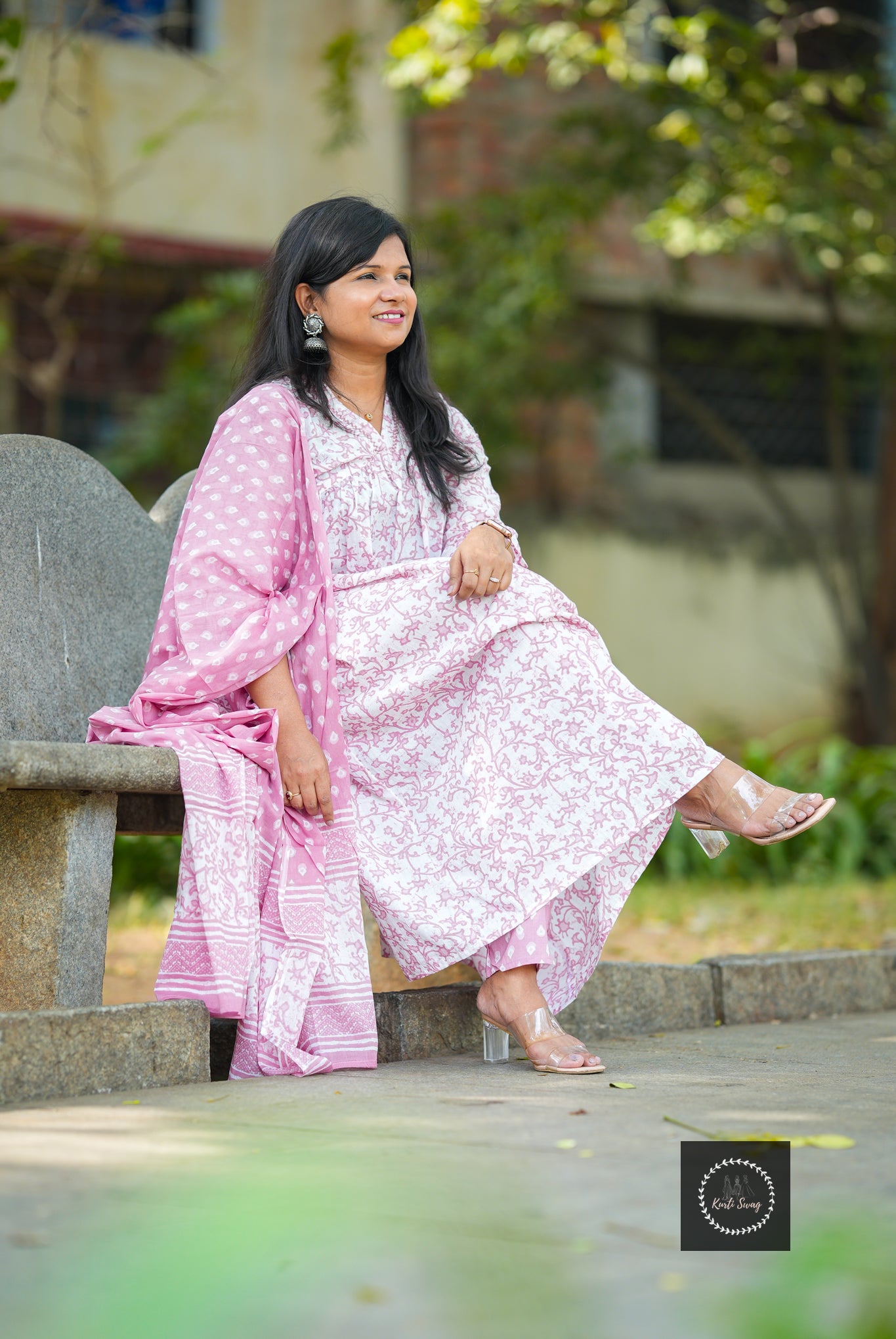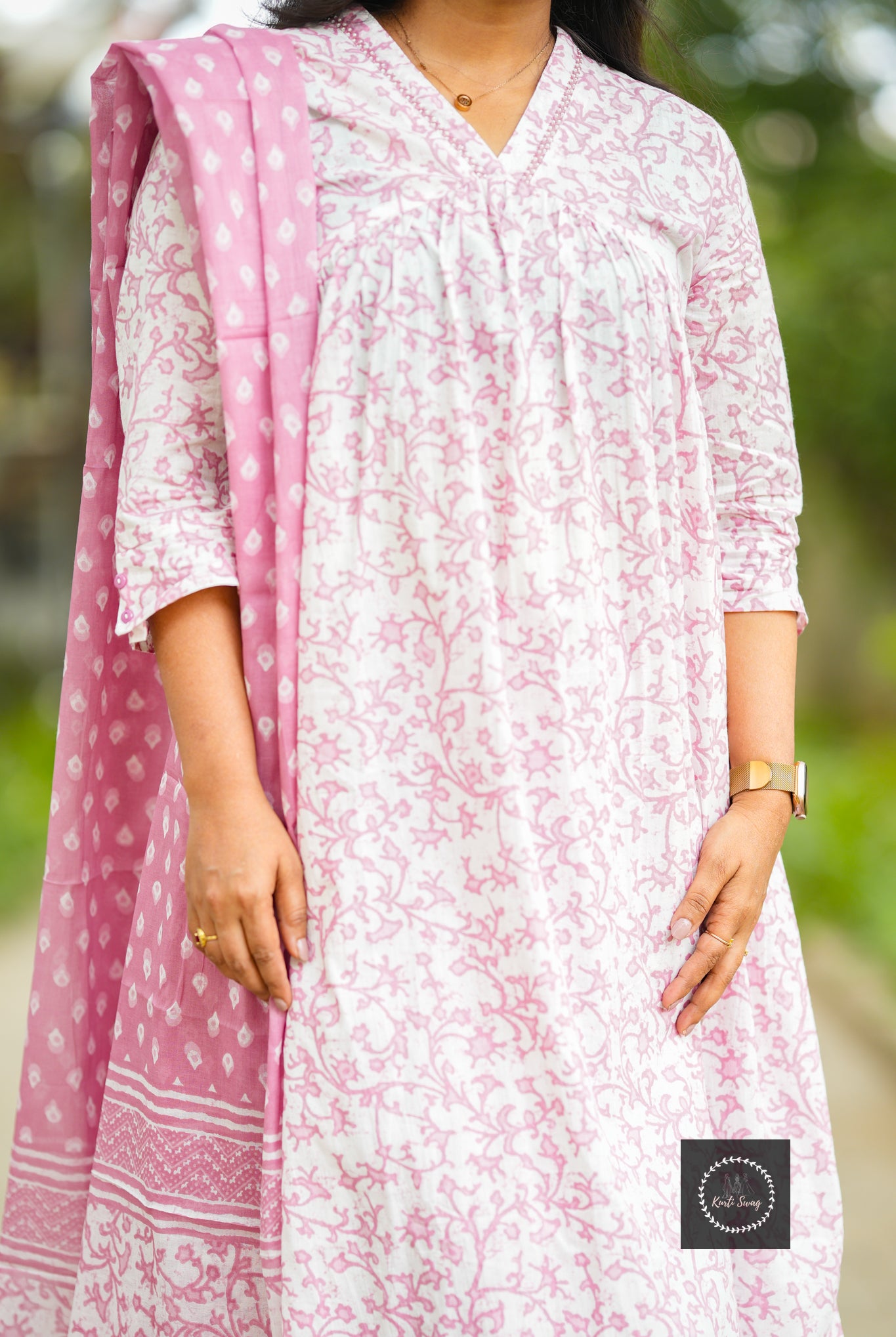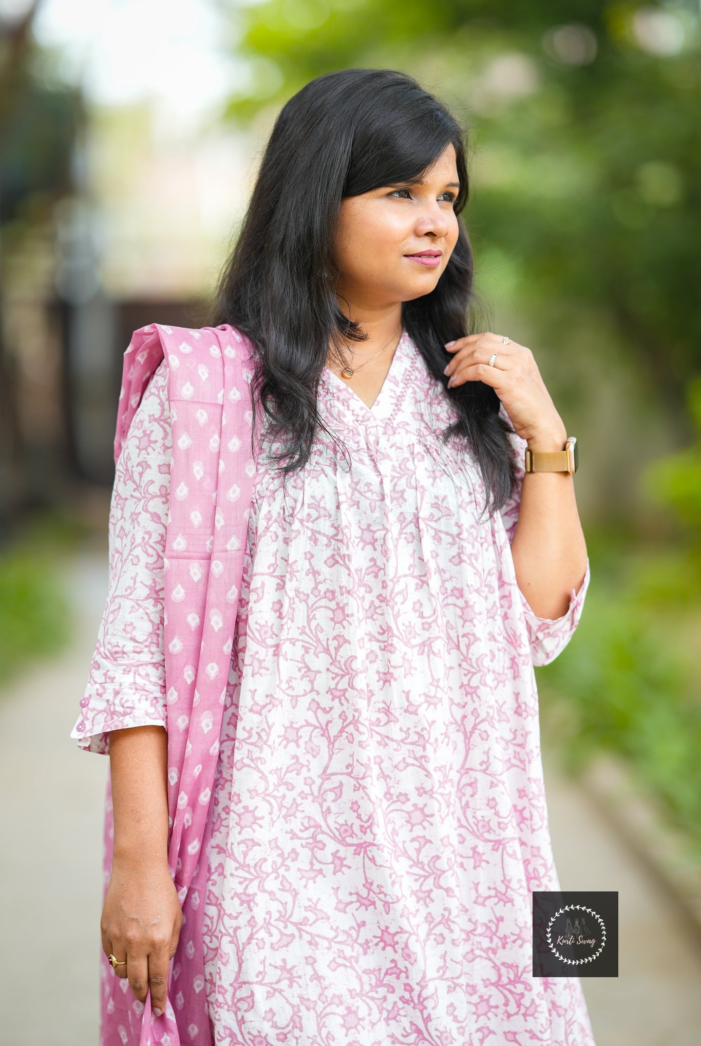 “LAARA” Summer Cotton A Line Kurti Pant Set With Pockets✨💕