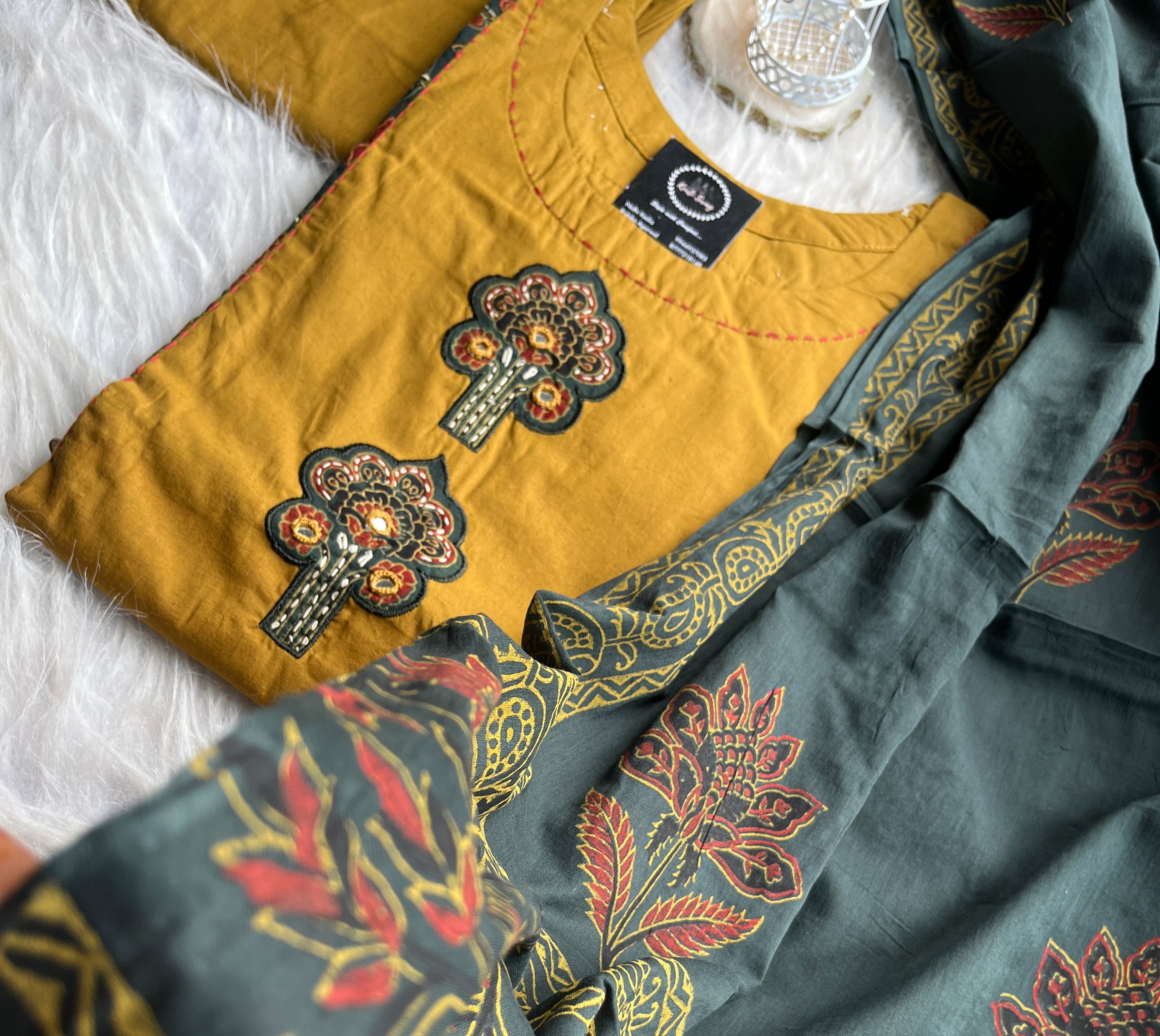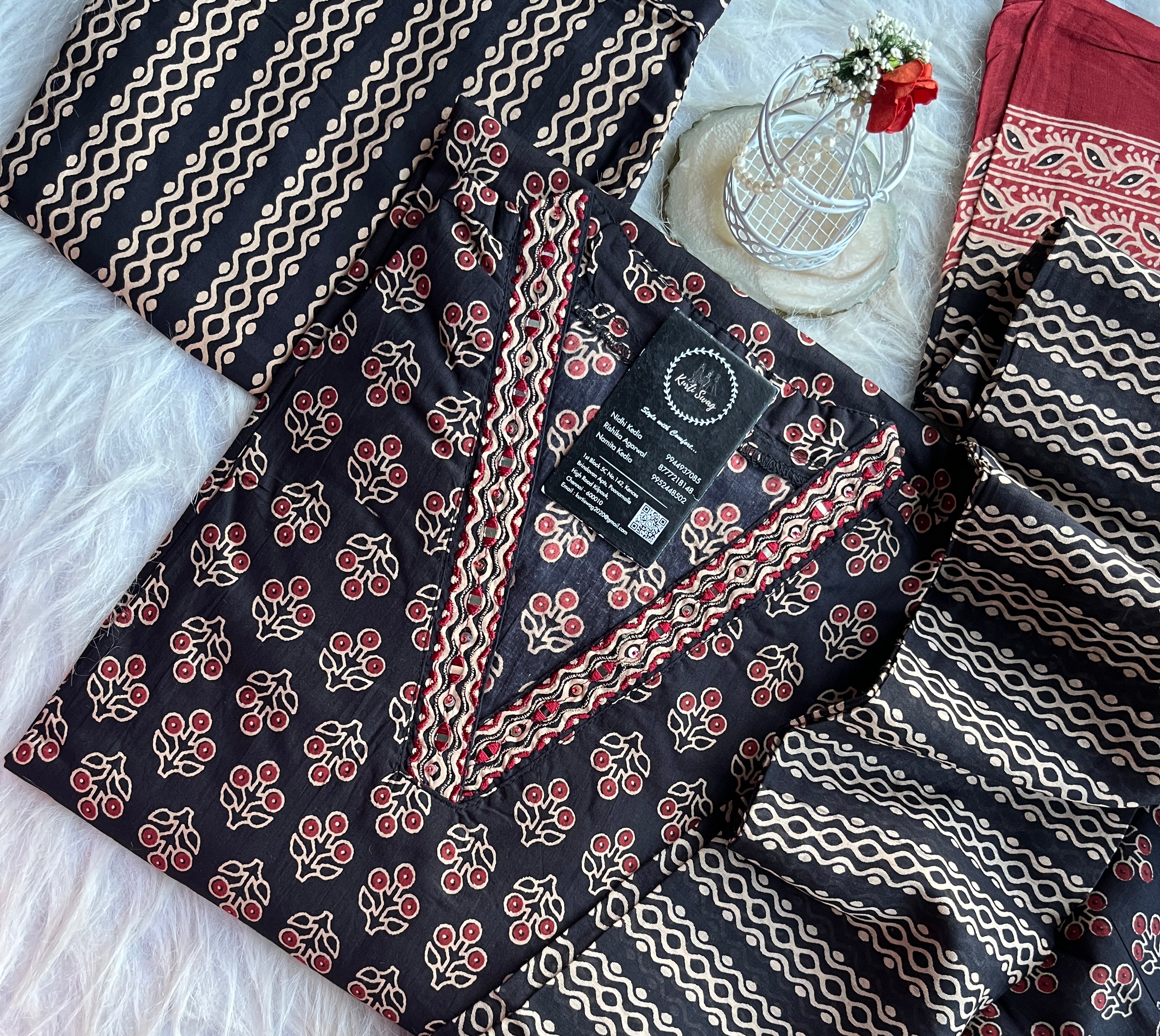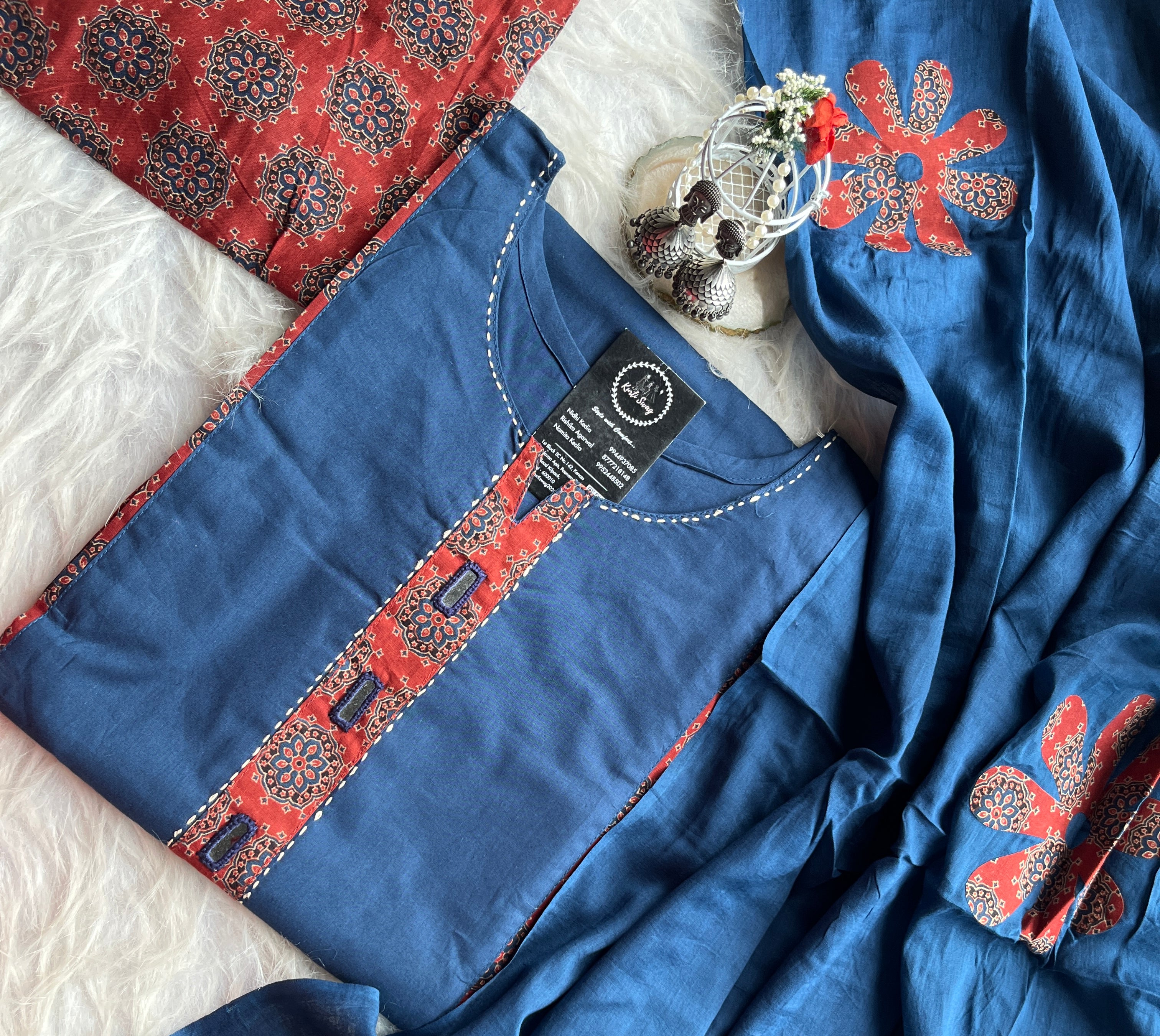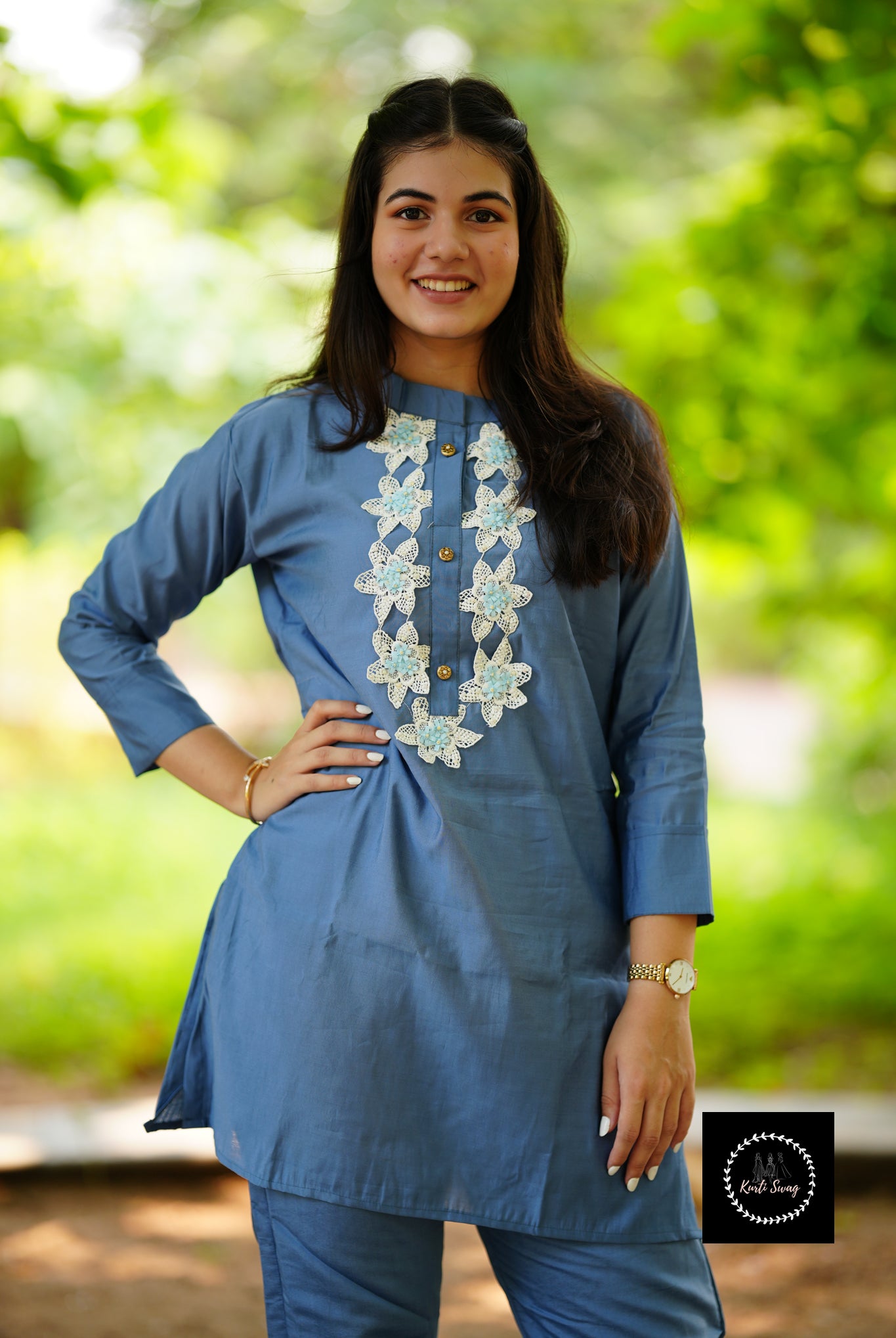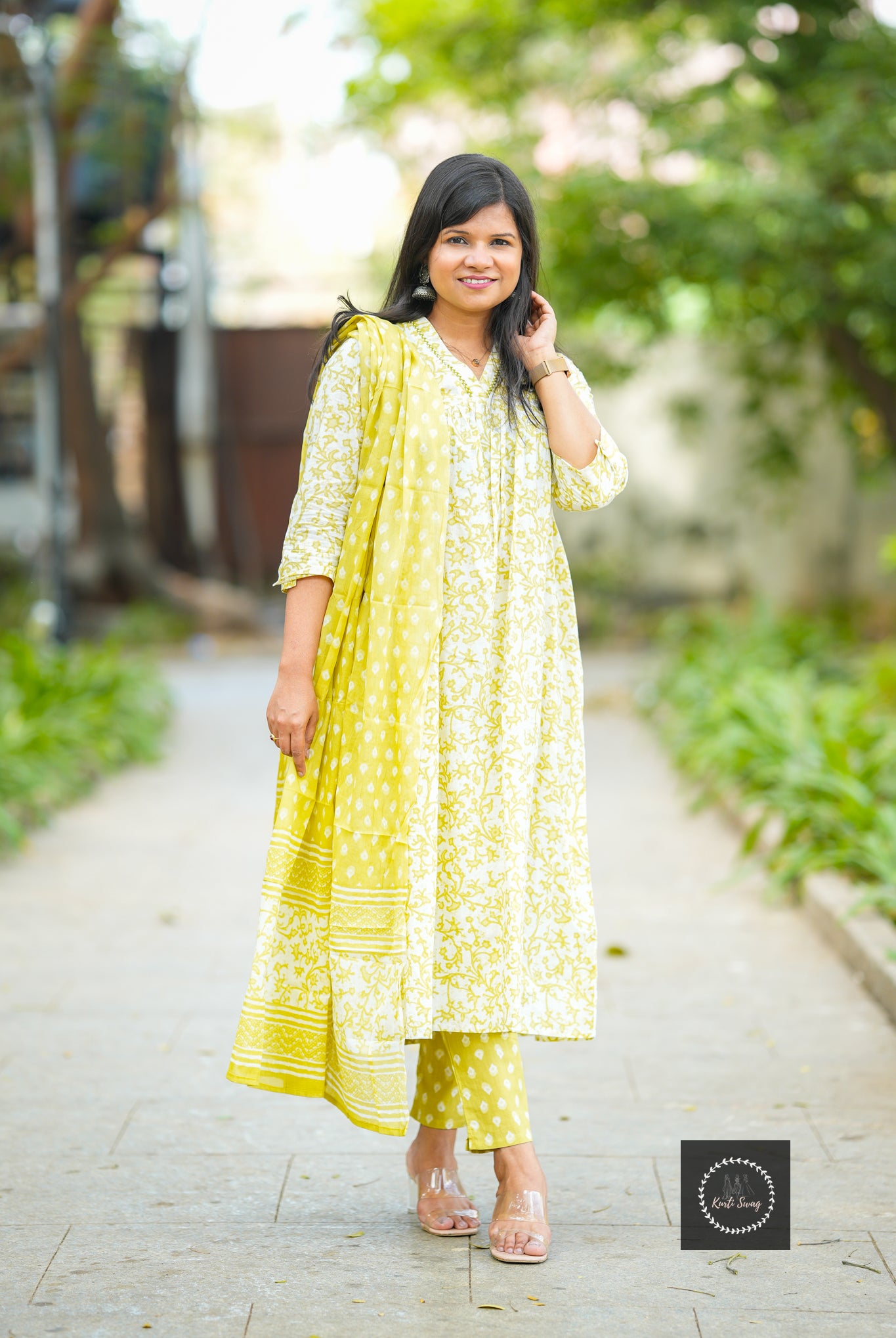 “LAARA” Summer Cotton A Line Kurti Pant Set With Pockets✨💕