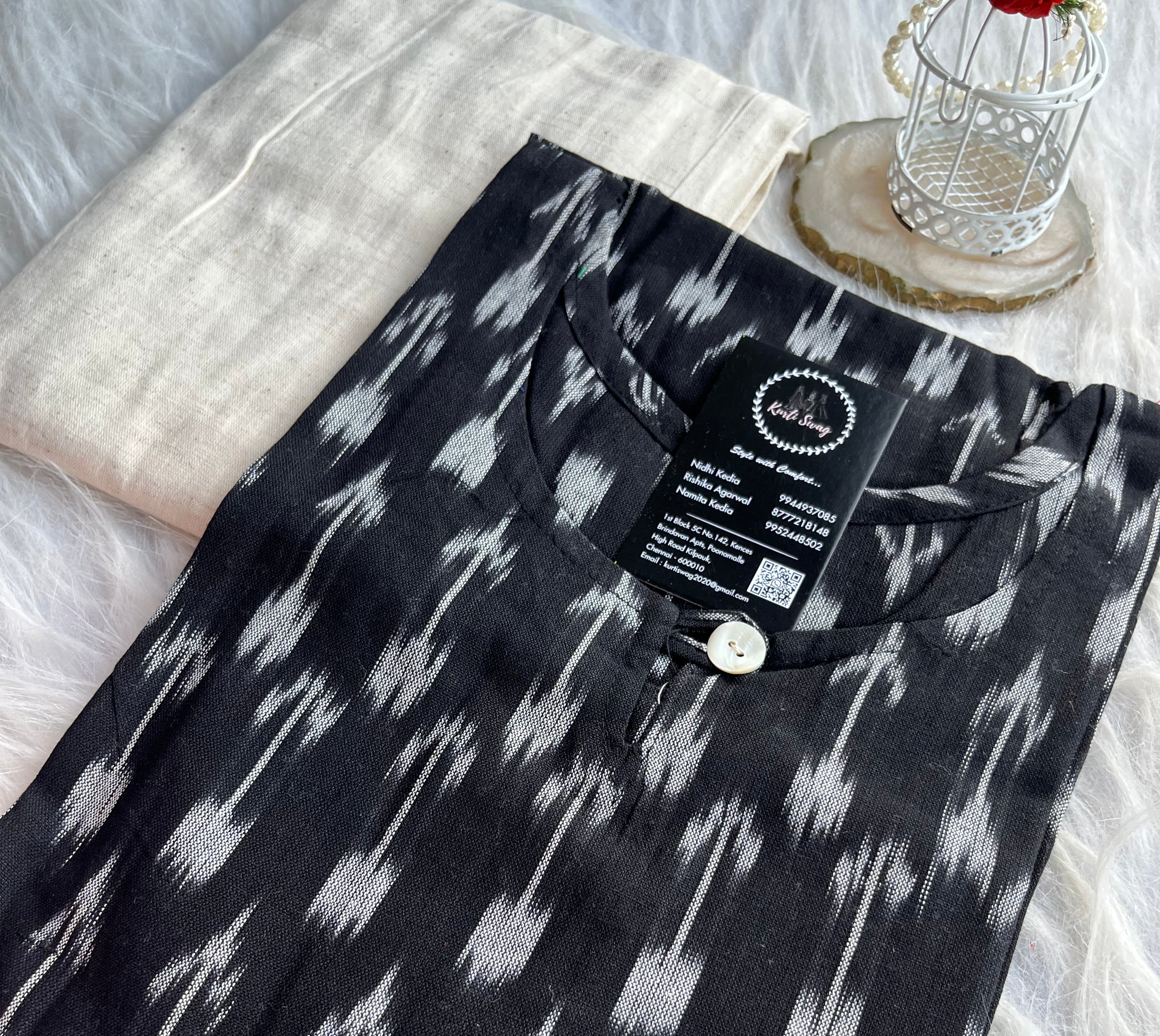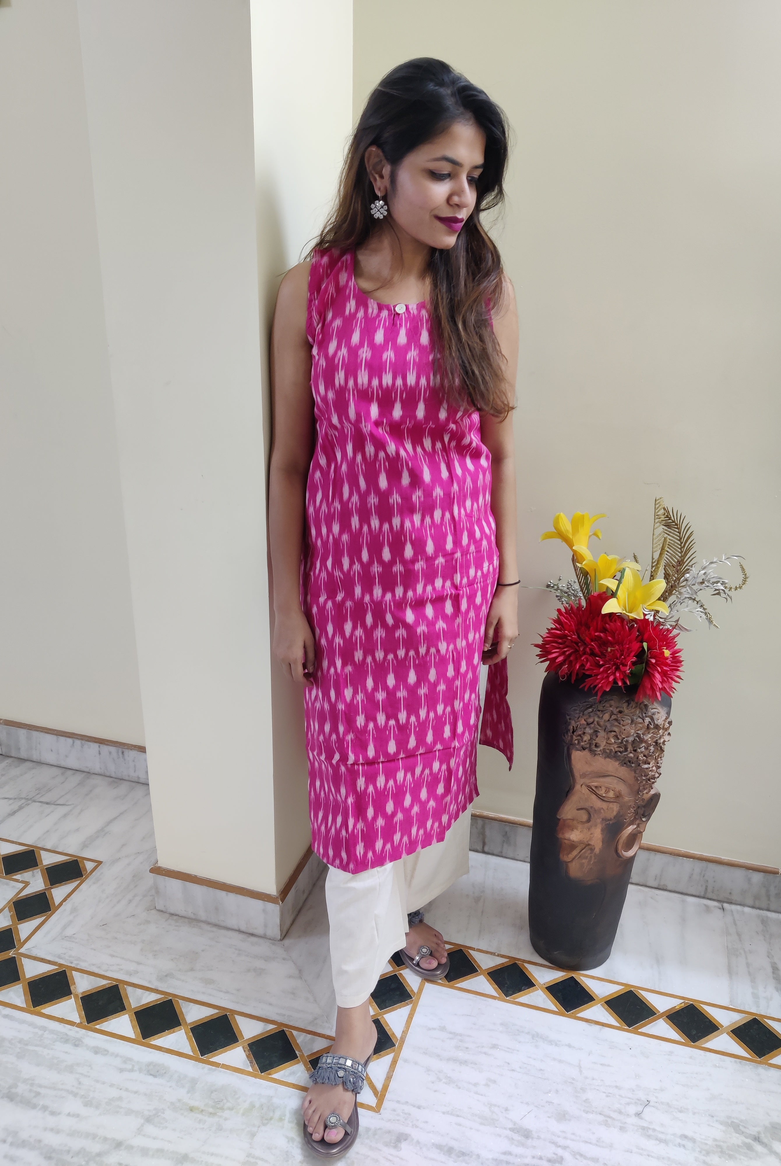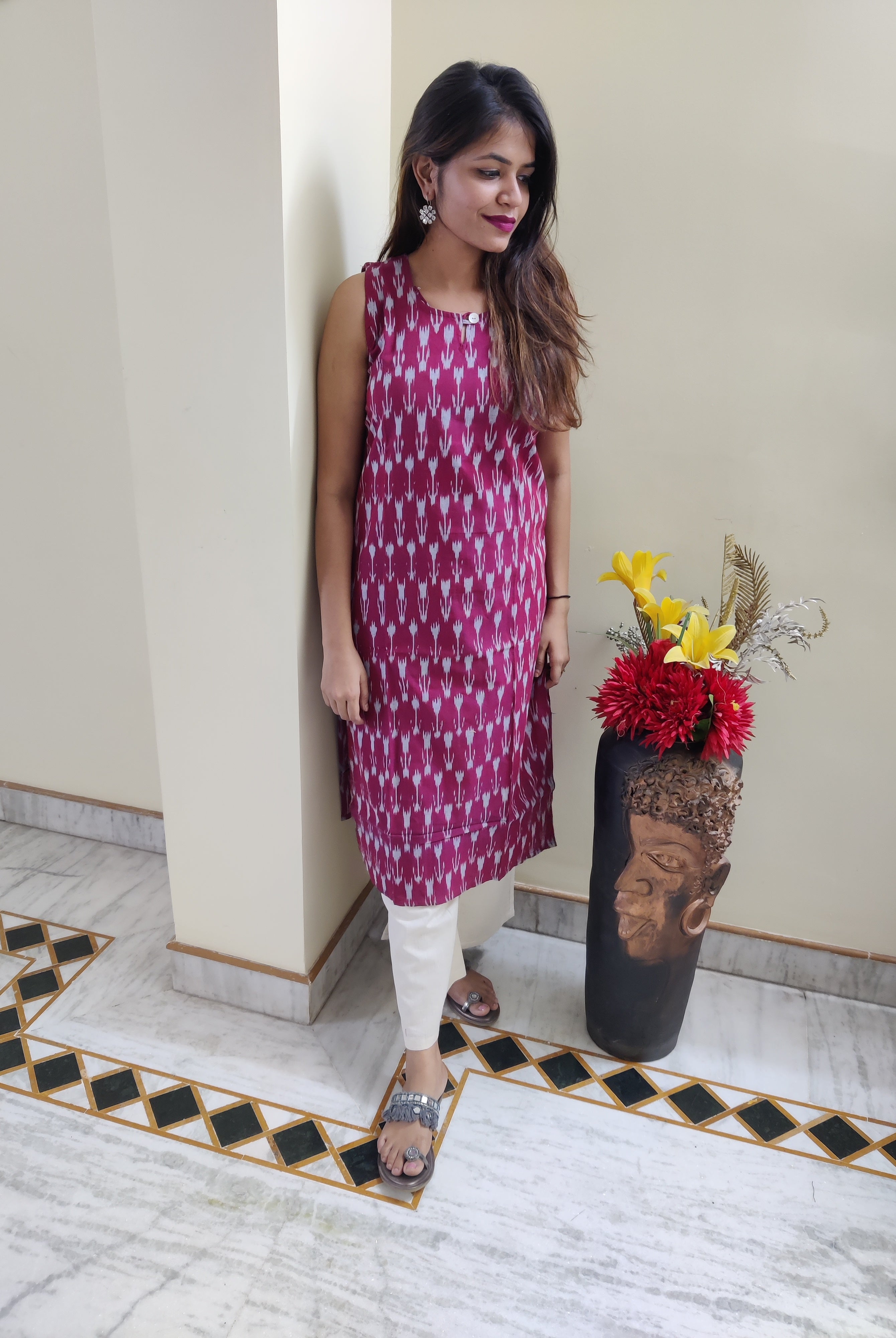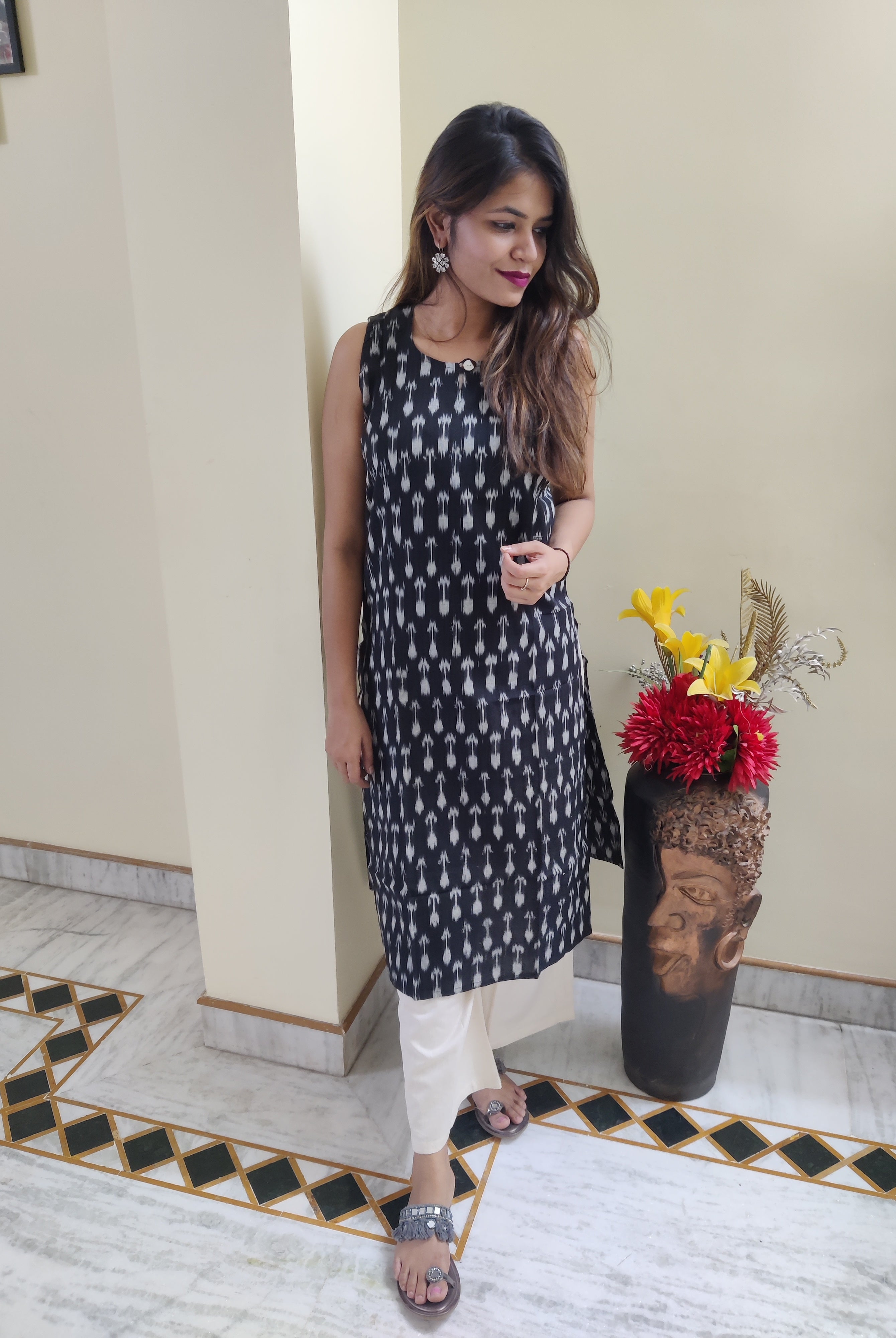 "IKKAT" Sleevless Cotton Kurta with Cotton Pant