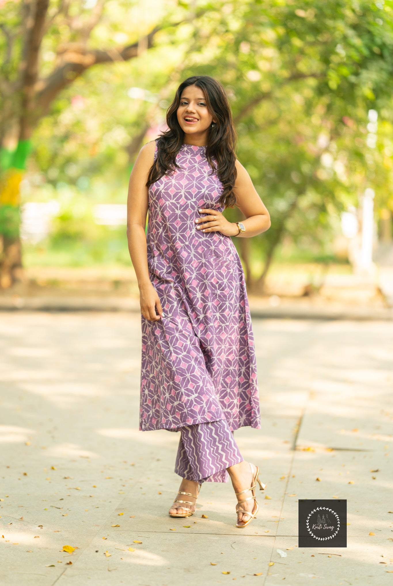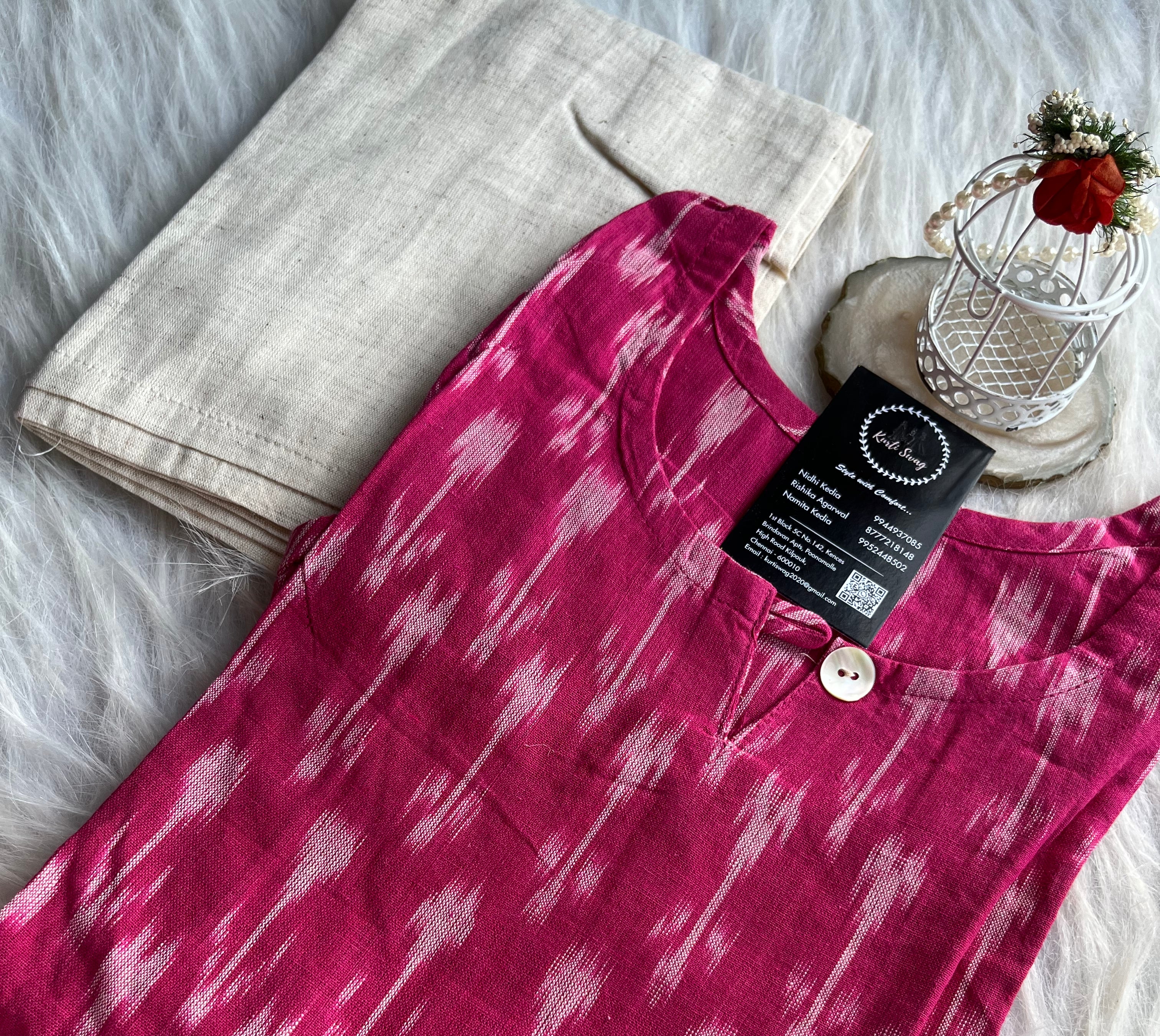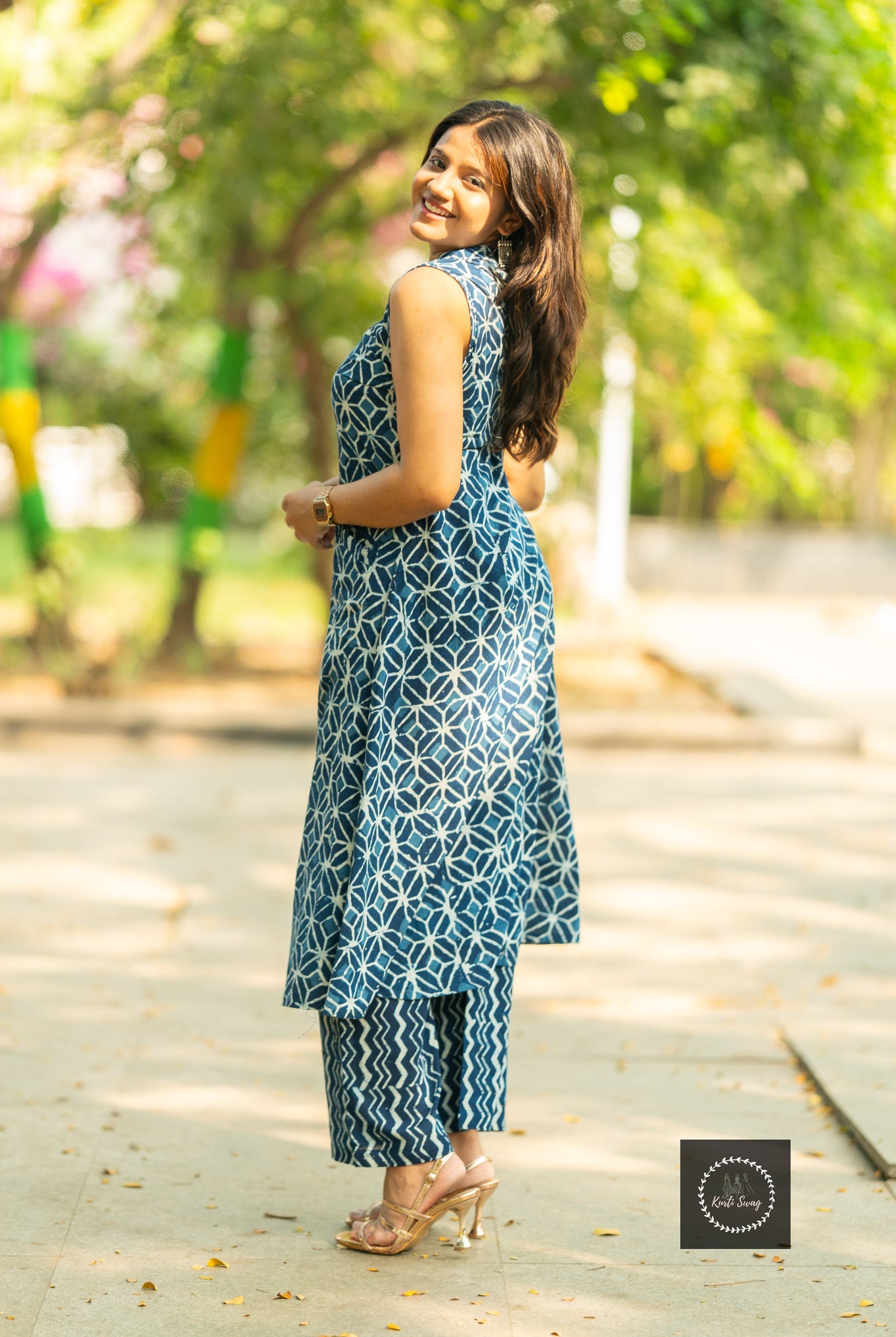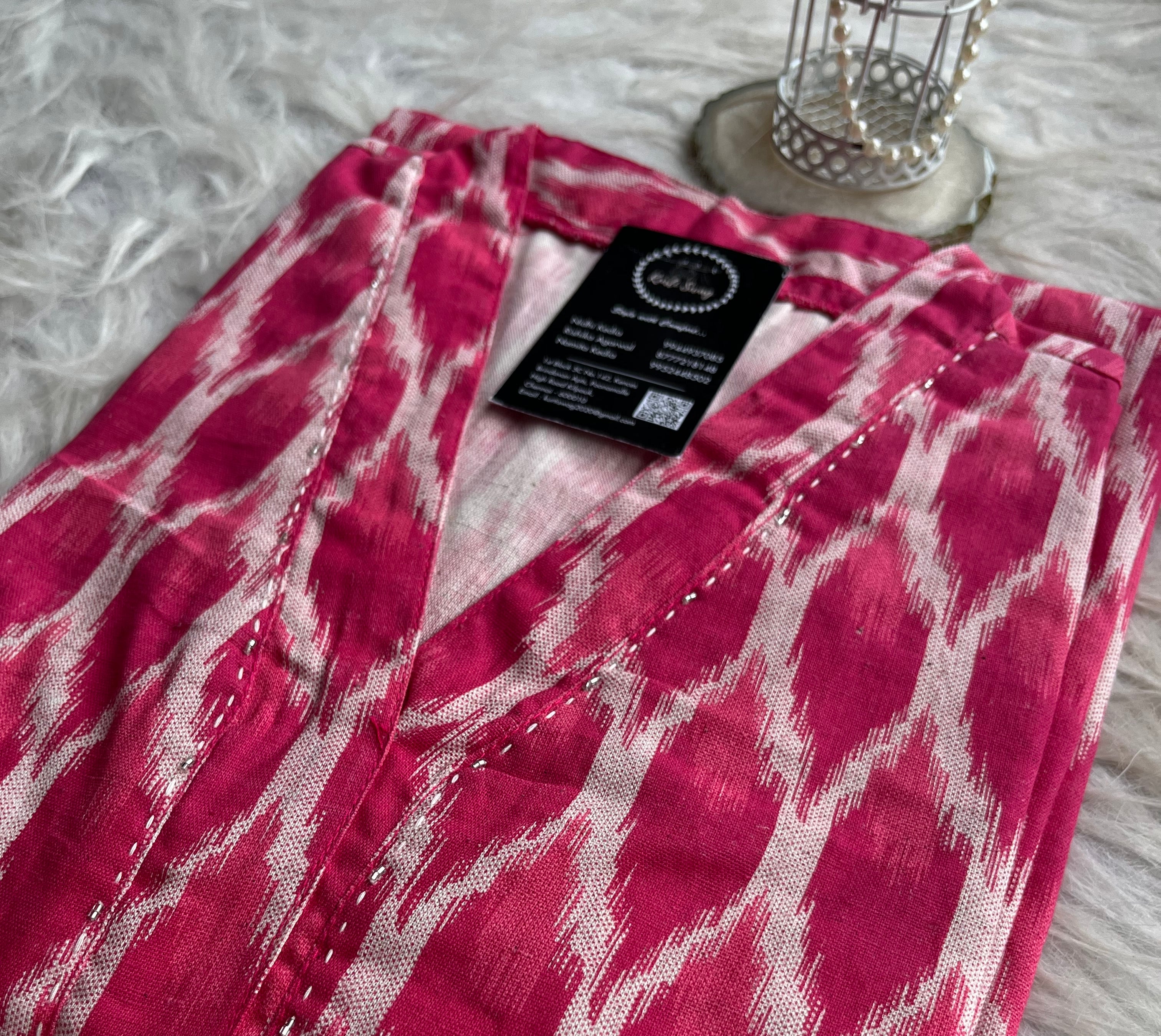 "IKKAT" Sleevless Cotton Kurta with Cotton Pant