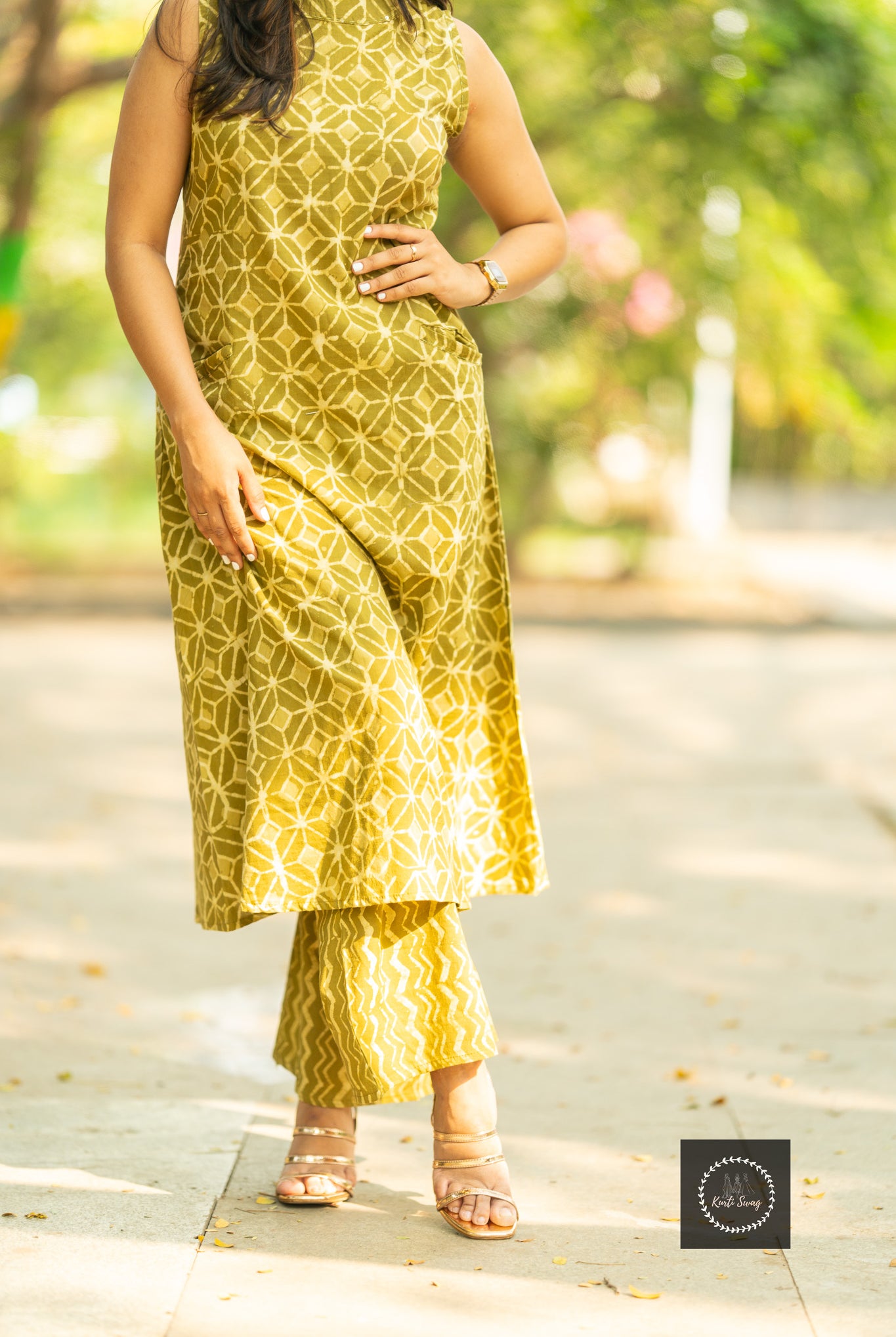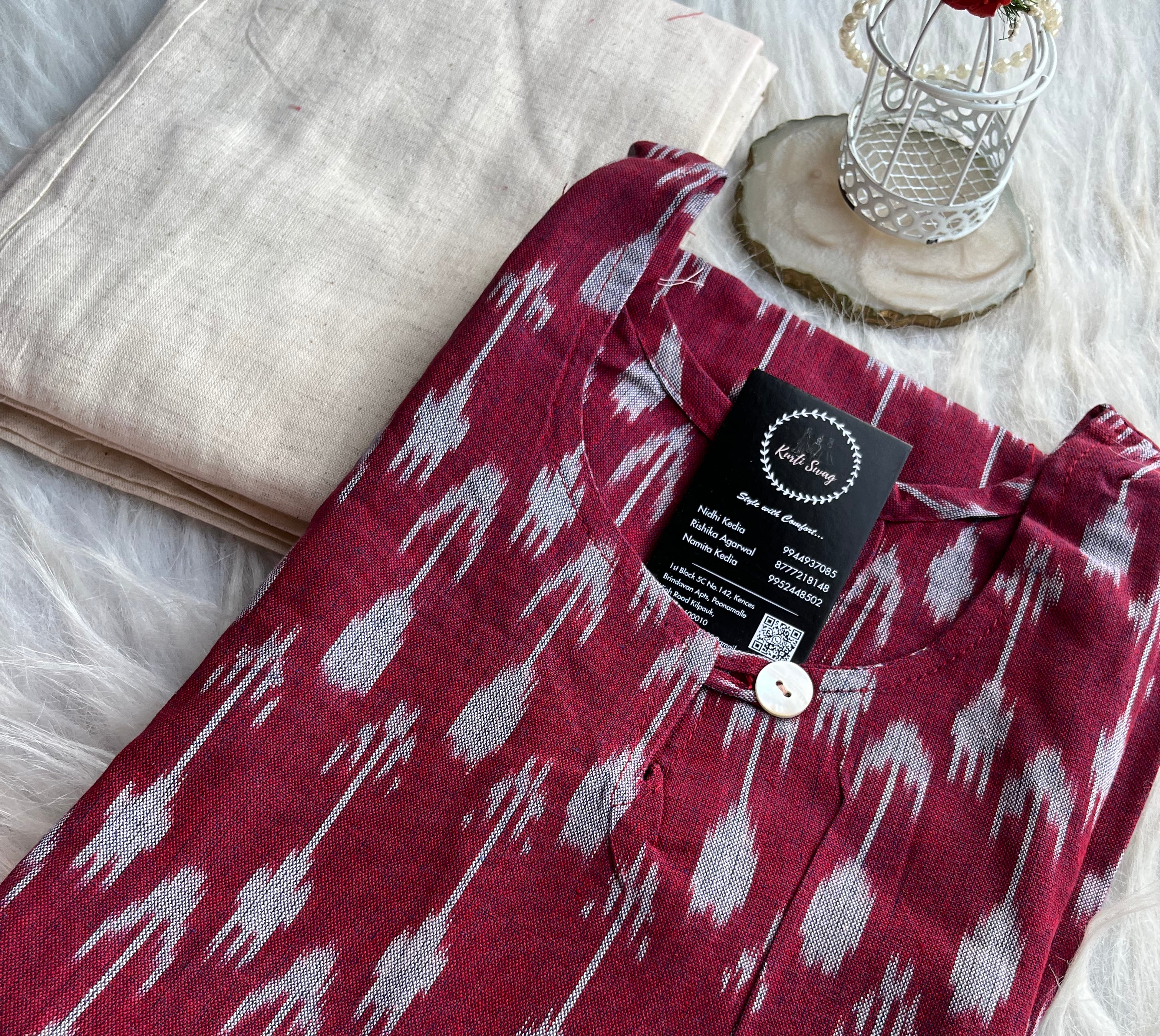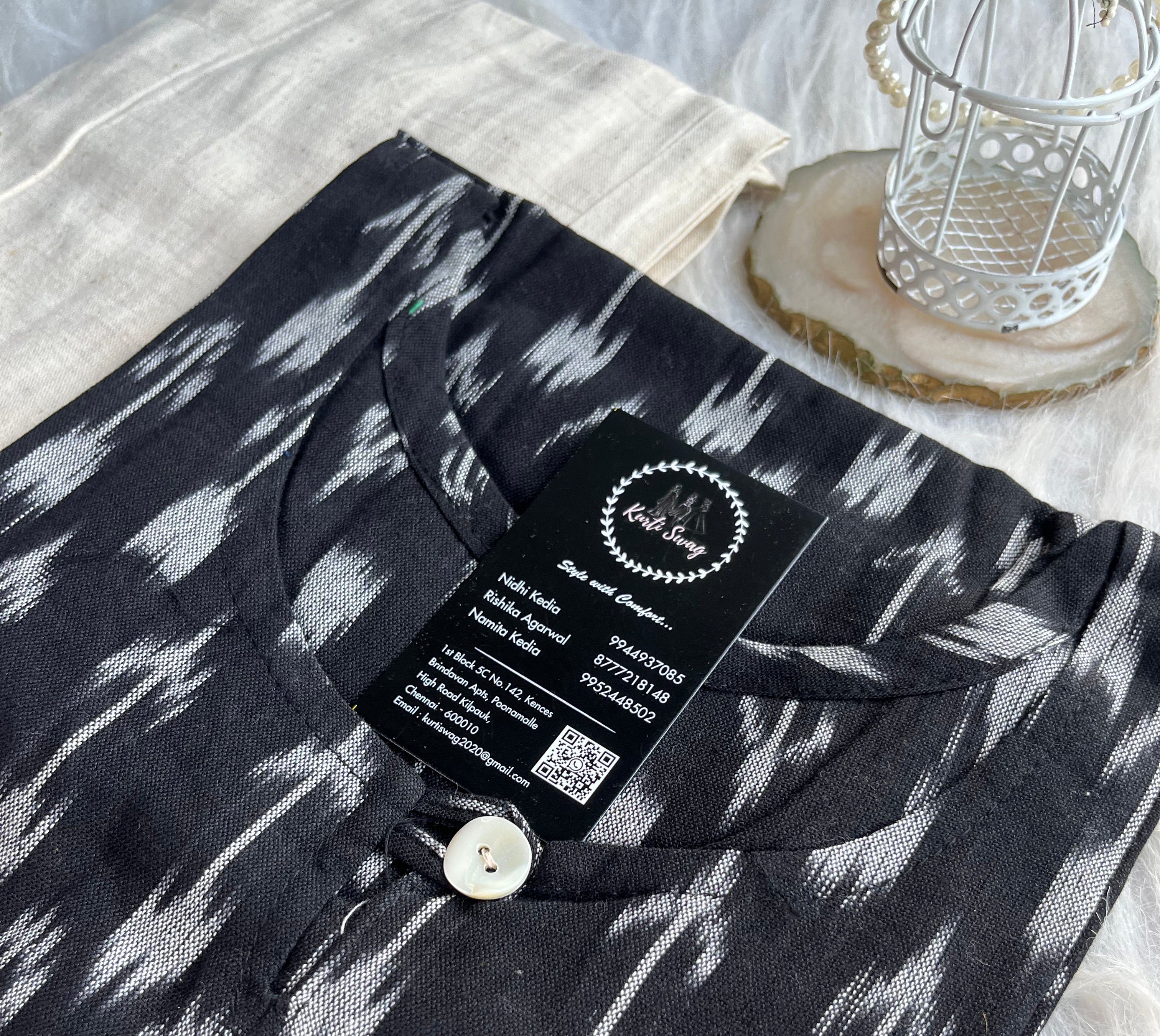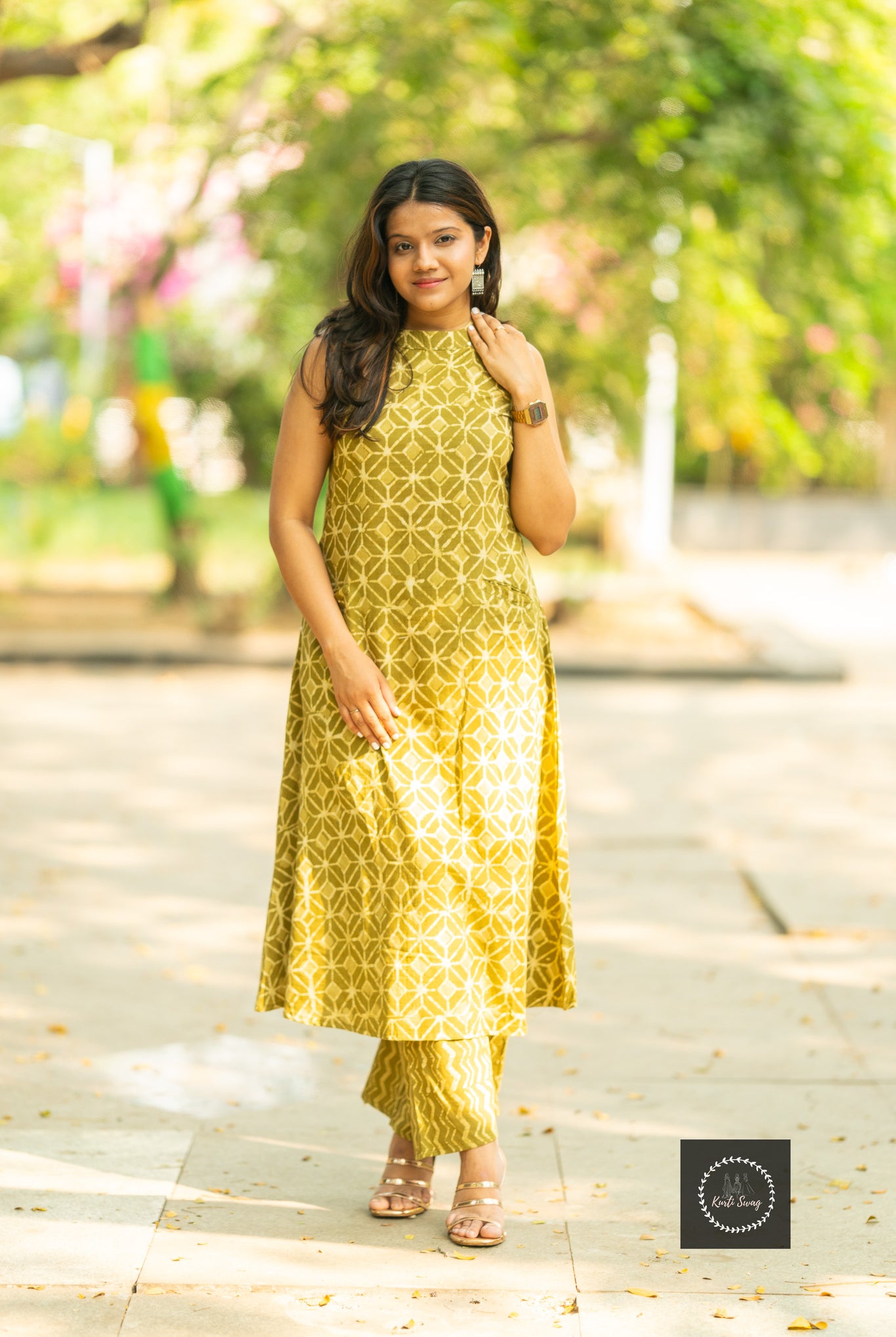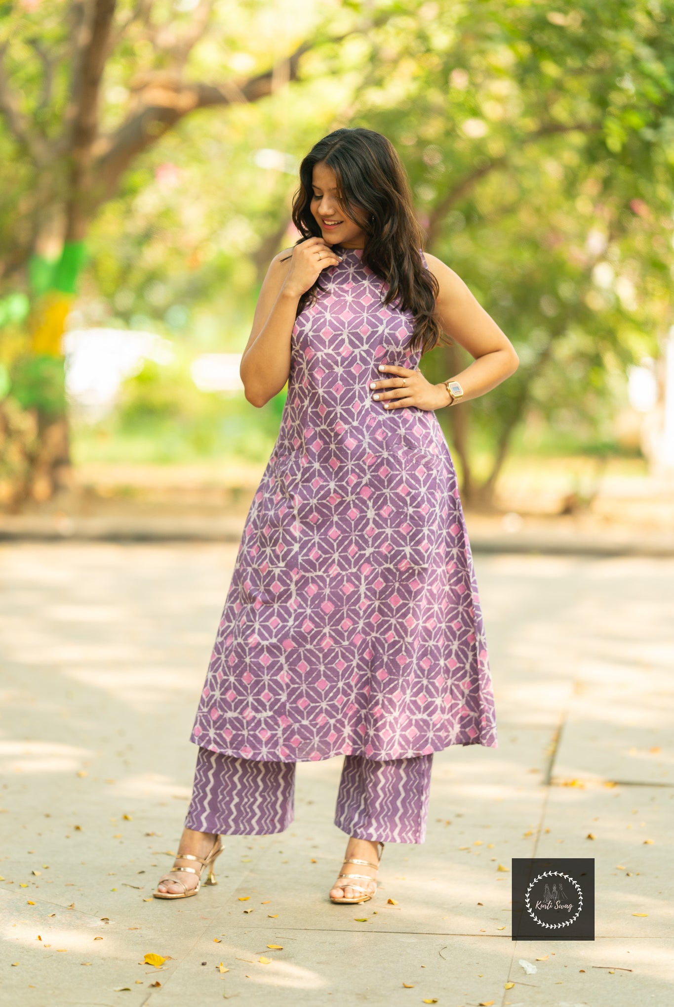 "IKKAT" Sleevless Cotton Kurta with Cotton Pant
