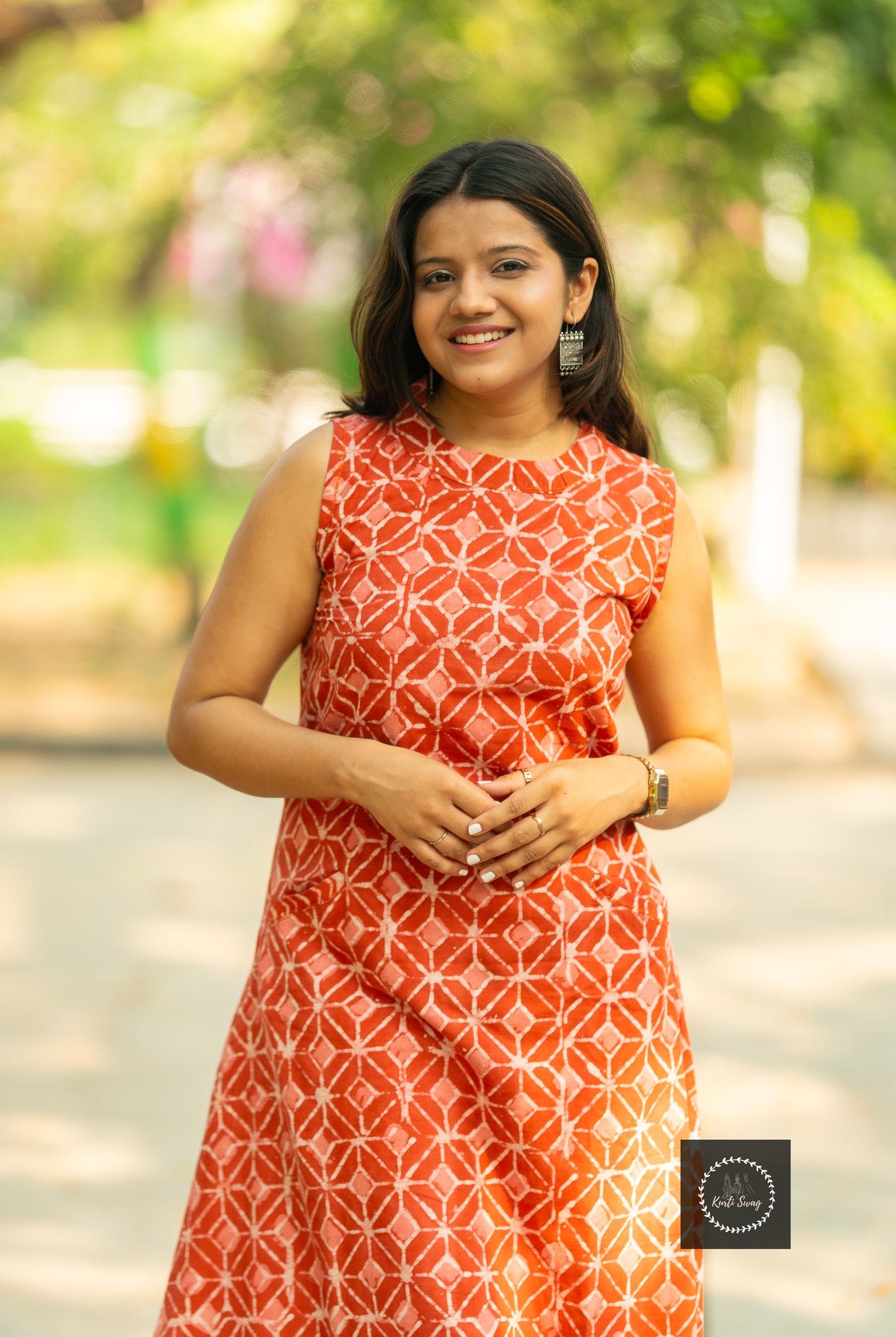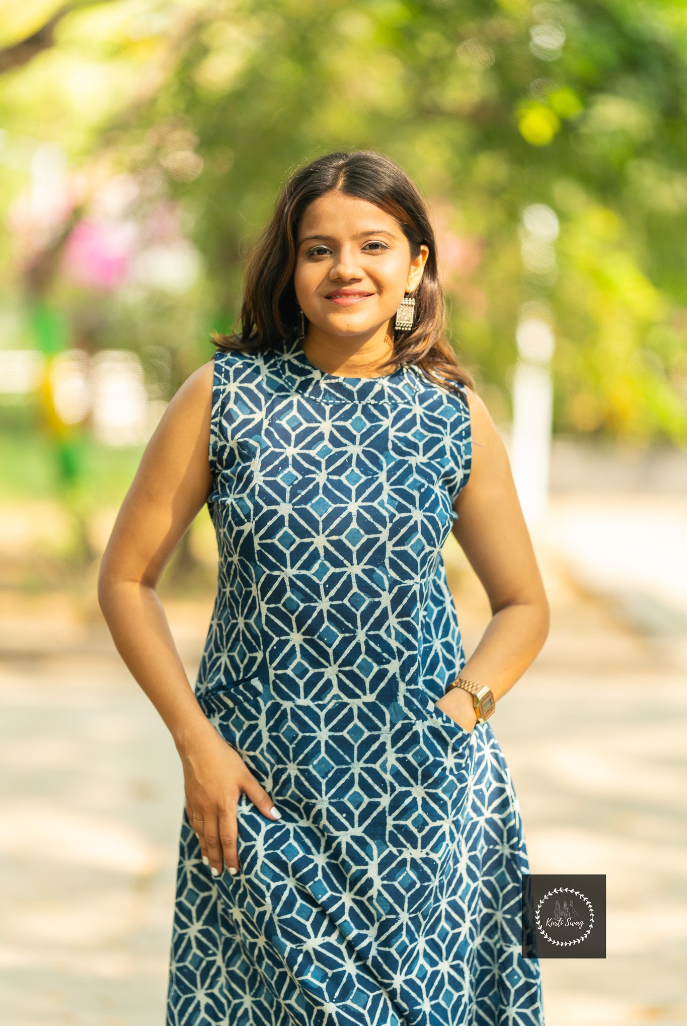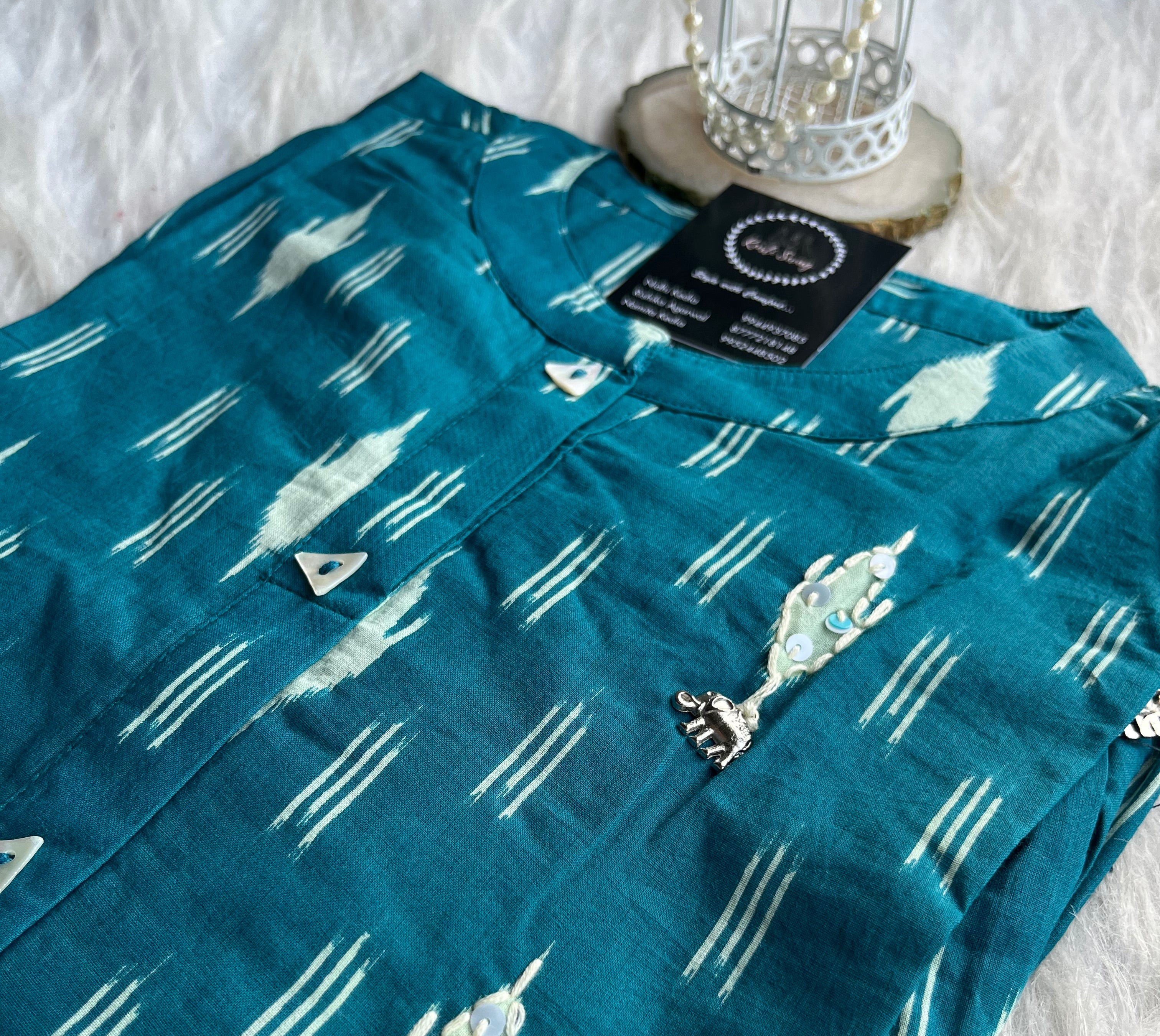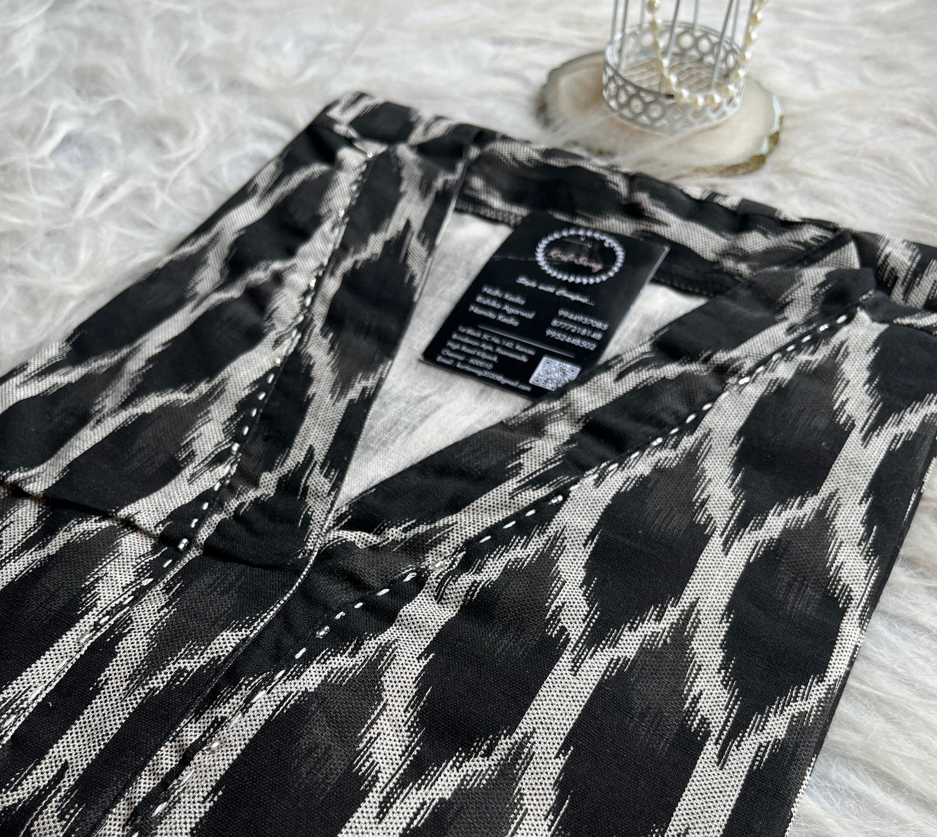 "IKKAT" Sleevless Cotton Kurta with Cotton Pant