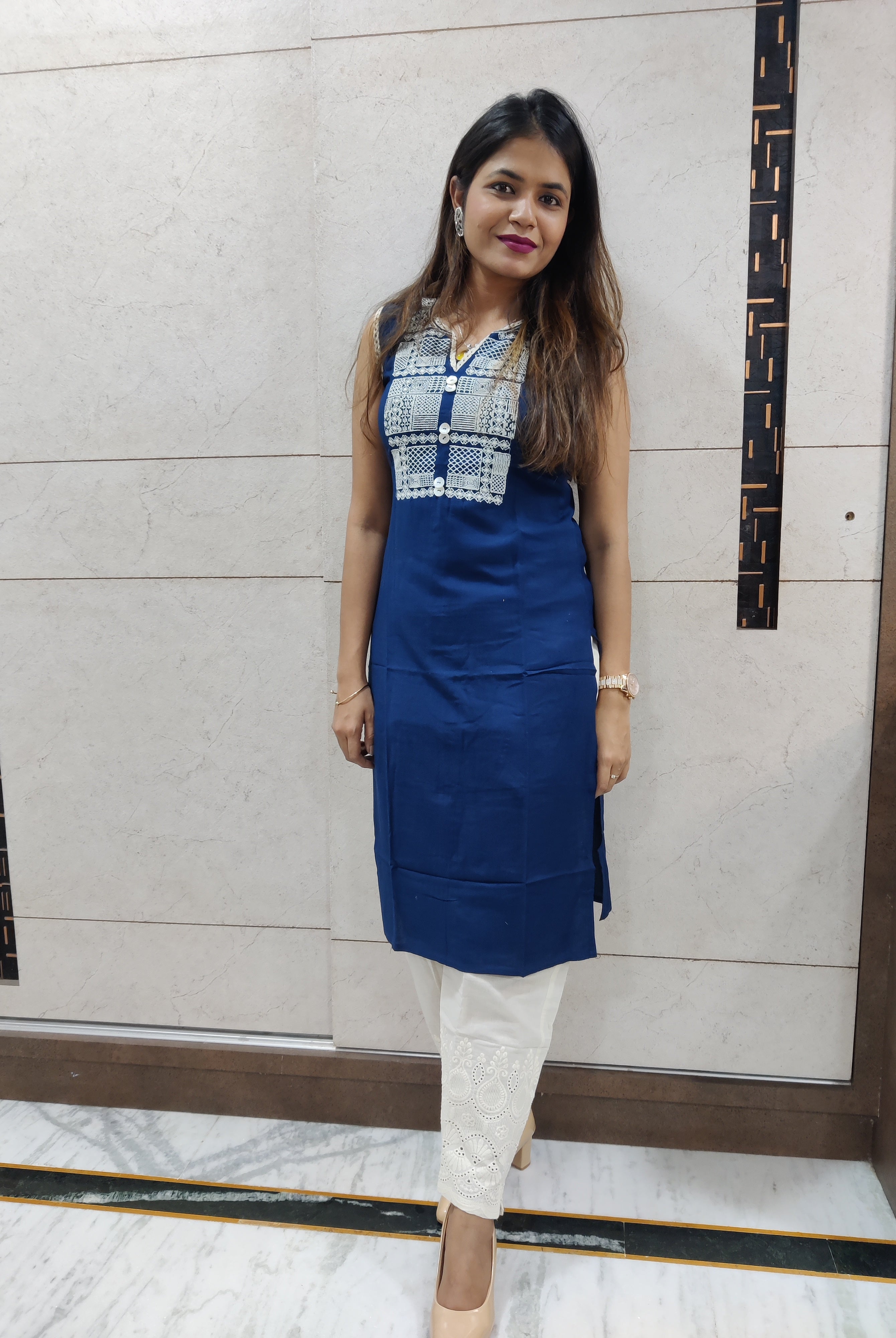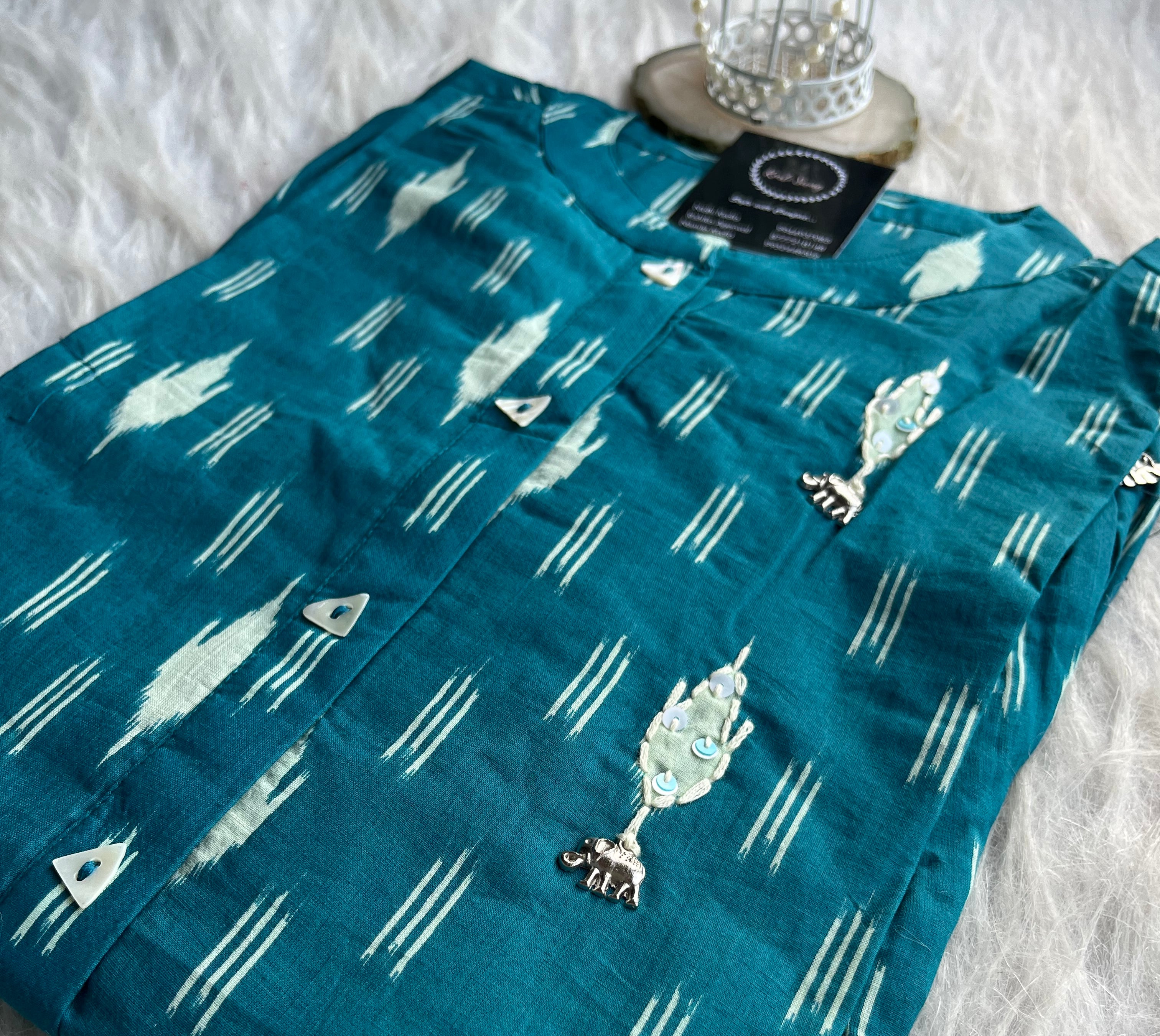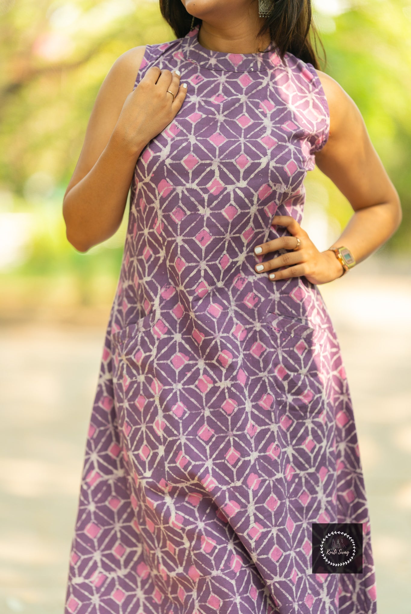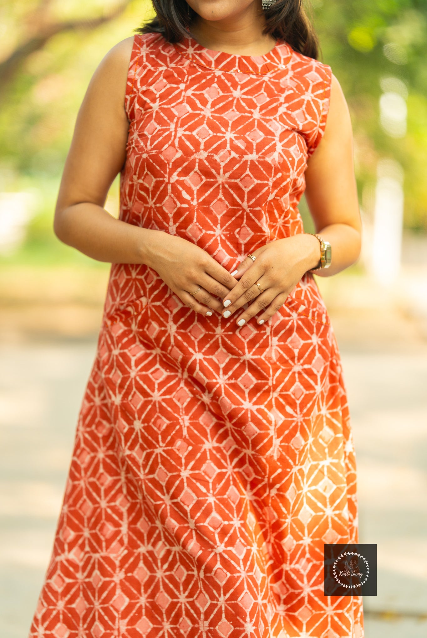"IKKAT" Sleevless Cotton Kurta with Cotton Pant