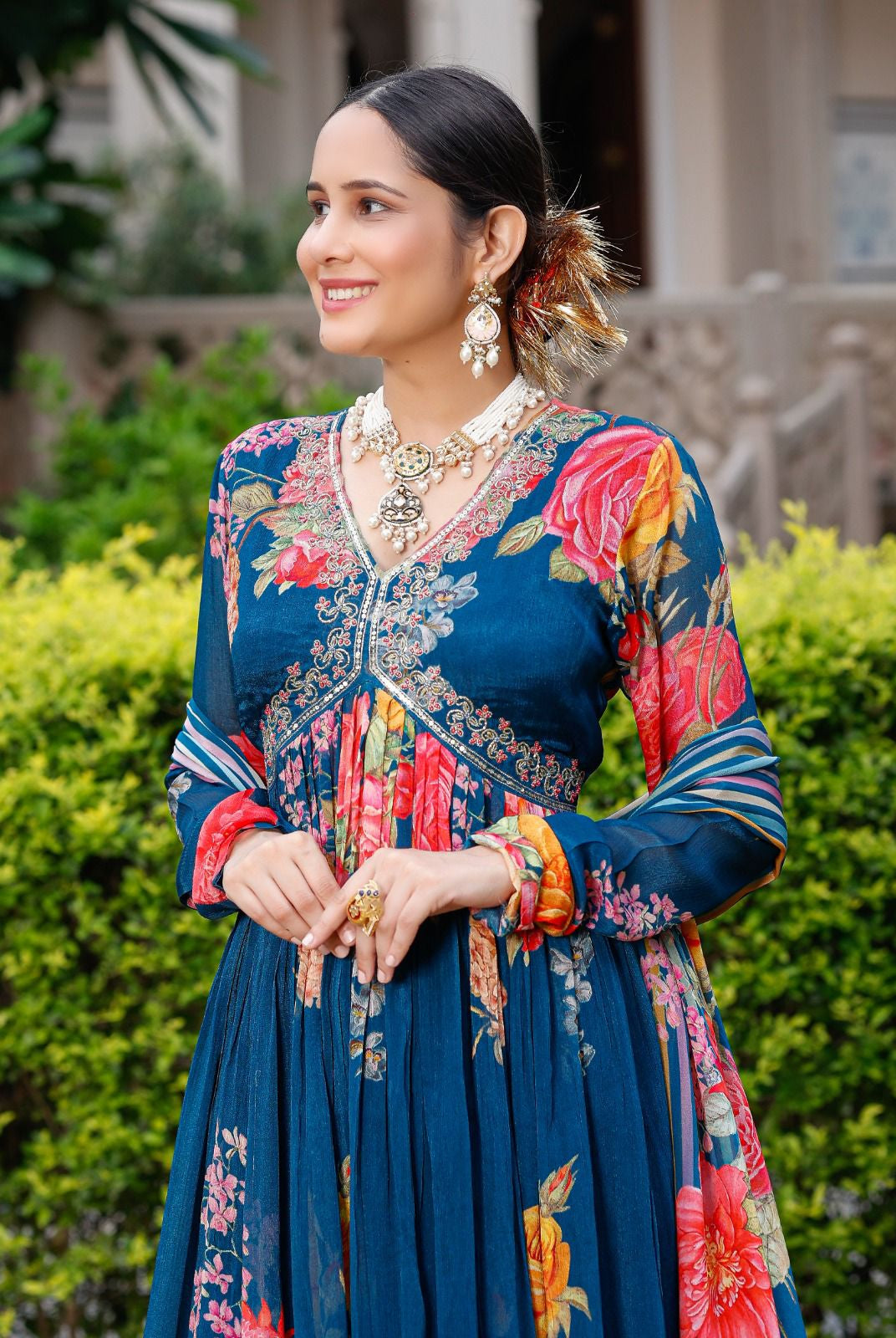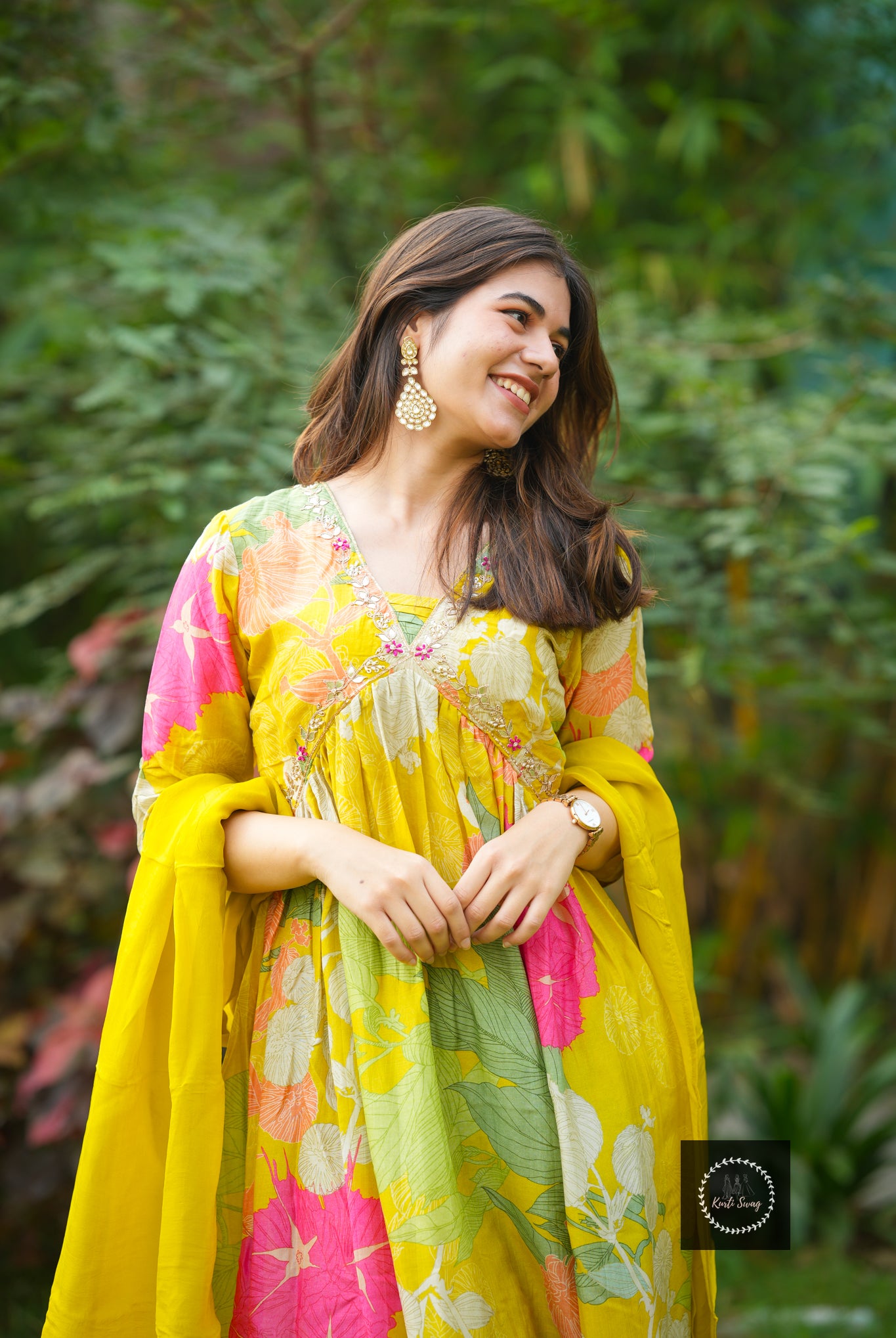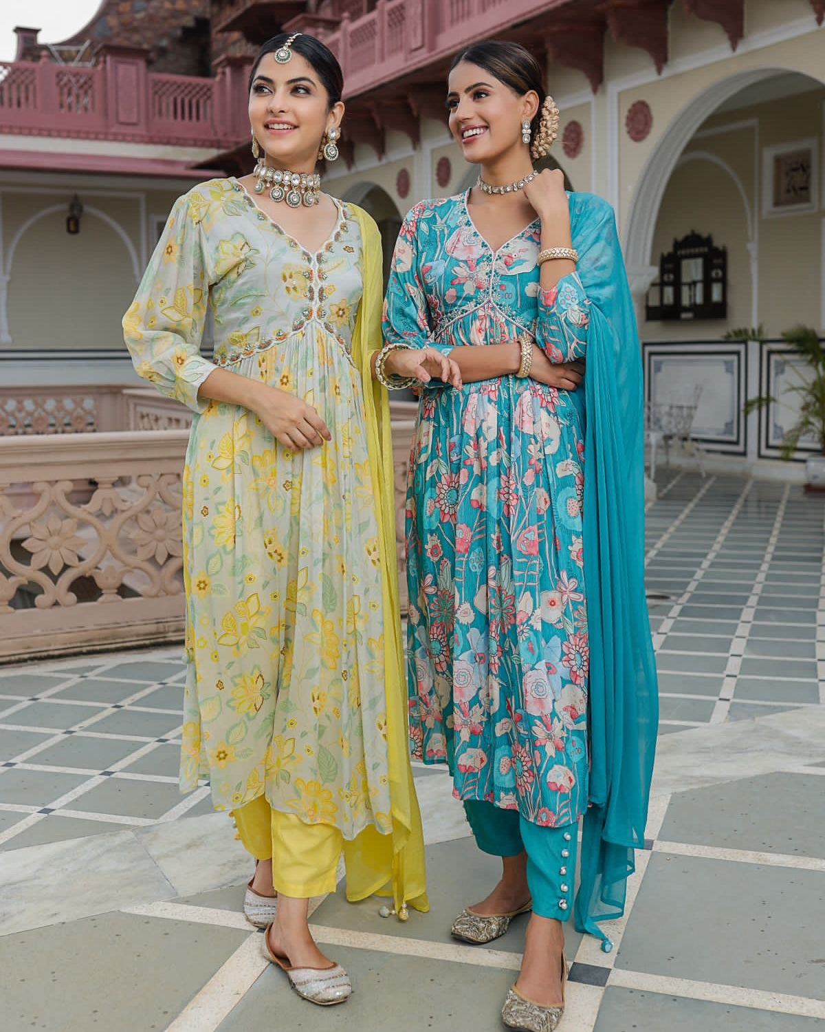 “MASAKALI” Printed Chinnon Festive Alia Cut
