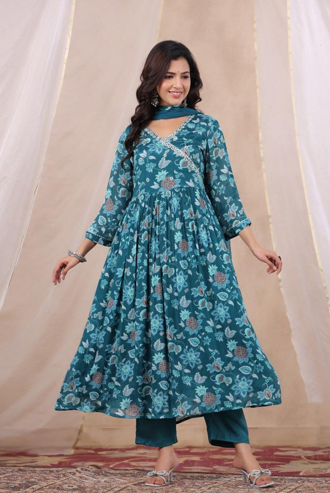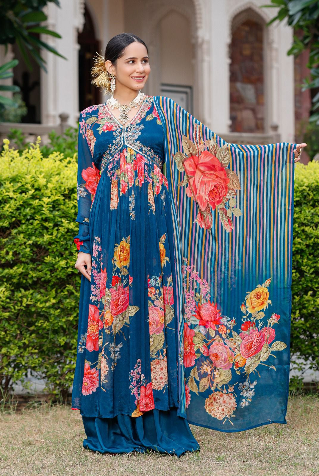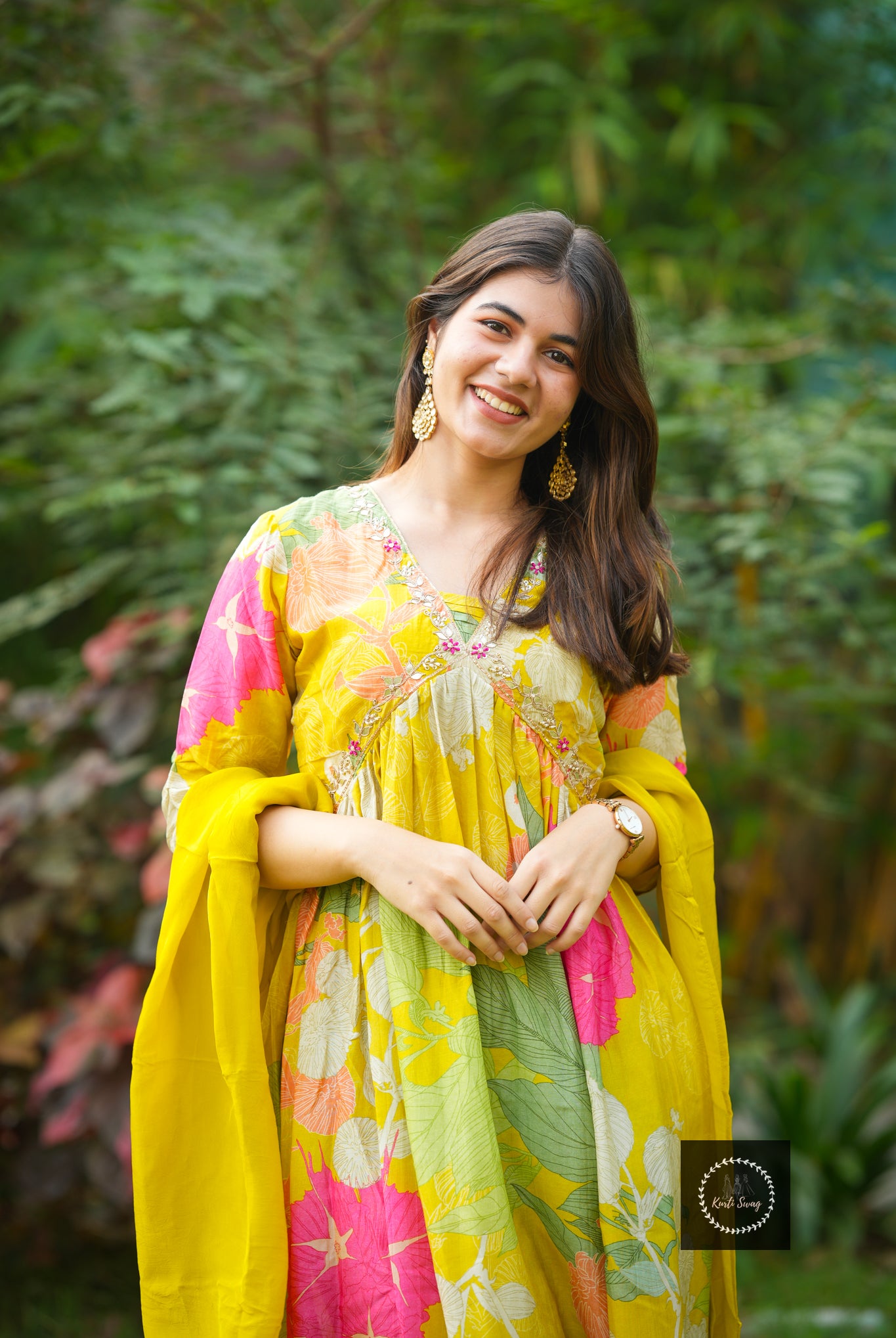 “MASAKALI” Printed Chinnon Festive Alia Cut