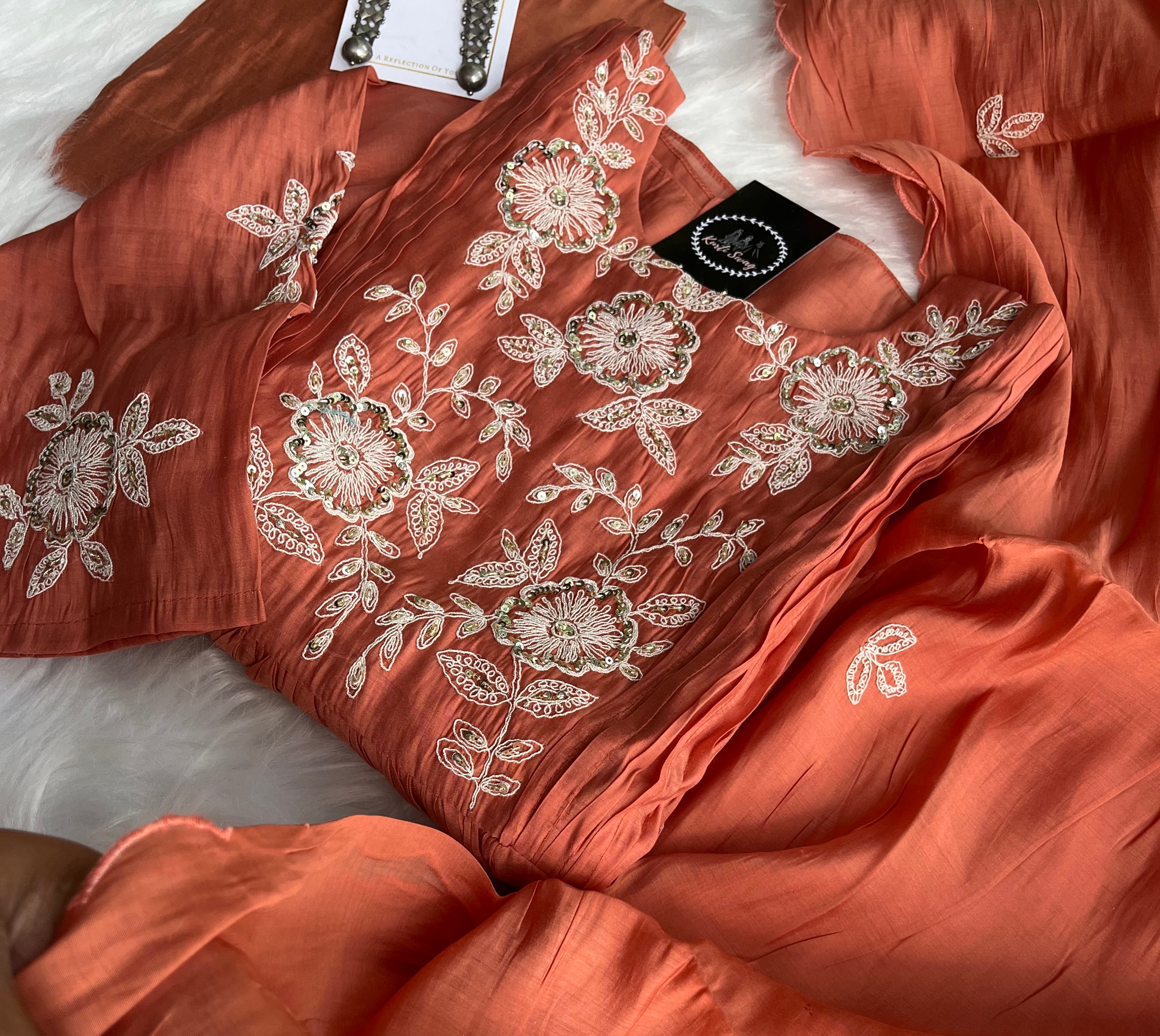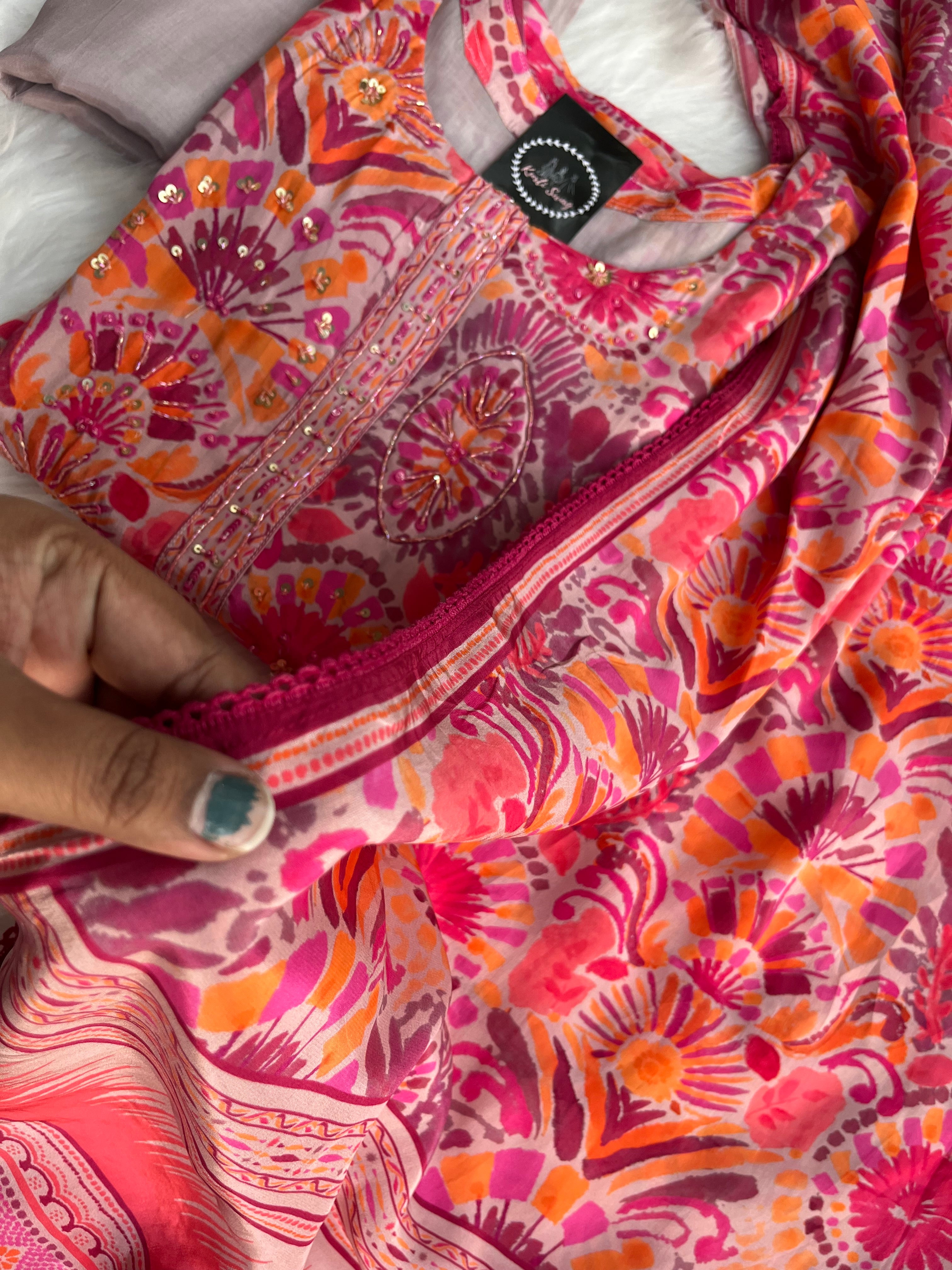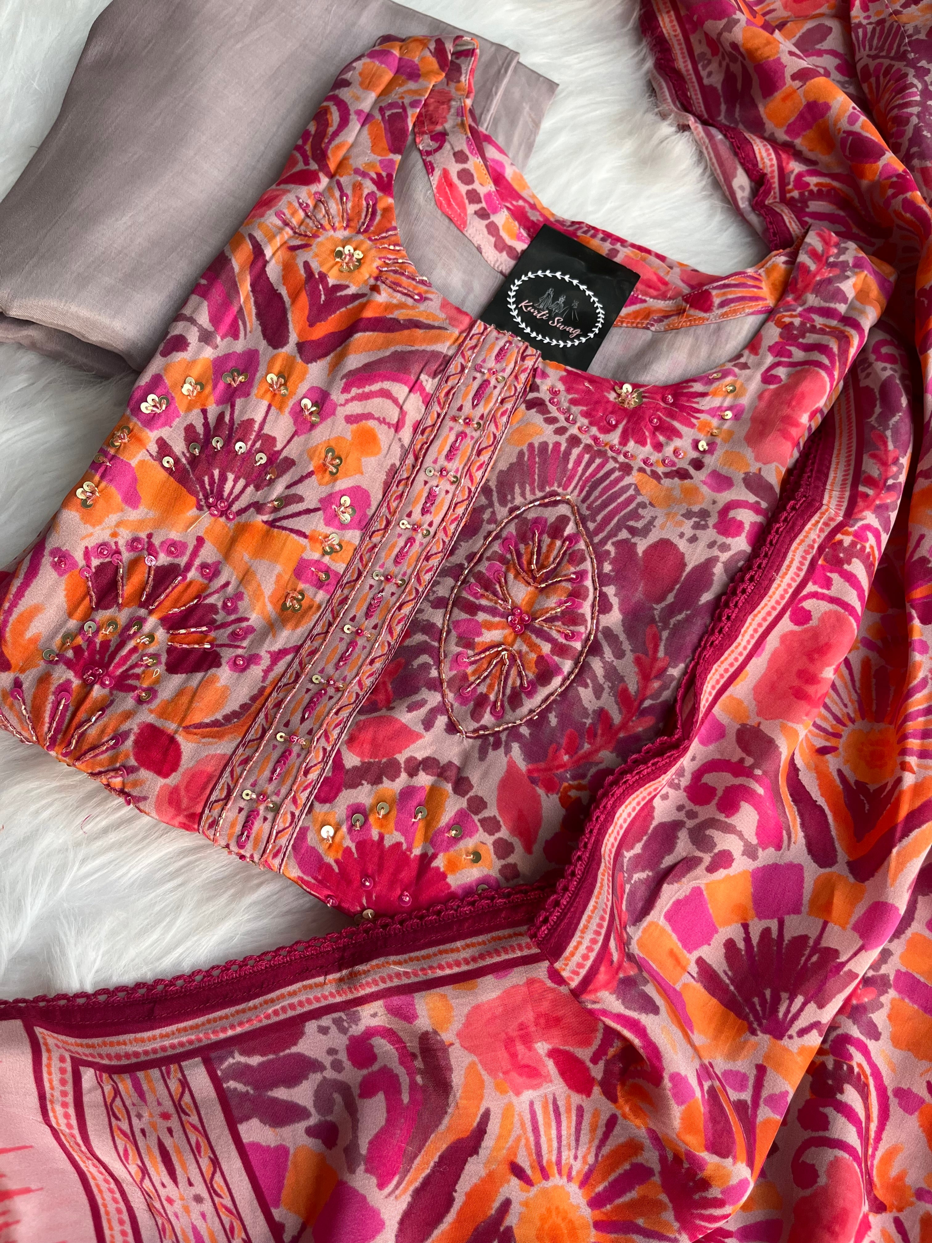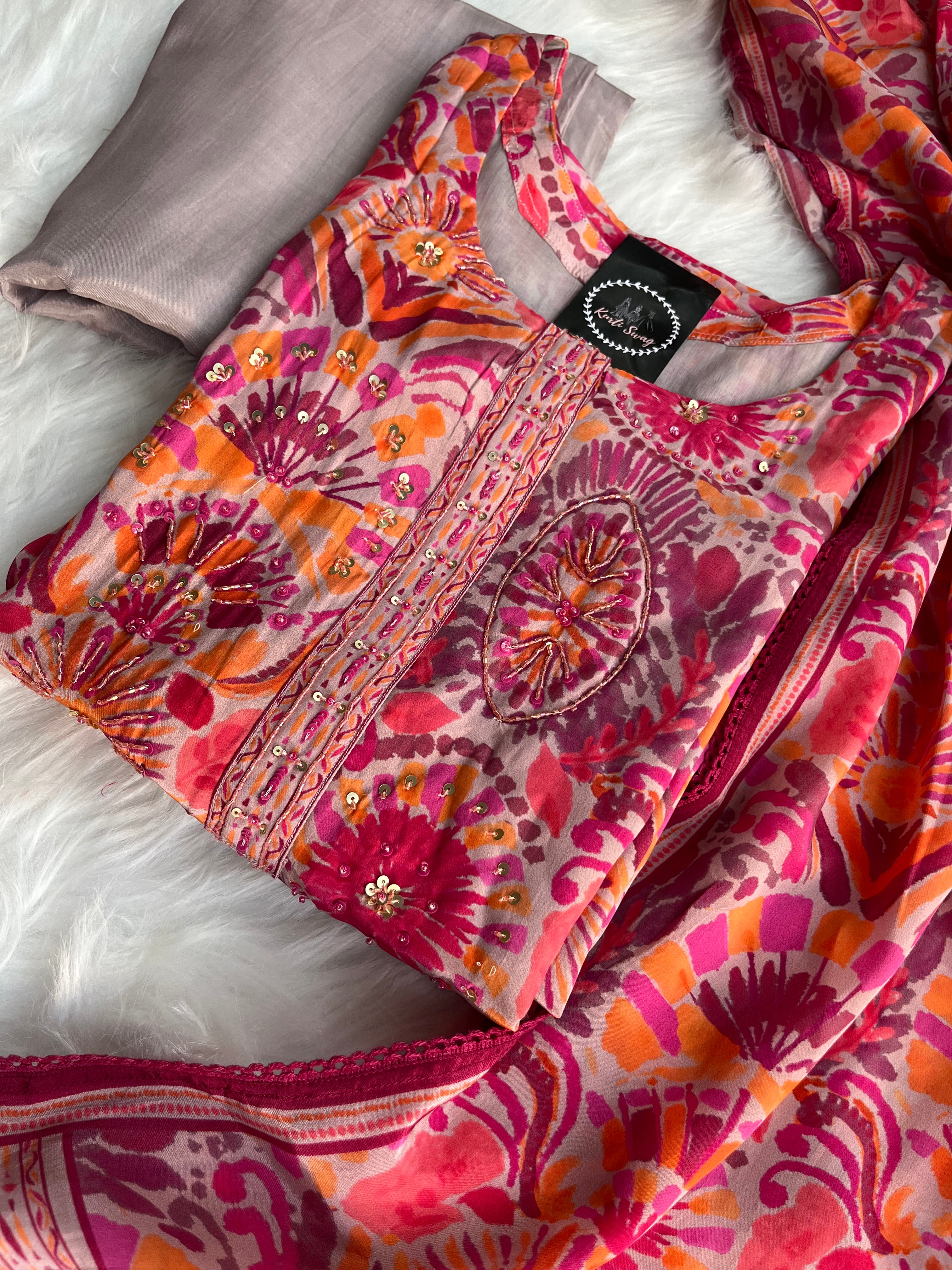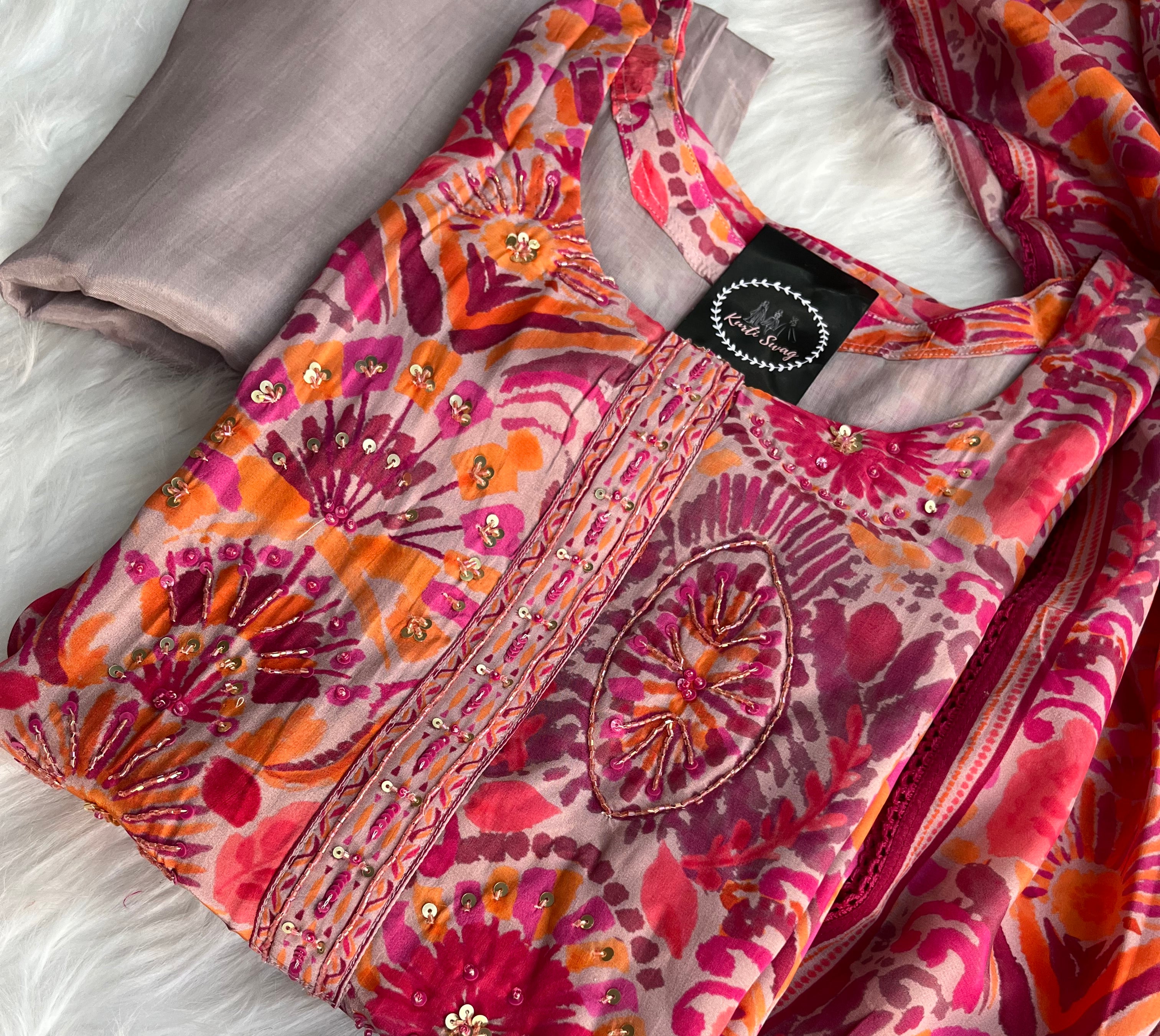 “KIARA” Printed Chinnon Alia Cut Suit Set 💕
