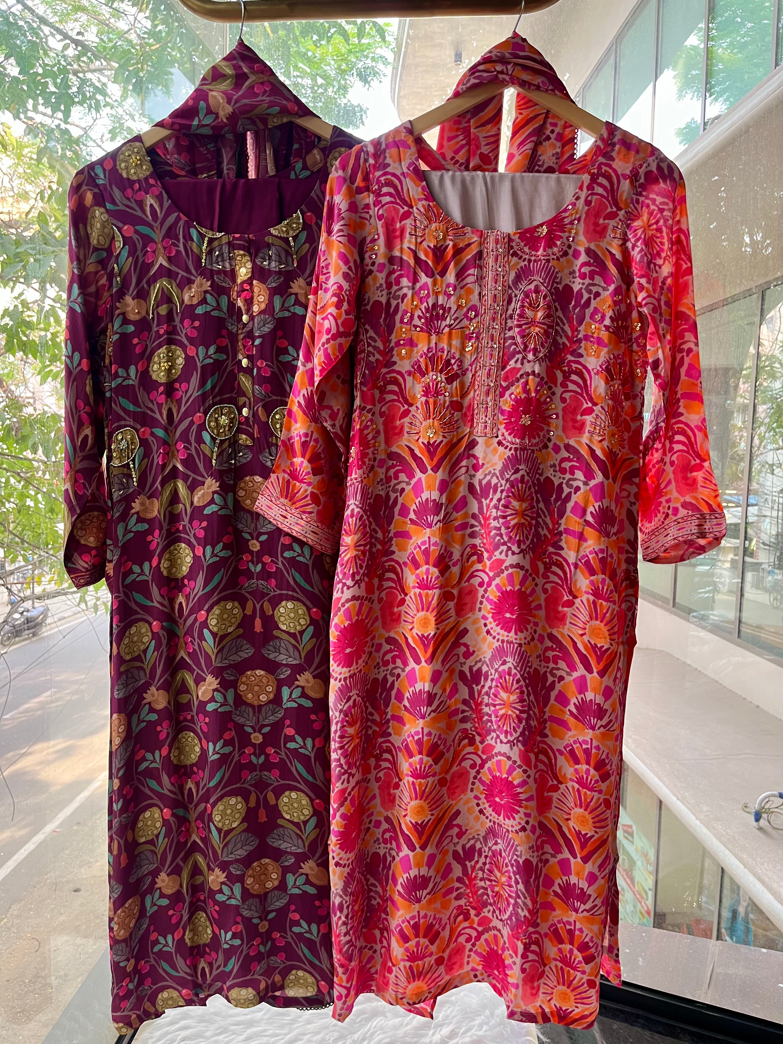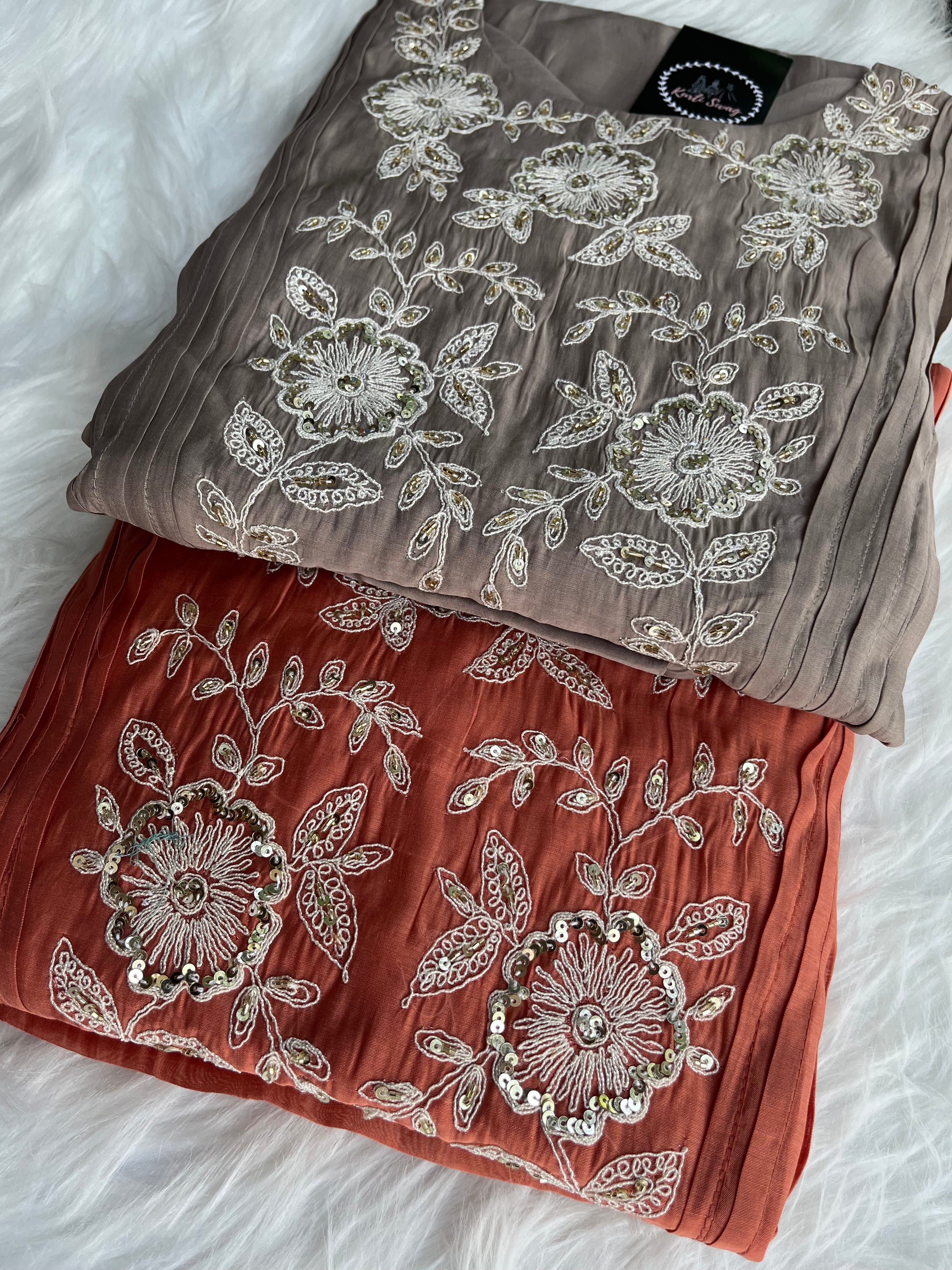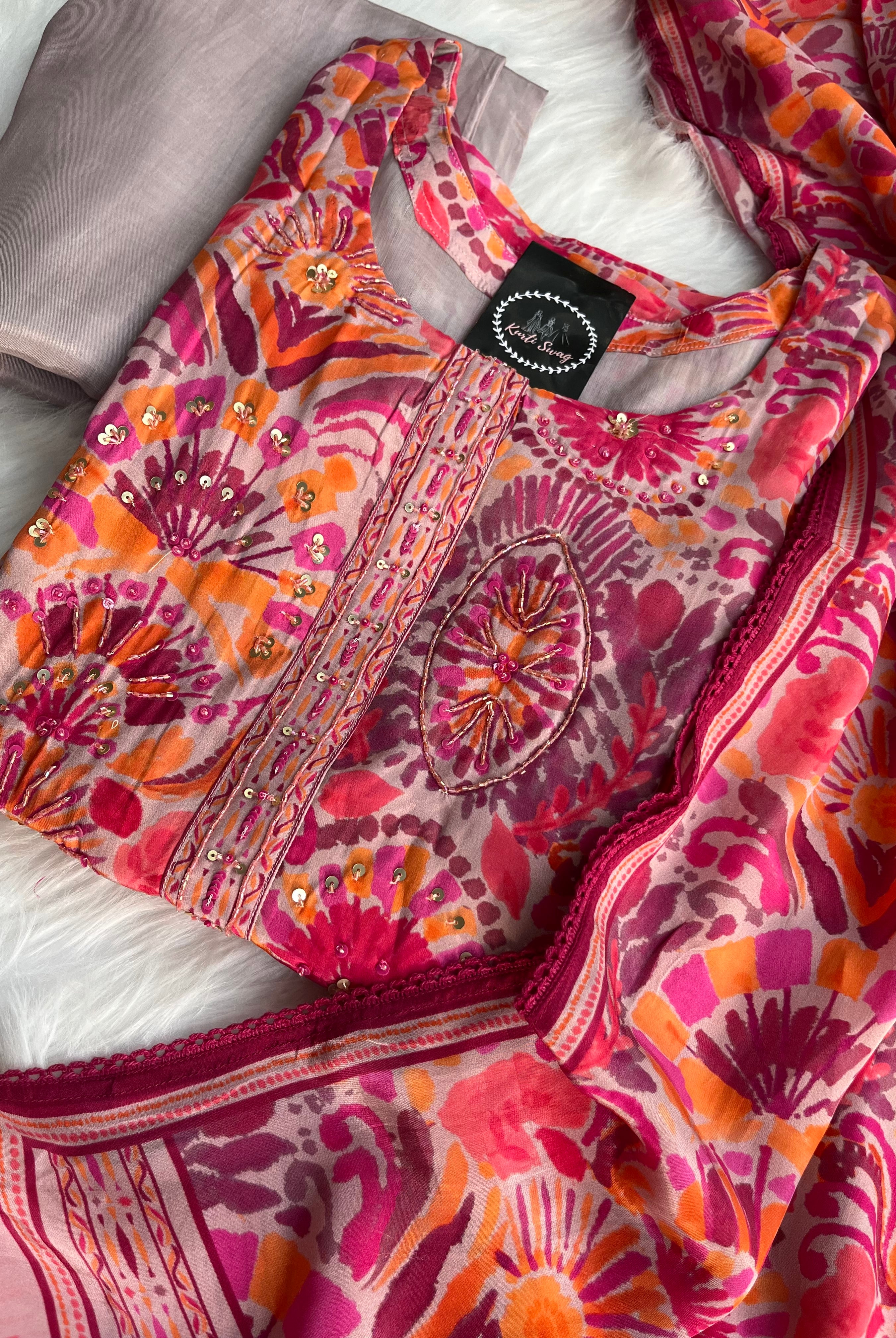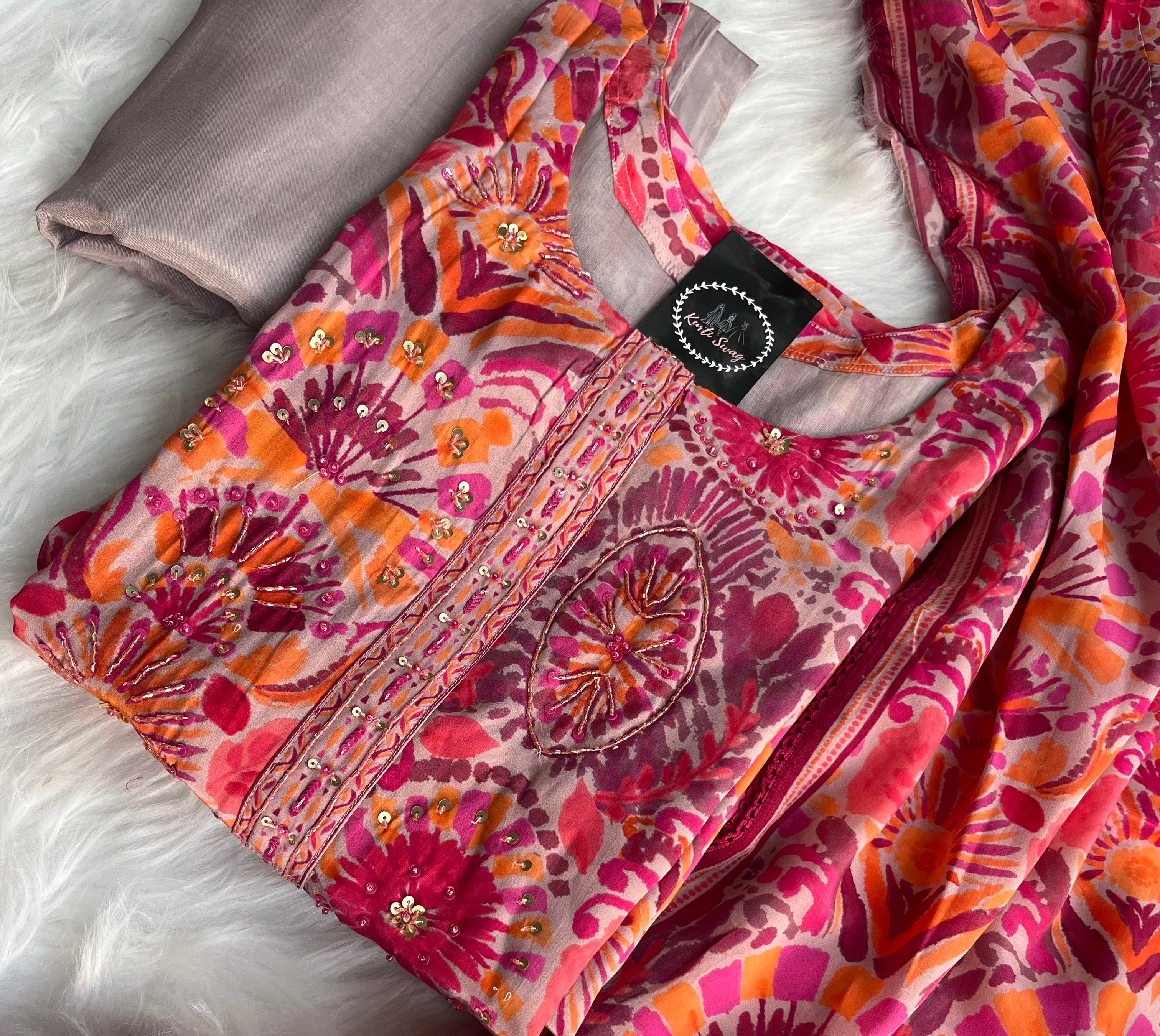 “KIARA” Printed Chinnon Alia Cut Suit Set 💕