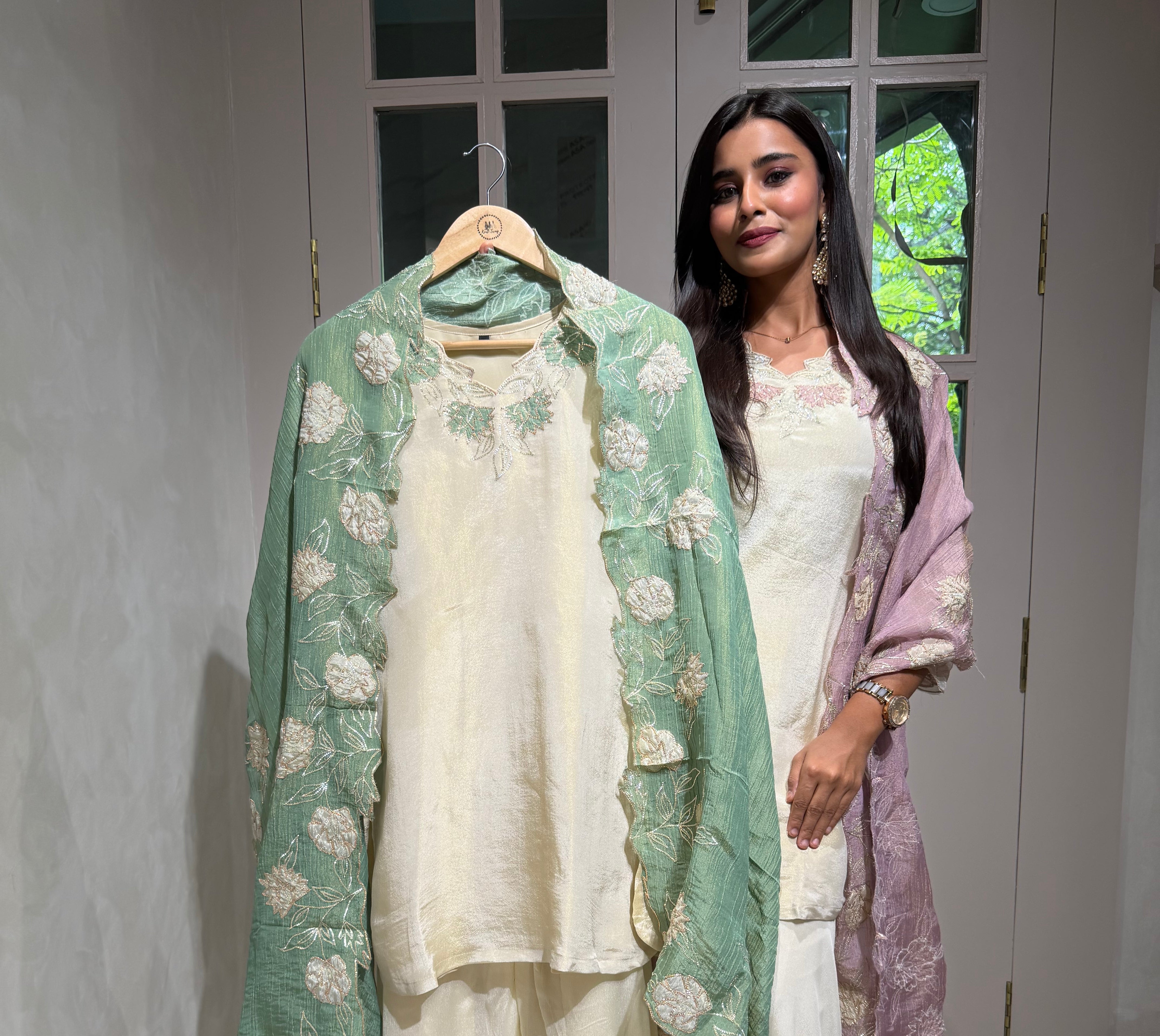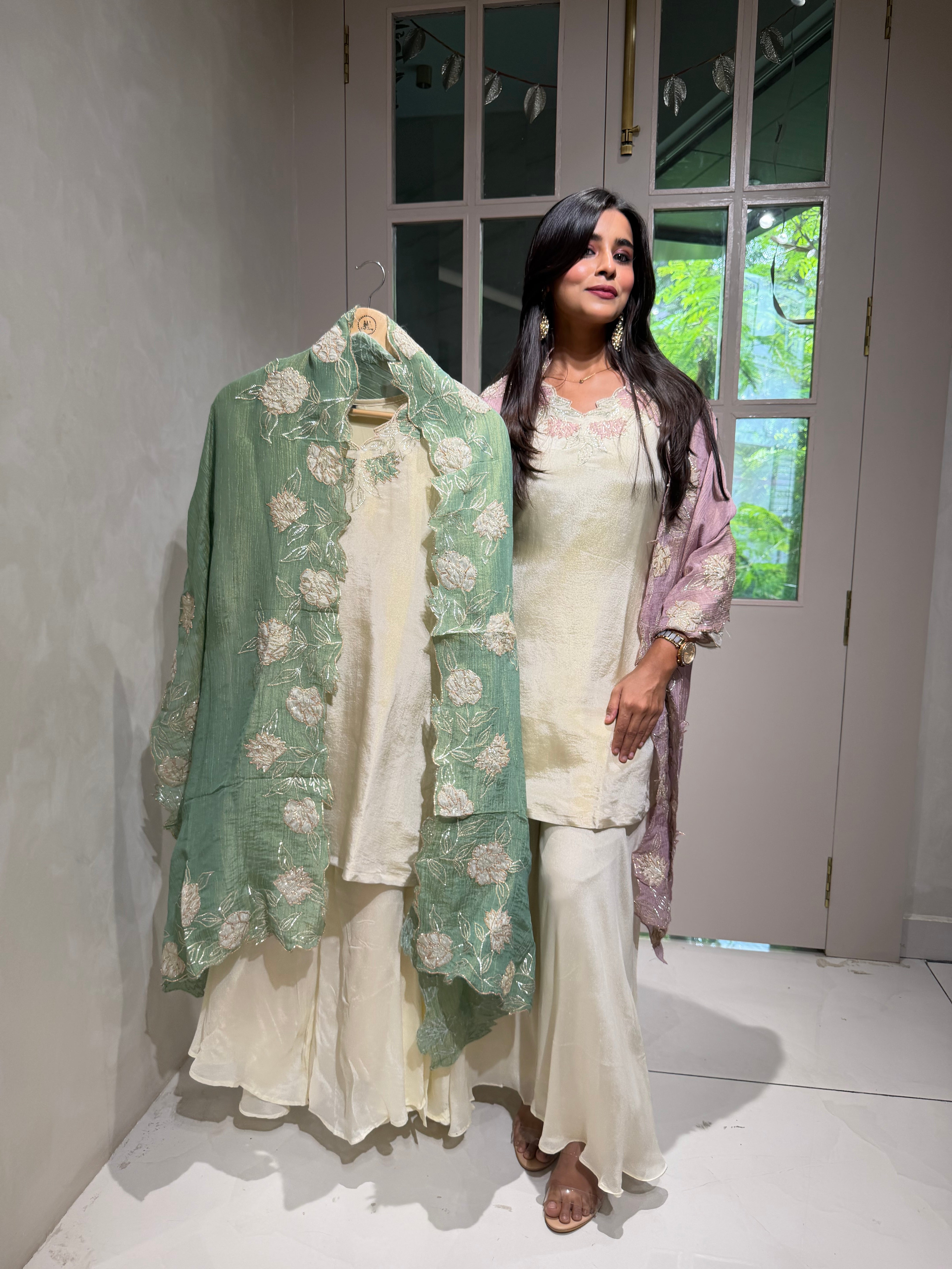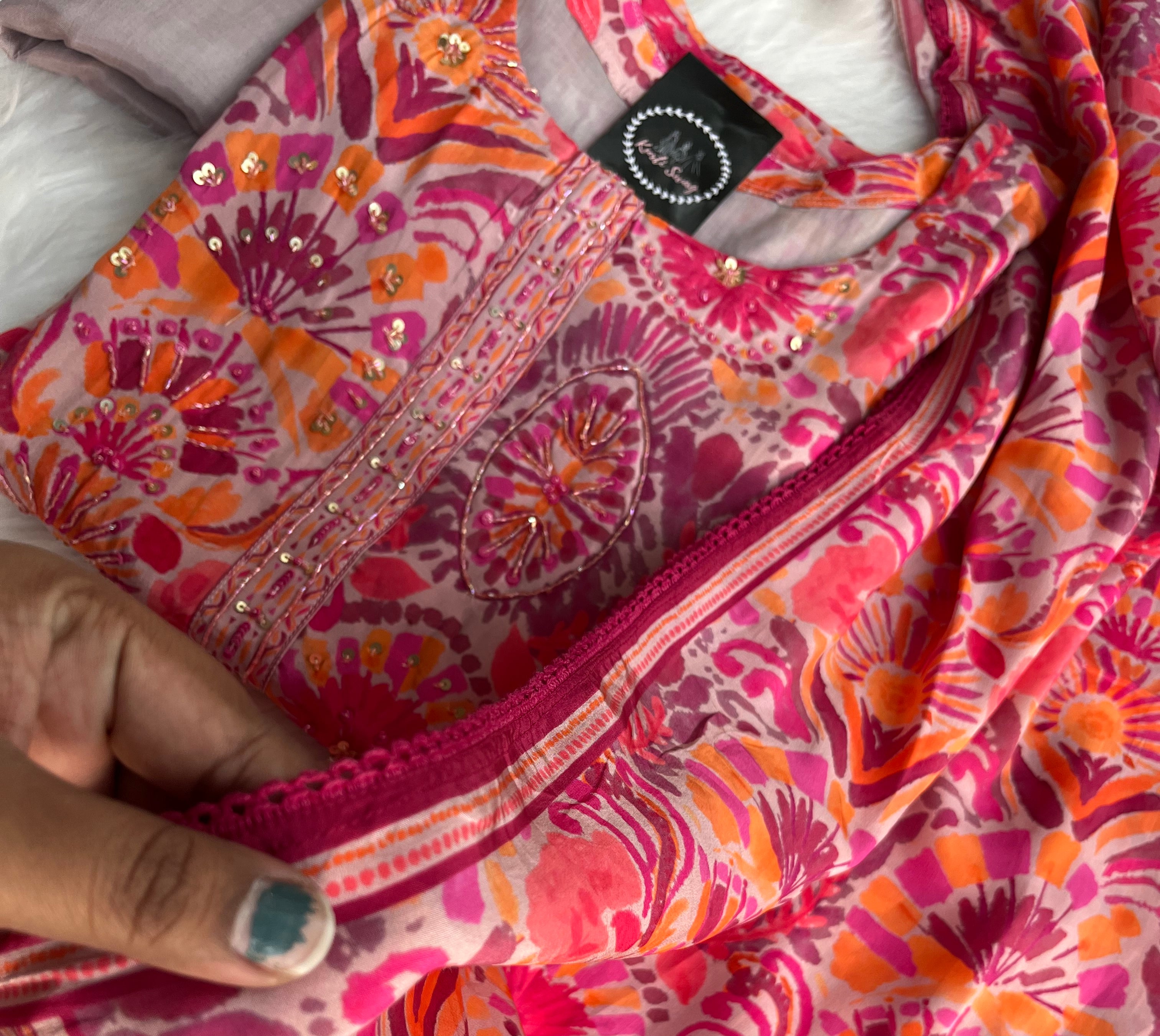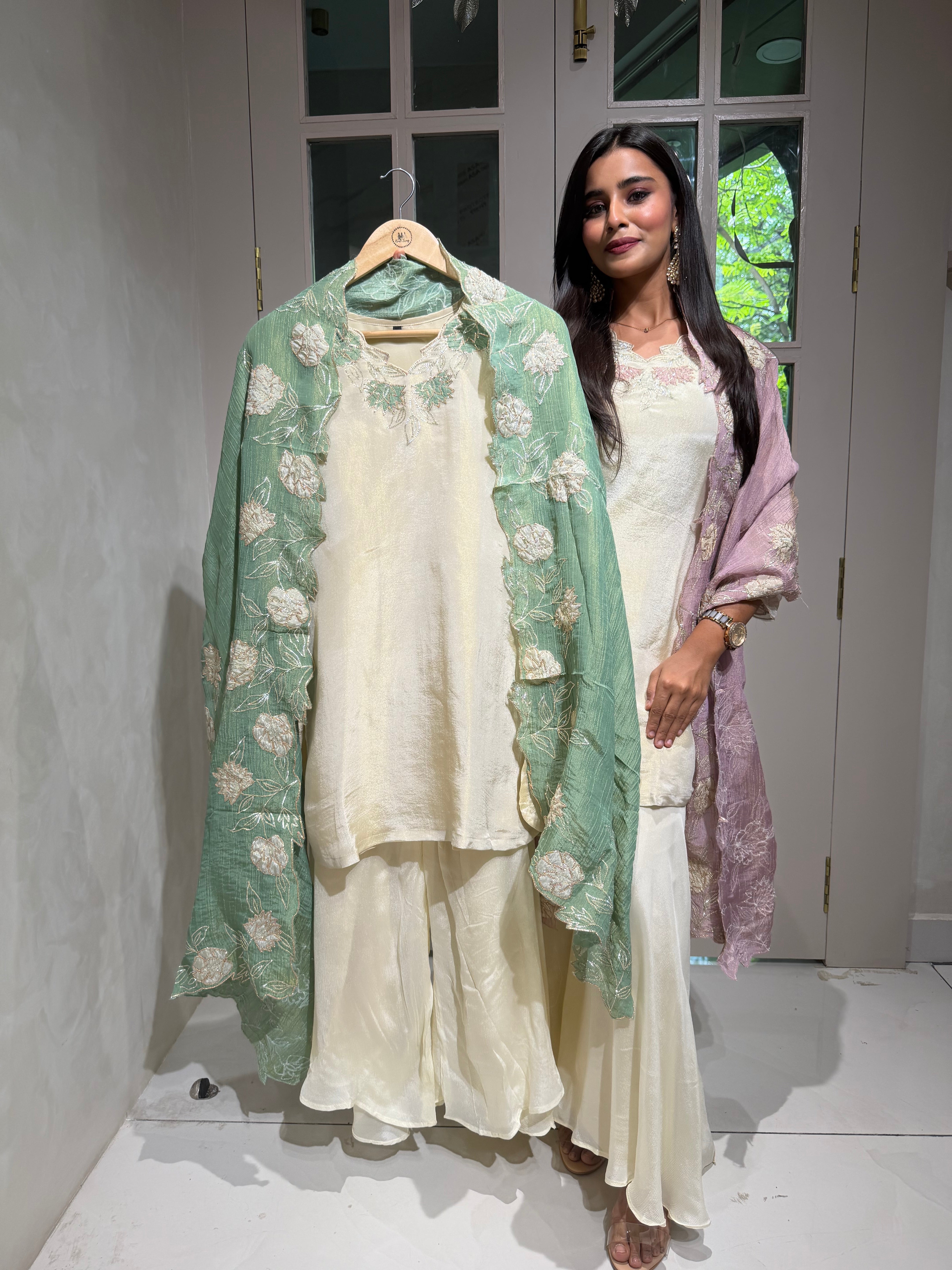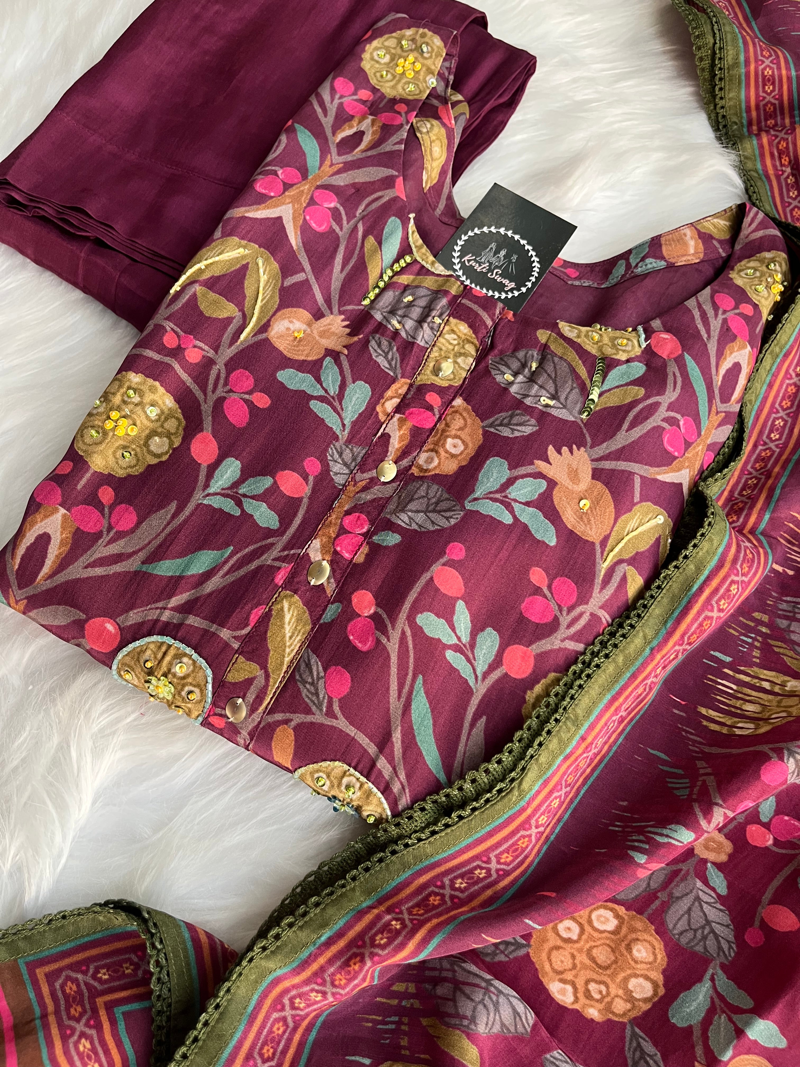 “KIARA” Printed Chinnon Alia Cut Suit Set 💕
