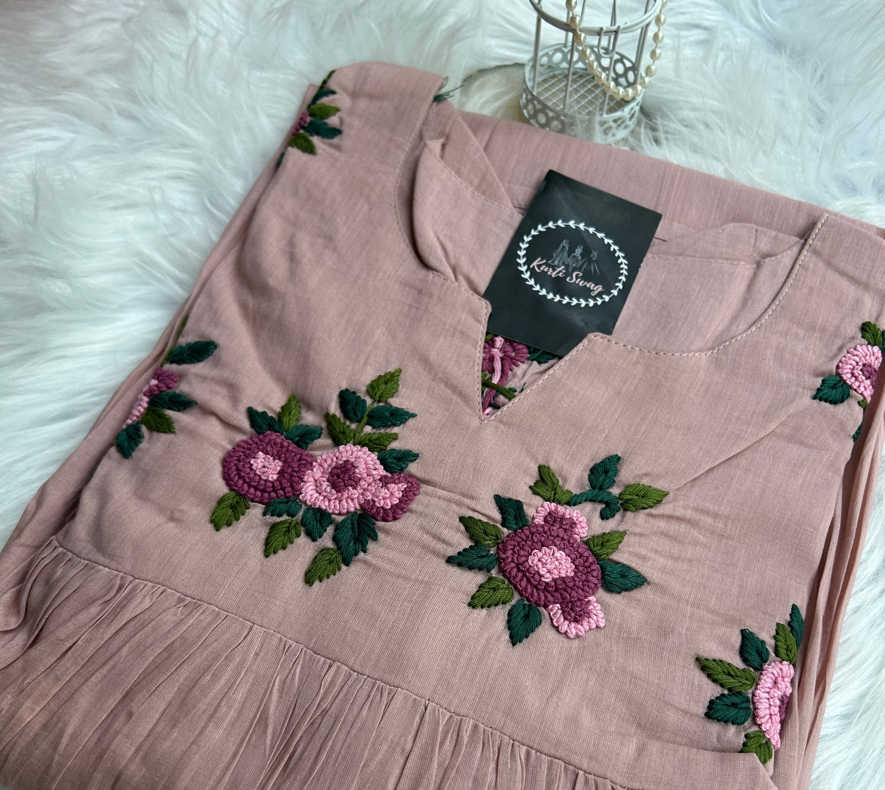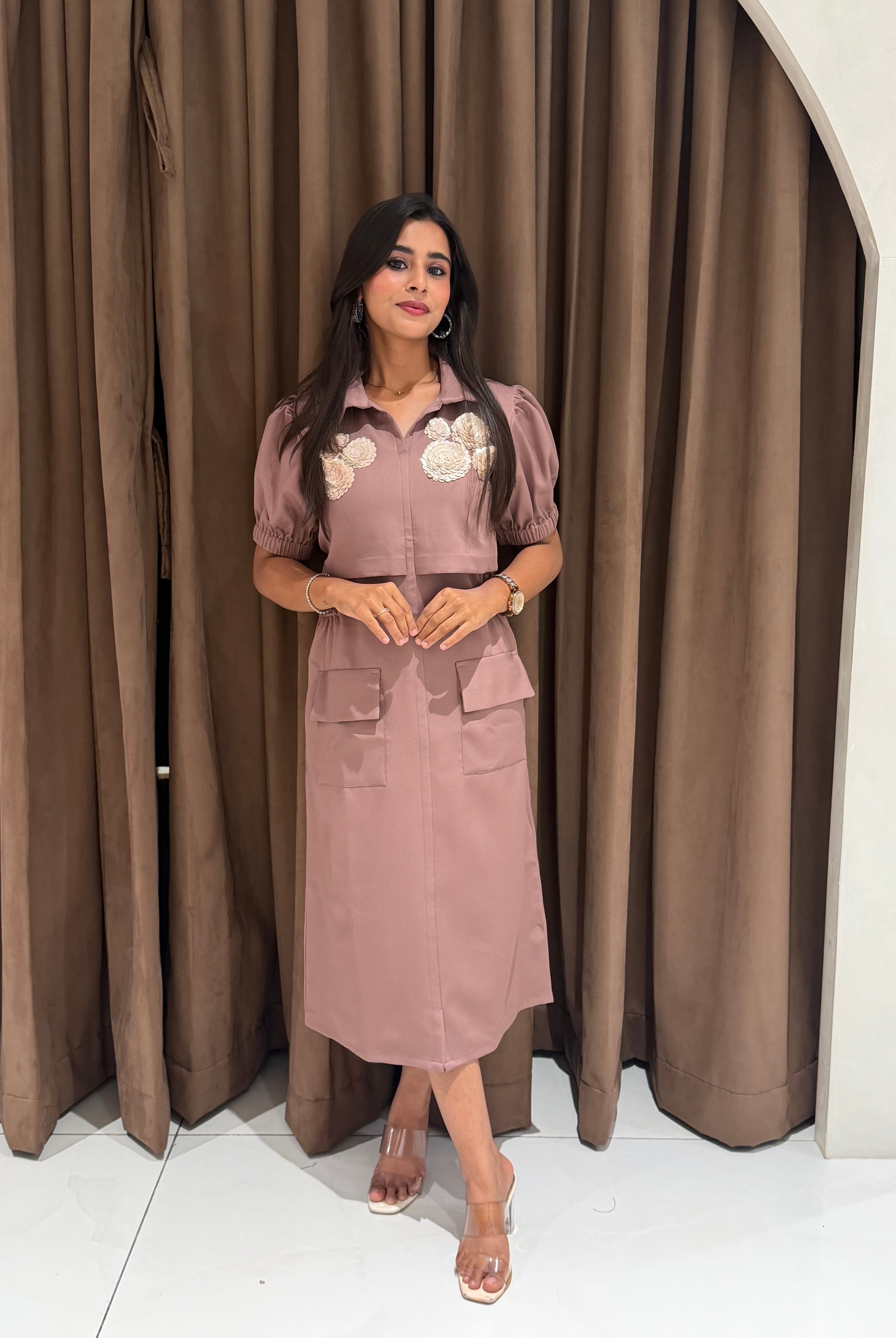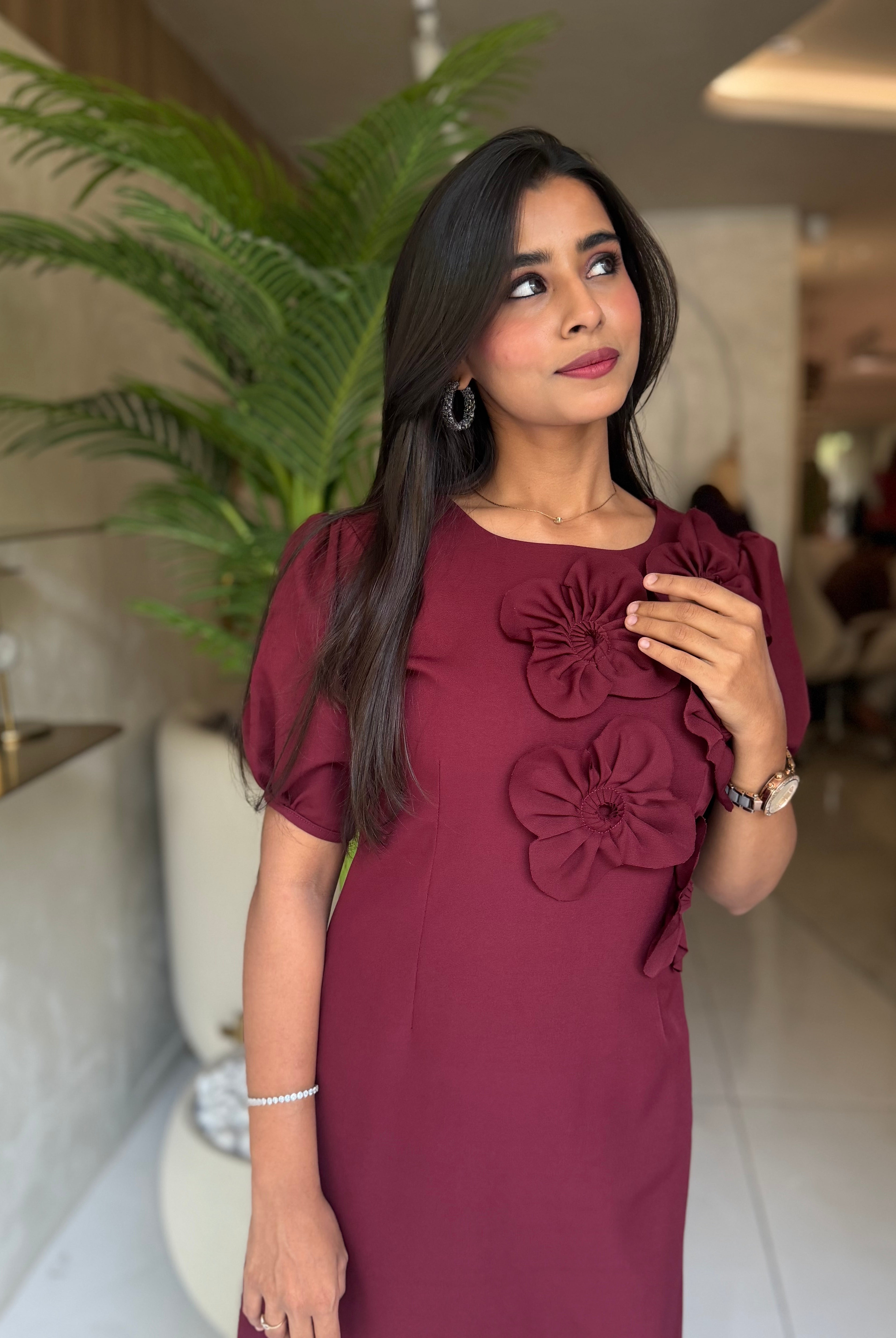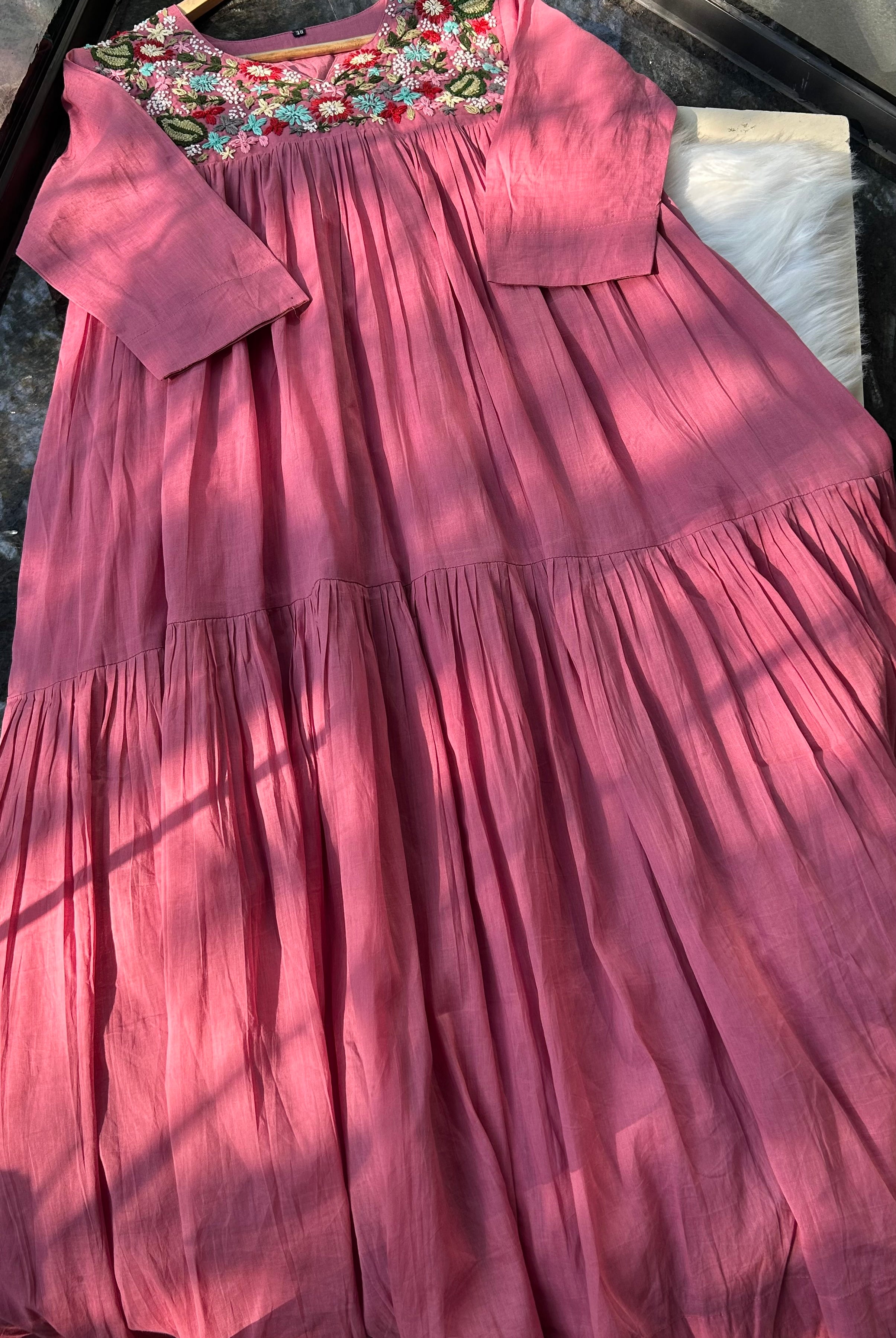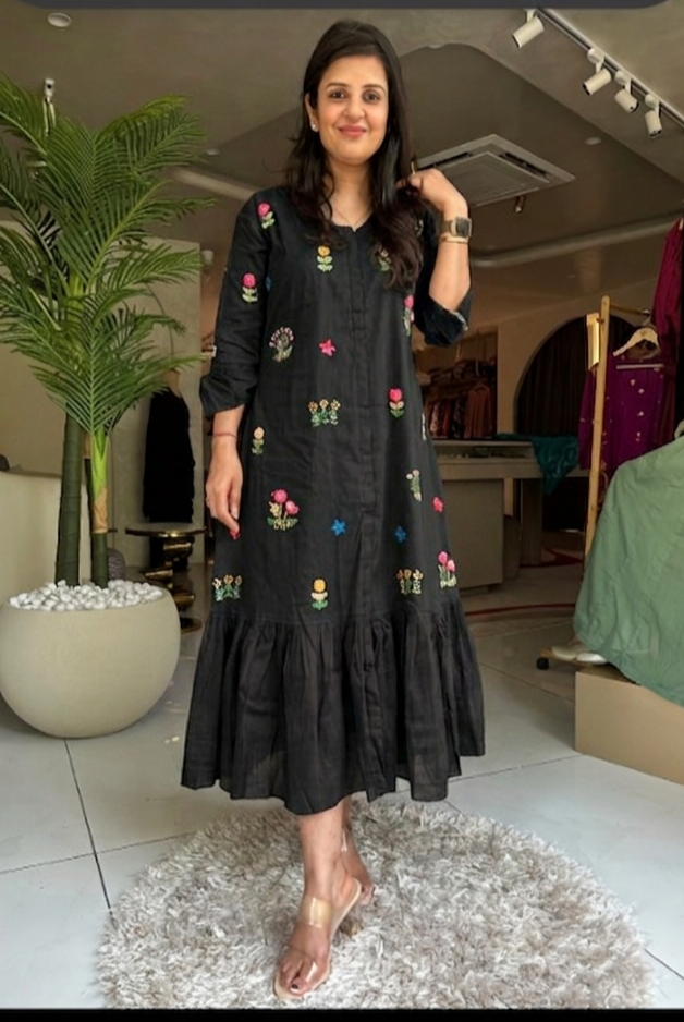 “ROSE ACCENT DRESS” In Premium Malai Cotton ✨💕