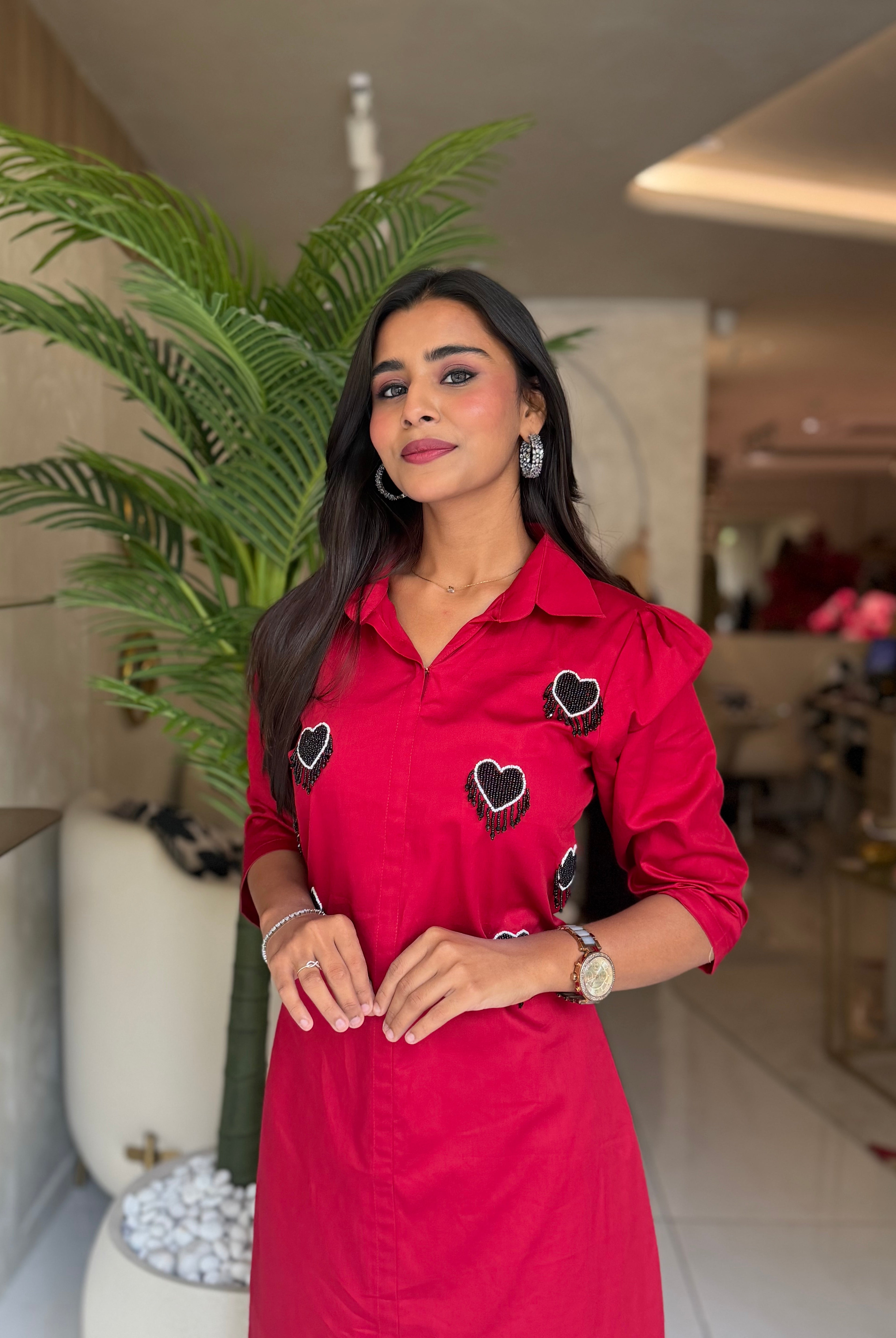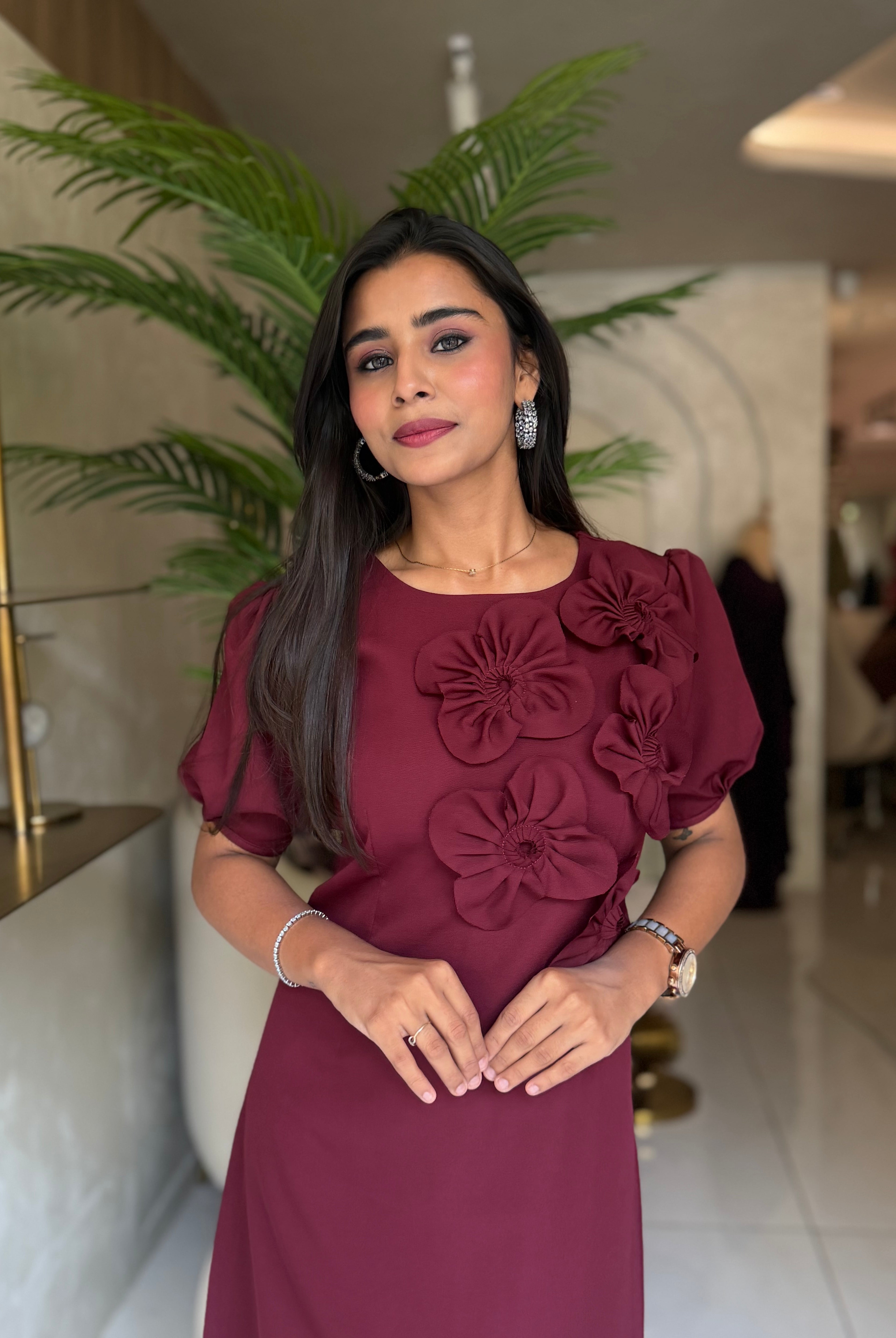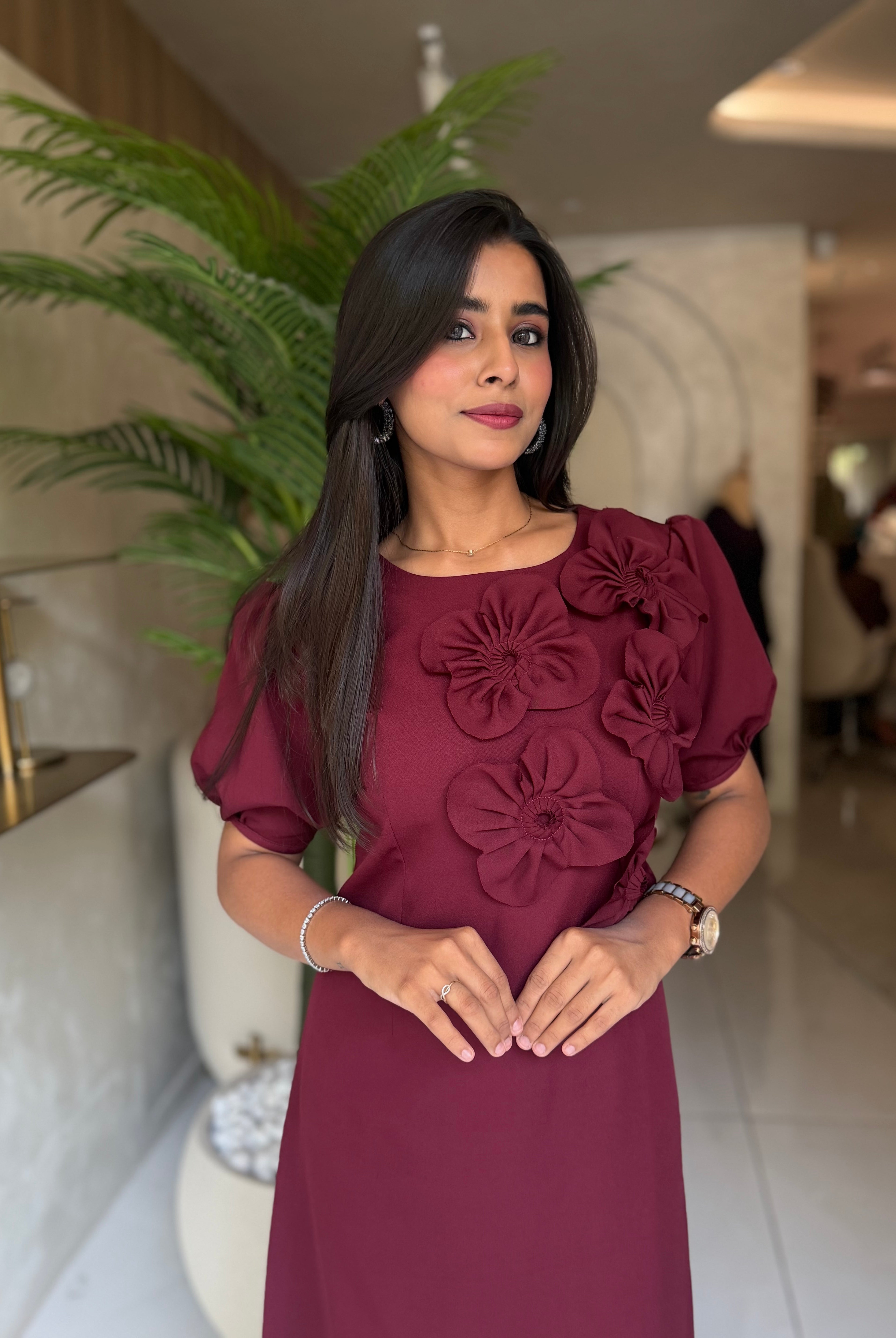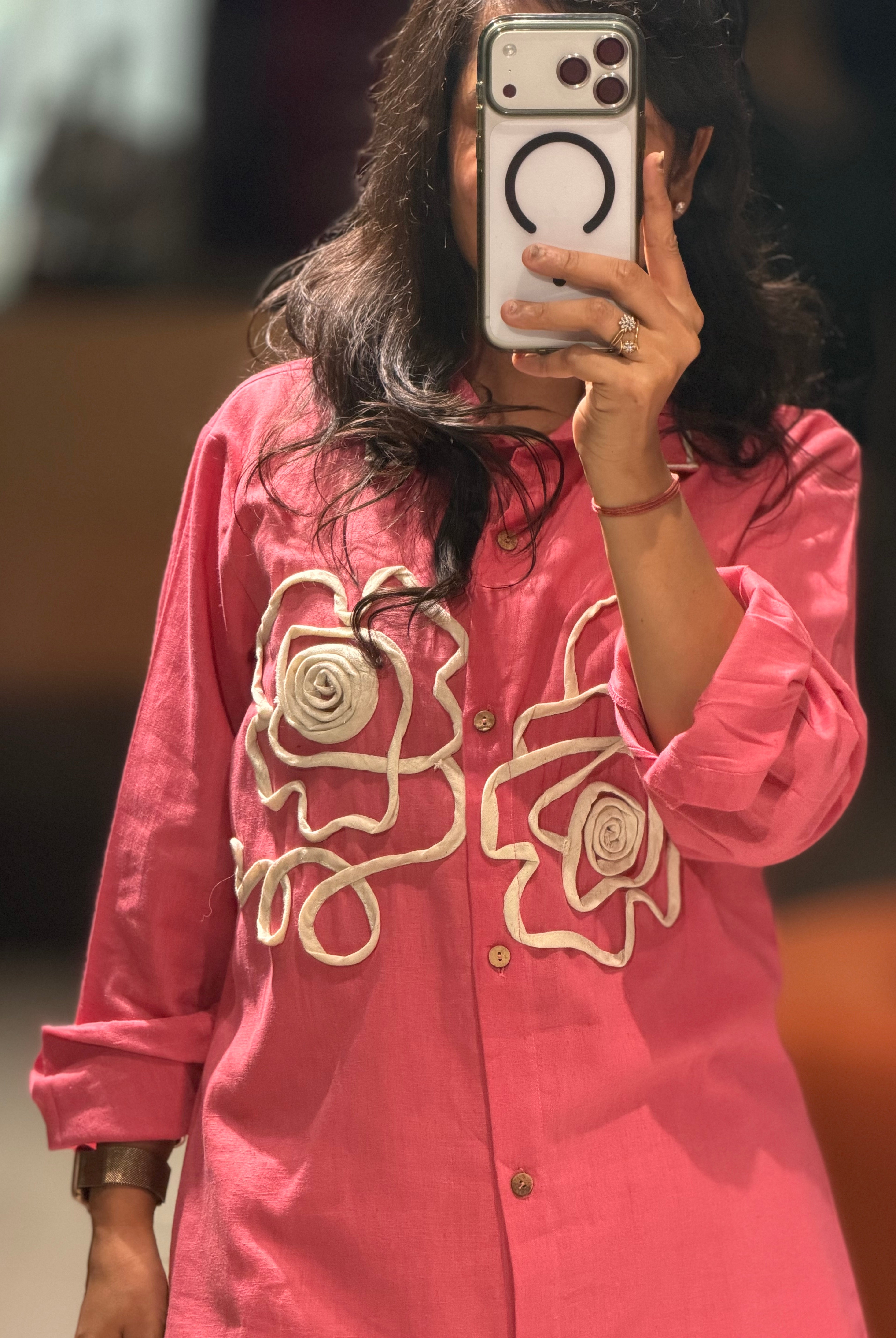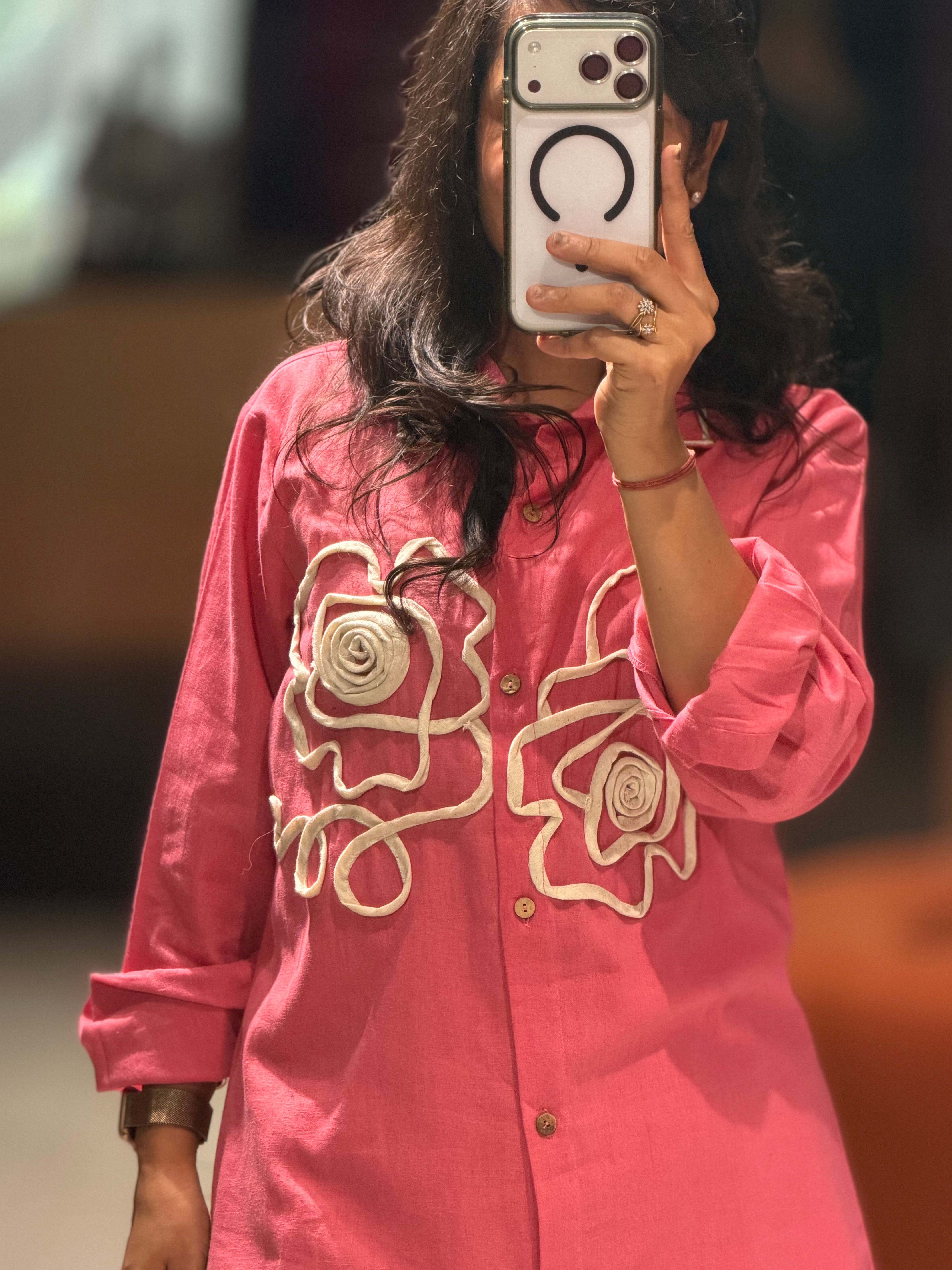 “ROSE ACCENT DRESS” In Premium Malai Cotton ✨💕