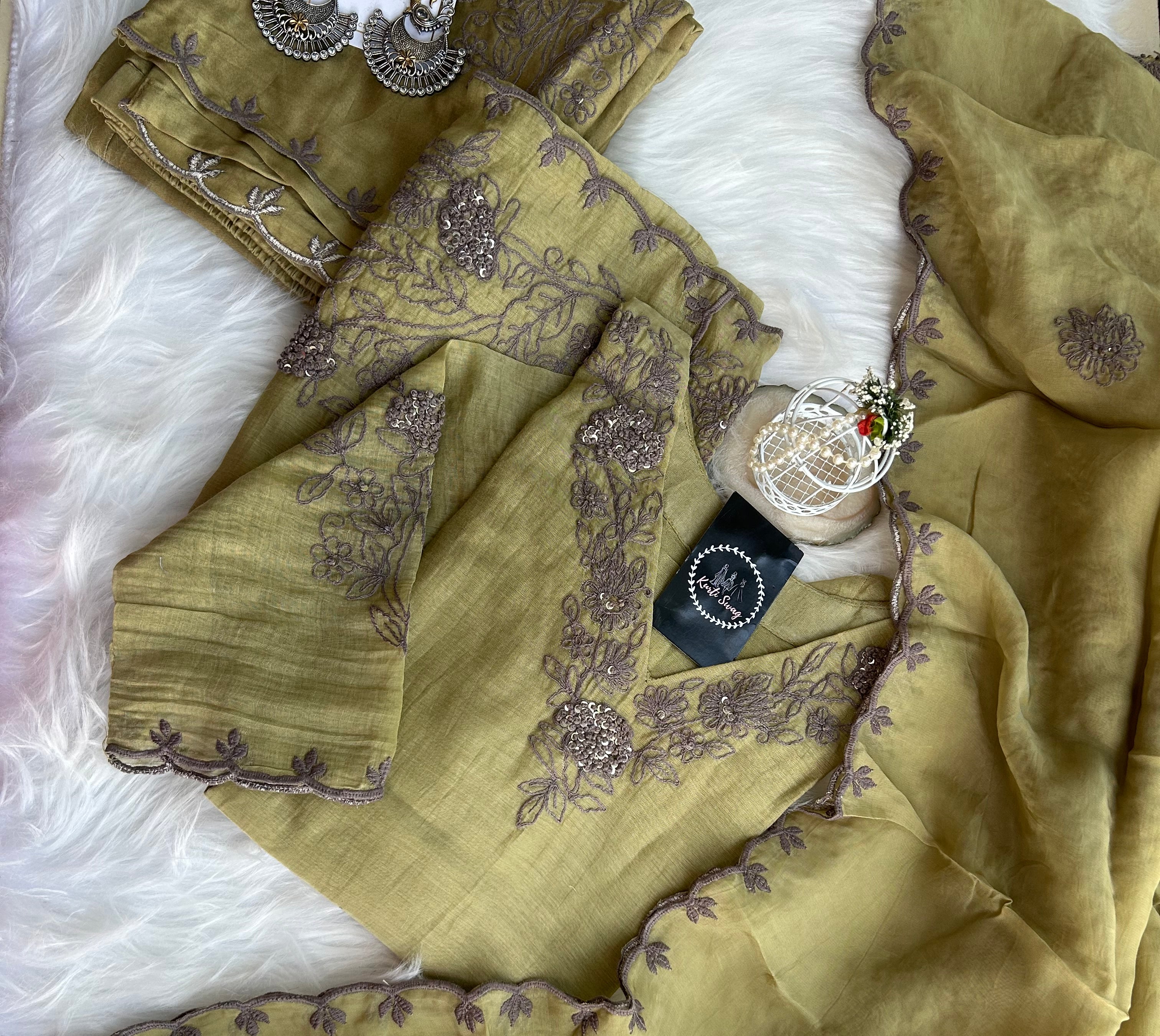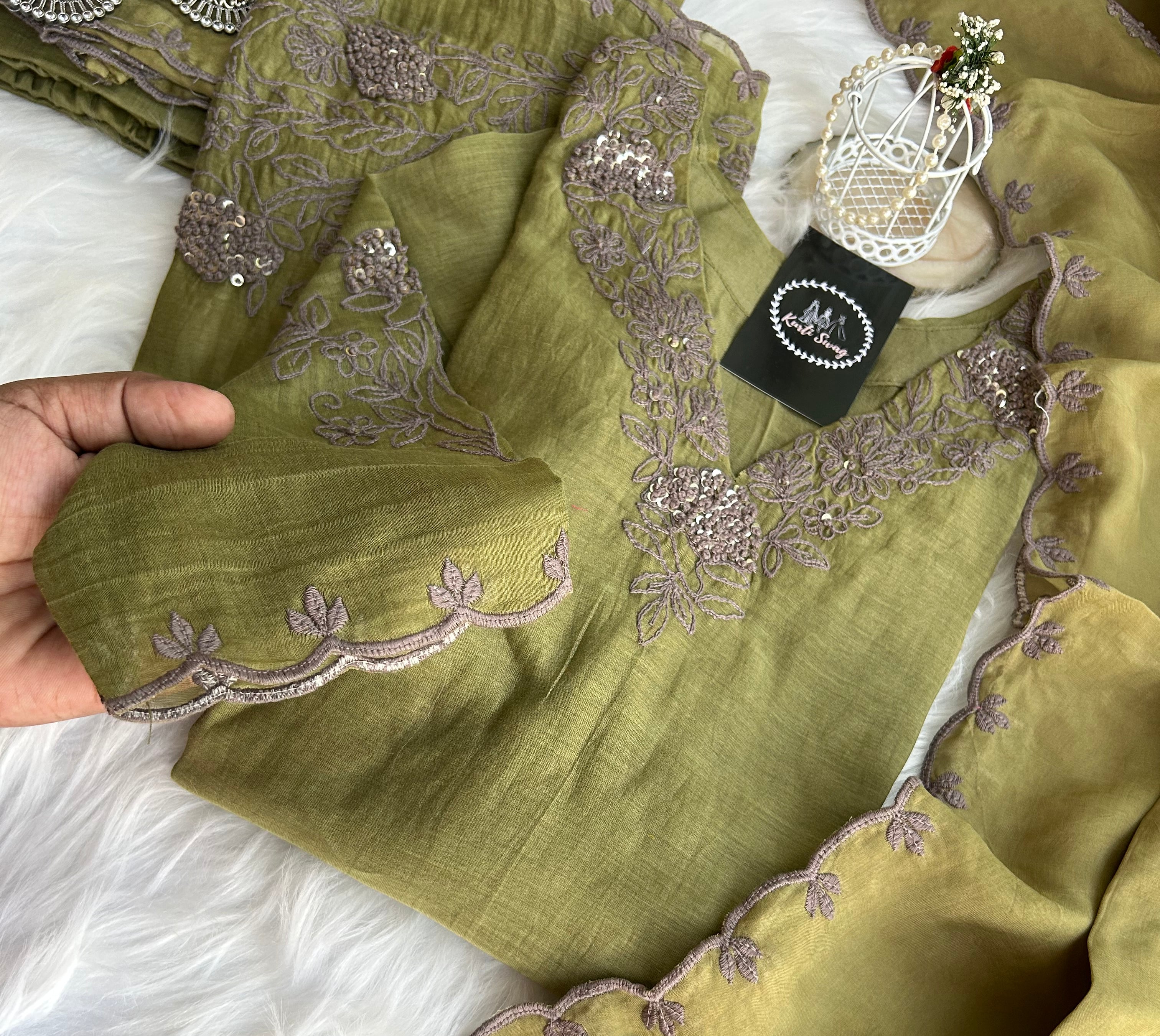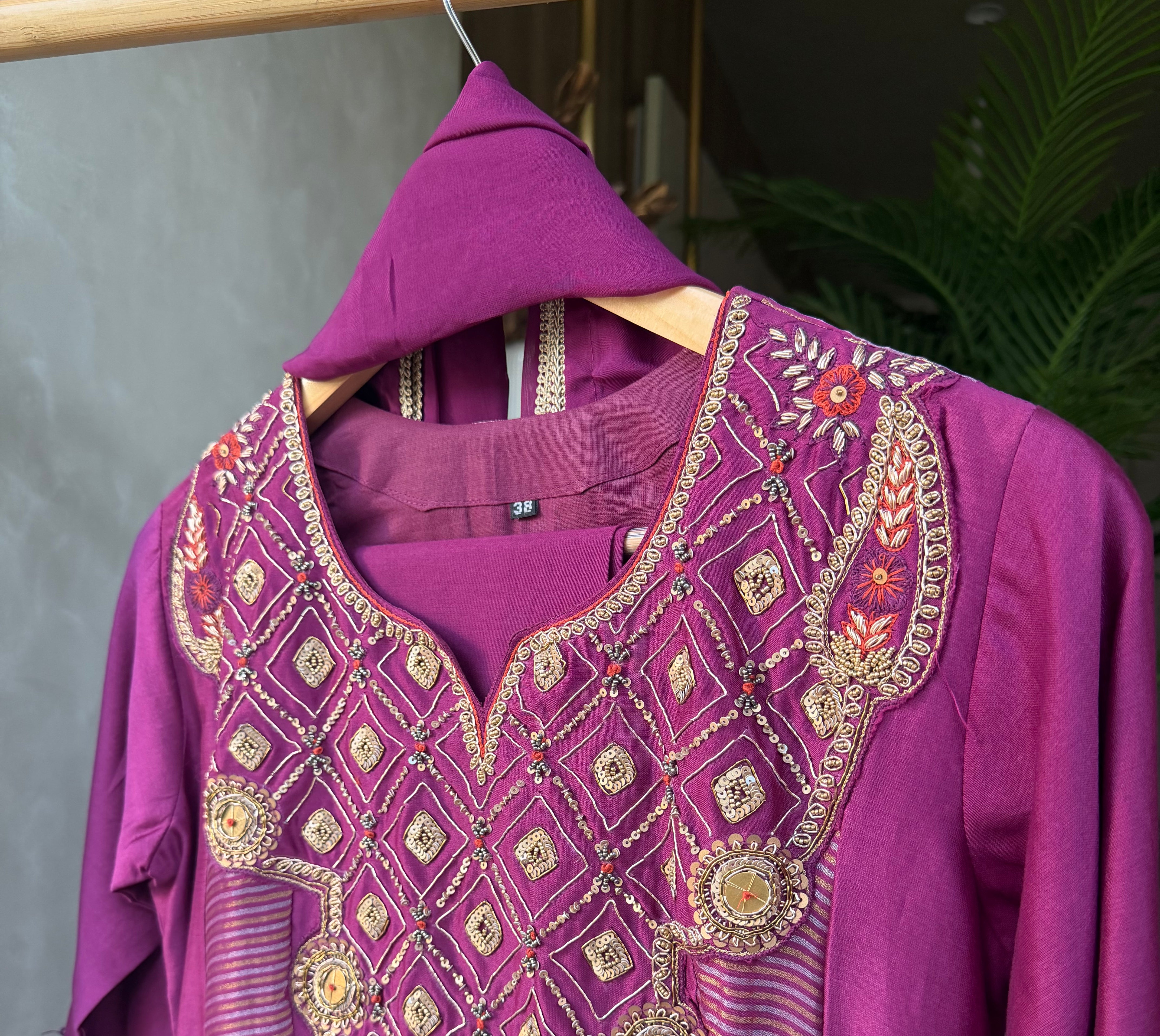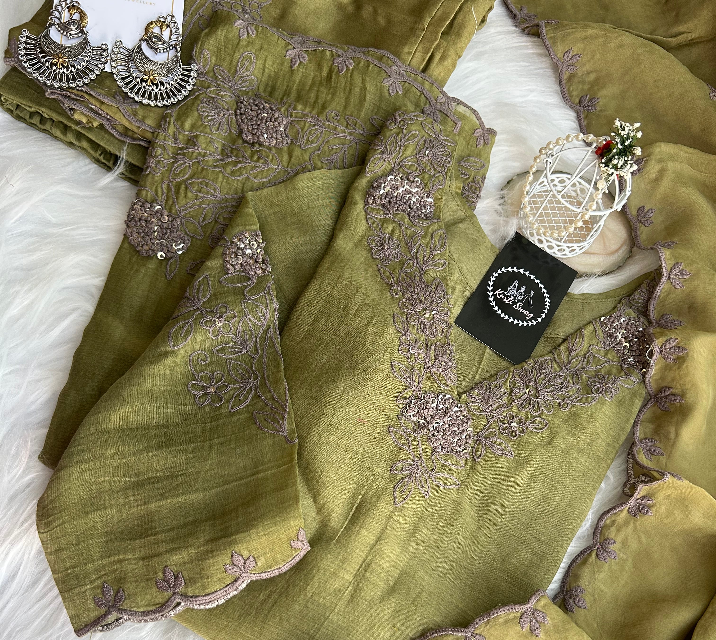 “NIRAYA” Premium Mul Chanderi Antique Handwork Suit Set ✨💕