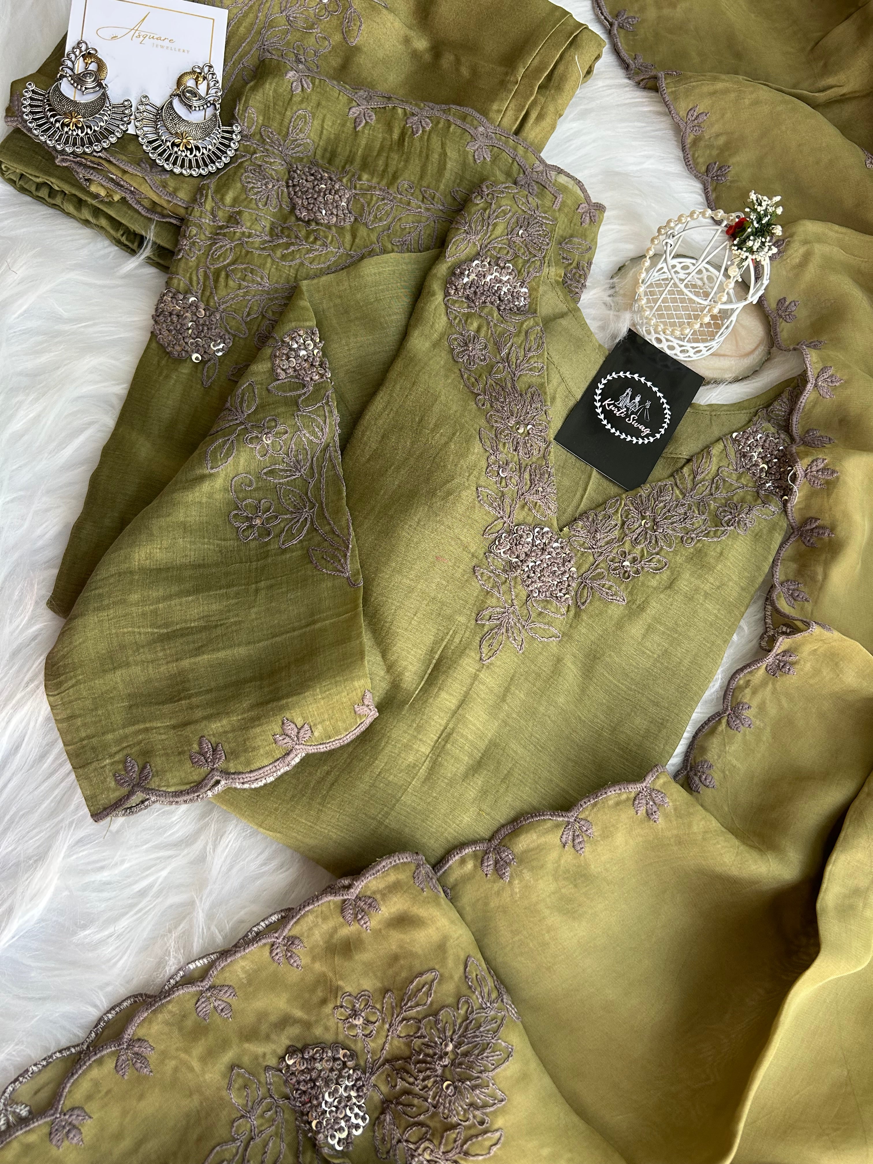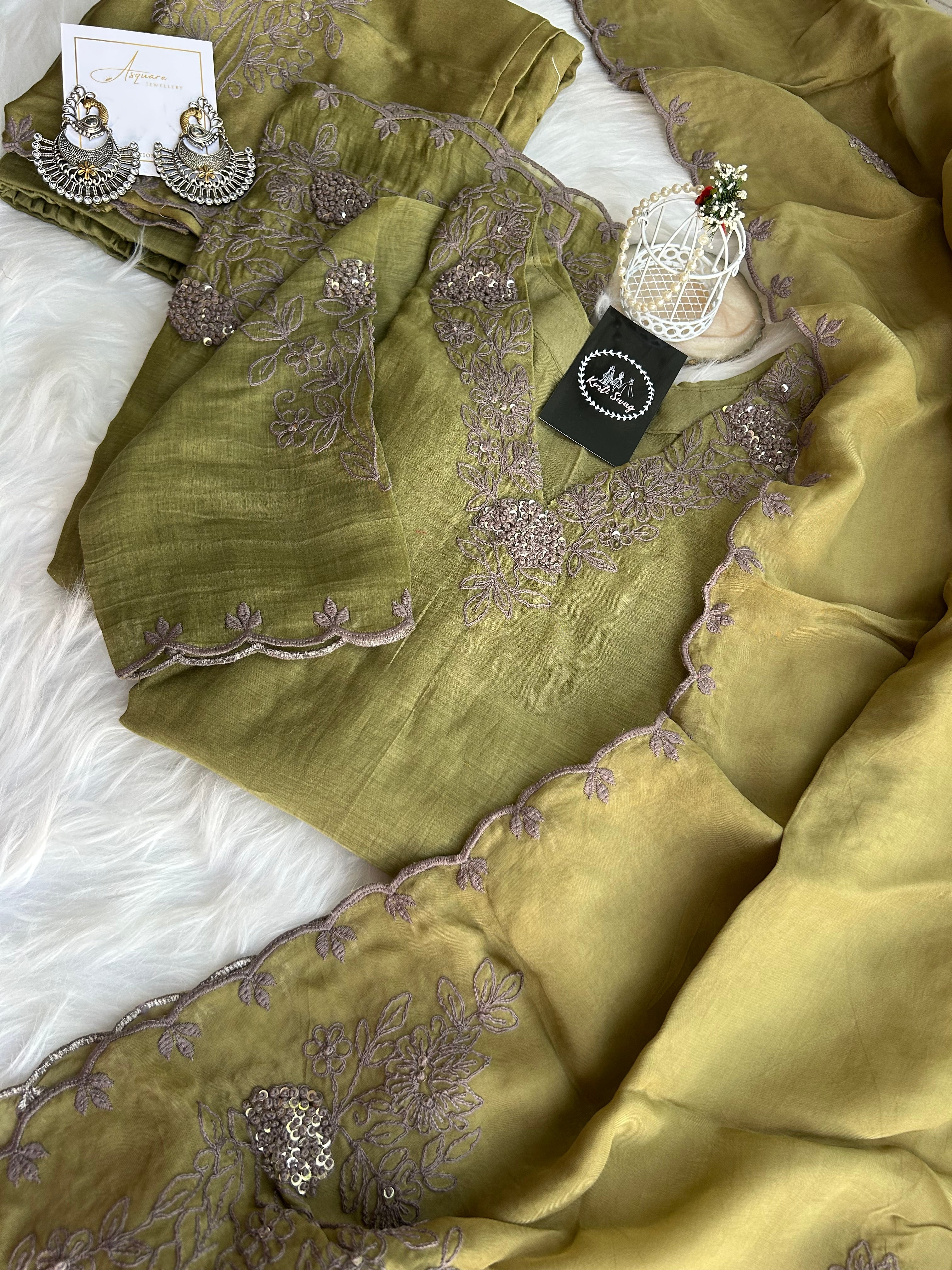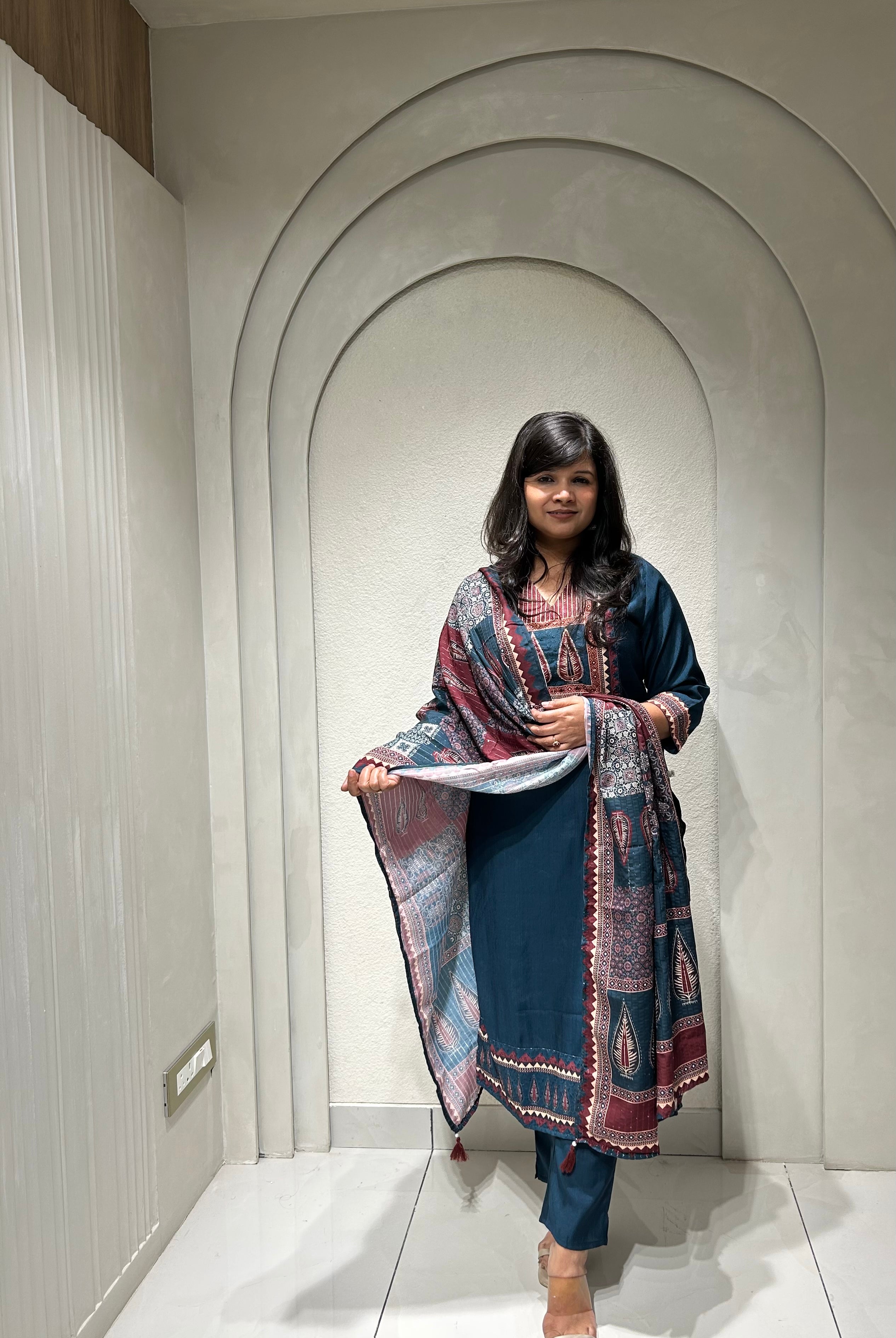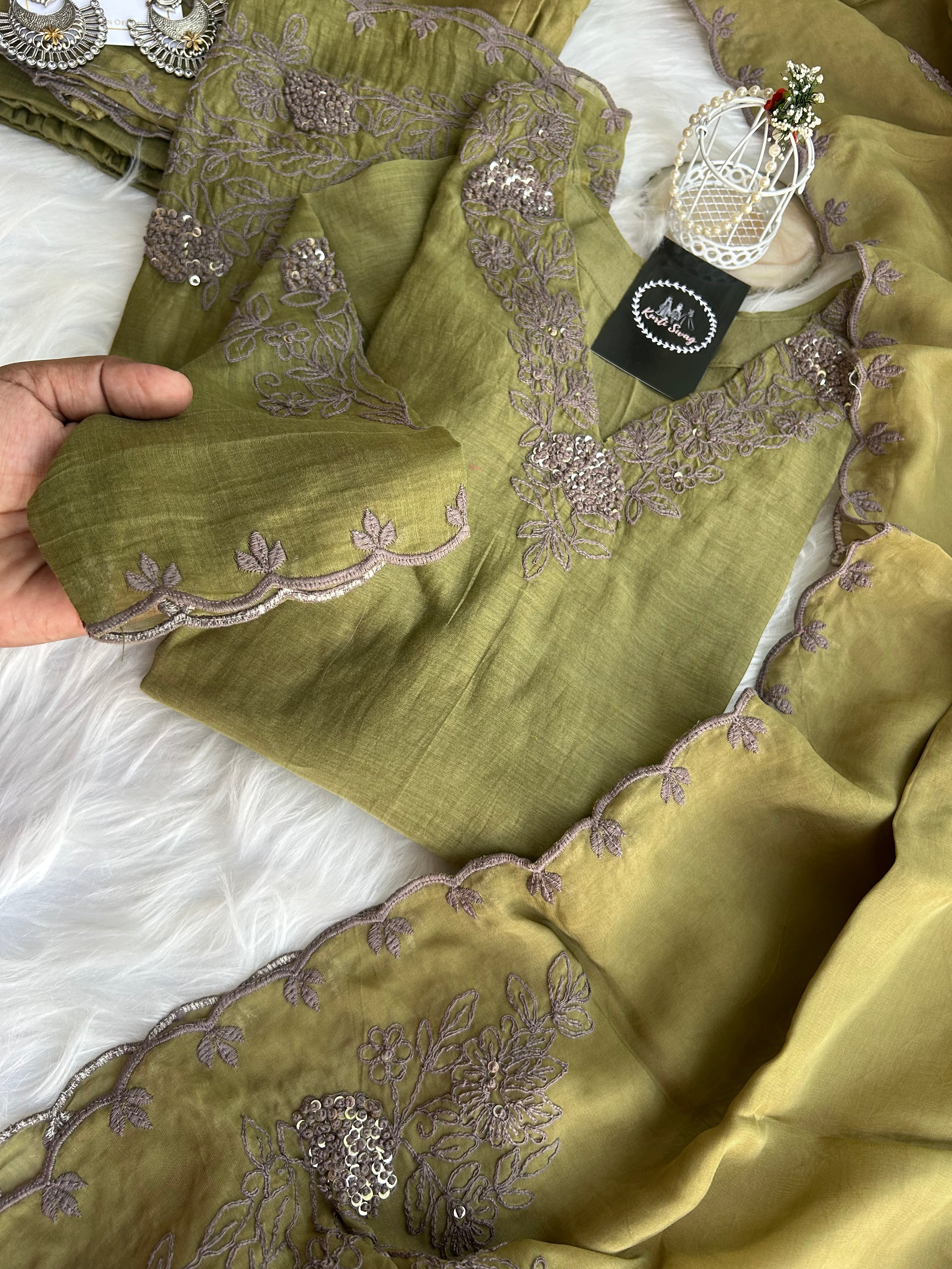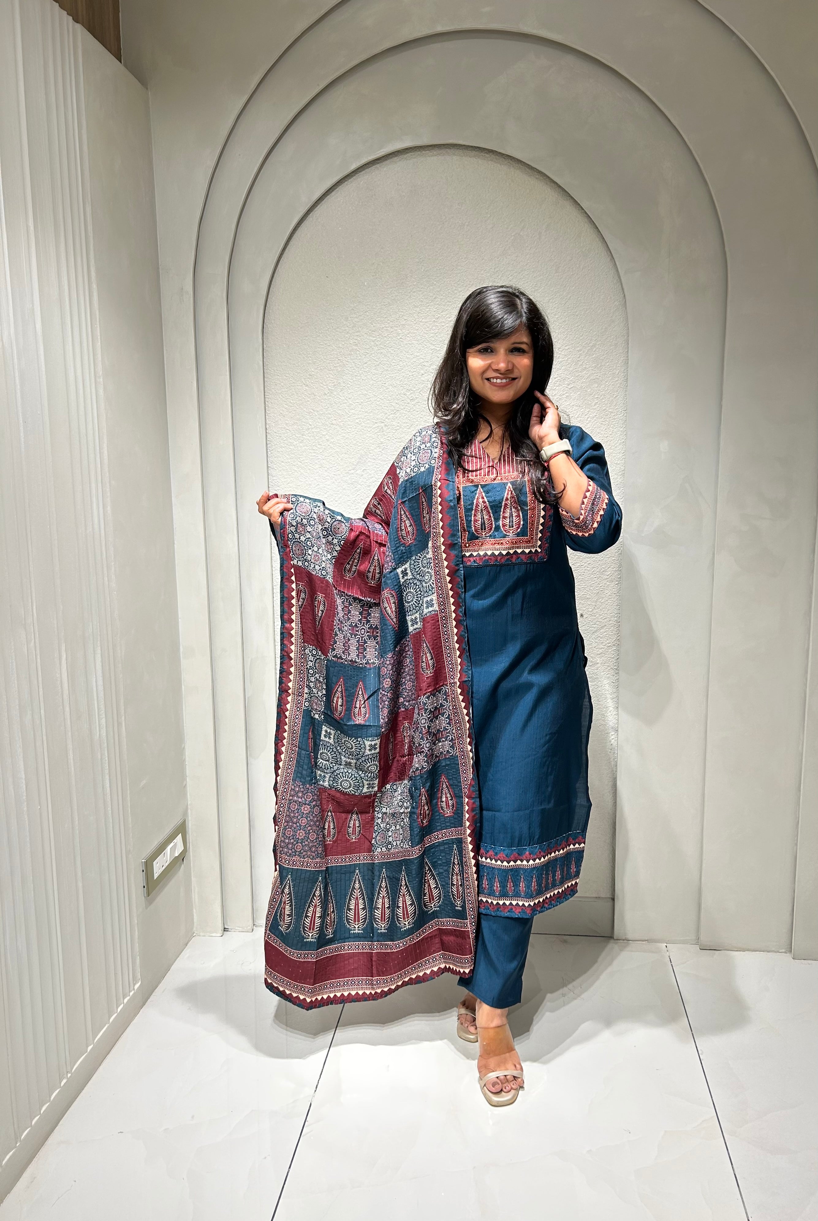 “NIRAYA” Premium Mul Chanderi Antique Handwork Suit Set ✨💕