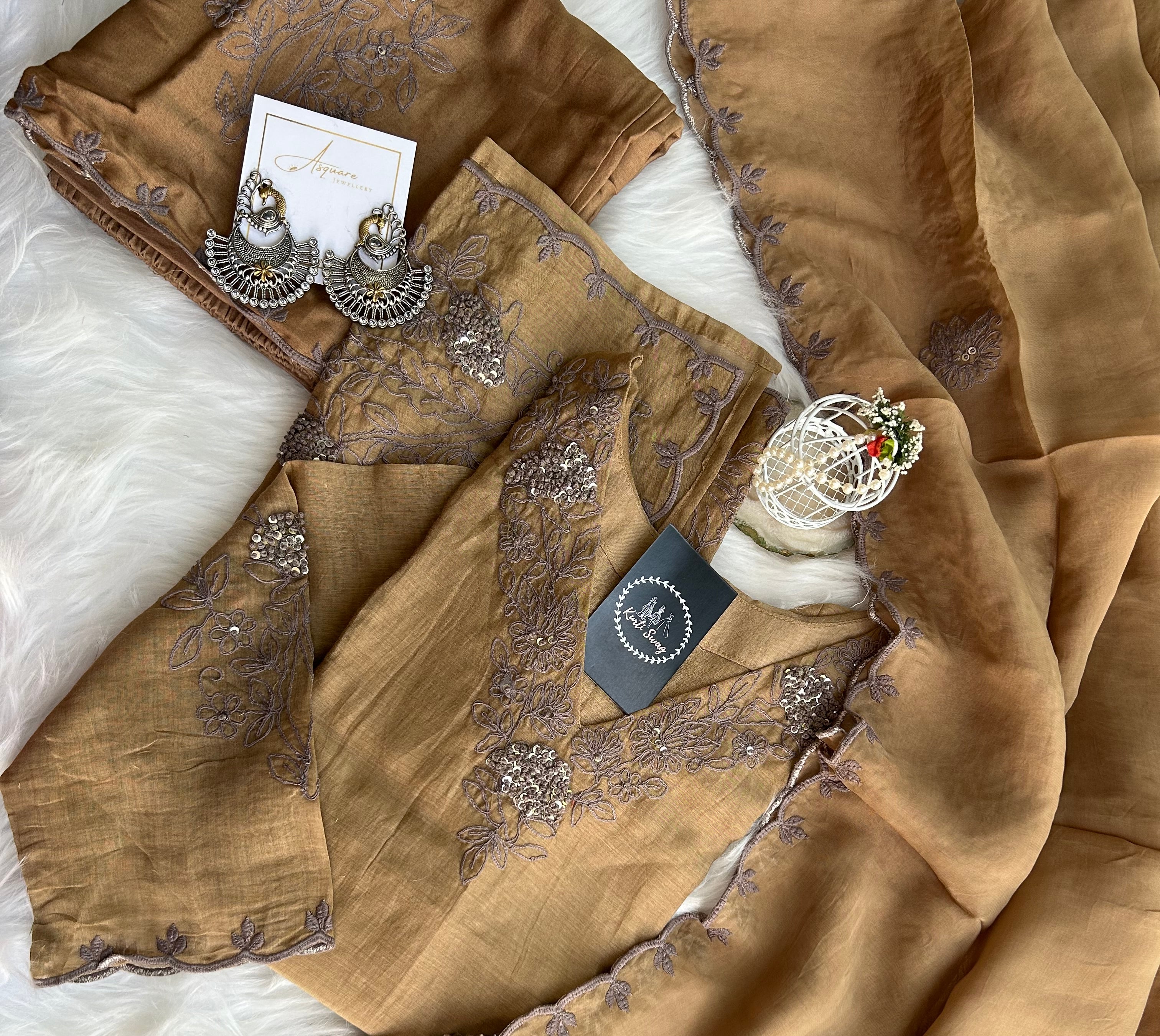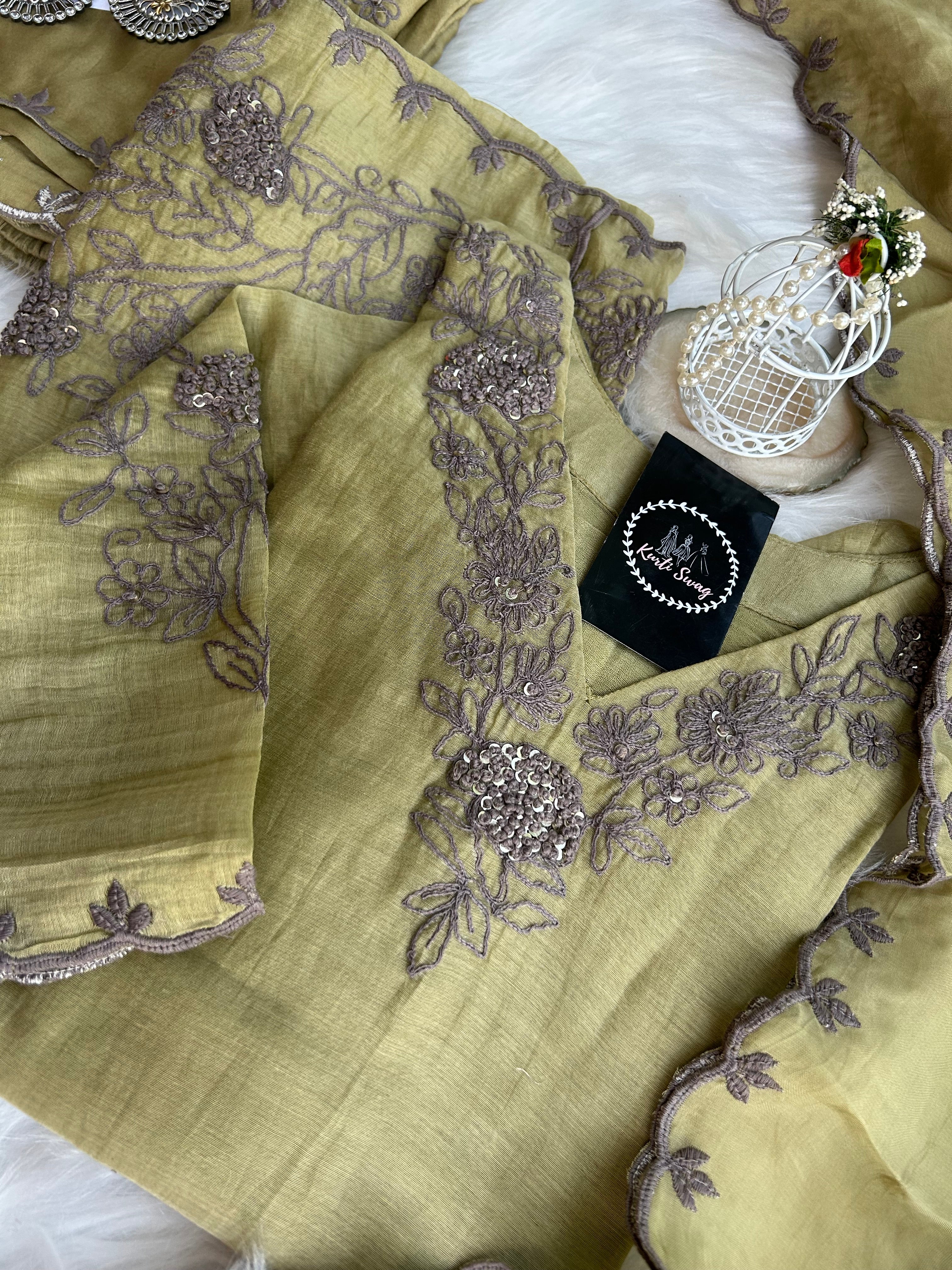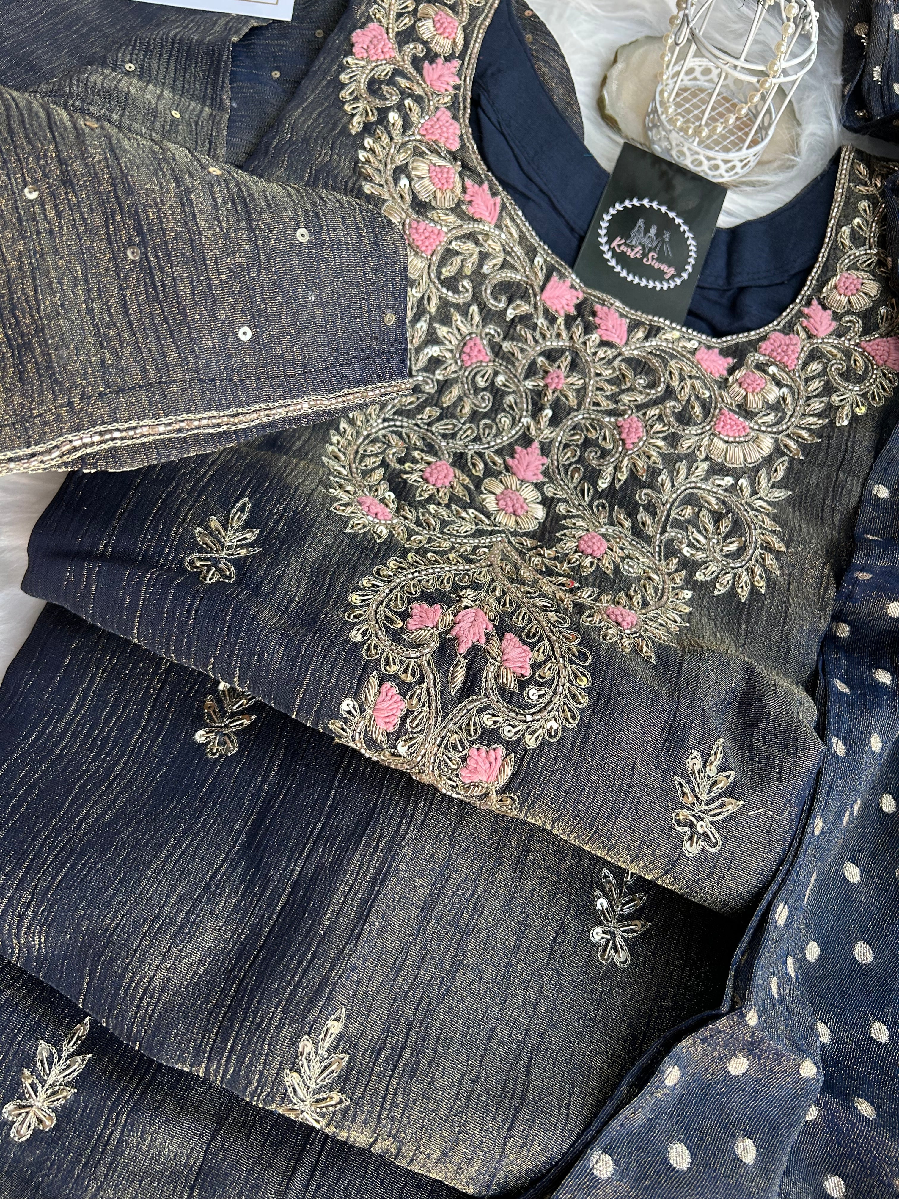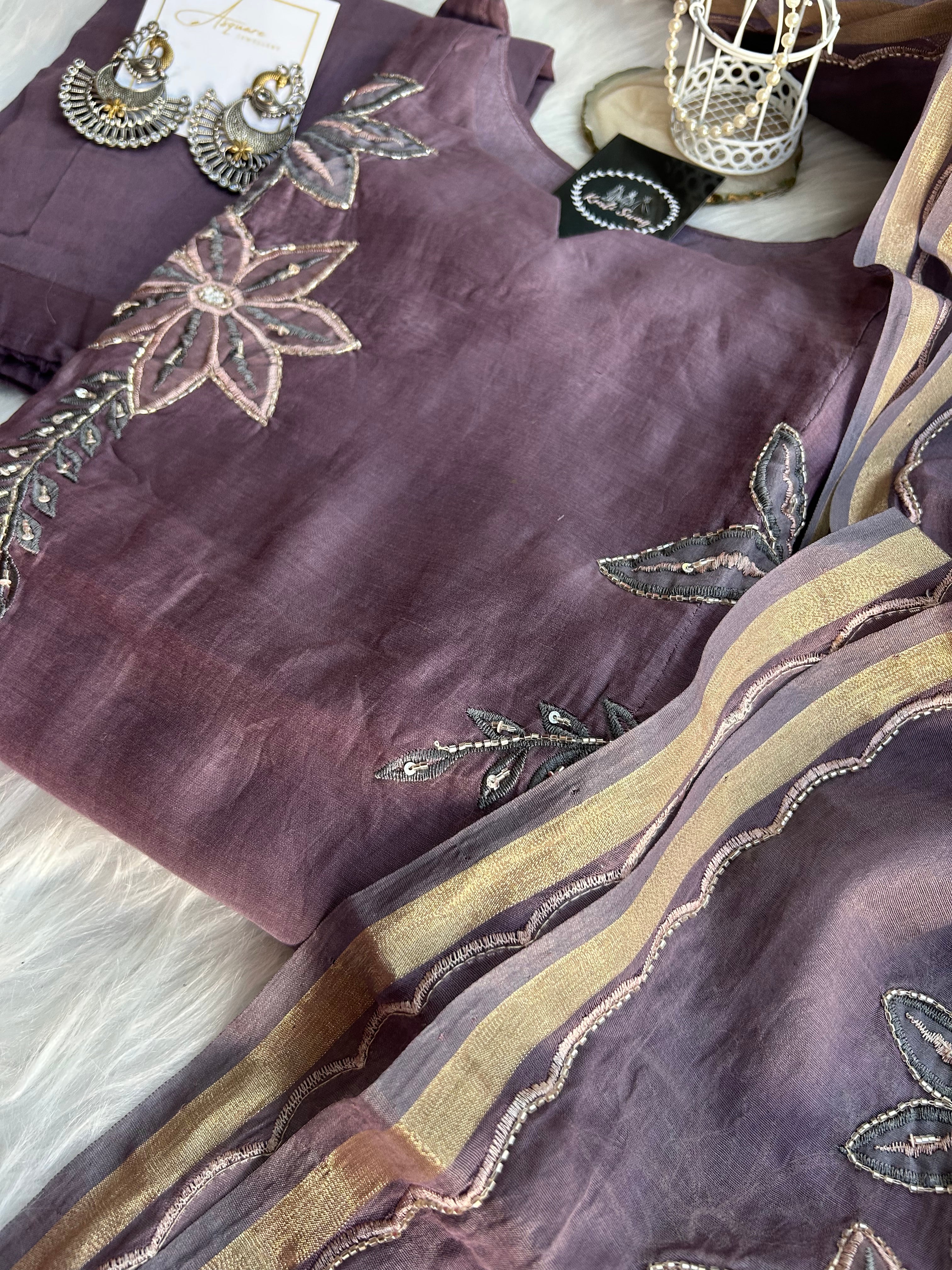 “KADAMBARI” Mul Chanderi Zardosi Work Suit Set ✨