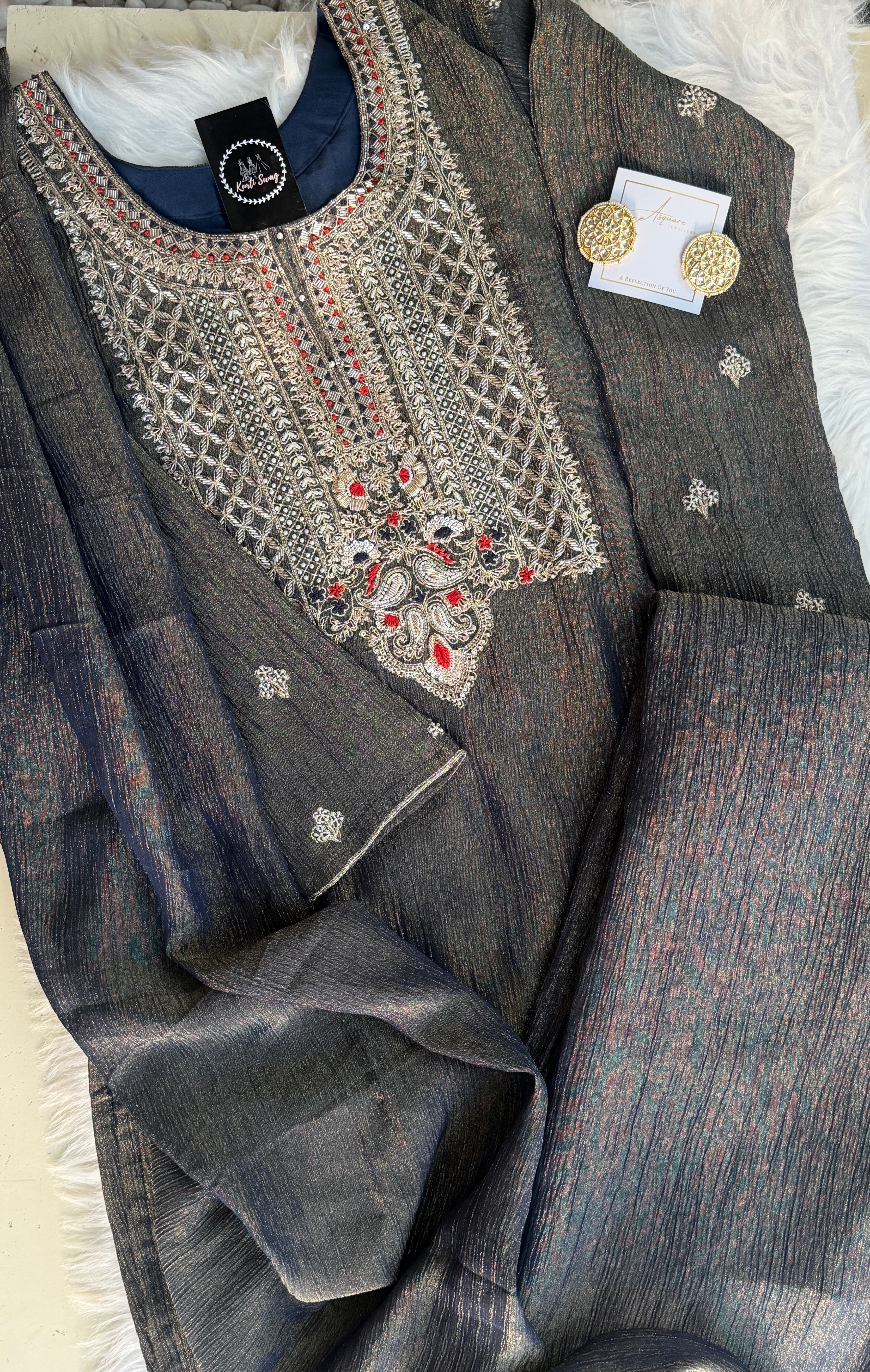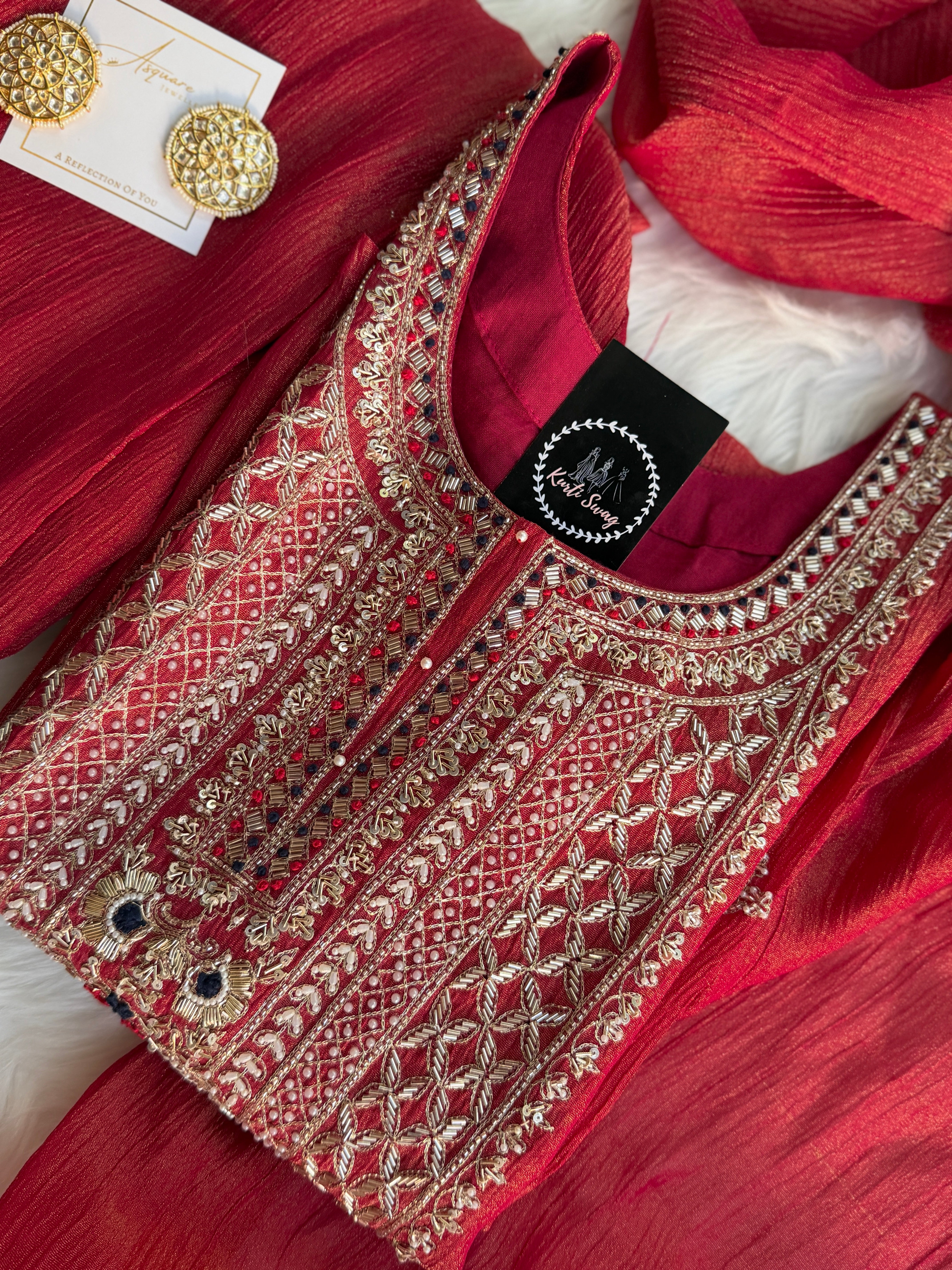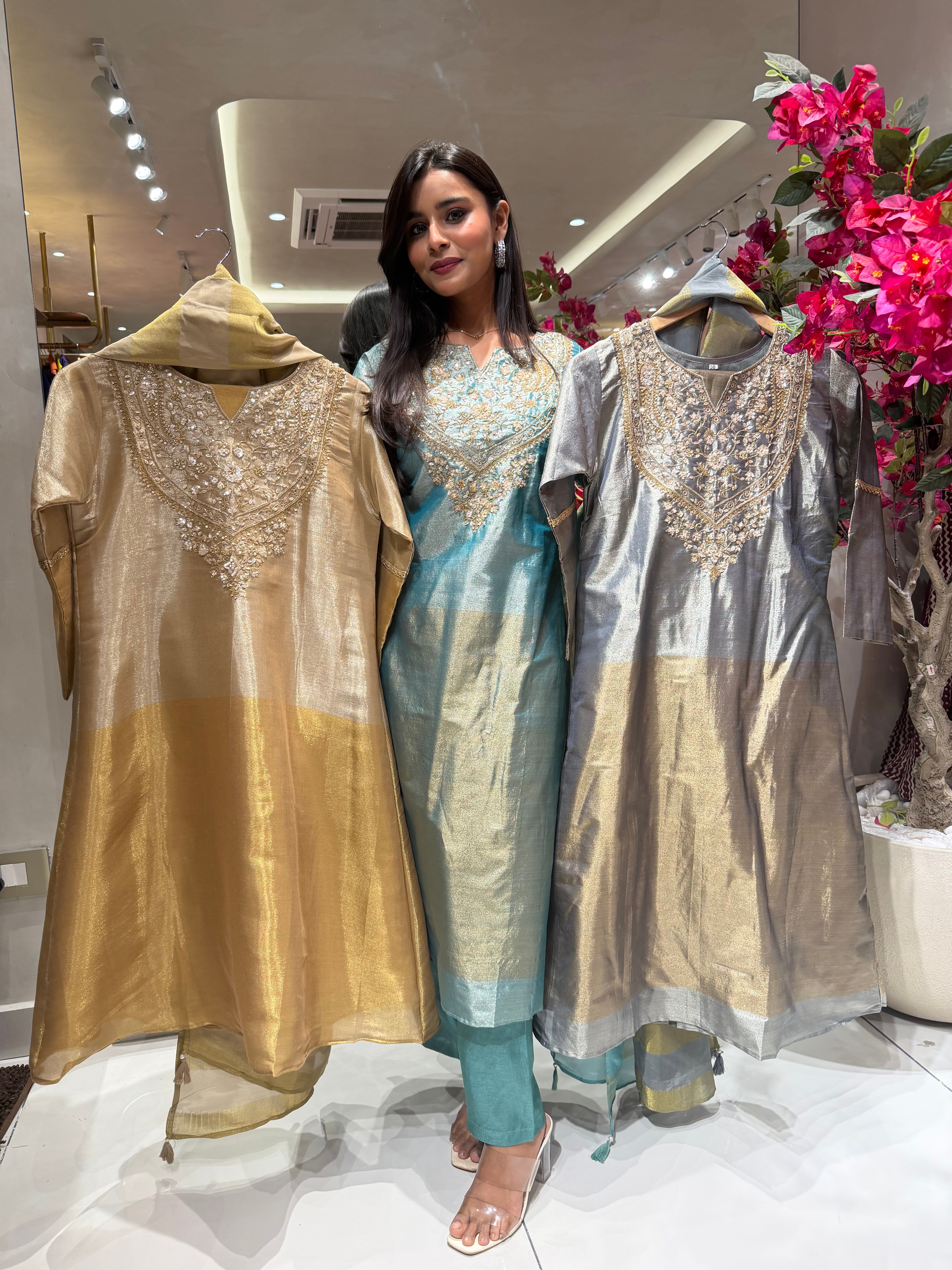 “REHMAT” Premium Crush Tissue Anarkali Set ✨💕