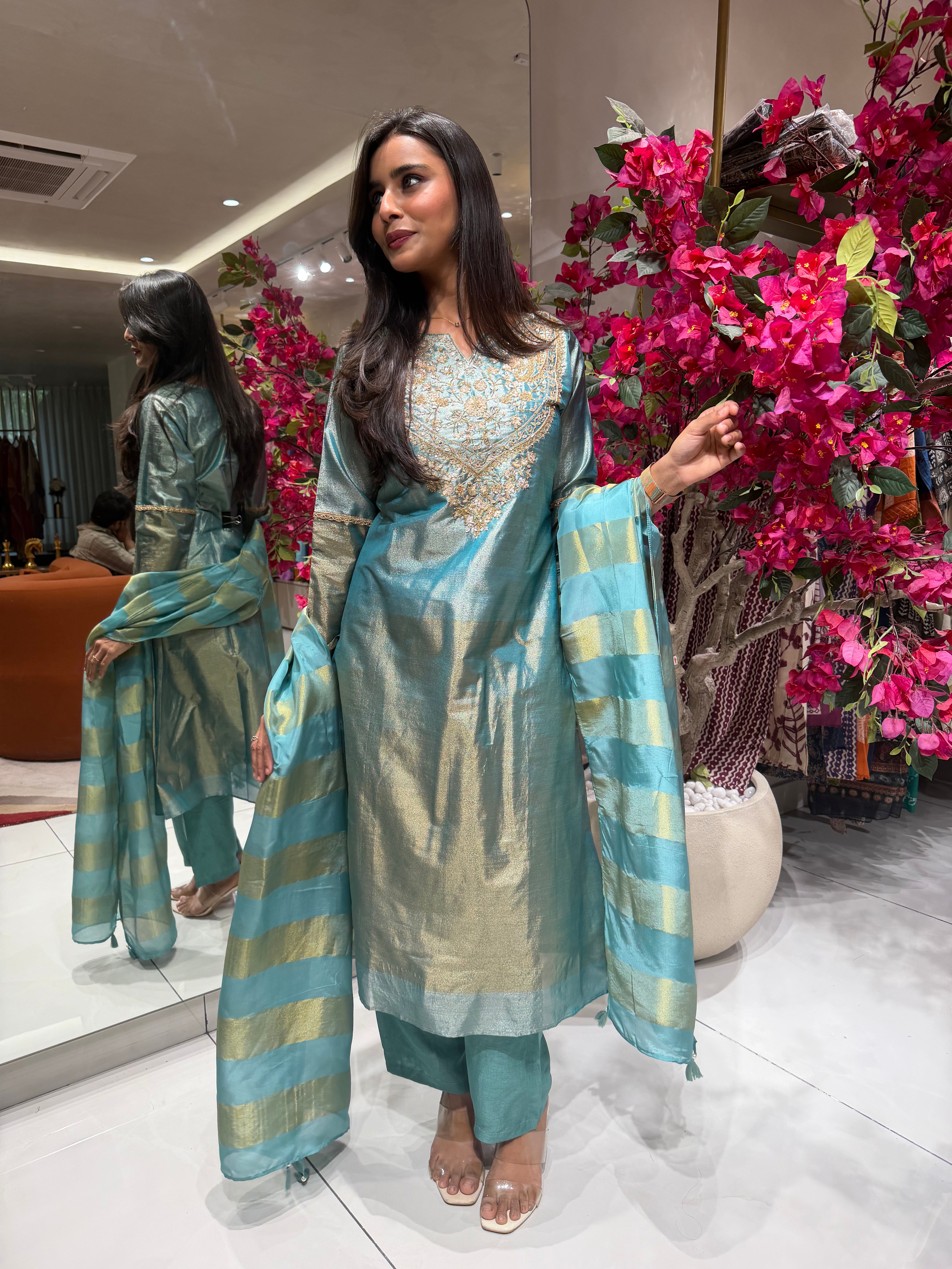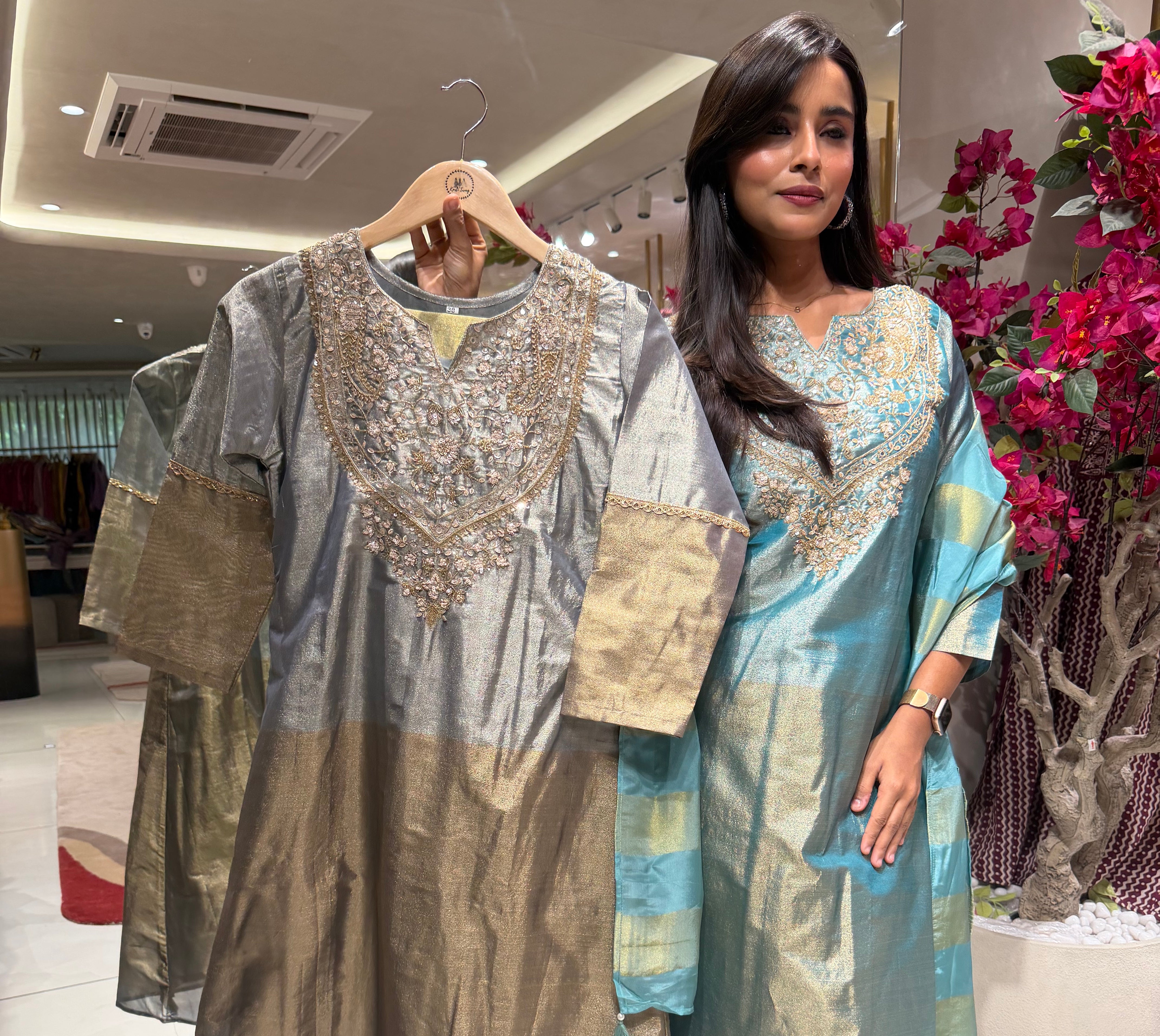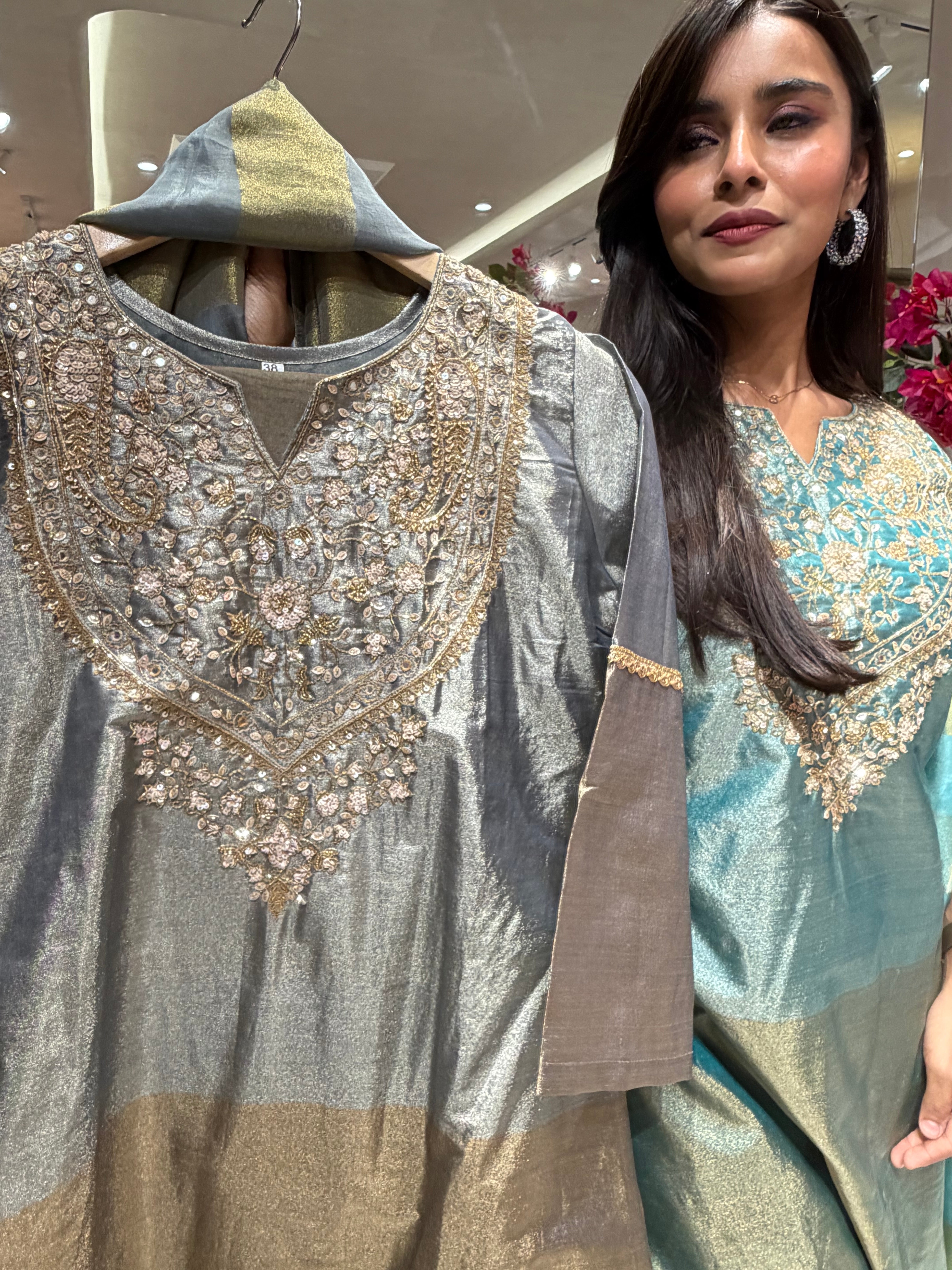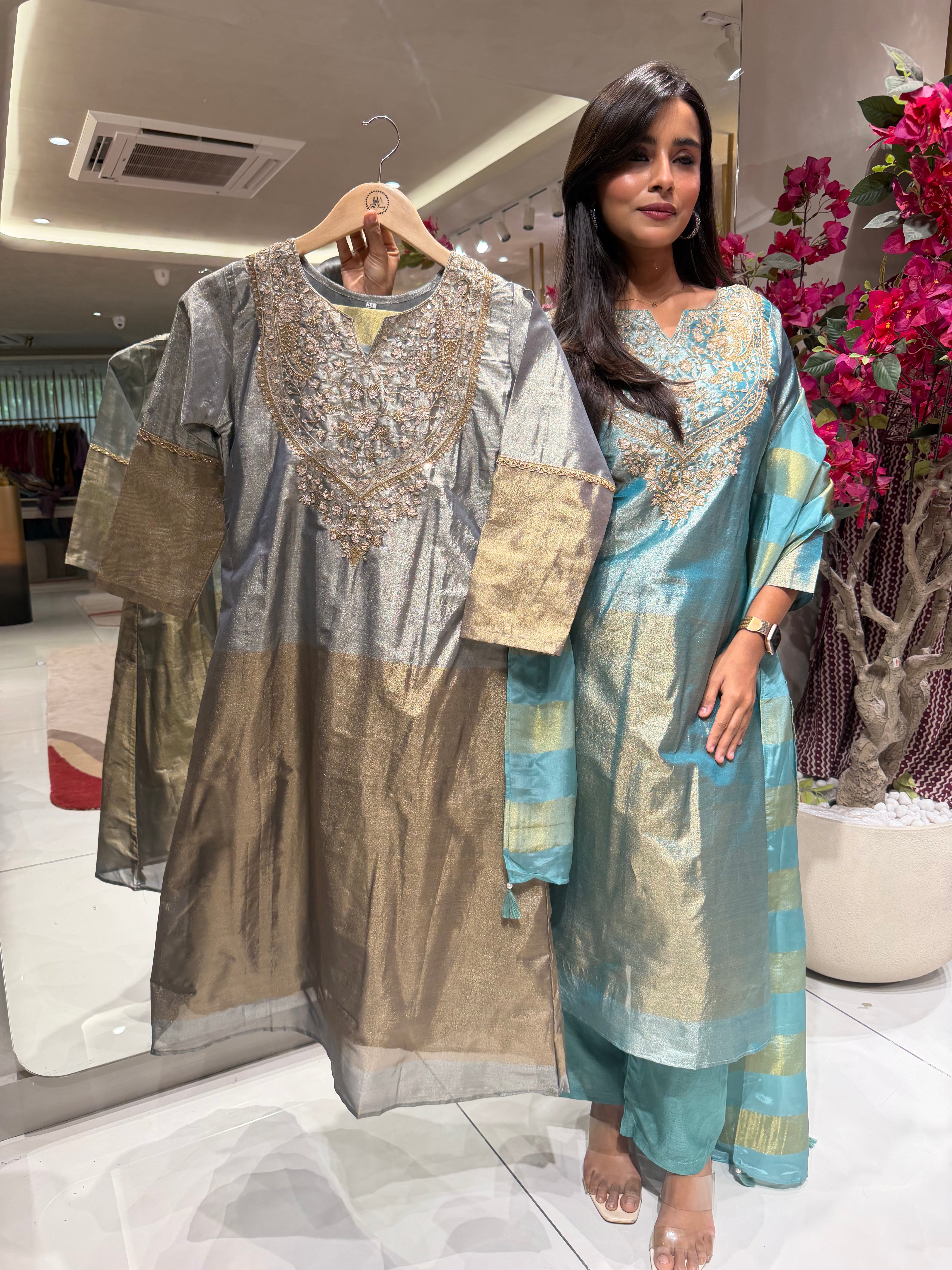 “REHMAT” Premium Crush Tissue Anarkali Set ✨💕