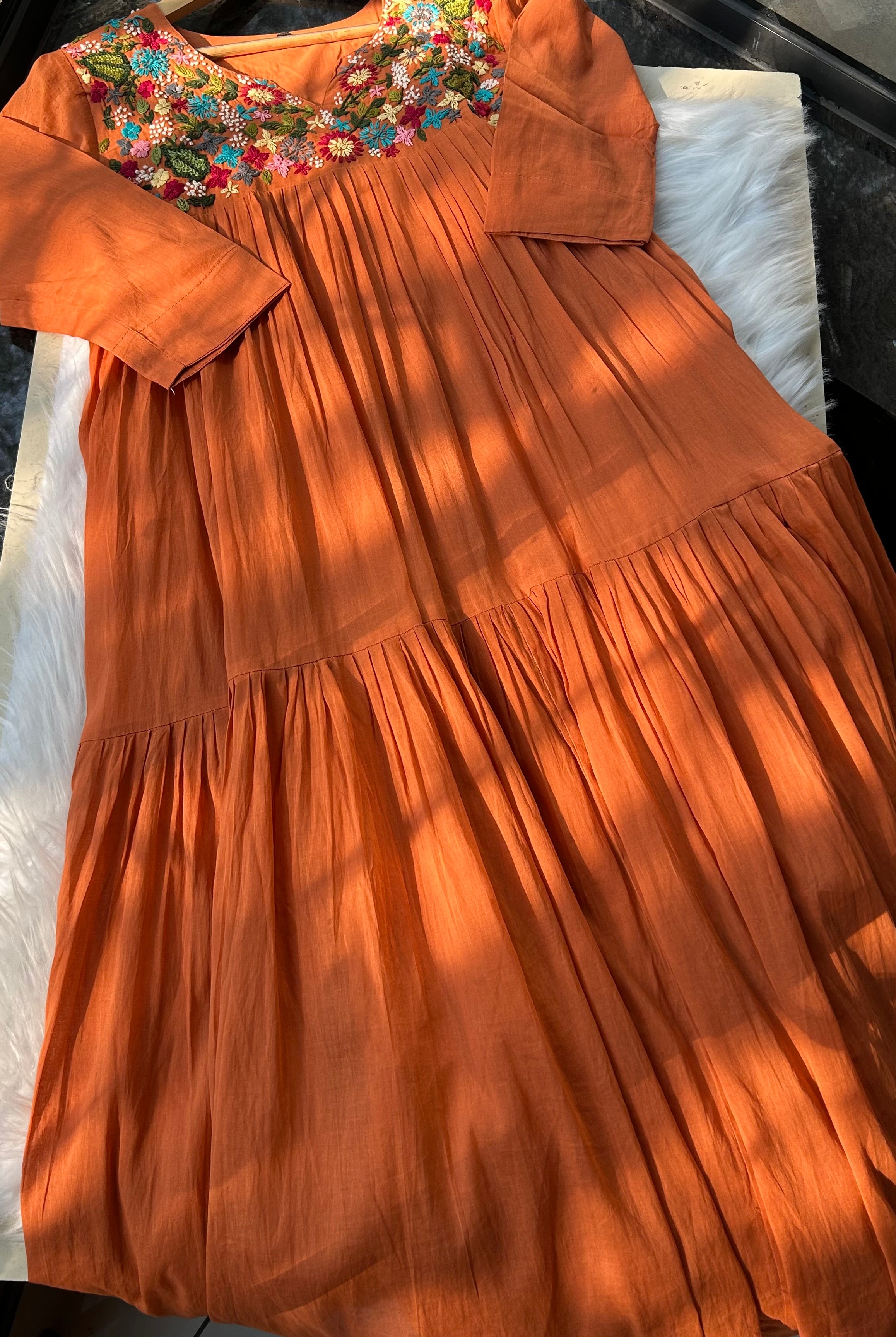 Hi Team, I received that rest today and my mind has blown away. It's so so beautiful !! The colour, the embroidery !! Me and my mom loved it and I wasn't expecting such a fast delivery. Would definitely shop again !!