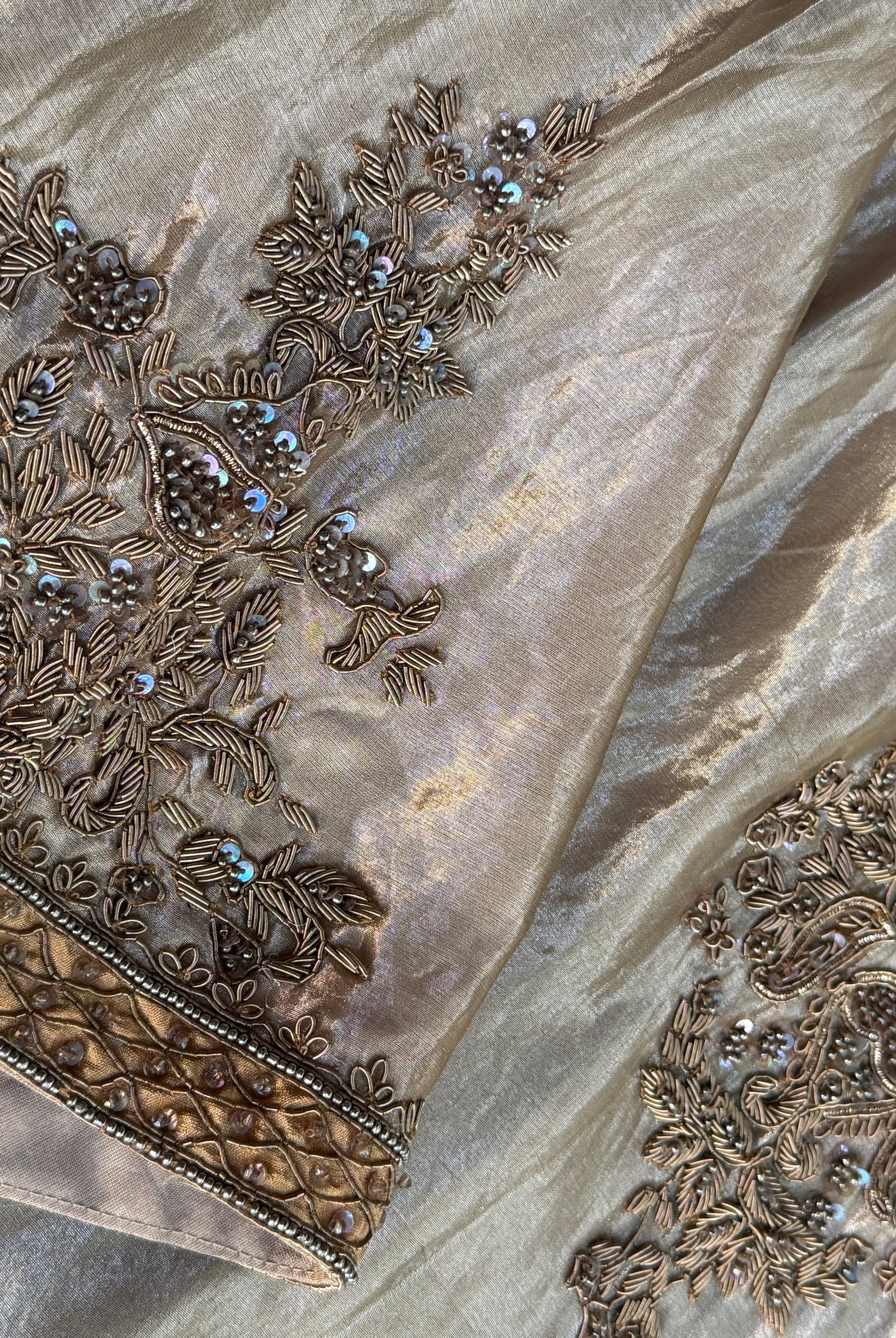 Champagne gold / muted antique gold shade.