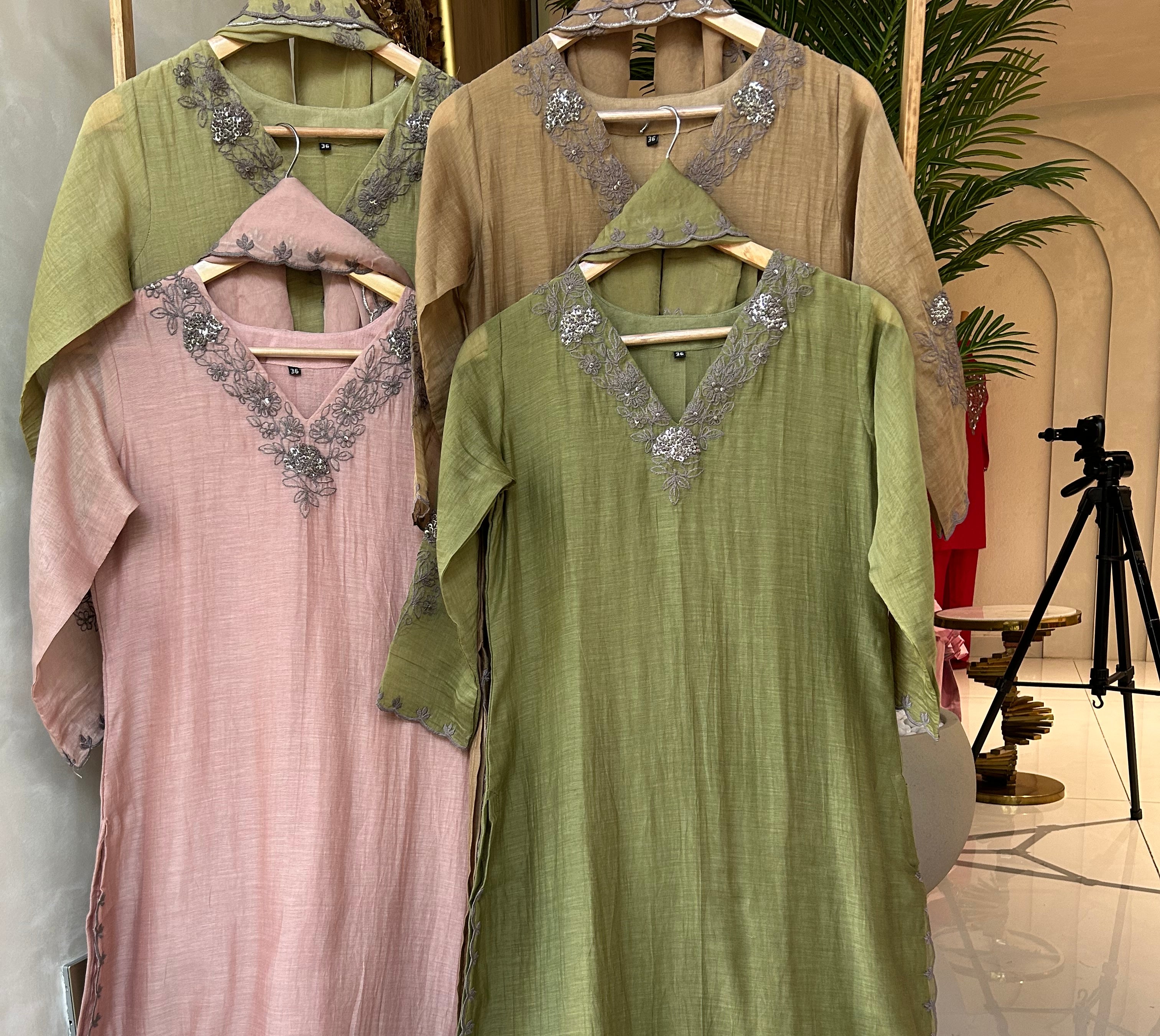 "JANVI" Premium Mul Chanderi Handloom Kurta Set🤍
