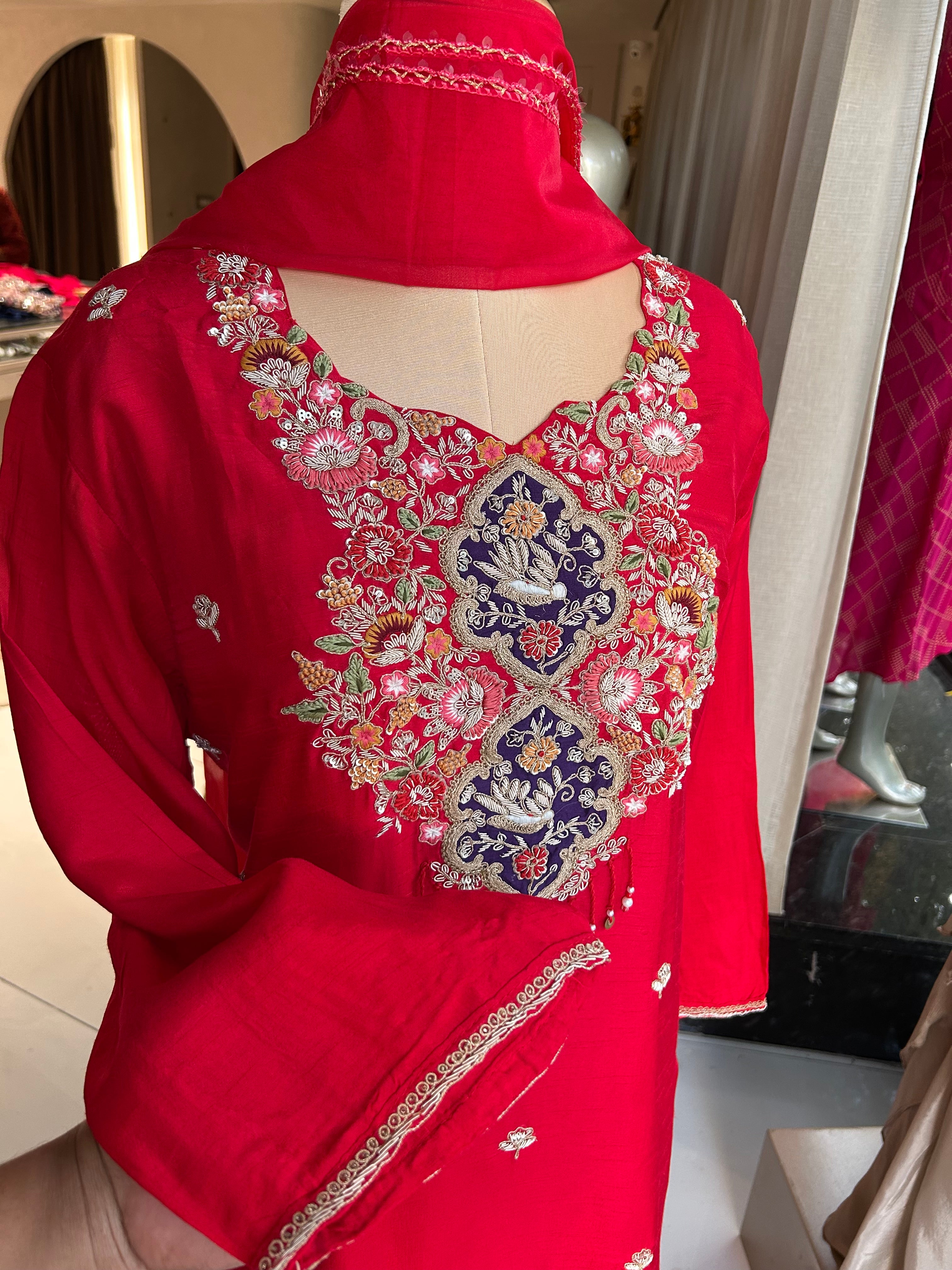 “ALANKAAR” Premium Mul Chanderi Thread Embroidered Suit Set ✨❤️✨
