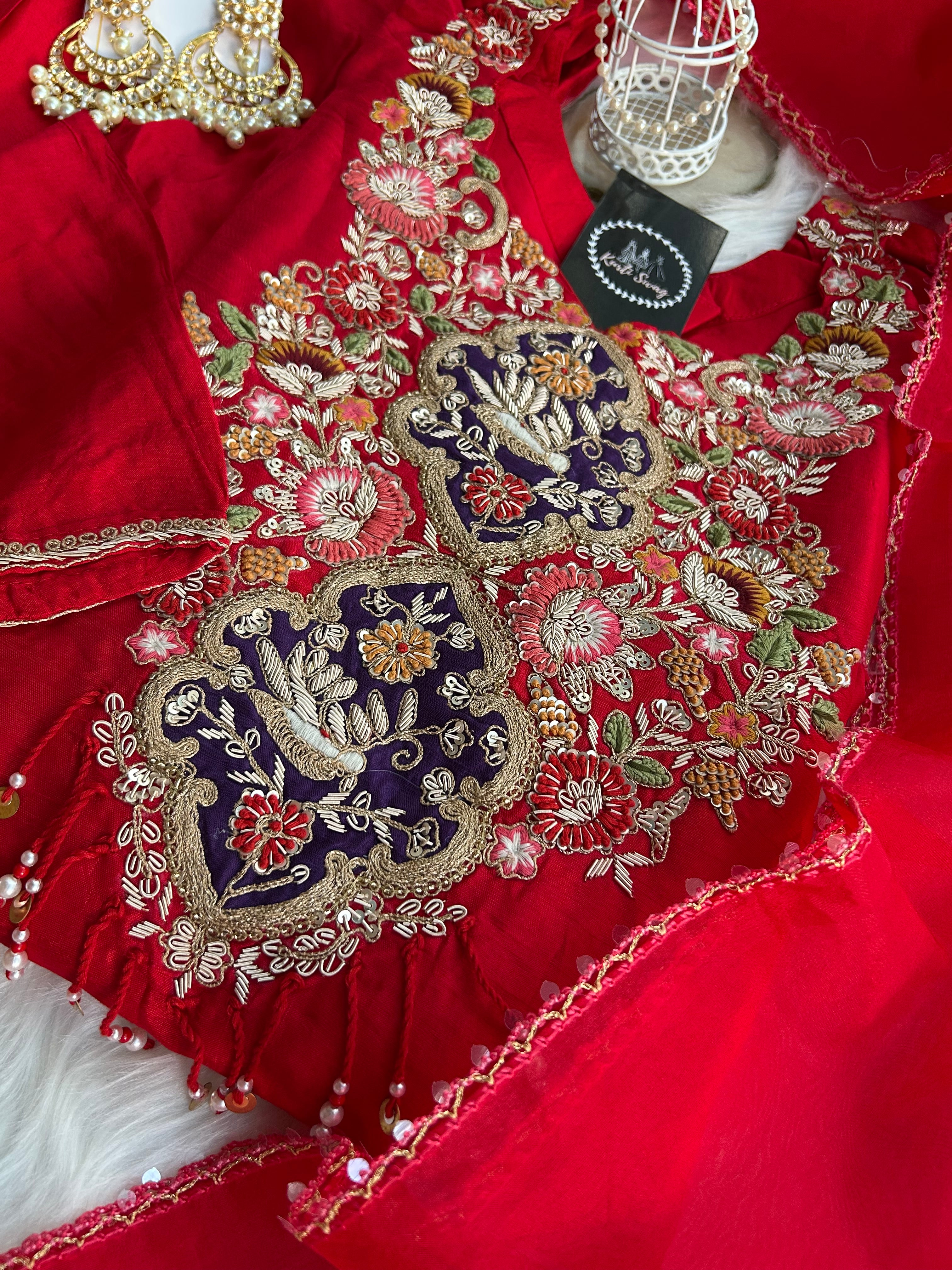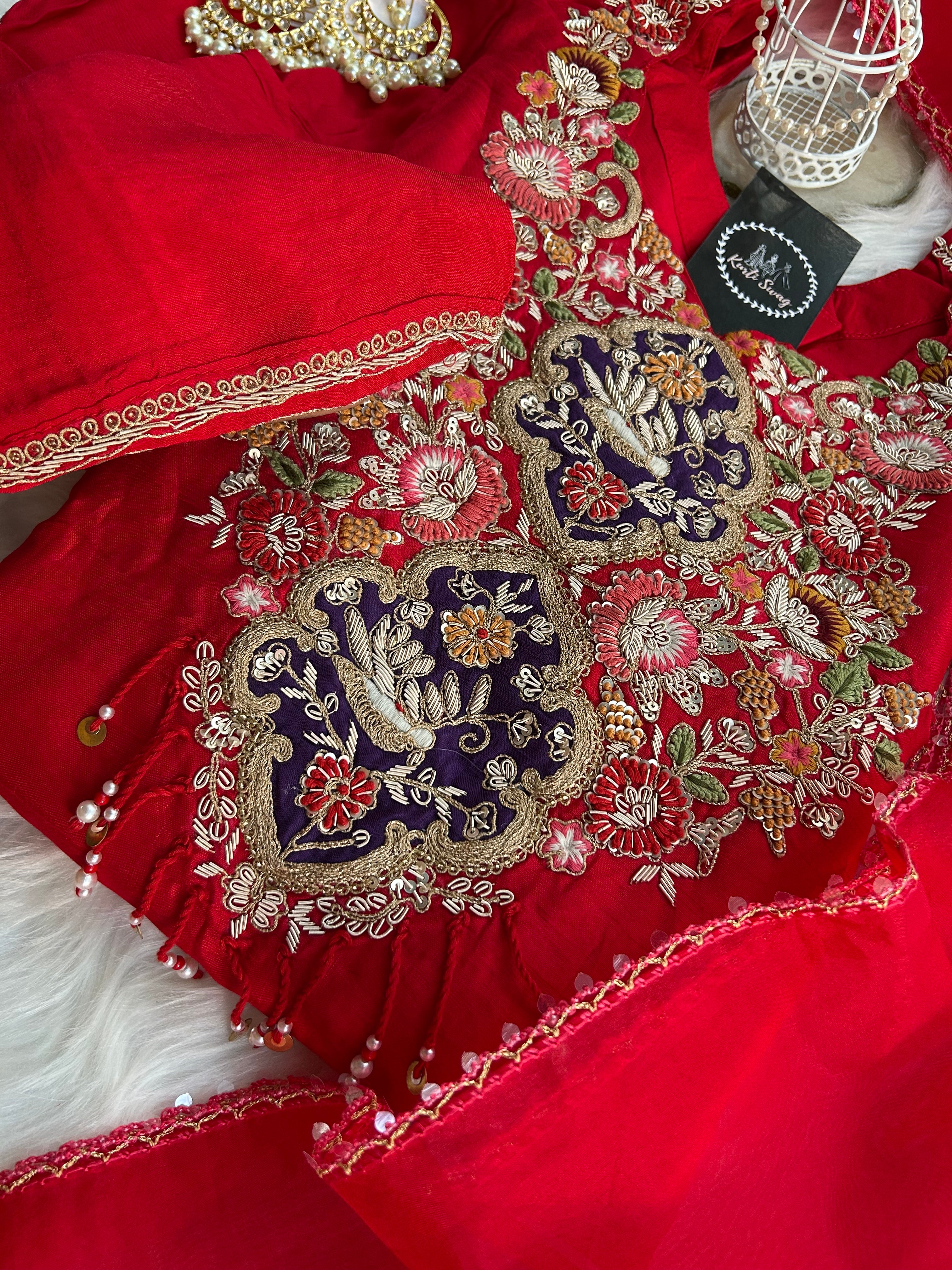 “MUL CHANDERI” Handwork Indo Western Flared Dress 👗✨