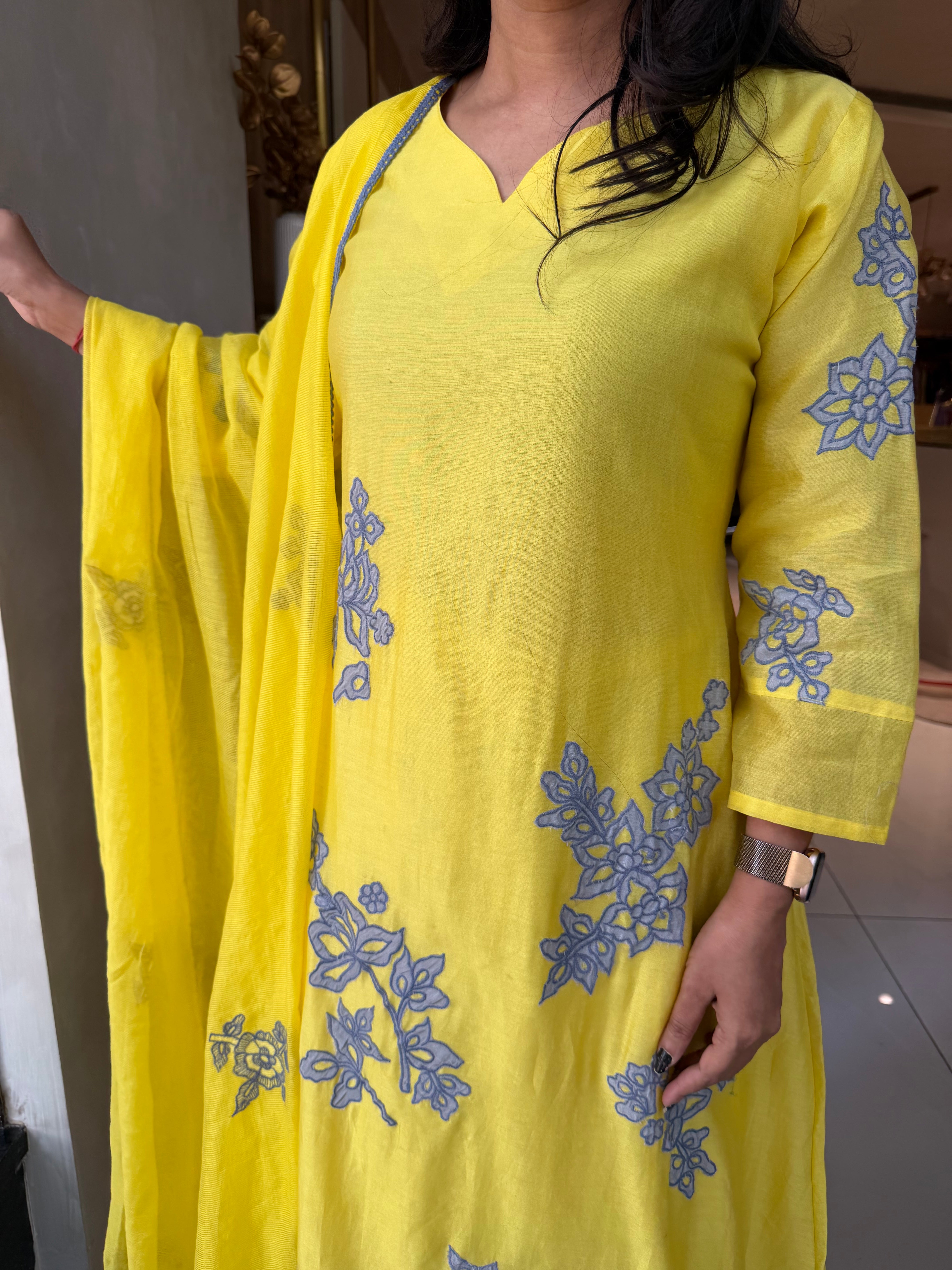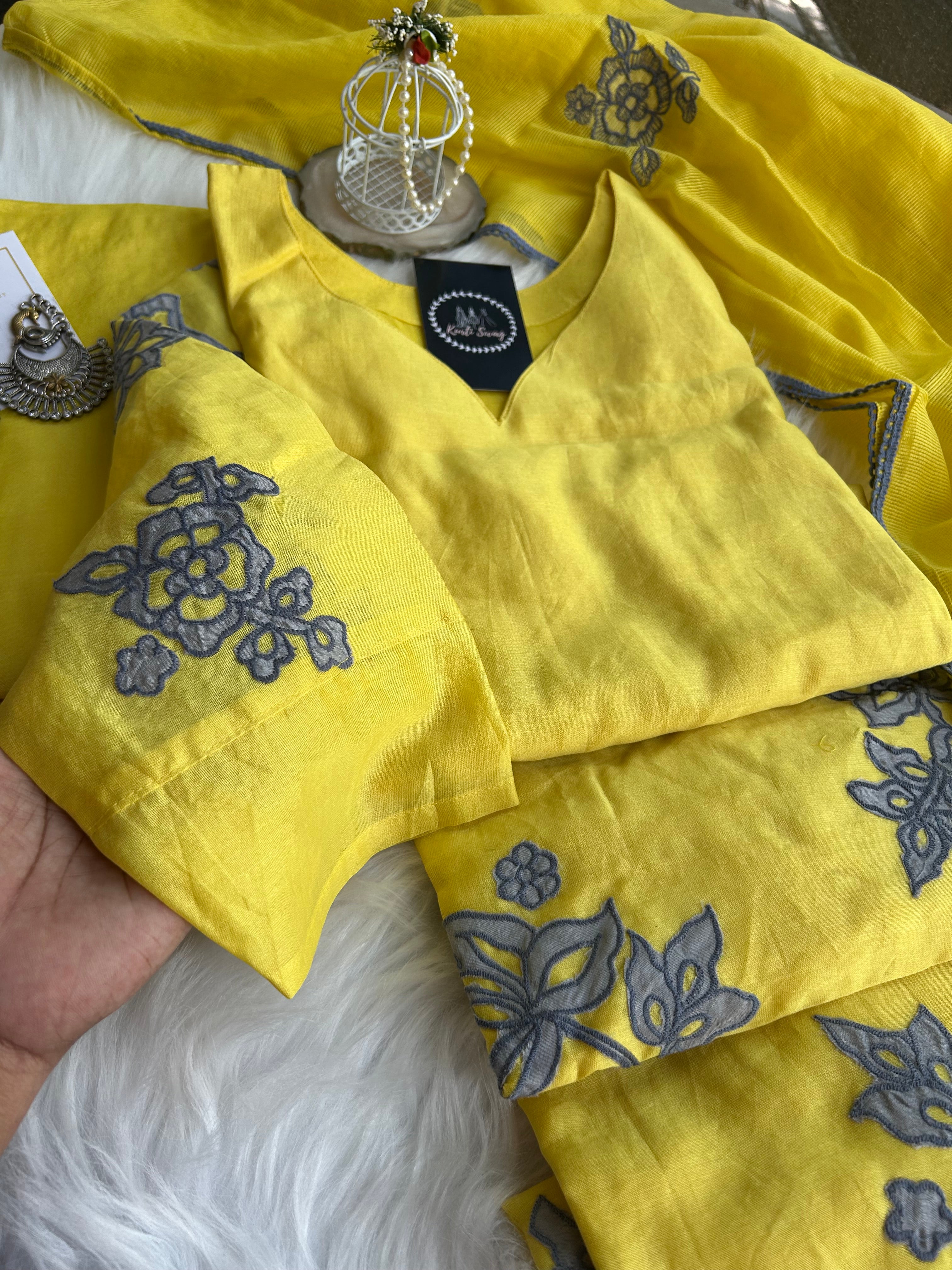 “NIKITA” Premium Mul Chanderi Applique A Line Suit Set ✨💕