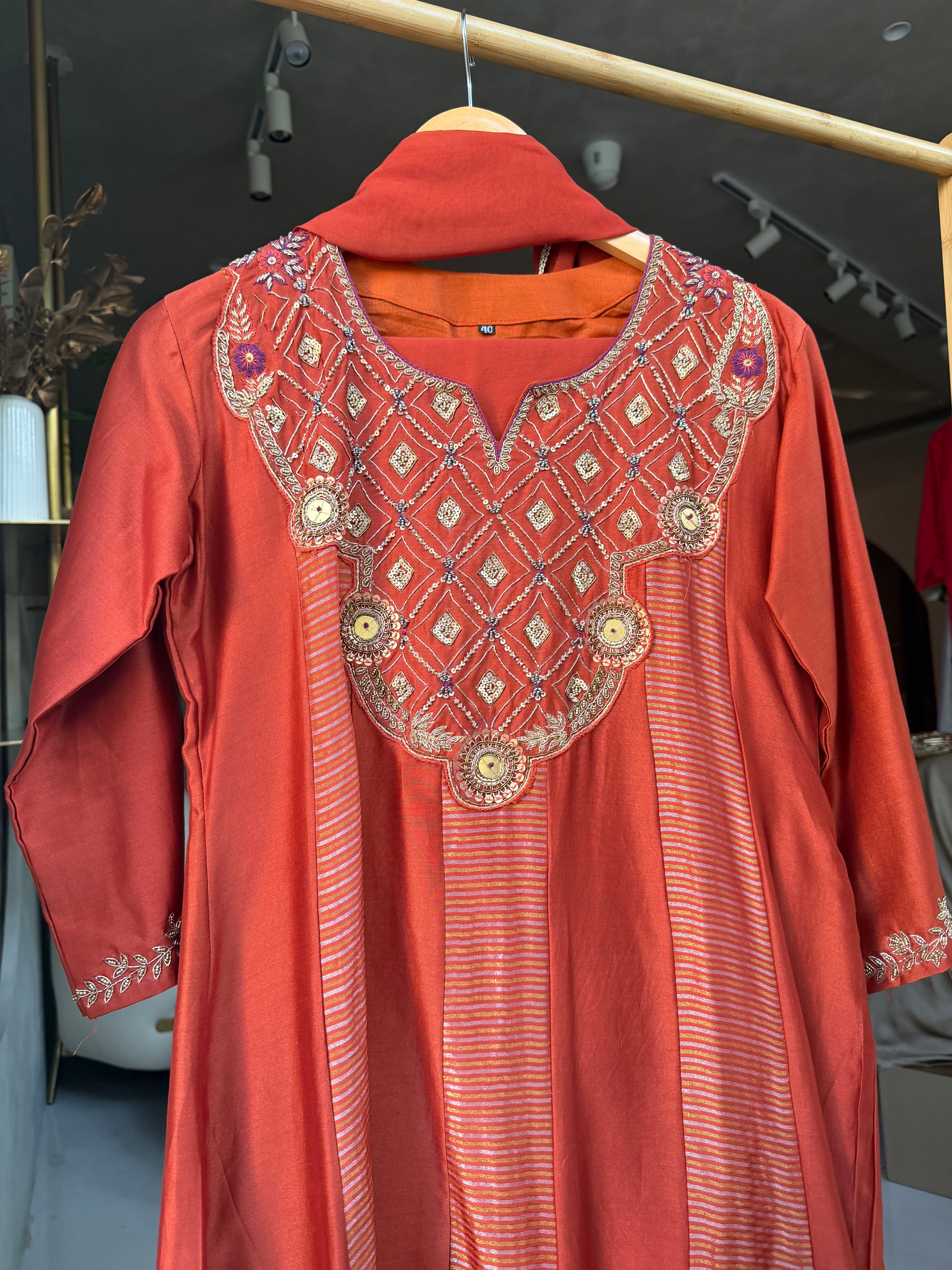 “SNEHAL” Mul Chanderi Handwork Suit Set ✨♥️