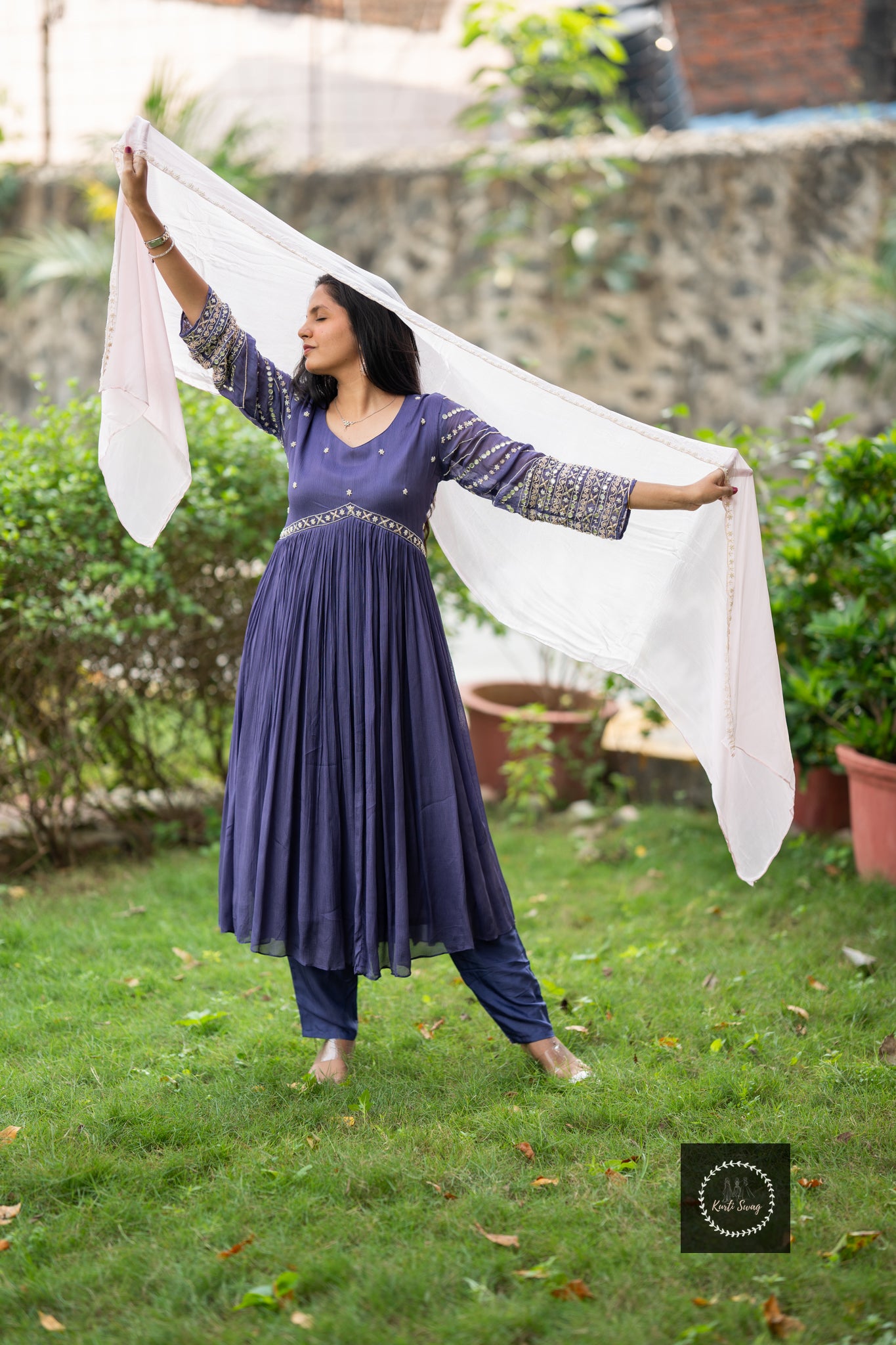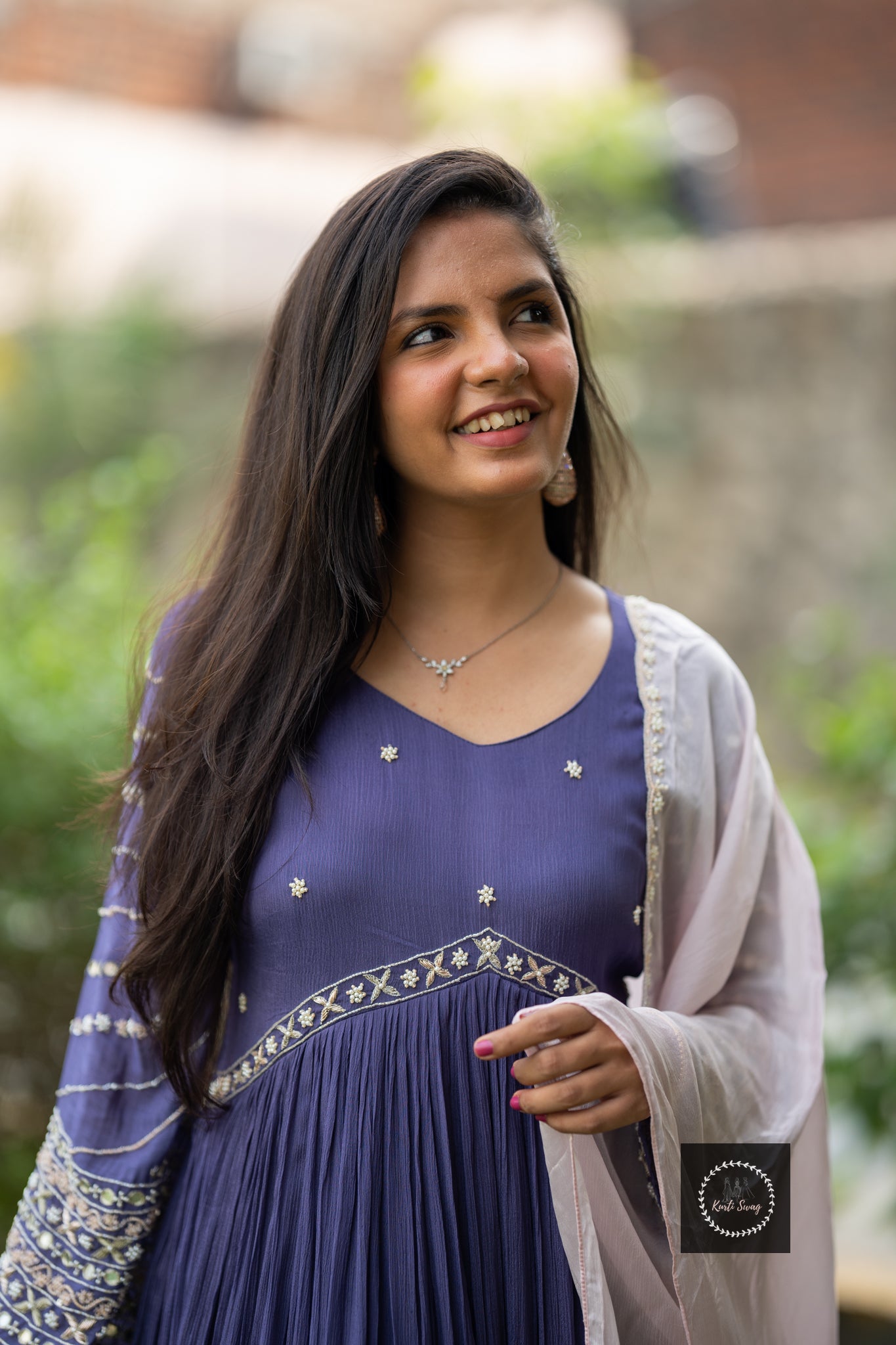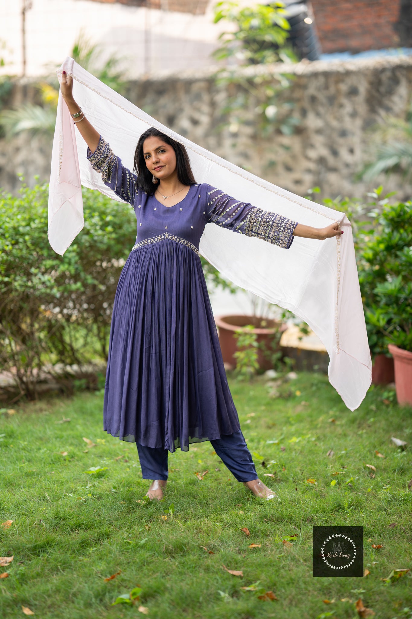 “KRIIYA” Premium Chinnon Kurti With Heavy Embroidery In Sleeves