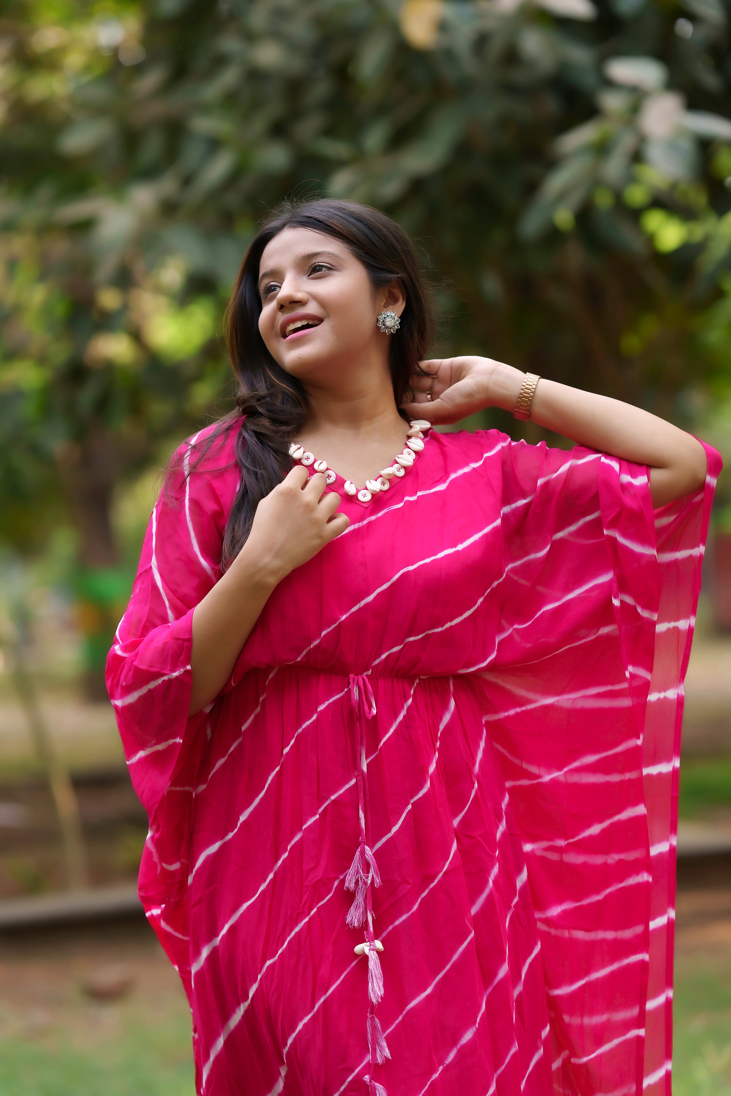 ✅ Premium Georgette Tie And Dye Kaftan Dress