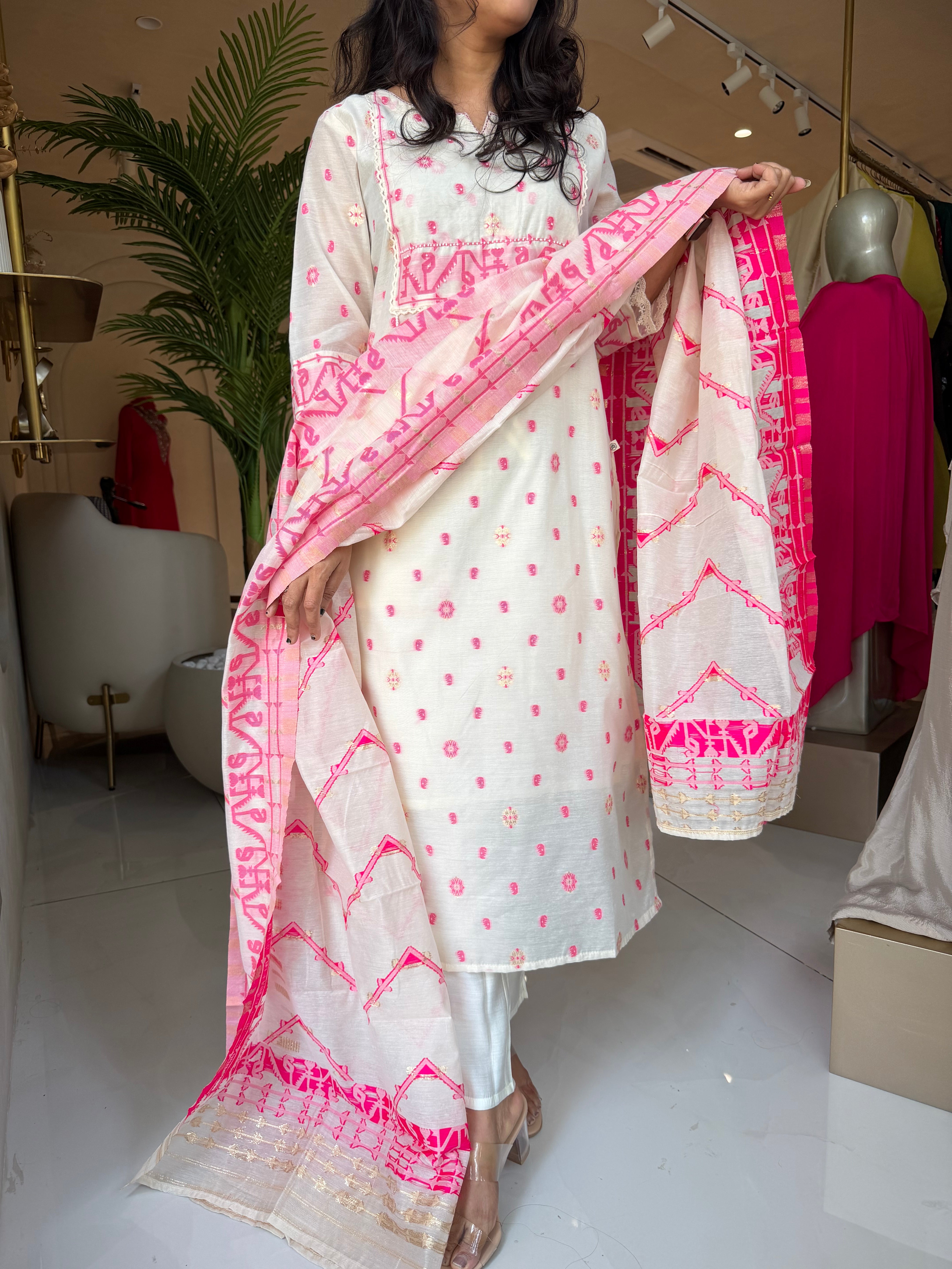 “ASIMA” Premium Mul Cotton Jamdani Suit Set 💕