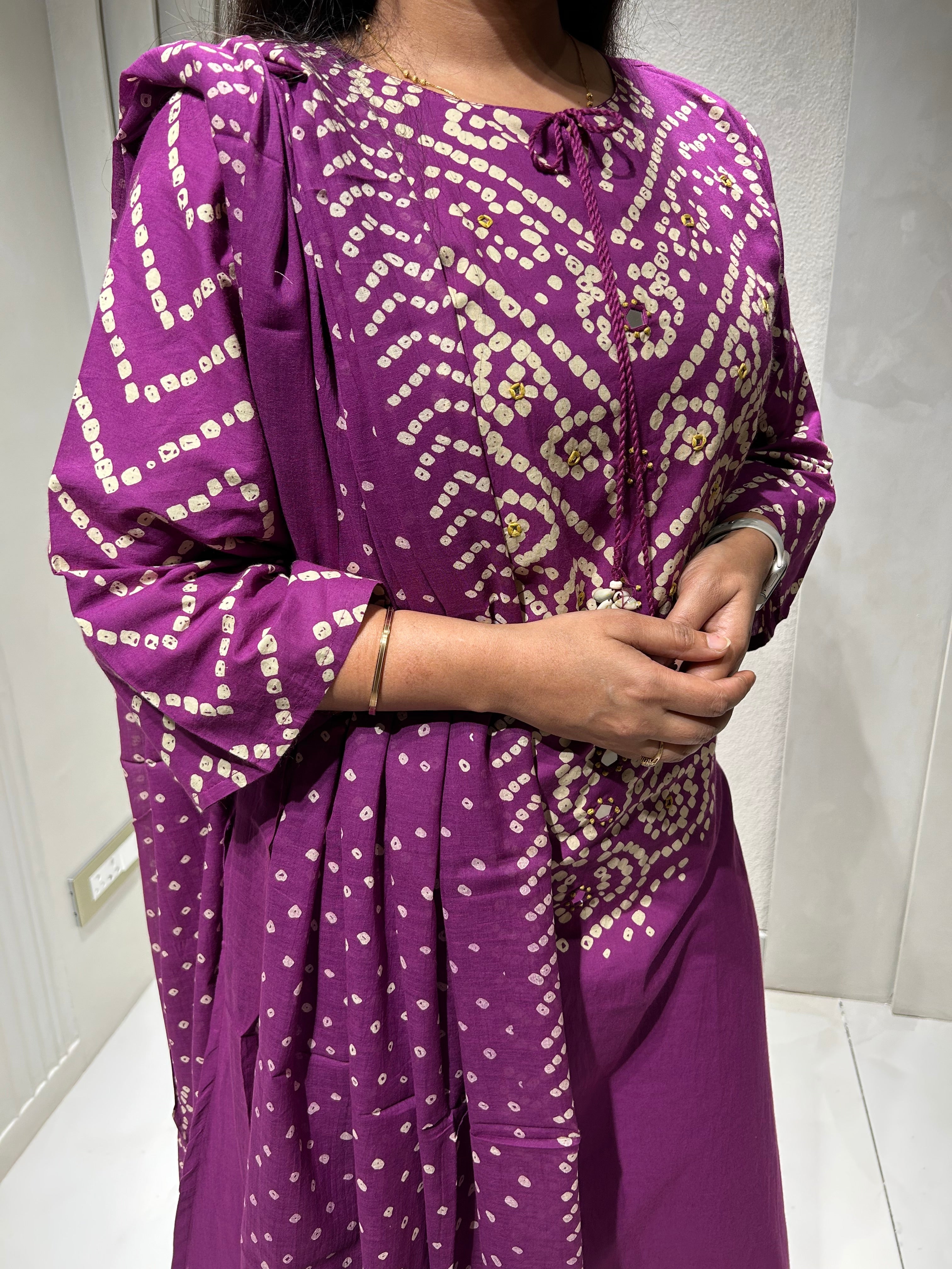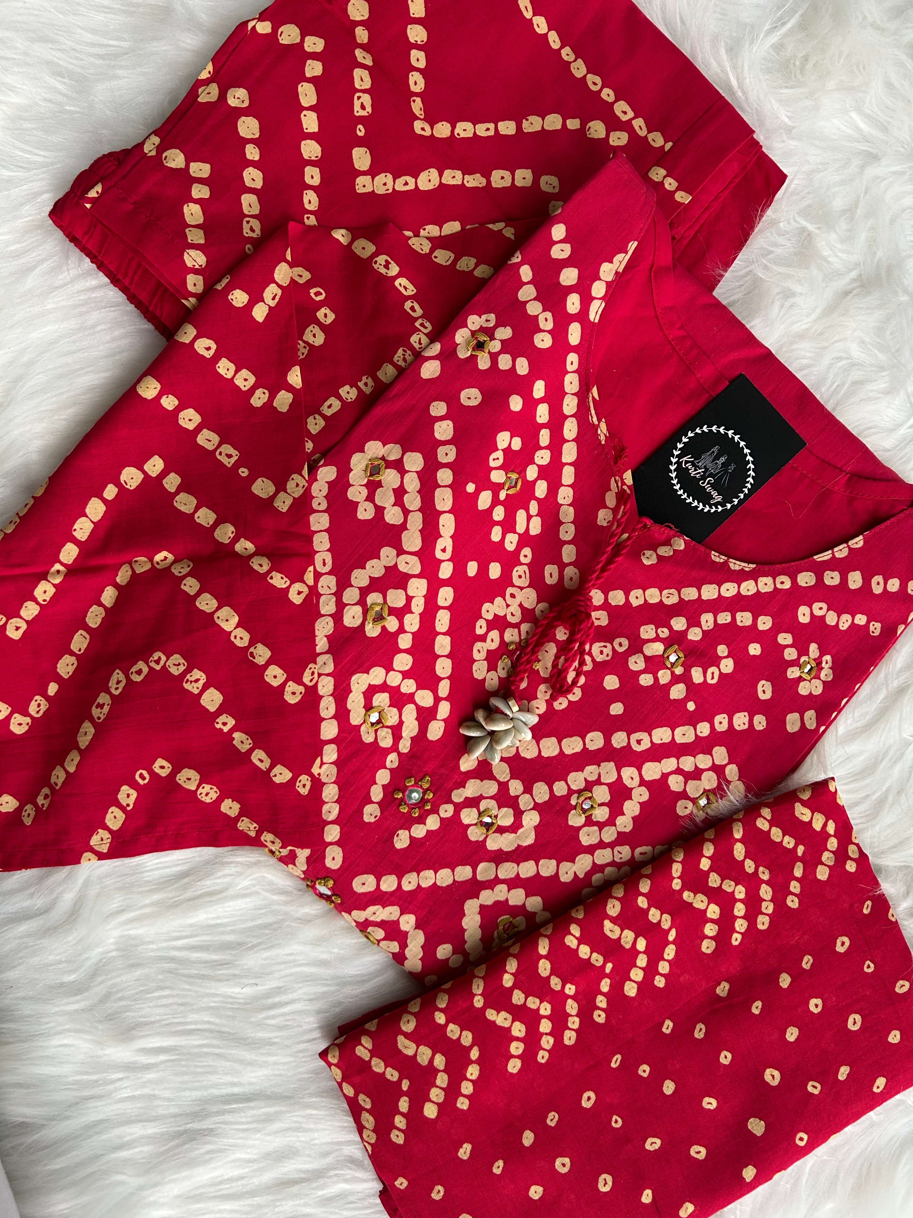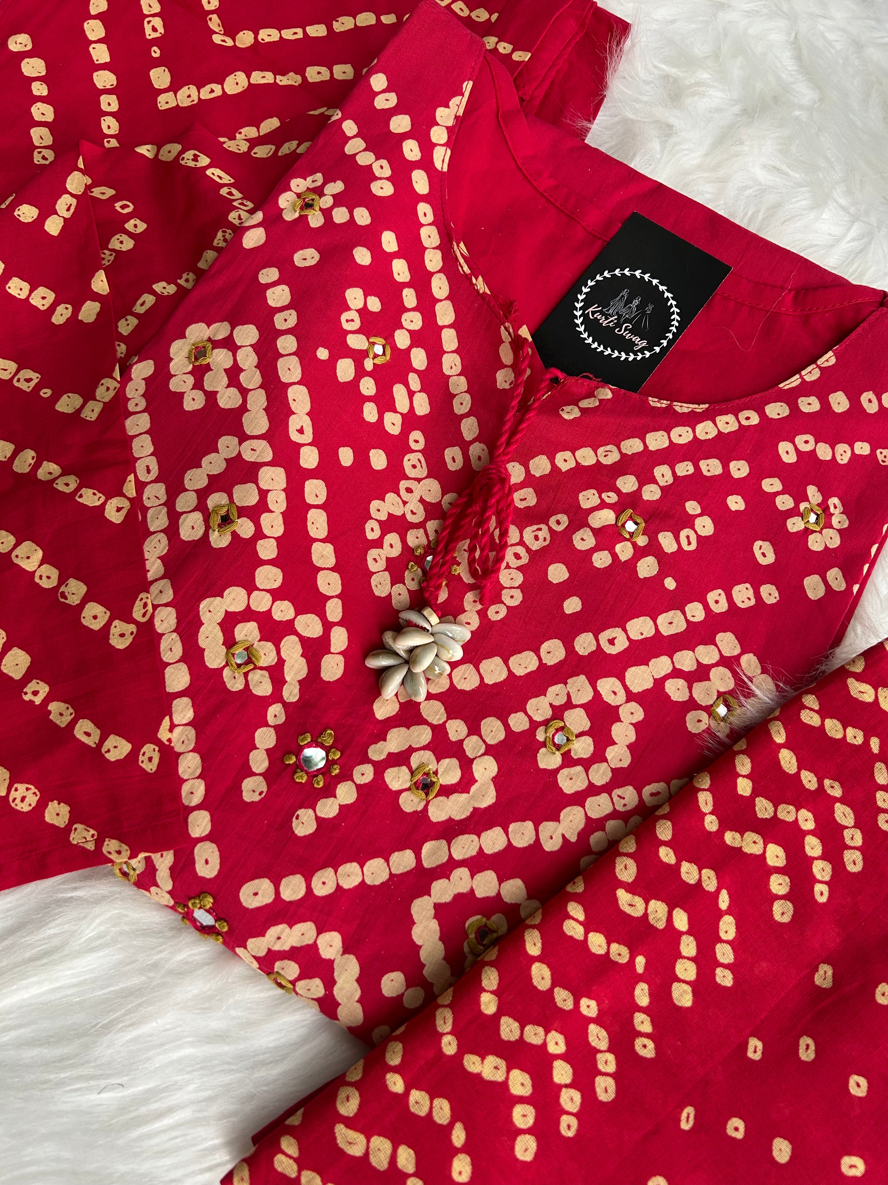 ✅ Pure Cotton Kurti With Bandhni Print On The Kurti