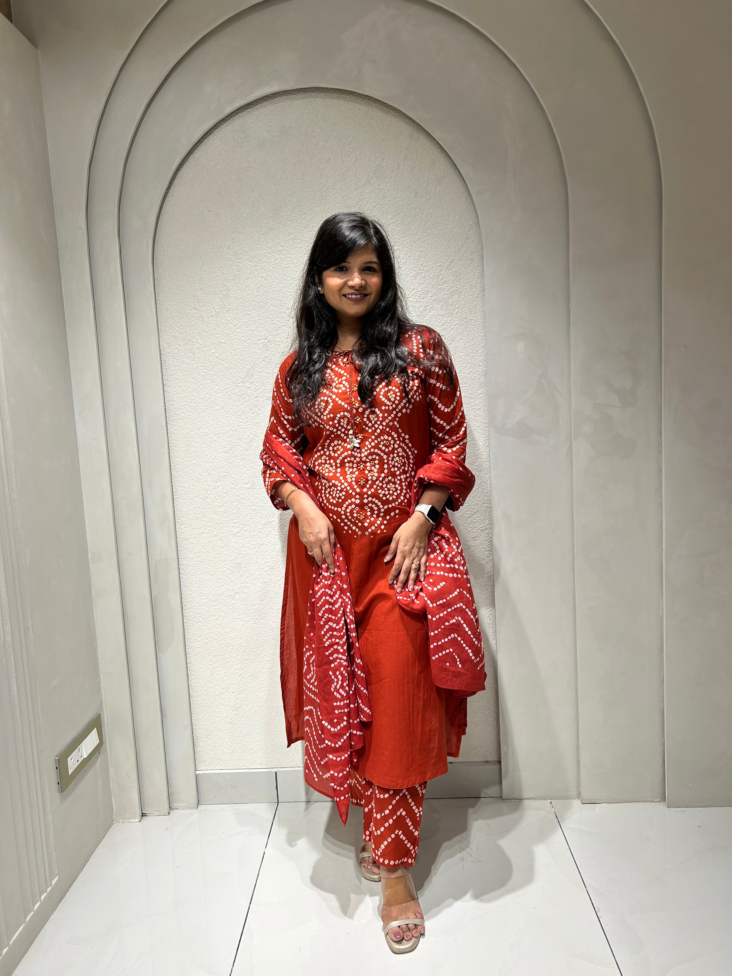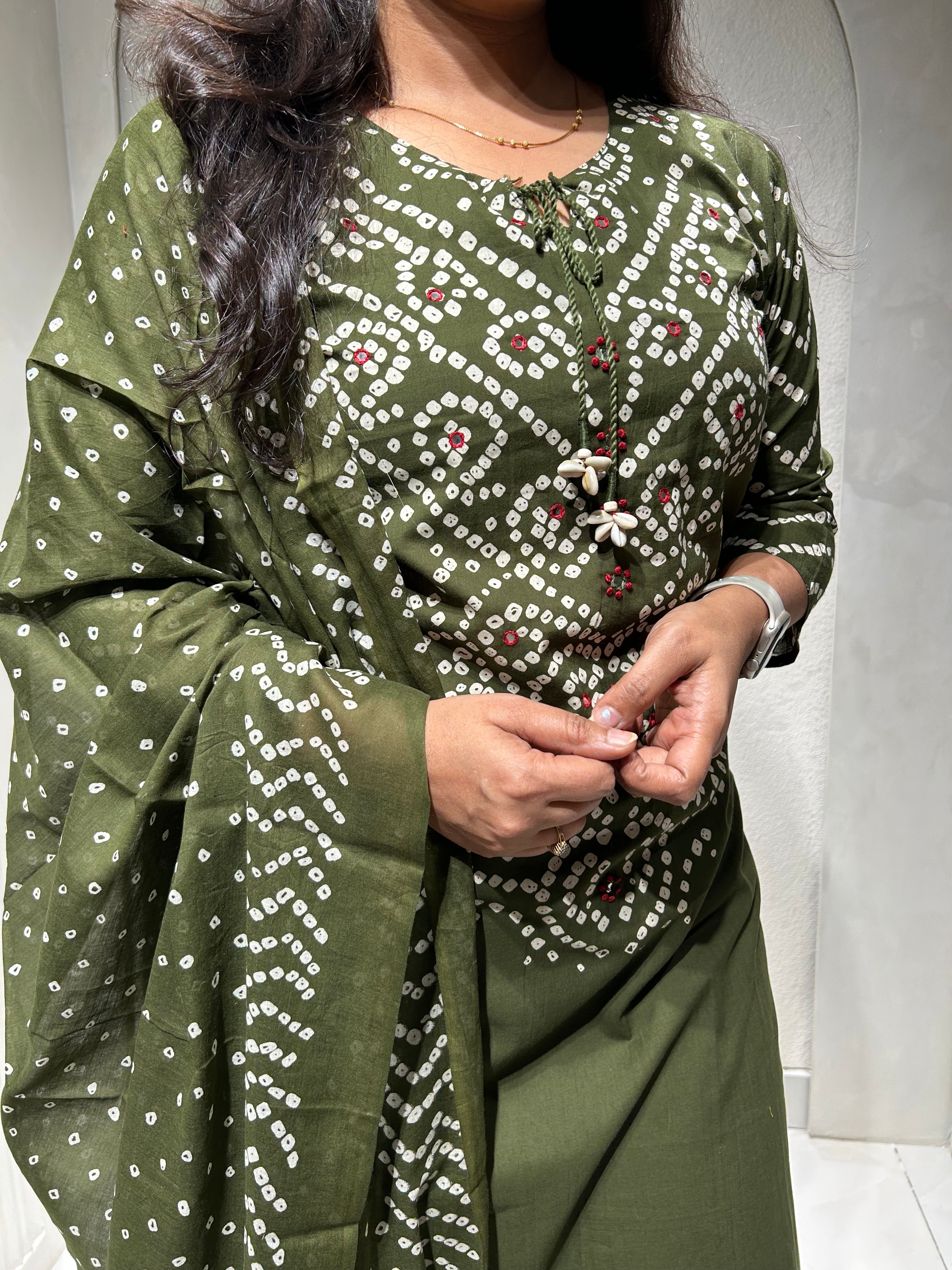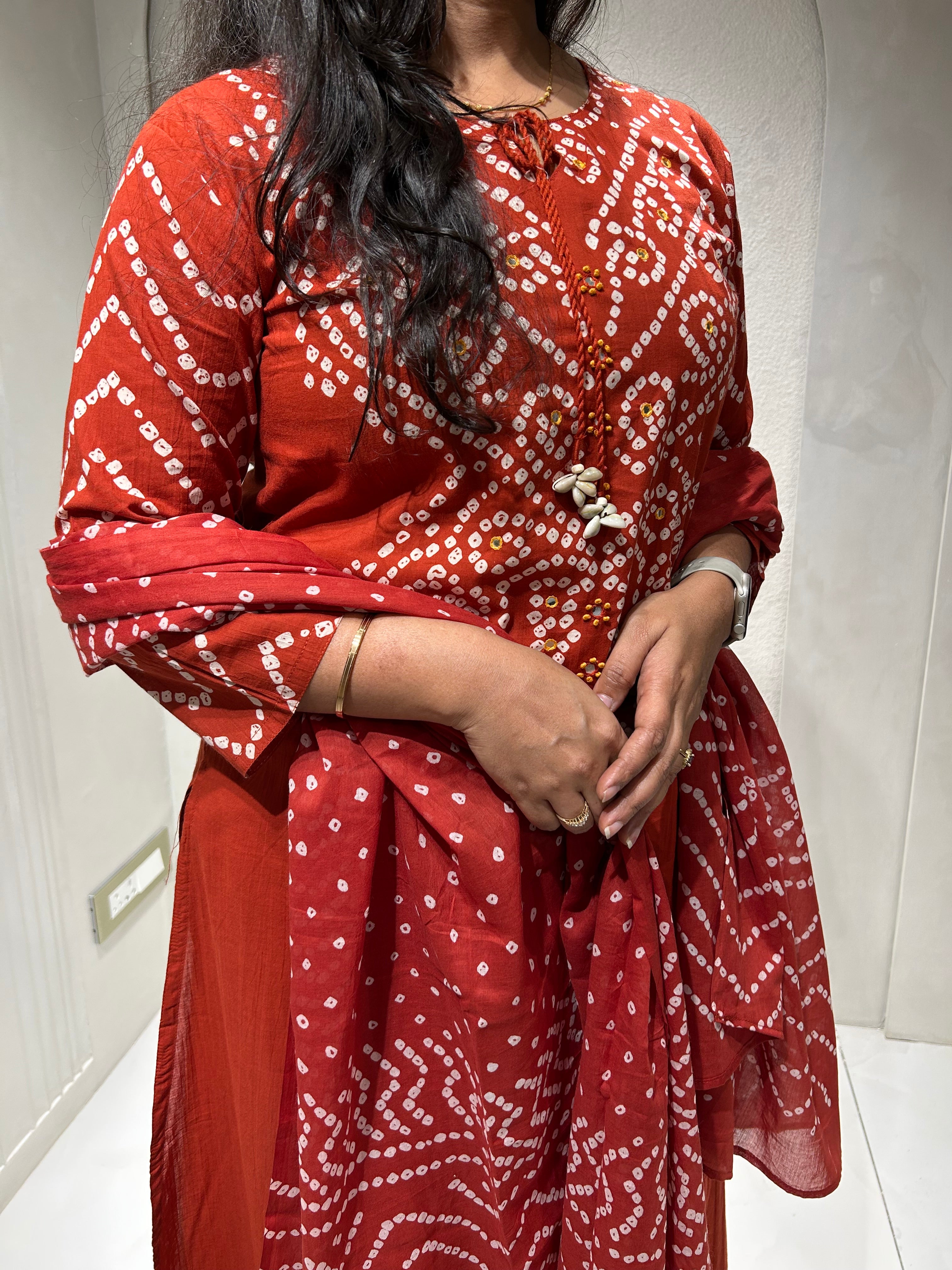 ✅ Pure Cotton Kurti With Bandhni Print On The Kurti