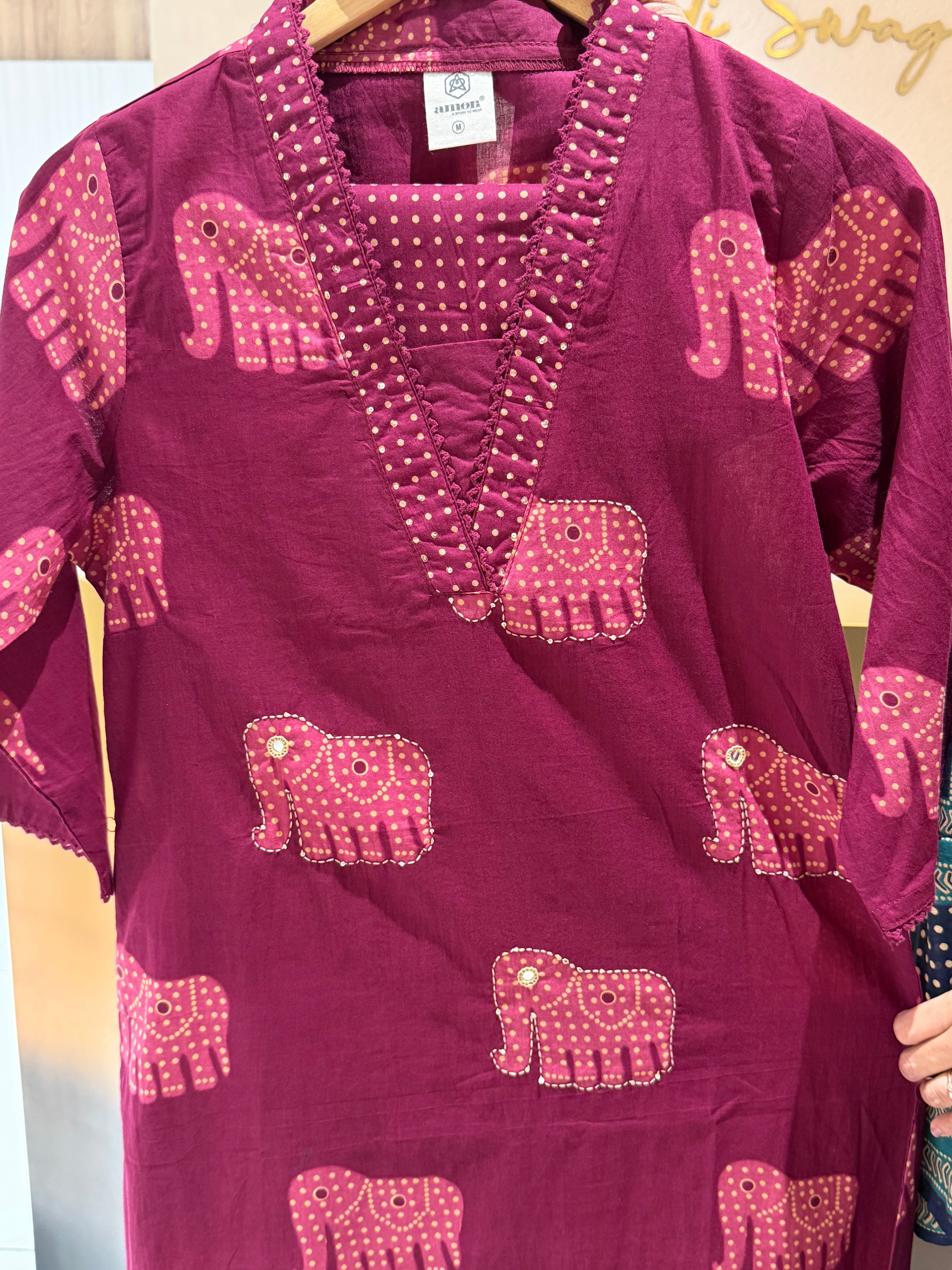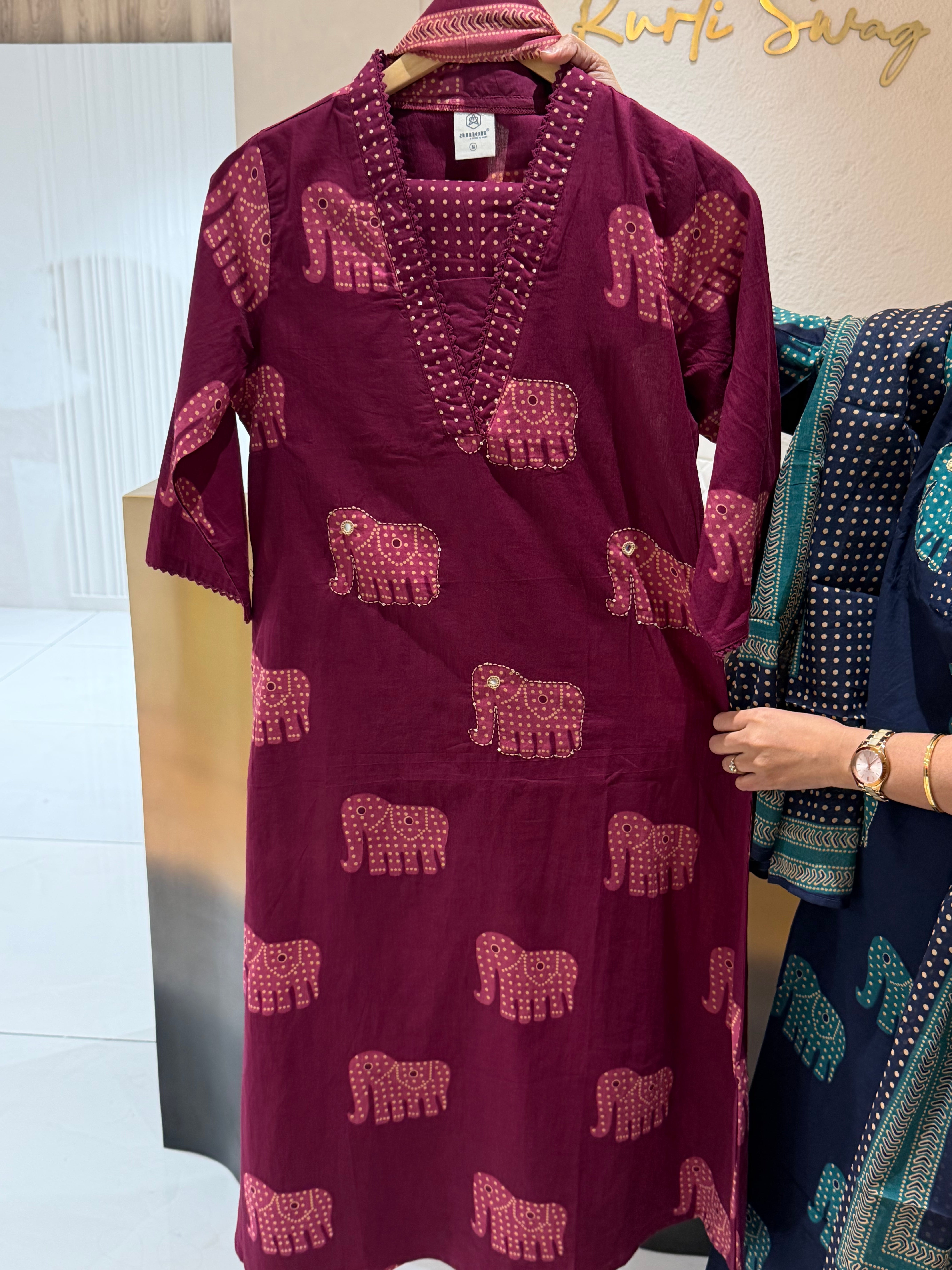 ✅ No side slit in wine and Blue kurta set