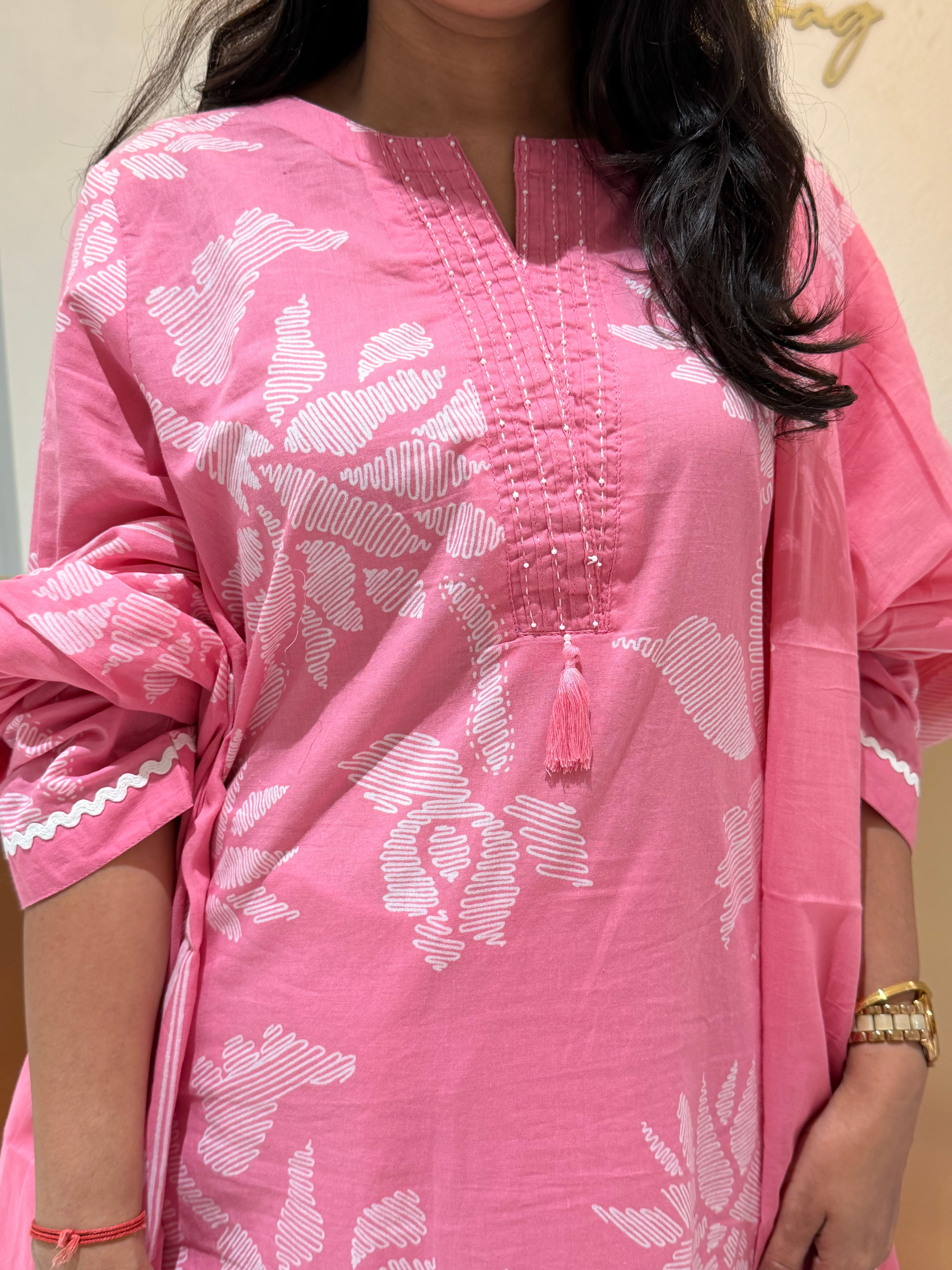 ✅ Pure 60s Cotton Table Printed Kurti With Hand Detailing On The Neckline Of The Kurti
