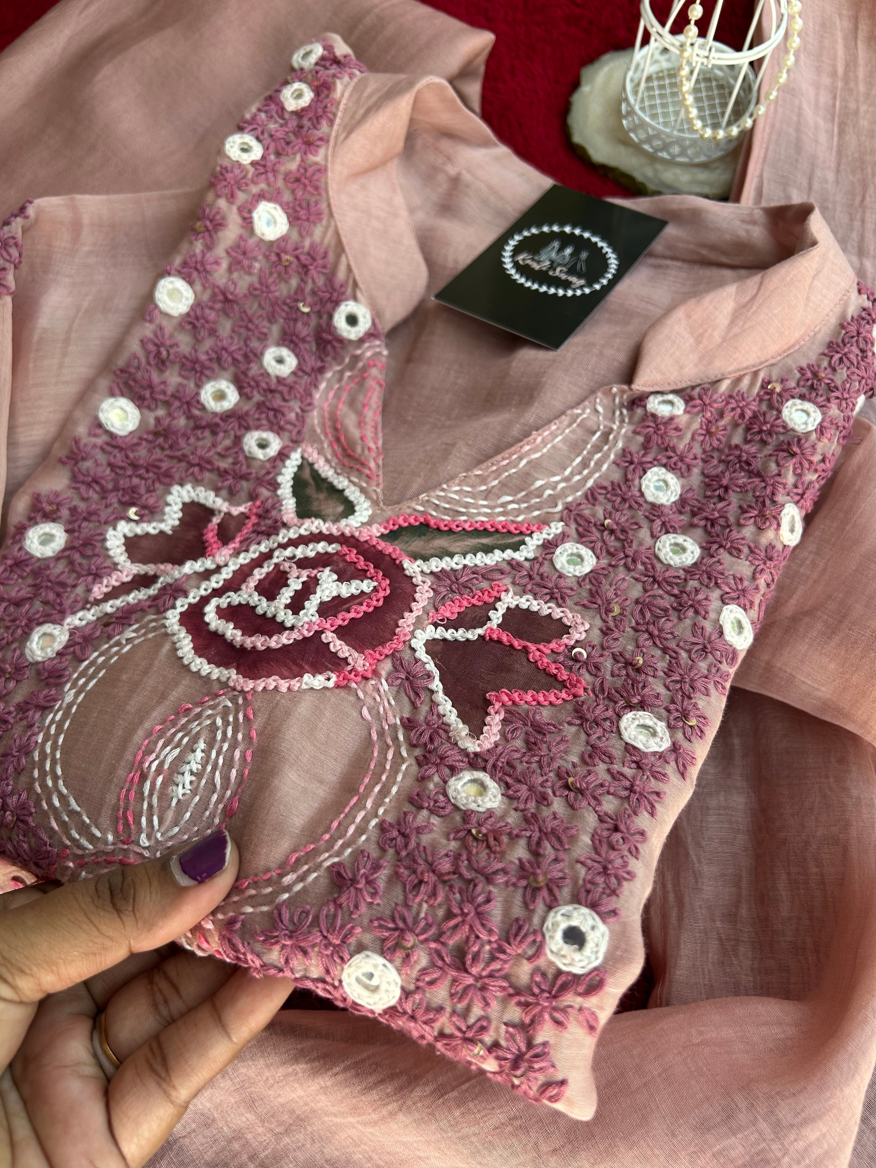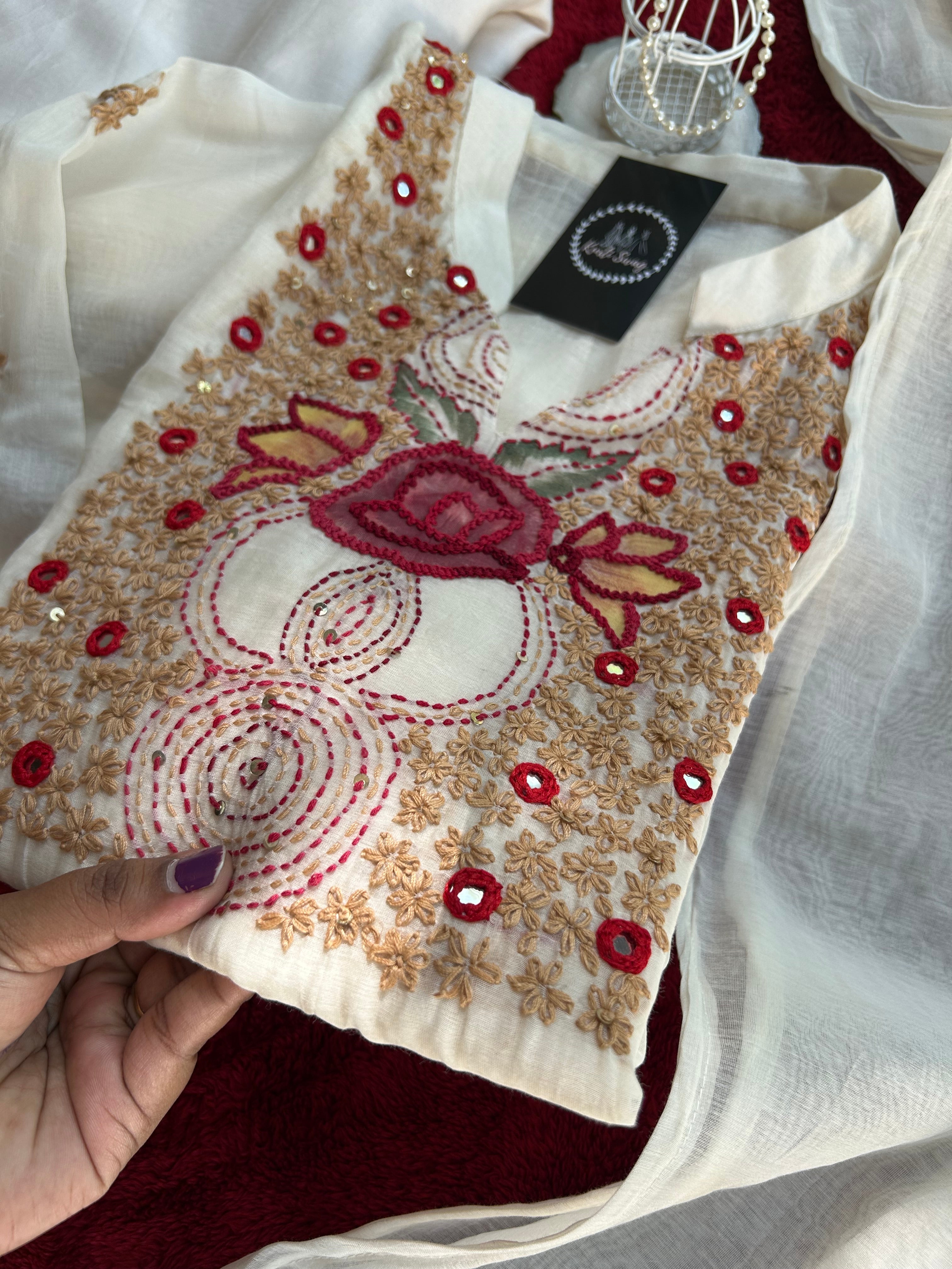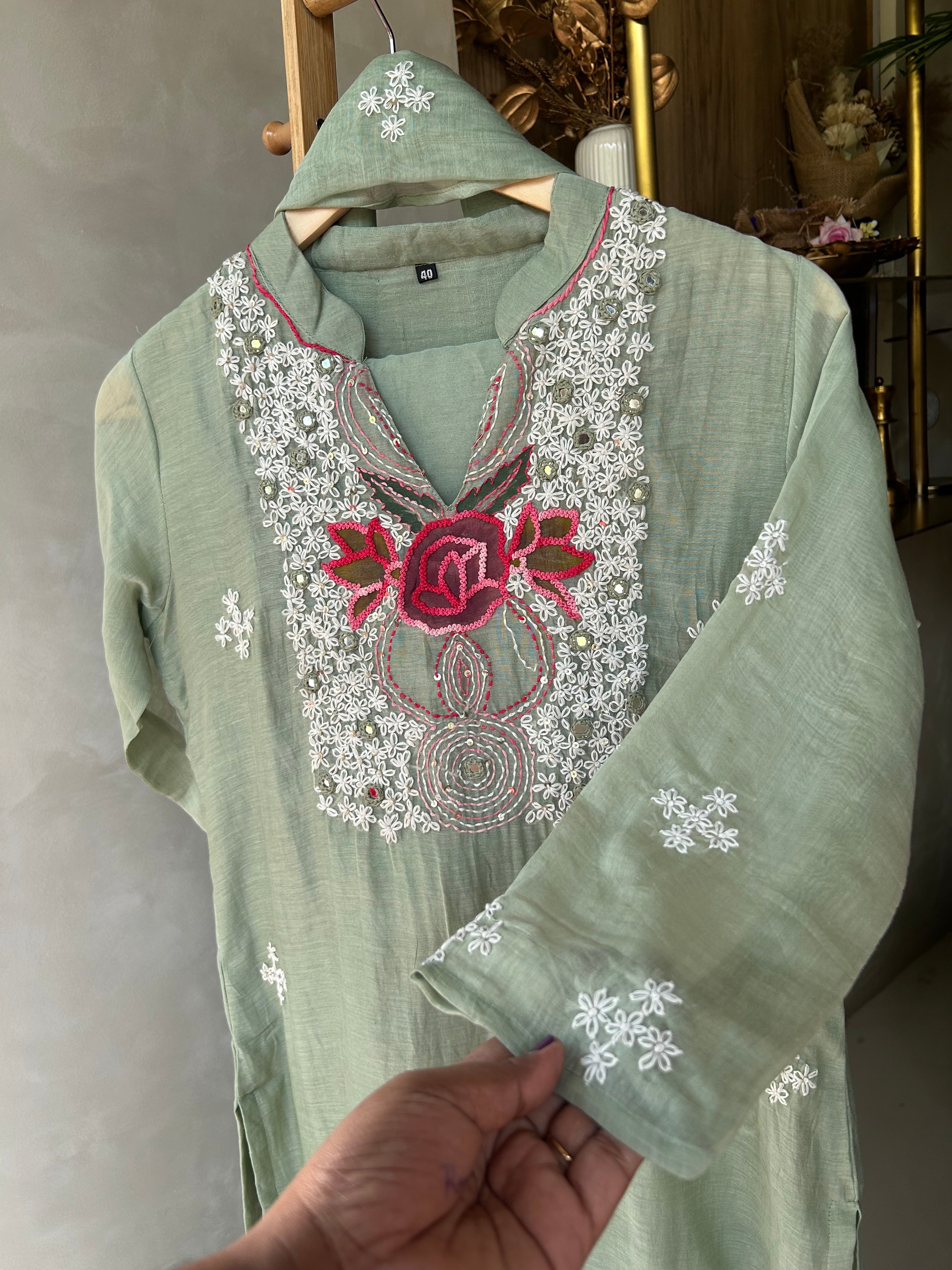 ✅ Premium Mul Chanderi Kurti With Katha handwork Work At The yoke