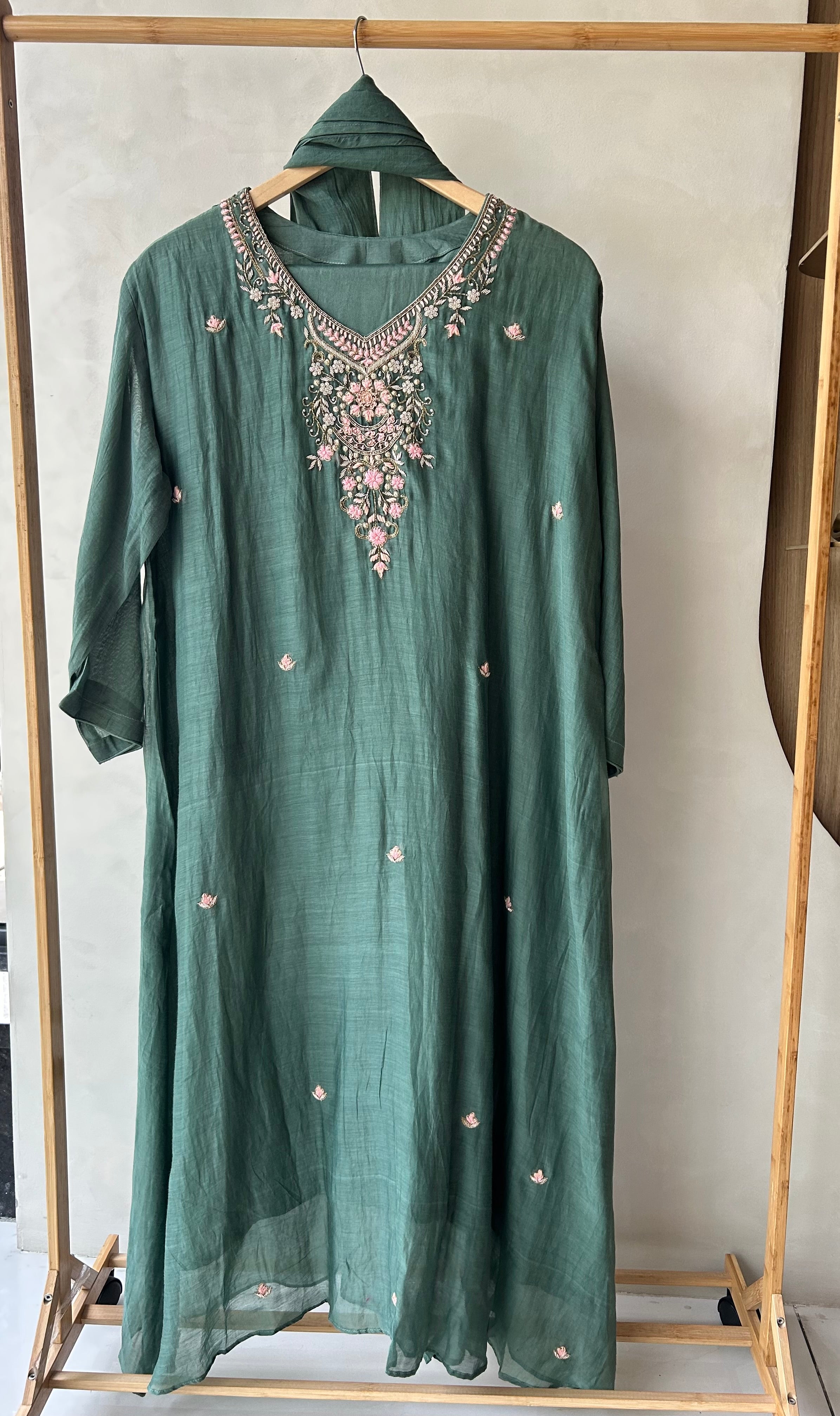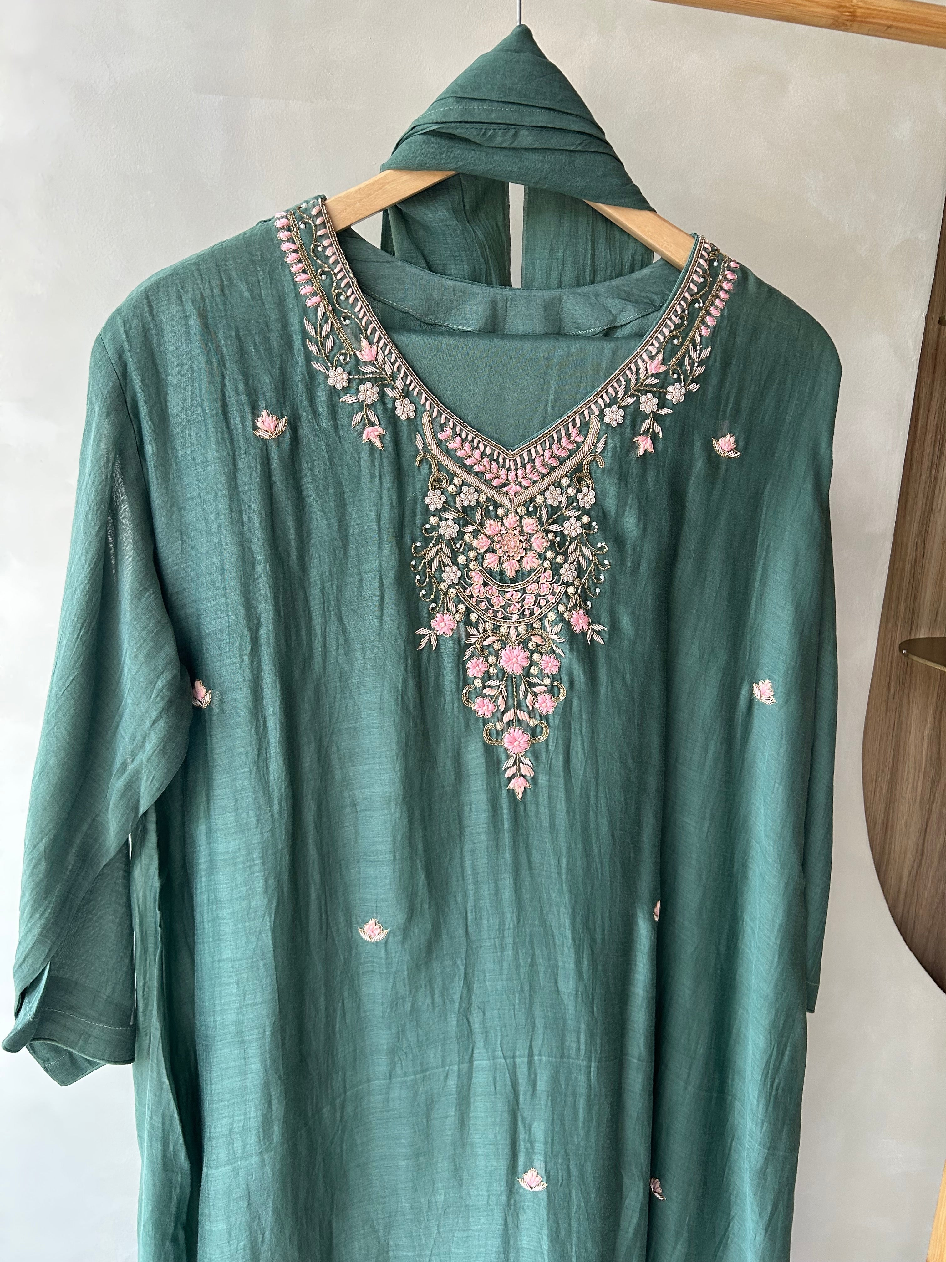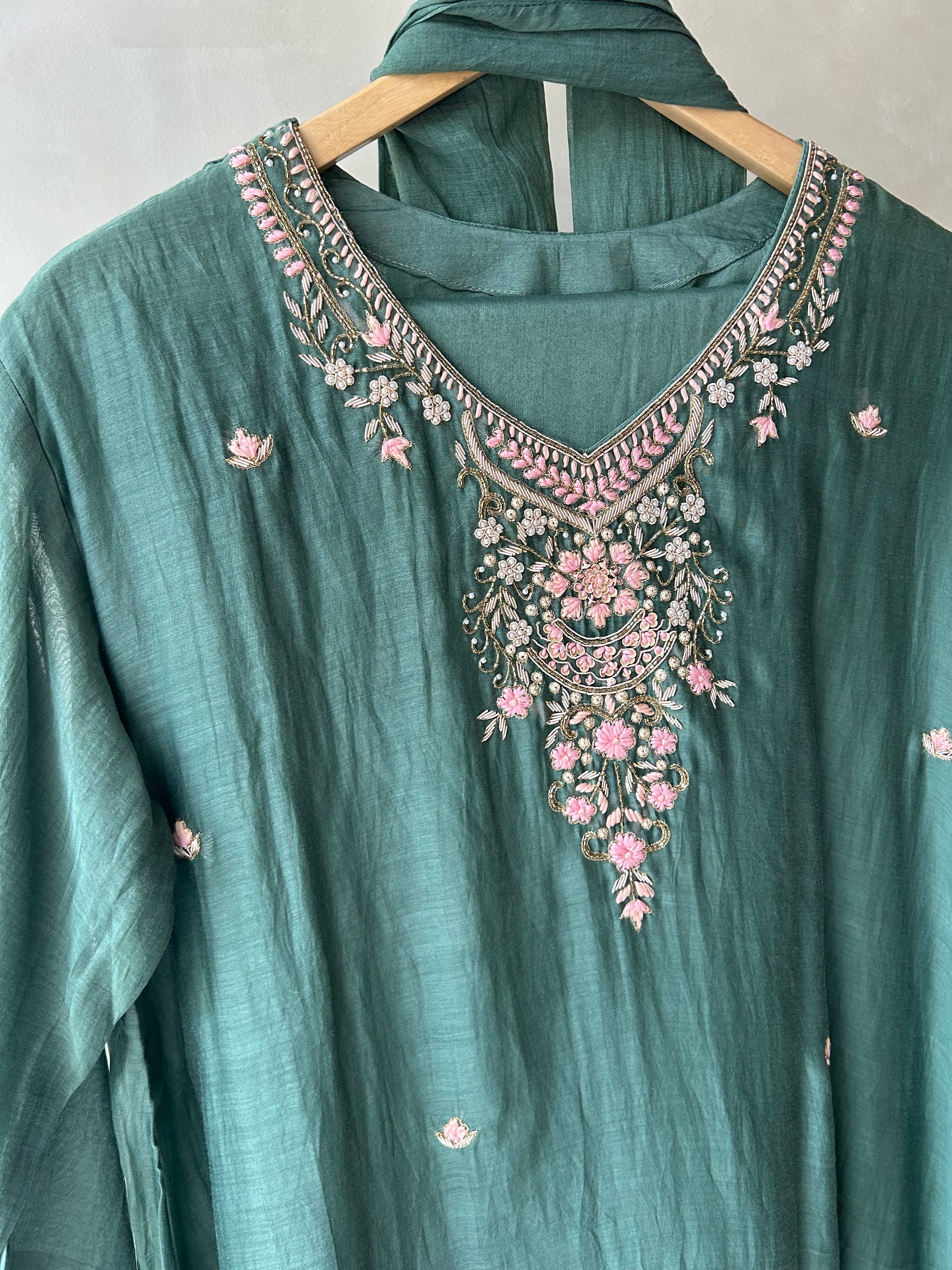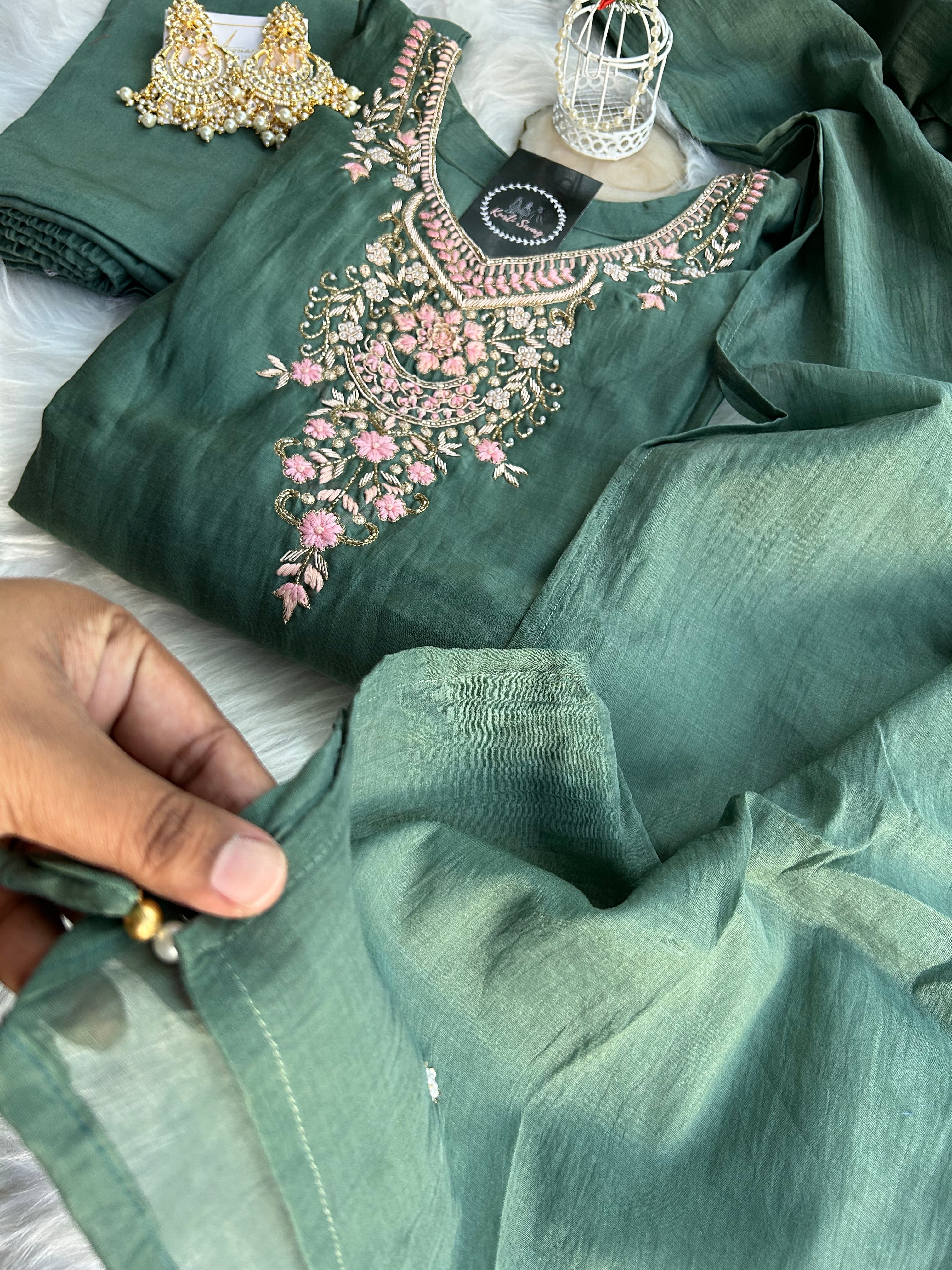✅ Premium Mul Chanderi Kurti With Handwork On The Yoke Of The Kurti