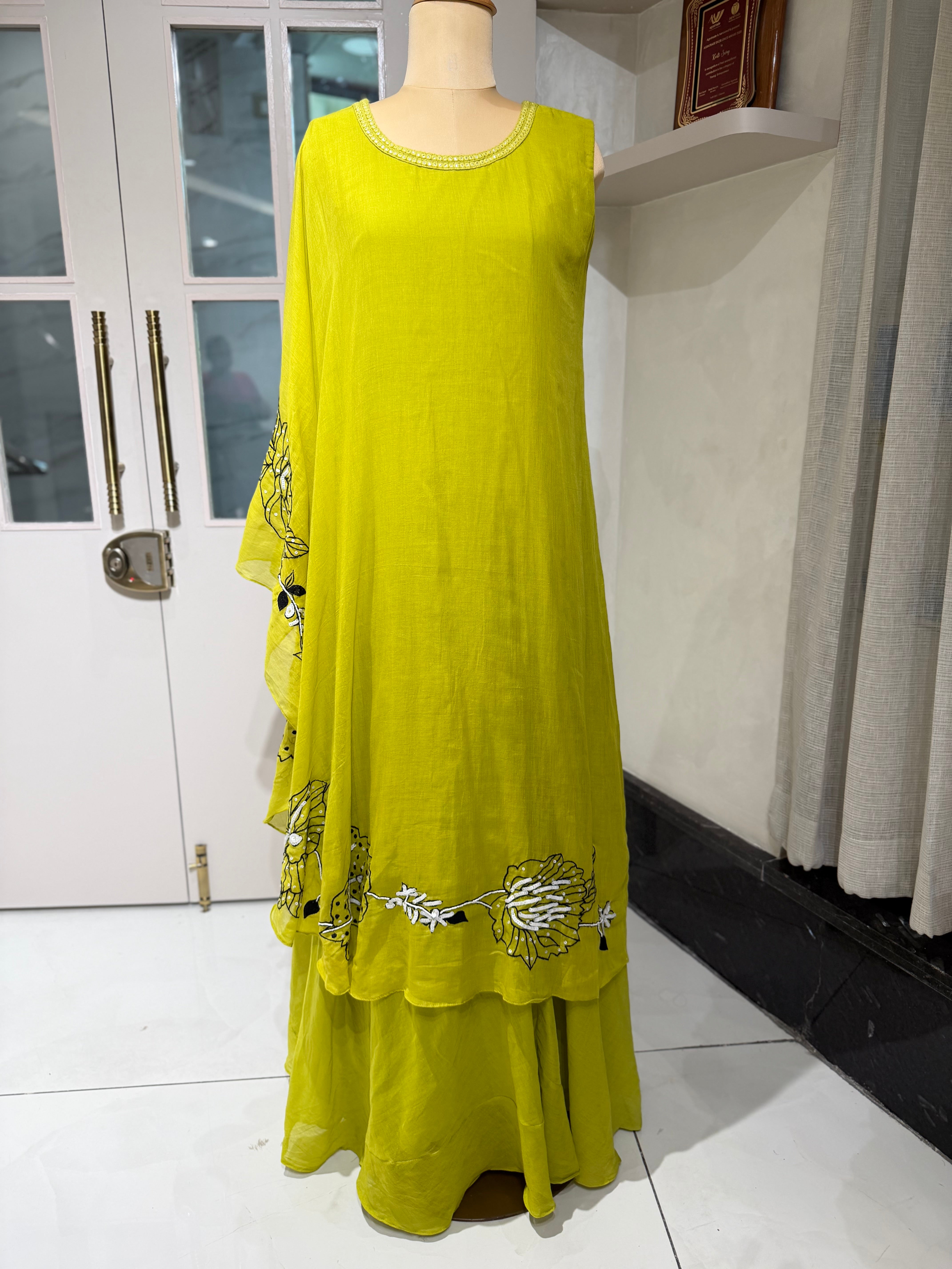 ✅ Cape Sleeves On One Side And Sleeveless On Other Side