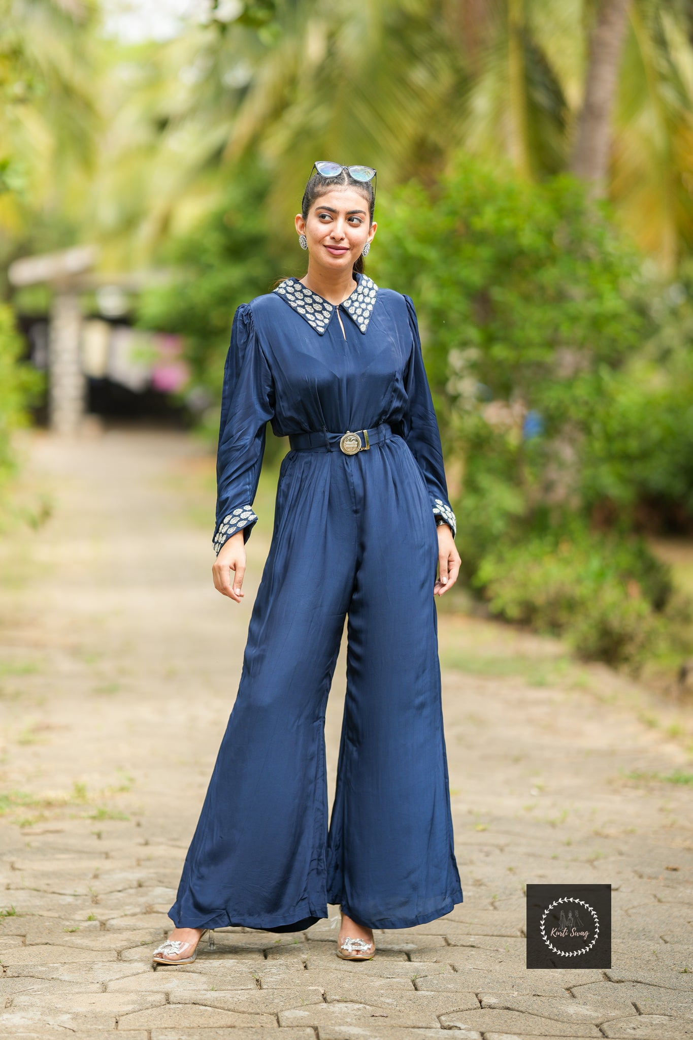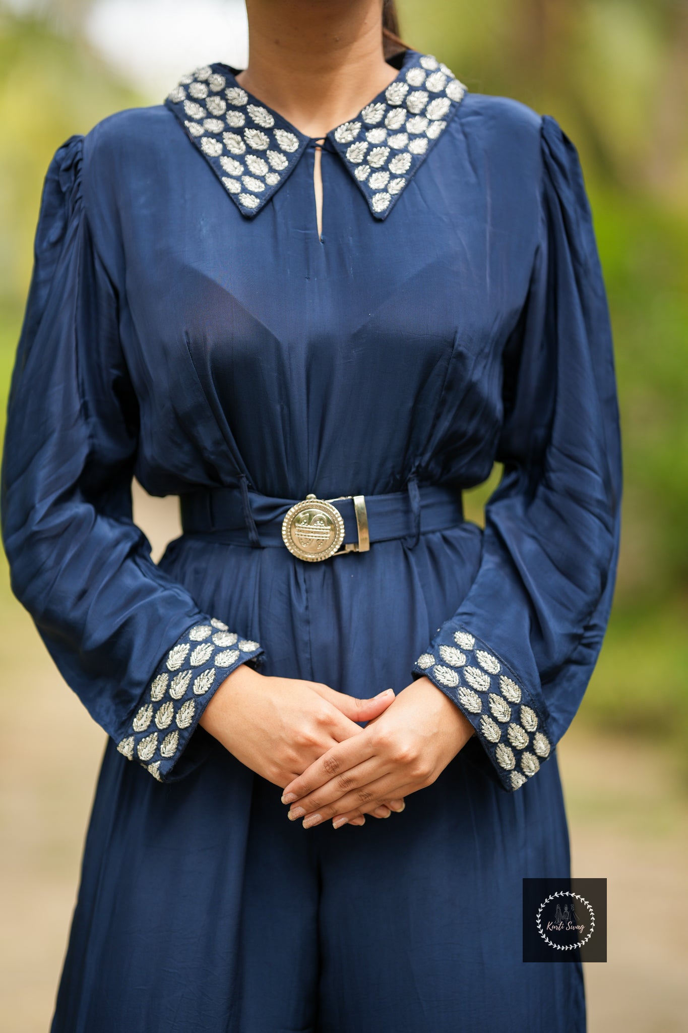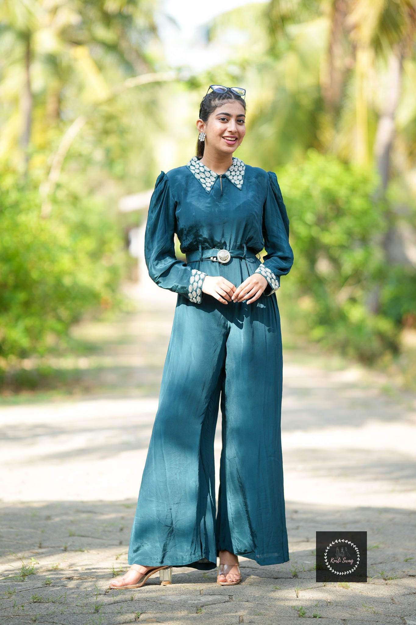 โ Italian Crape Jumpsuit with Cutdana Work on the Collar And Sleeves