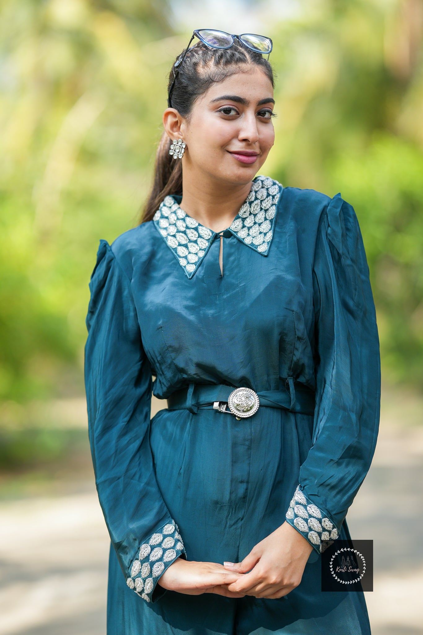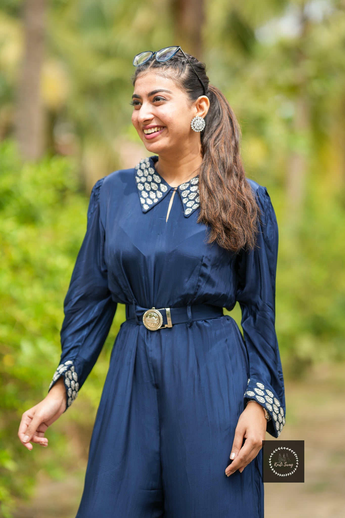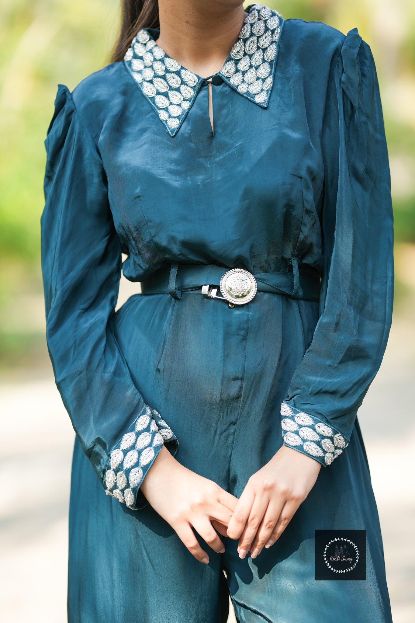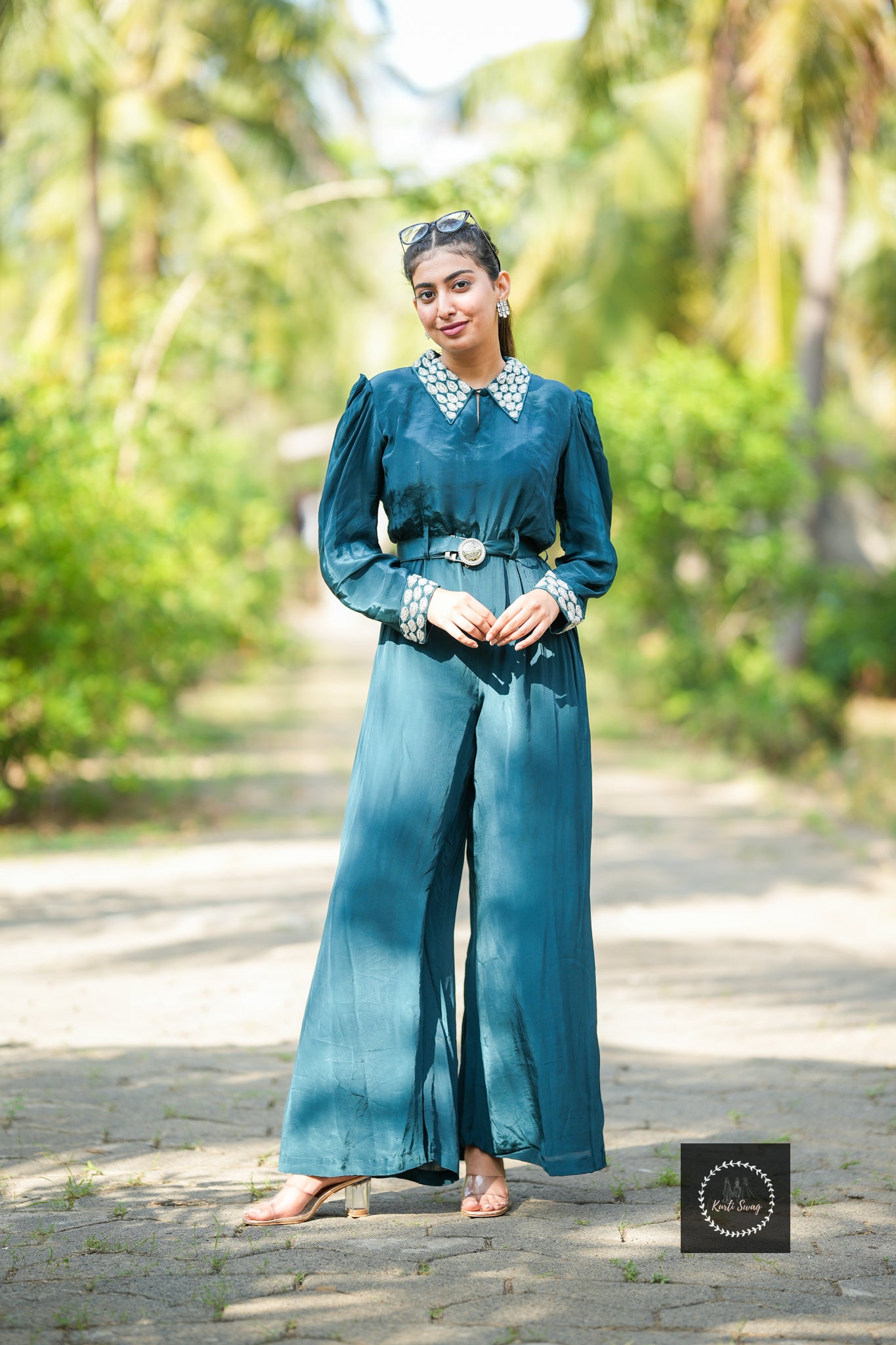 โ Italian Crape Jumpsuit with Cutdana Work on the Collar And Sleeves