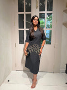 ✅  Imported Banana Crape Collared Dress With Handwork On The Waist Line